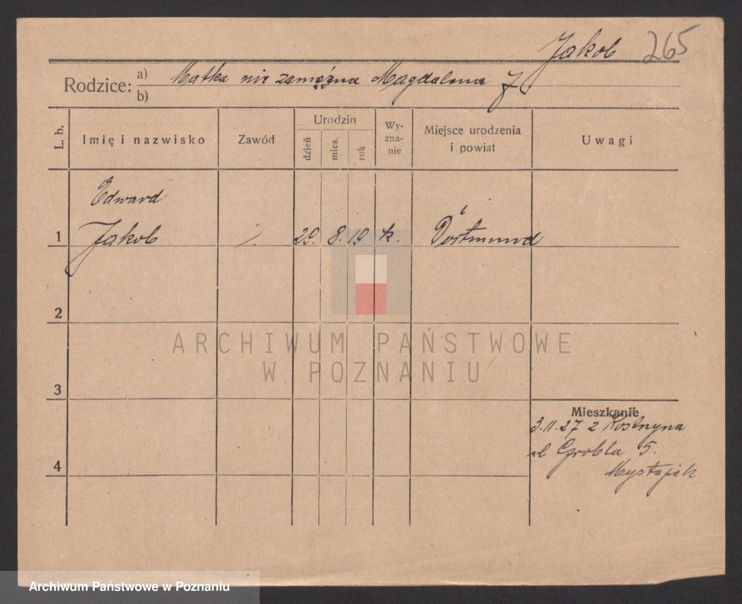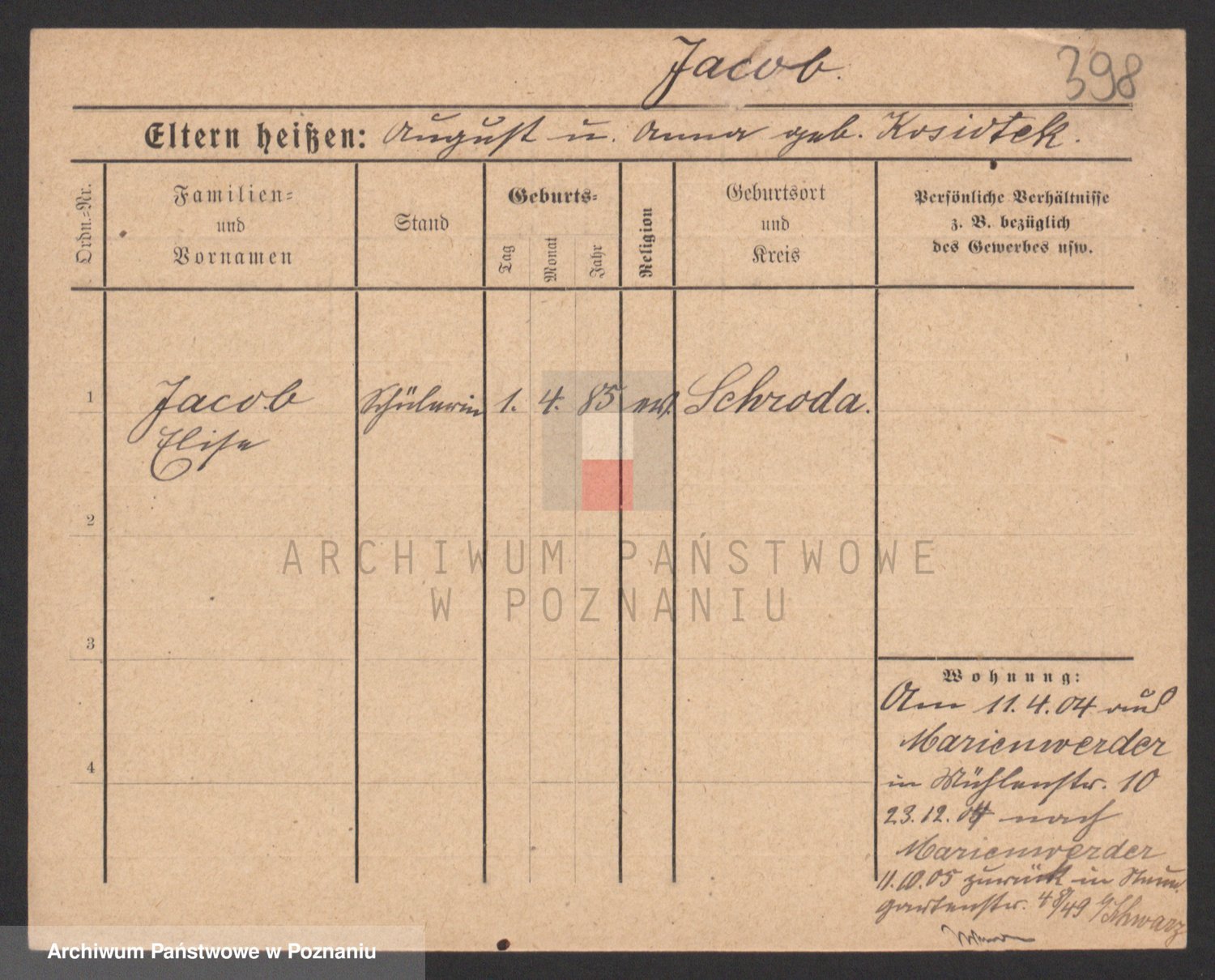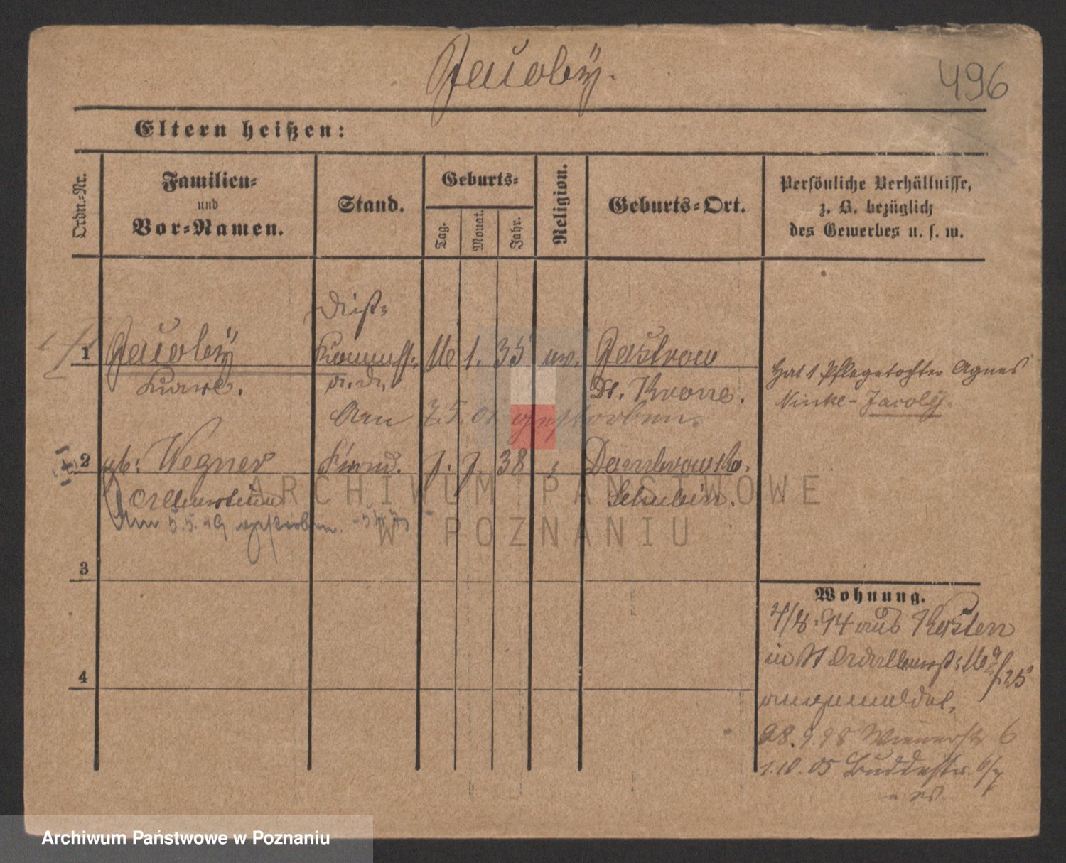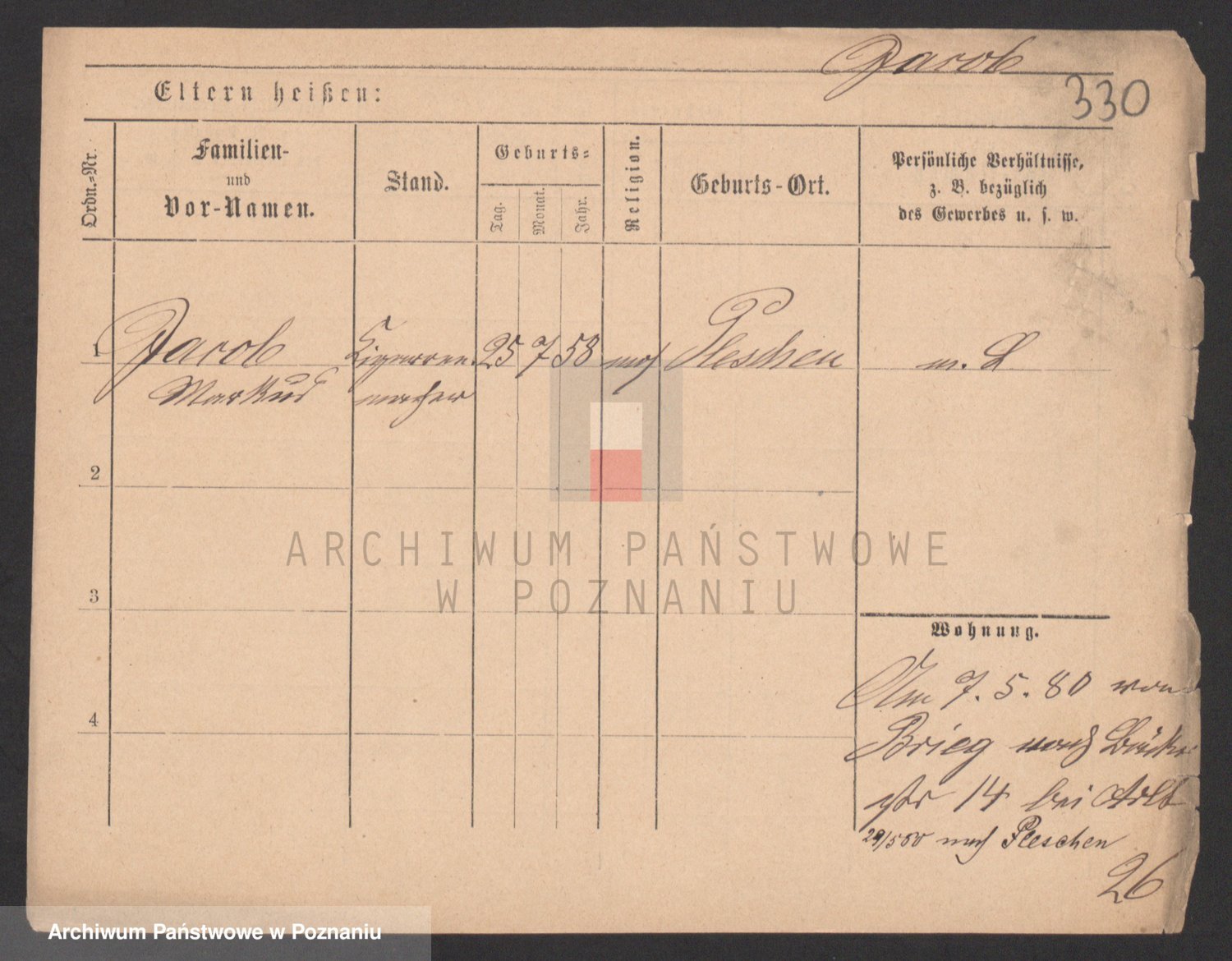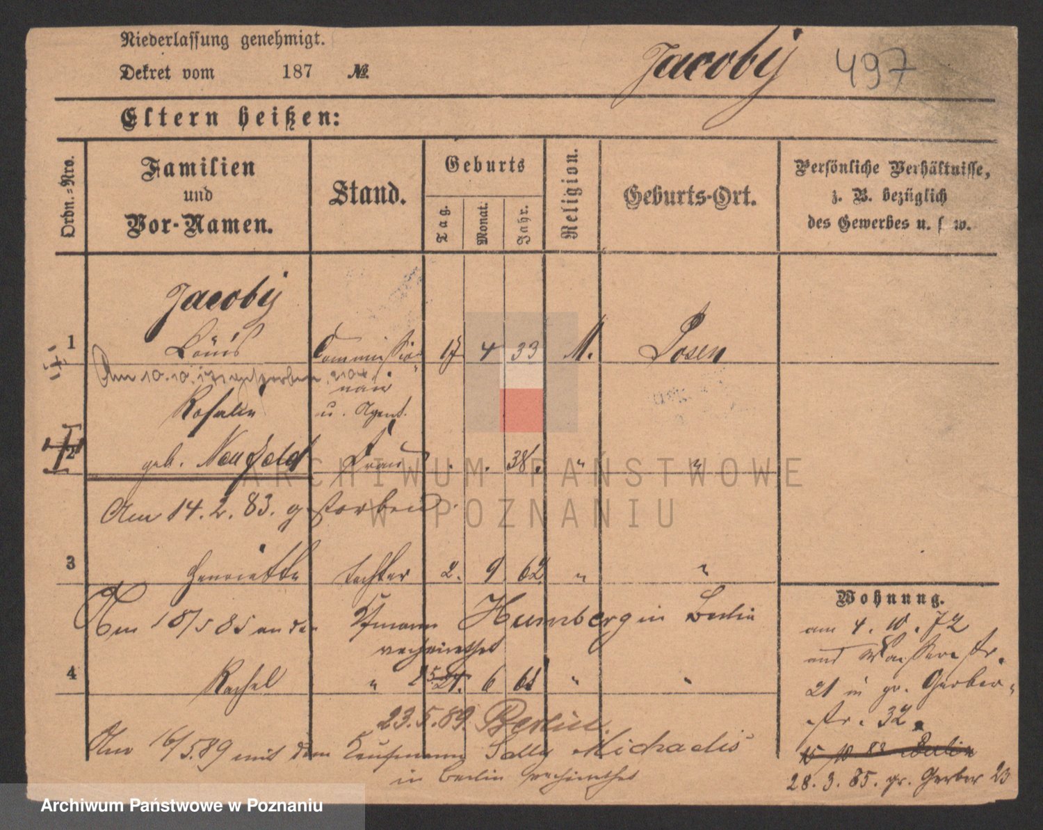 Podgląd karty osobowej dostępny jest po kliknięciu na nazwisko lub ikonkę karty. Można dokonywać powiększenia (ikony na górze) lub przechodzić między kolejnymi skanami (strzałki po bokach).
