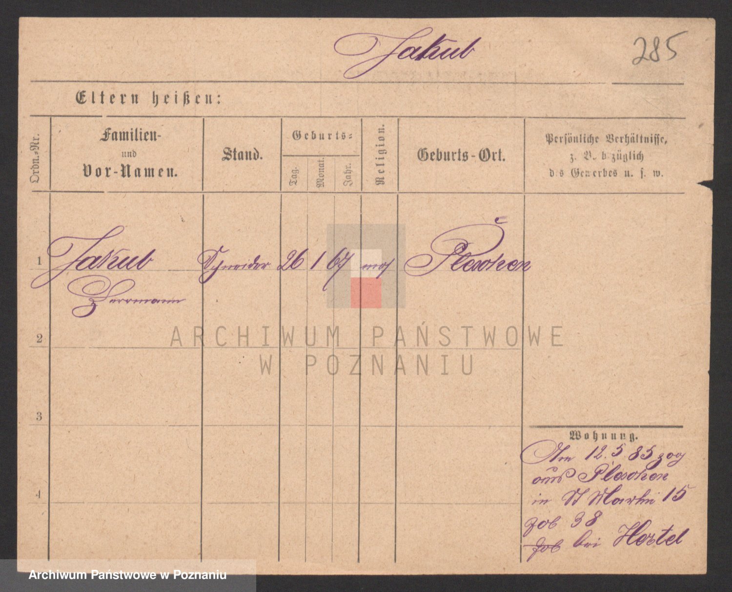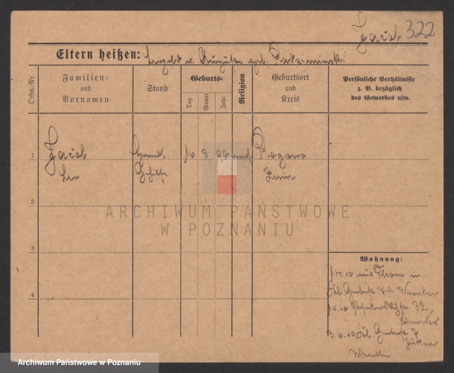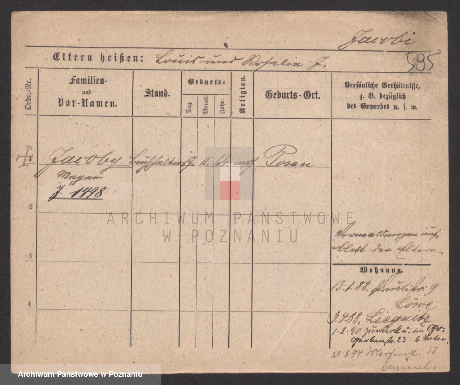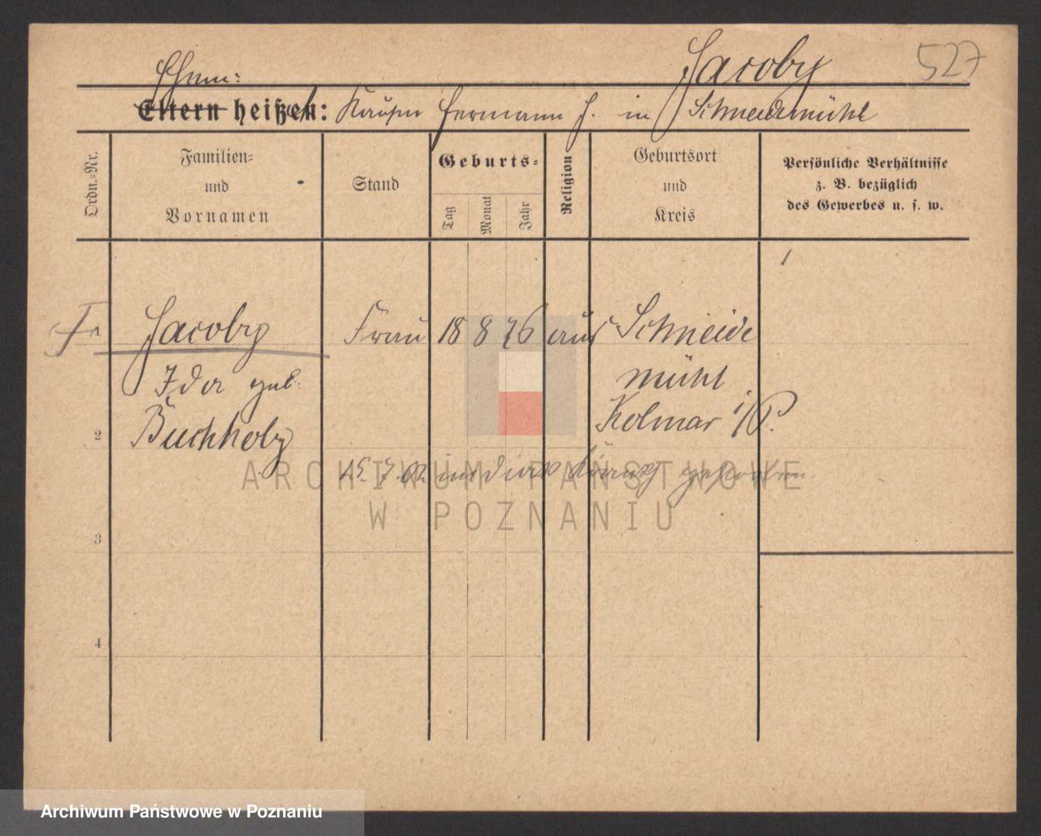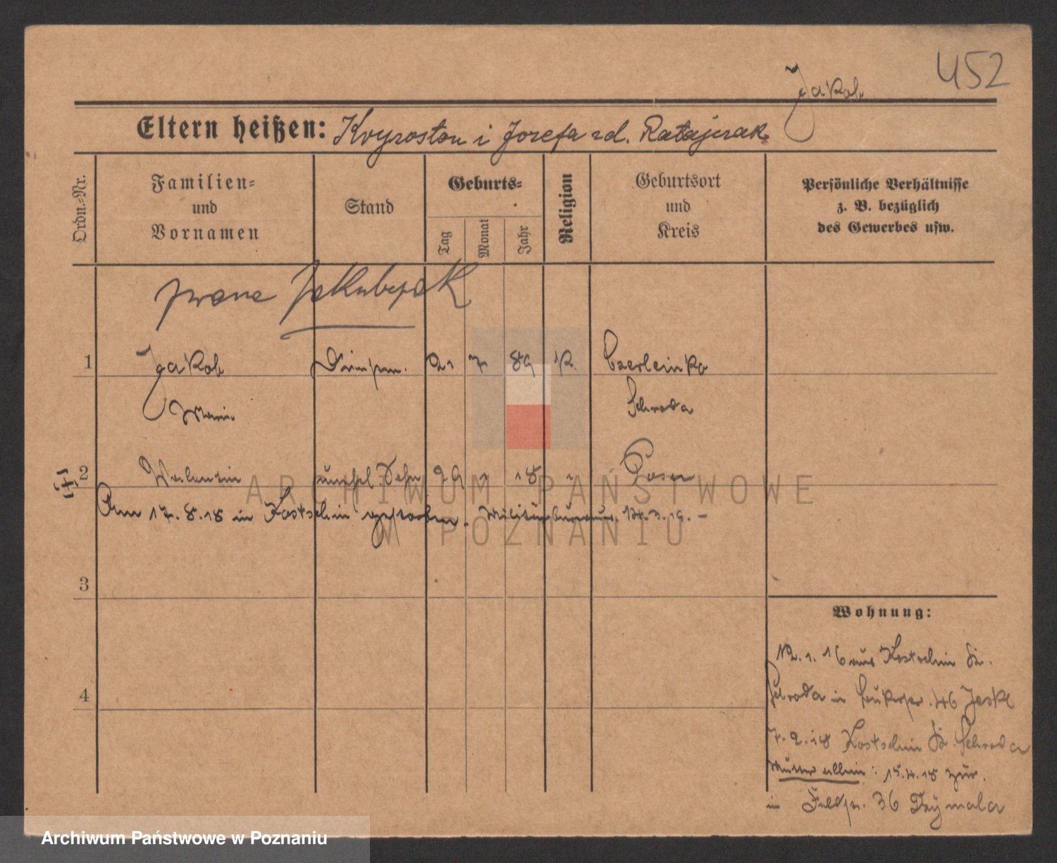 Podgląd karty osobowej dostępny jest po kliknięciu na nazwisko lub ikonkę karty. Można dokonywać powiększenia (ikony na górze) lub przechodzić między kolejnymi skanami (strzałki po bokach).