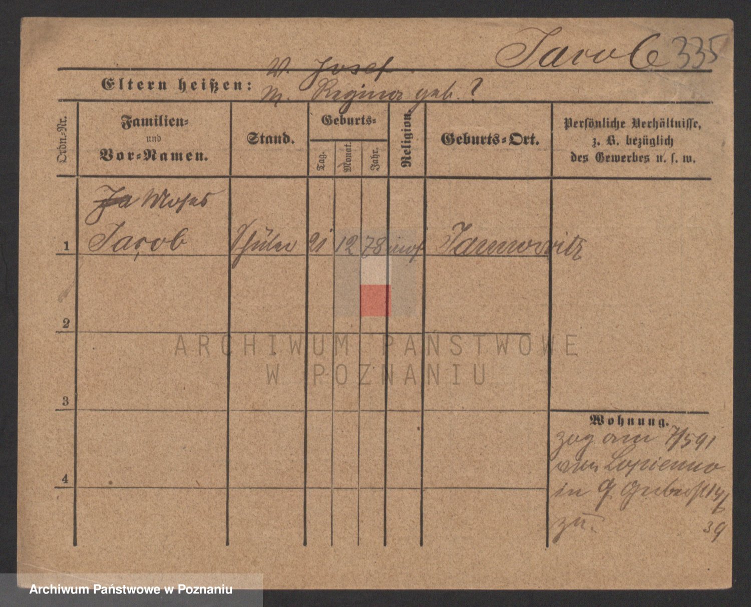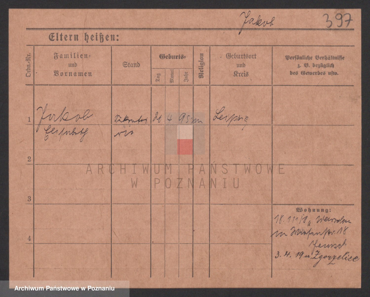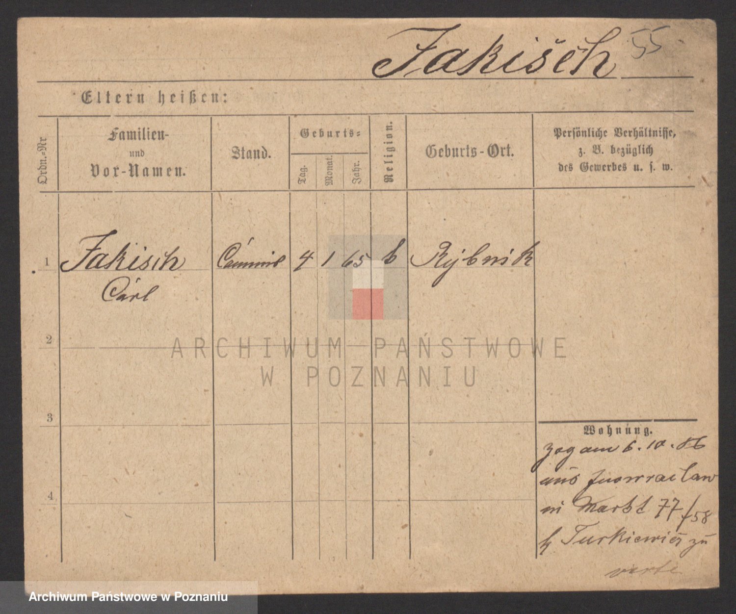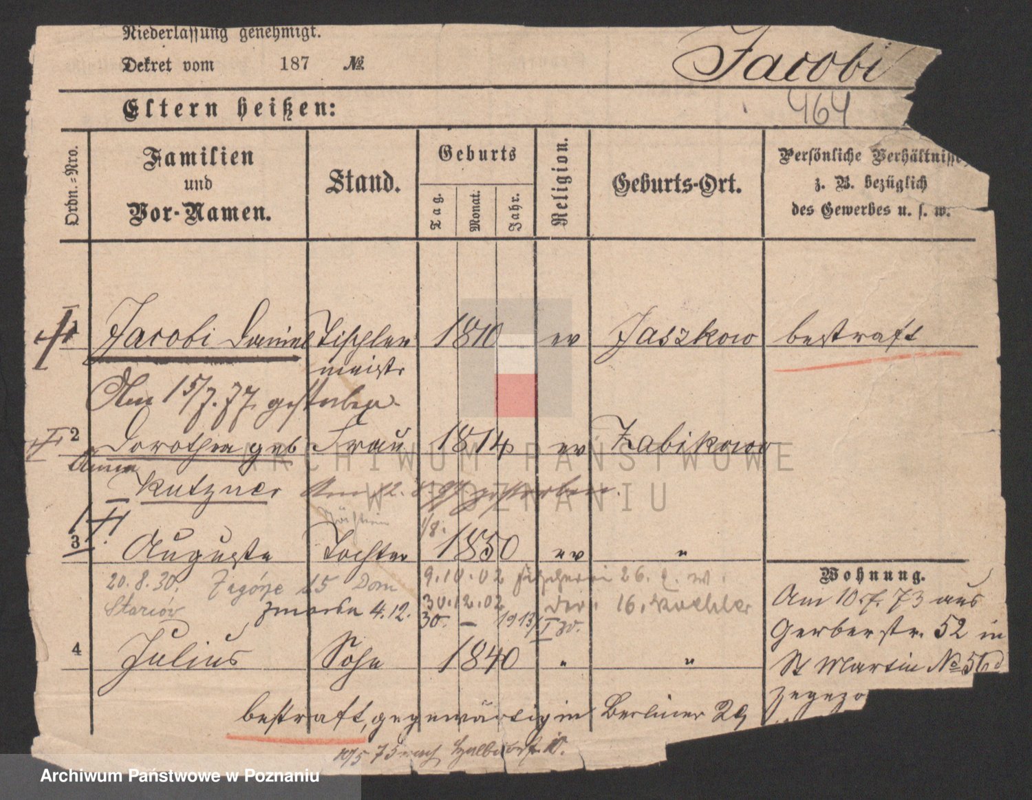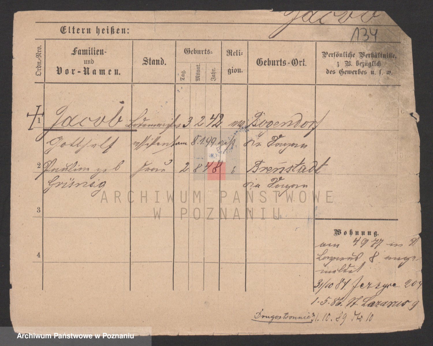 Podgląd karty osobowej dostępny jest po kliknięciu na nazwisko lub ikonkę karty. Można dokonywać powiększenia (ikony na górze) lub przechodzić między kolejnymi skanami (strzałki po bokach).