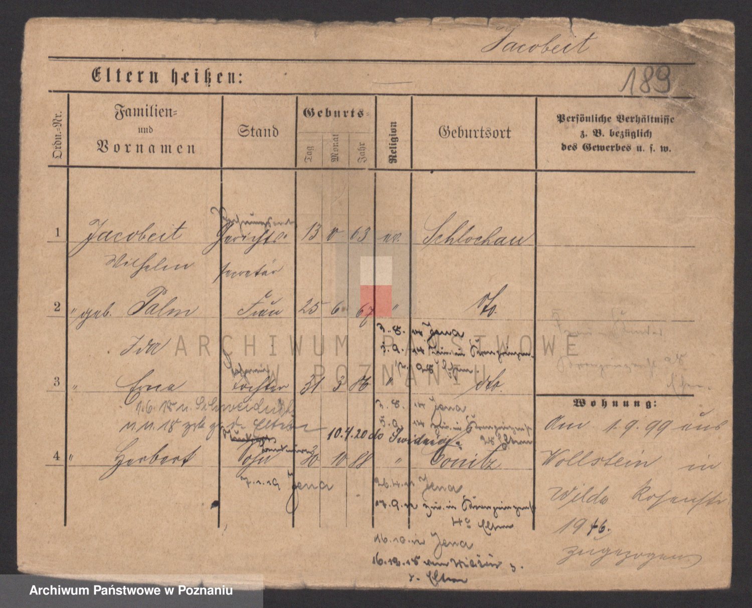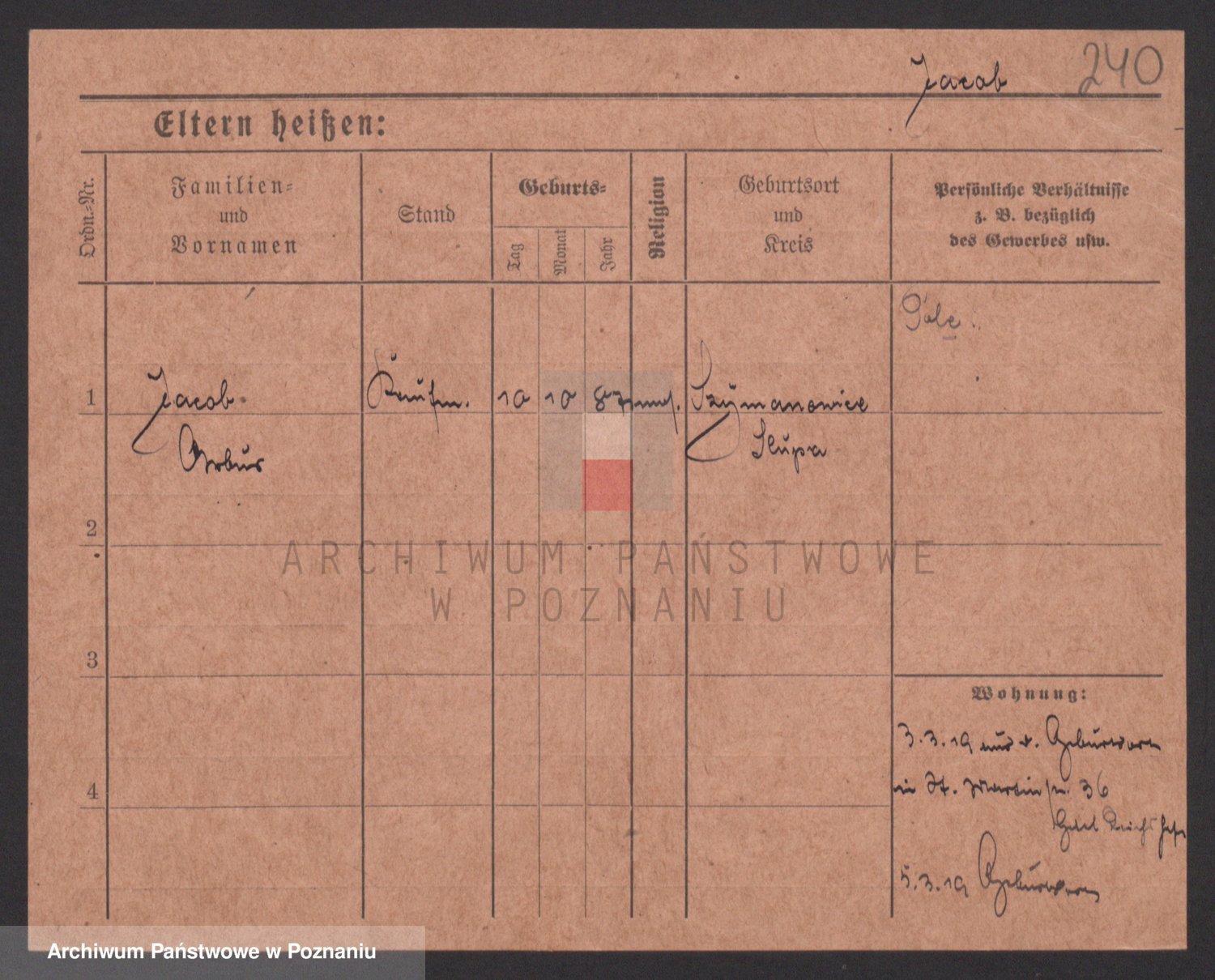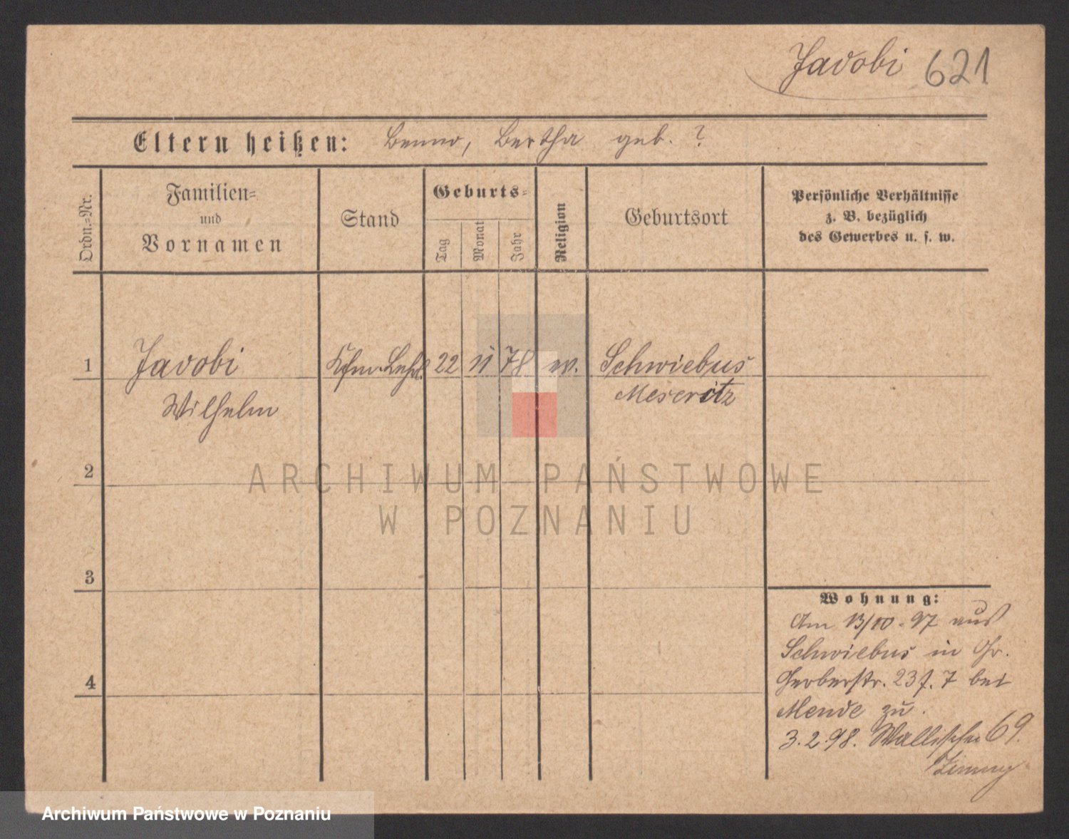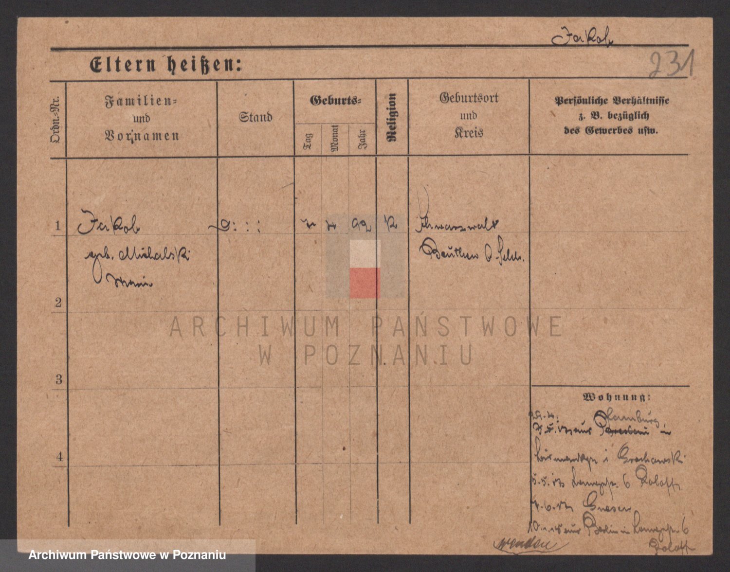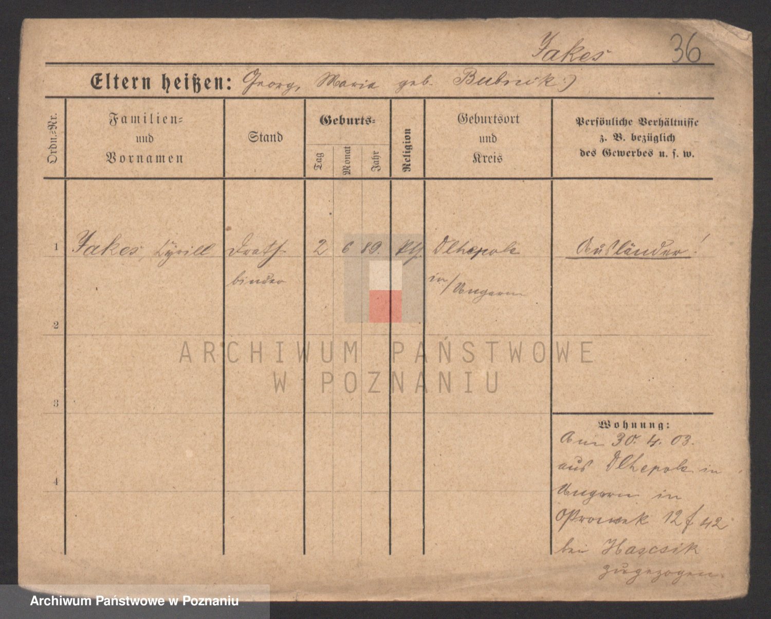 Podgląd karty osobowej dostępny jest po kliknięciu na nazwisko lub ikonkę karty. Można dokonywać powiększenia (ikony na górze) lub przechodzić między kolejnymi skanami (strzałki po bokach).