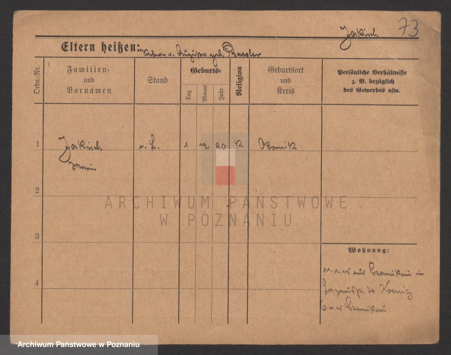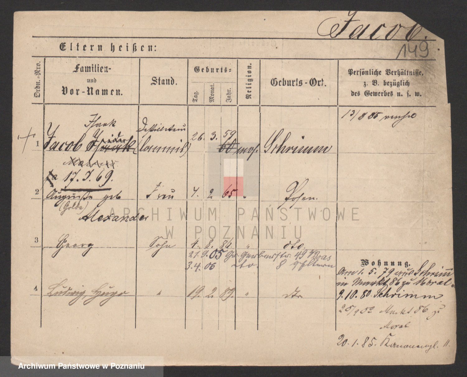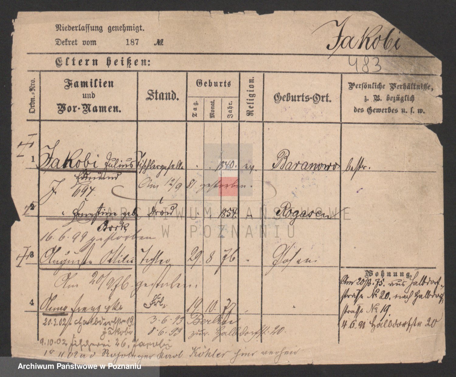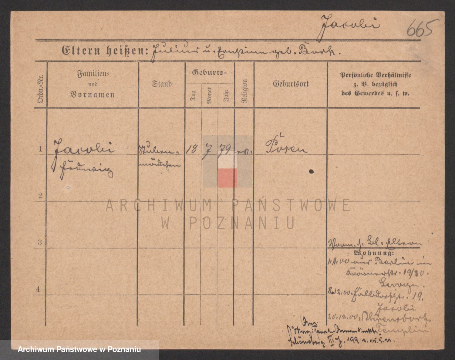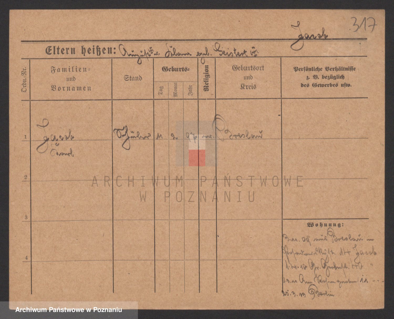 Podgląd karty osobowej dostępny jest po kliknięciu na nazwisko lub ikonkę karty. Można dokonywać powiększenia (ikony na górze) lub przechodzić między kolejnymi skanami (strzałki po bokach).