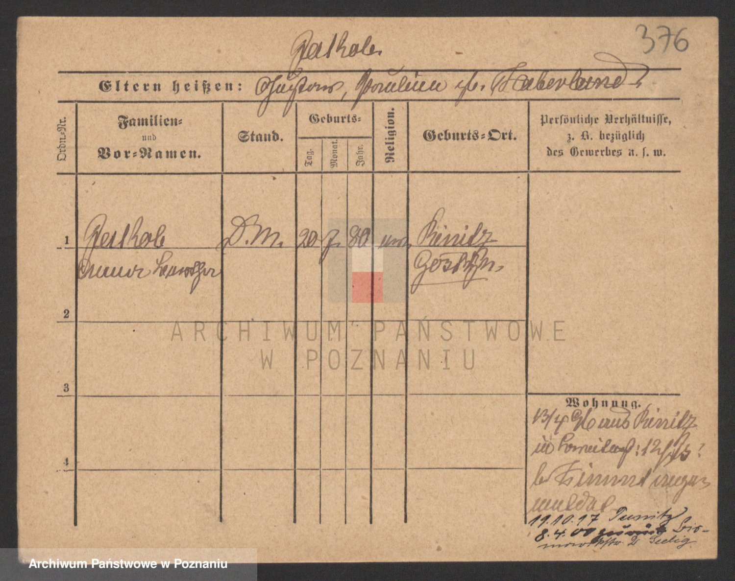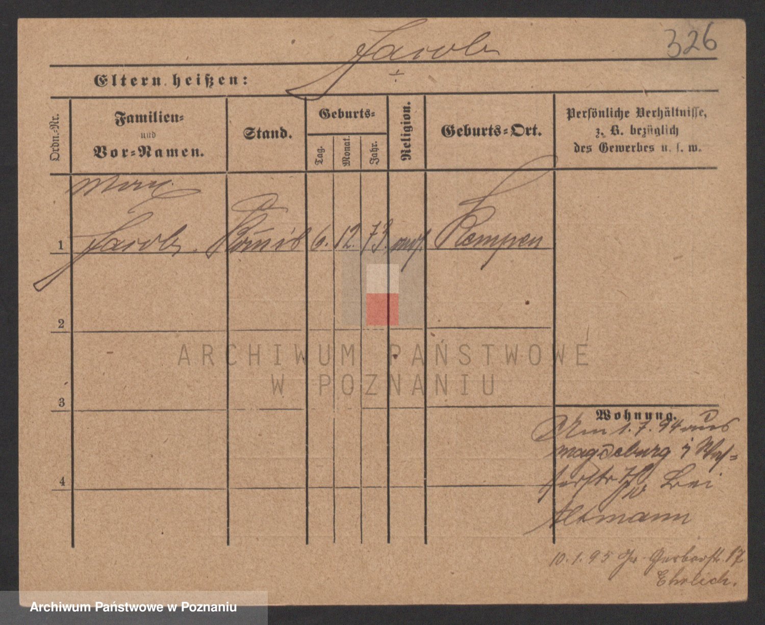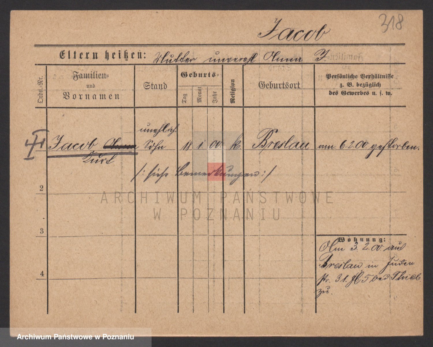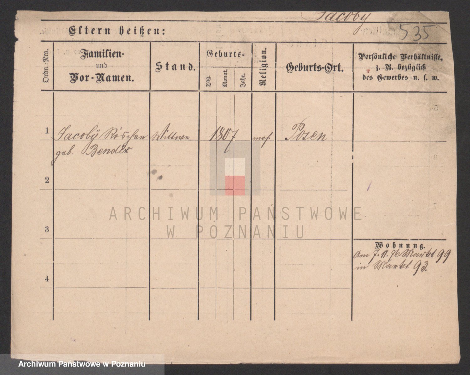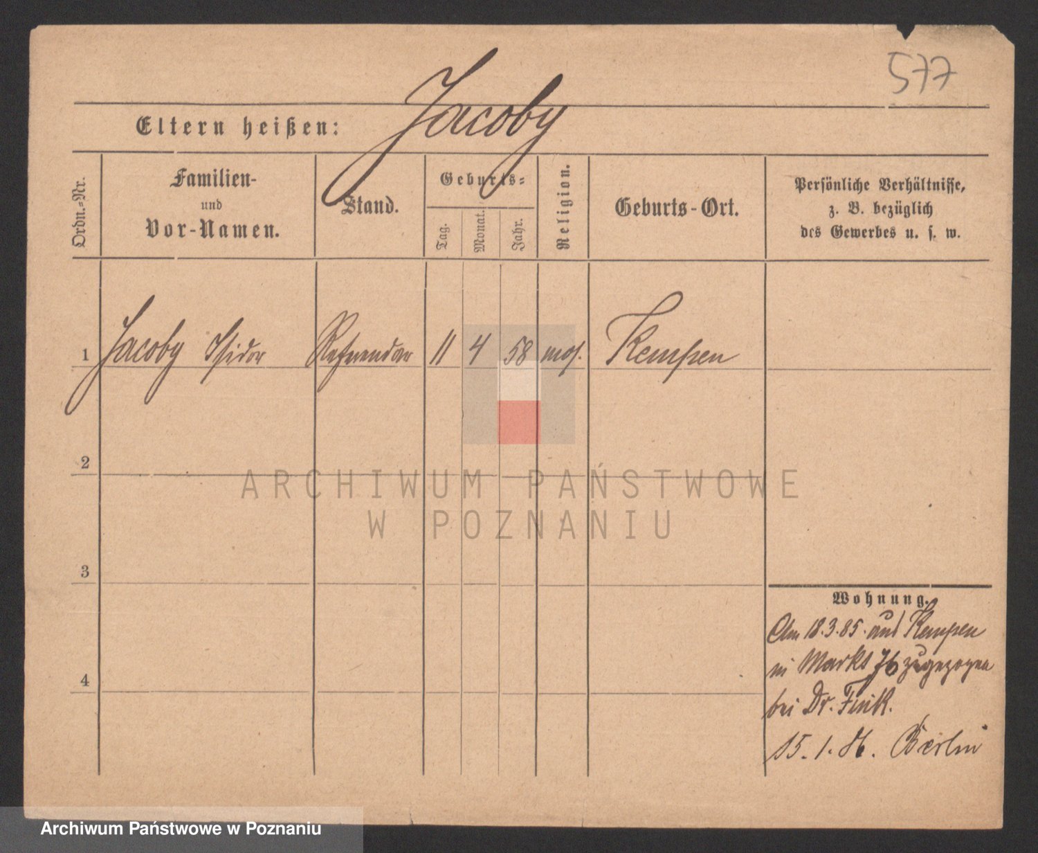 Podgląd karty osobowej dostępny jest po kliknięciu na nazwisko lub ikonkę karty. Można dokonywać powiększenia (ikony na górze) lub przechodzić między kolejnymi skanami (strzałki po bokach).