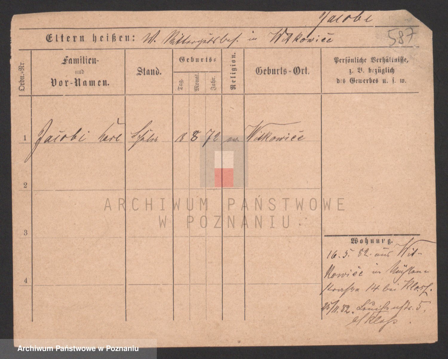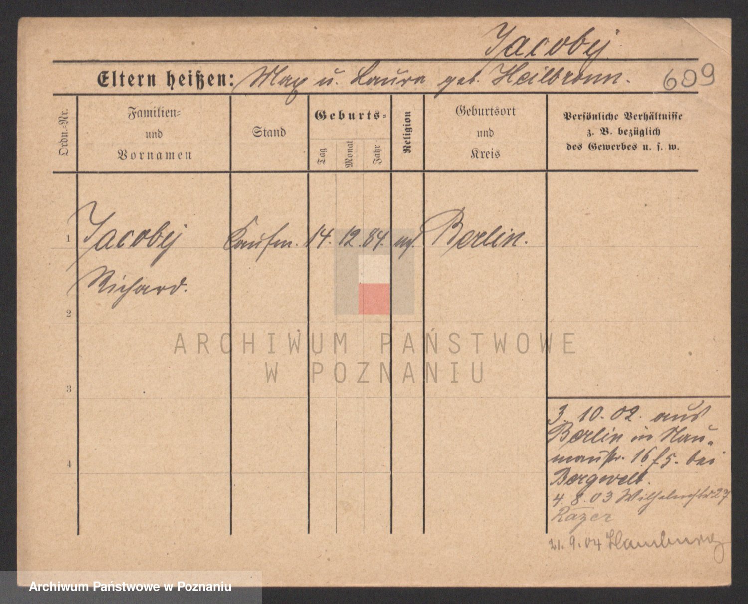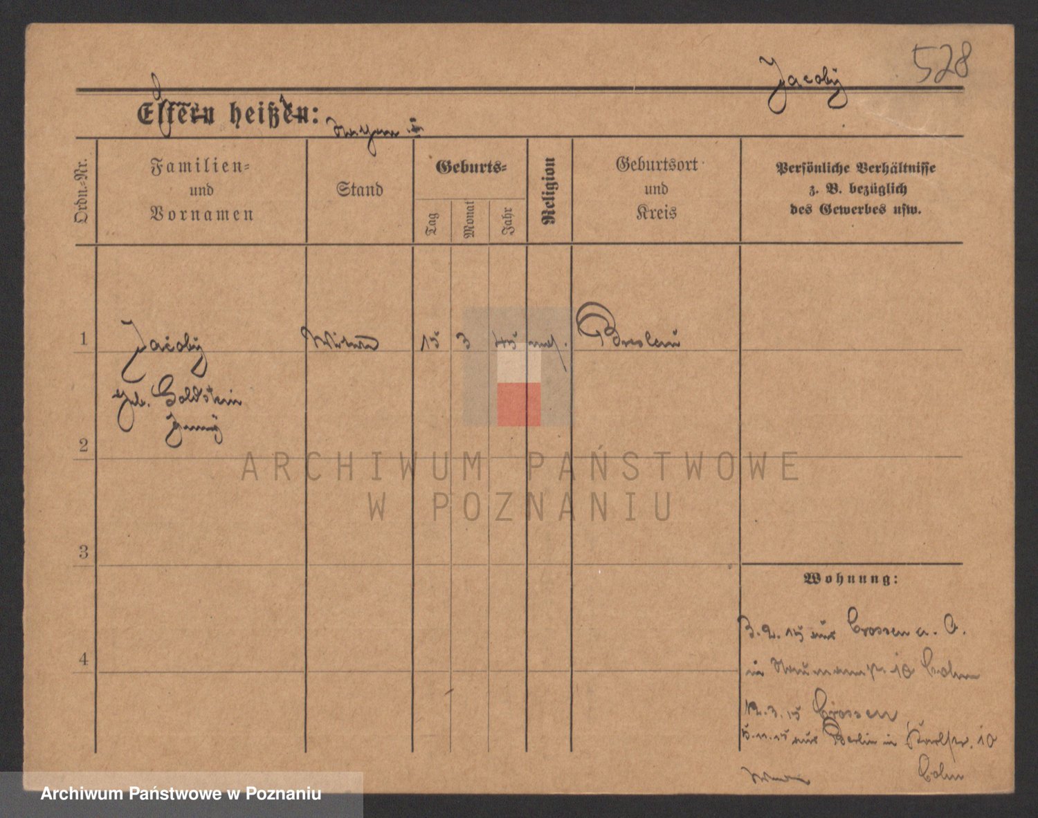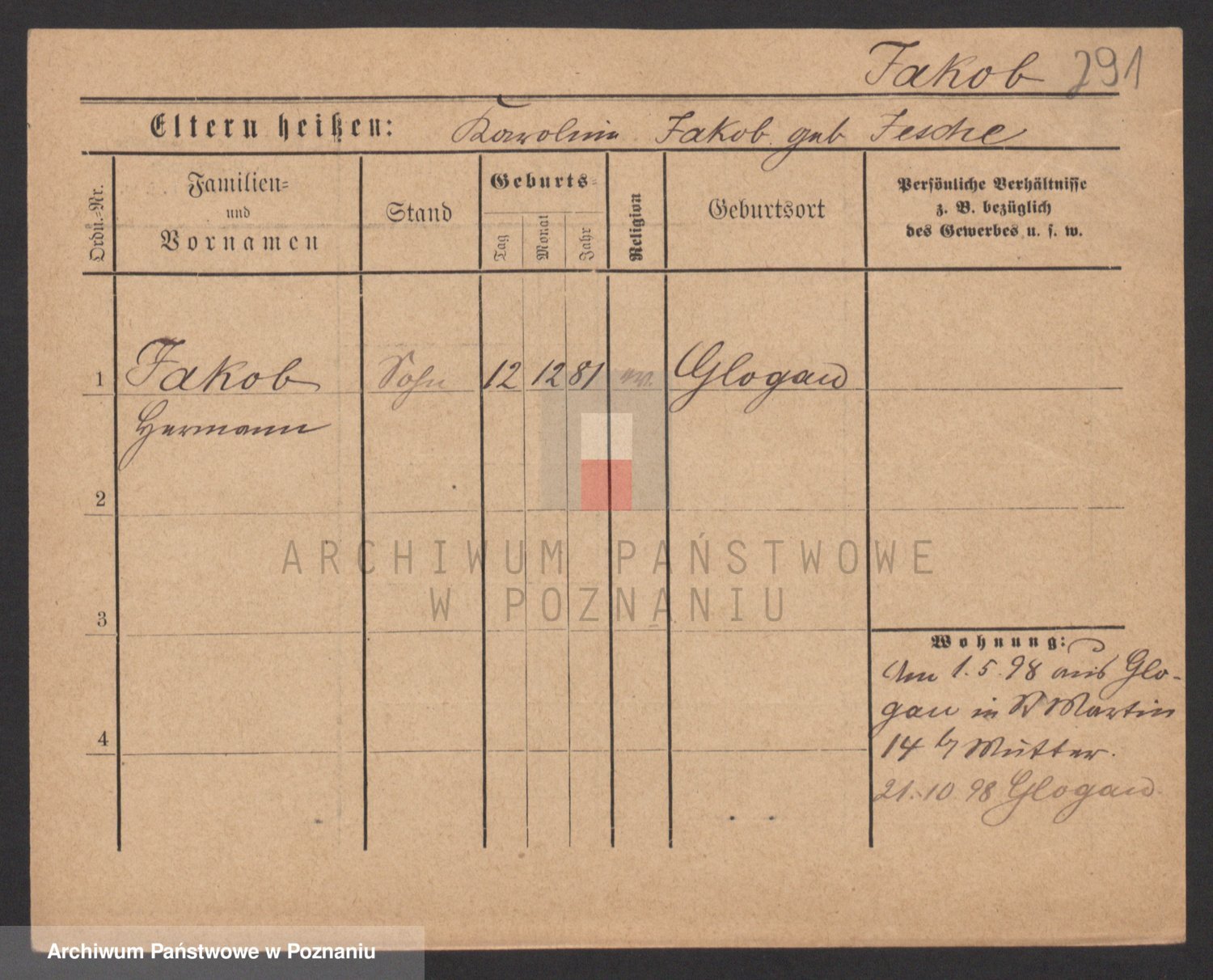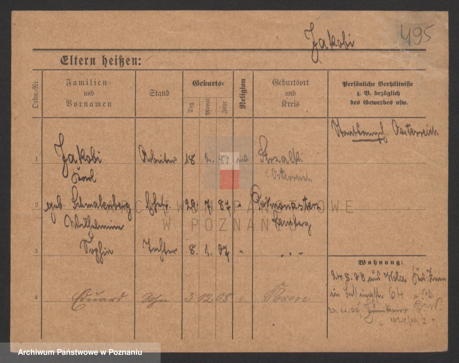 Podgląd karty osobowej dostępny jest po kliknięciu na nazwisko lub ikonkę karty. Można dokonywać powiększenia (ikony na górze) lub przechodzić między kolejnymi skanami (strzałki po bokach).