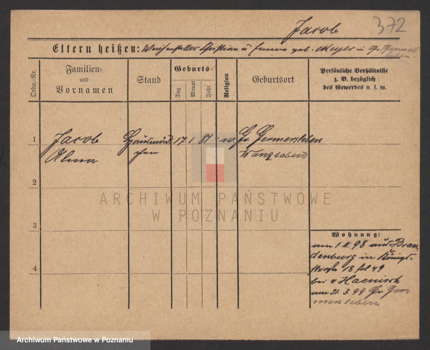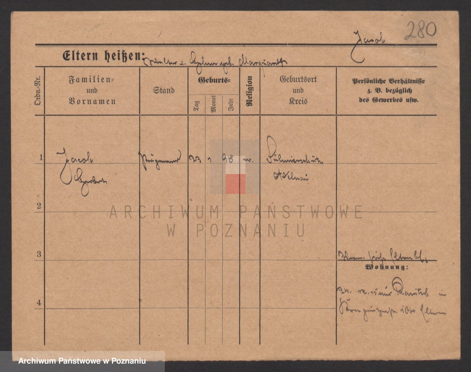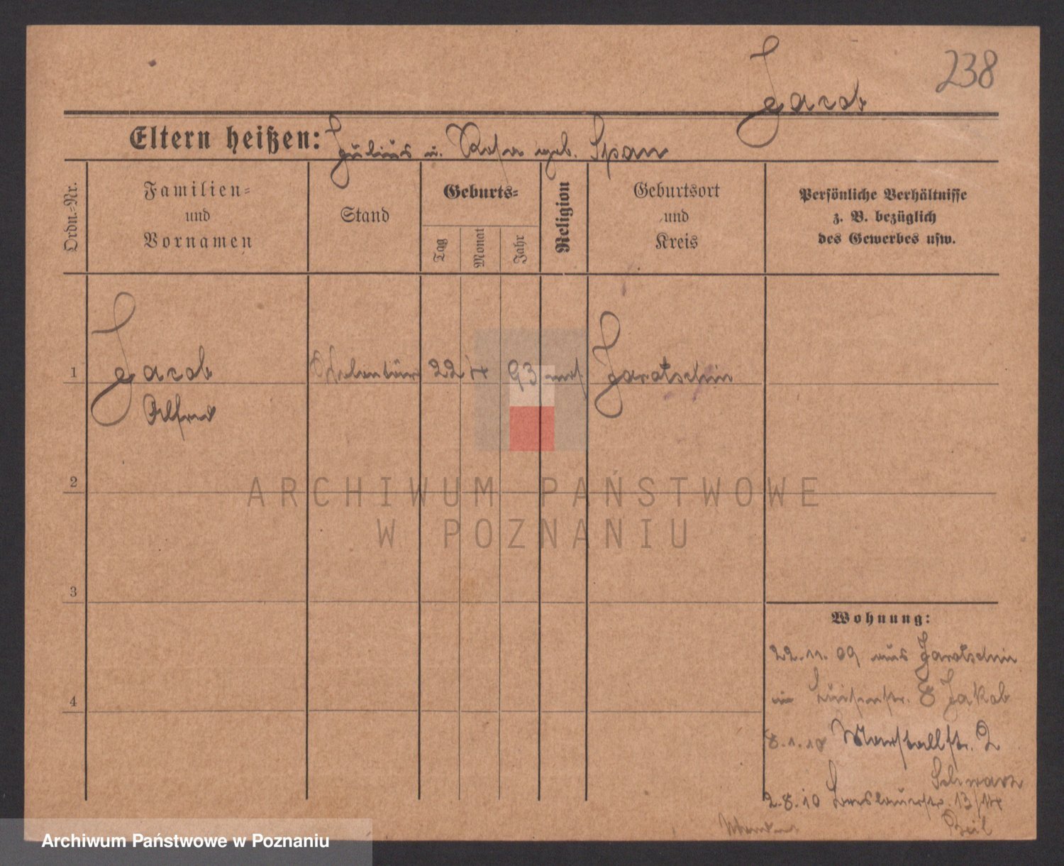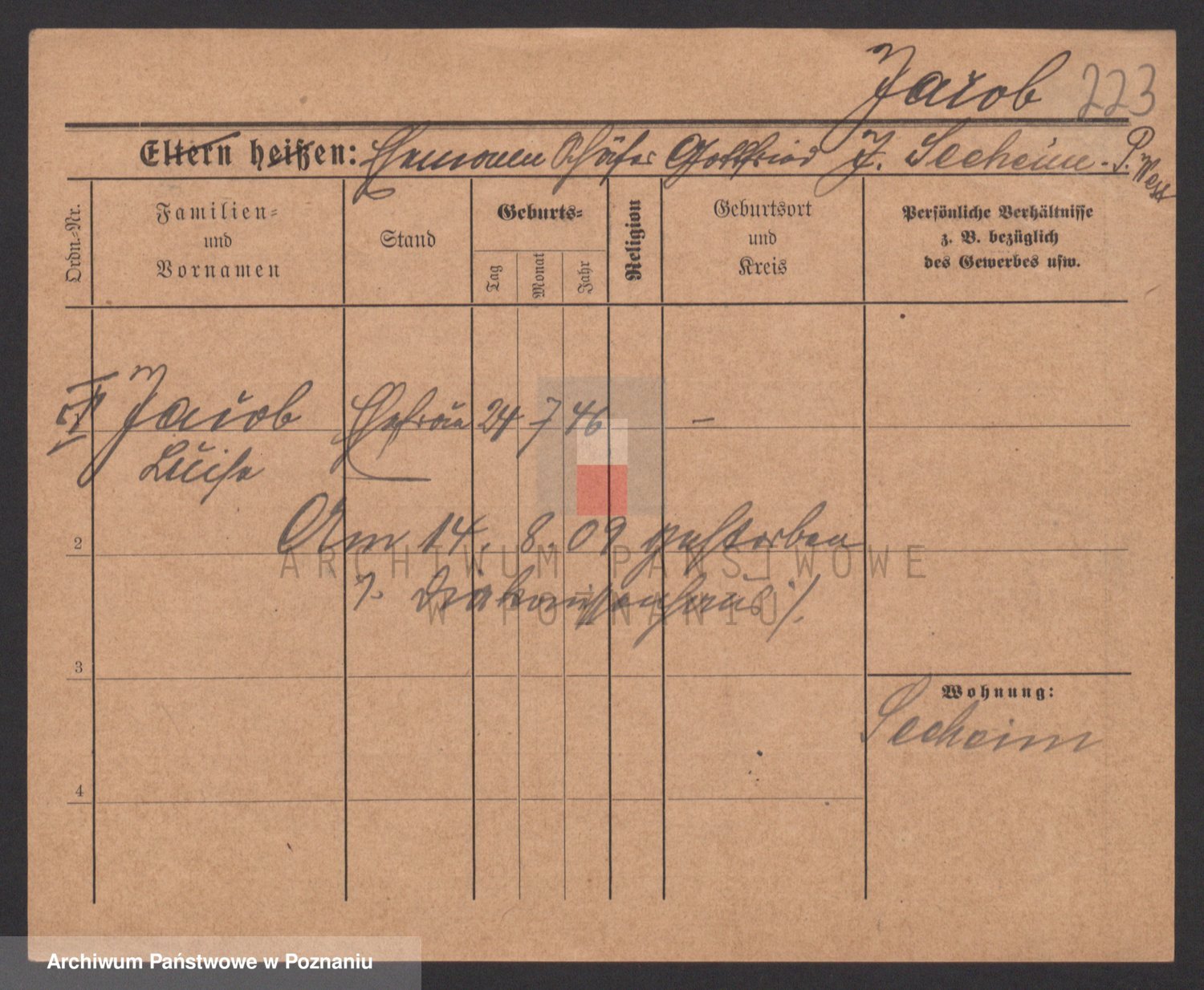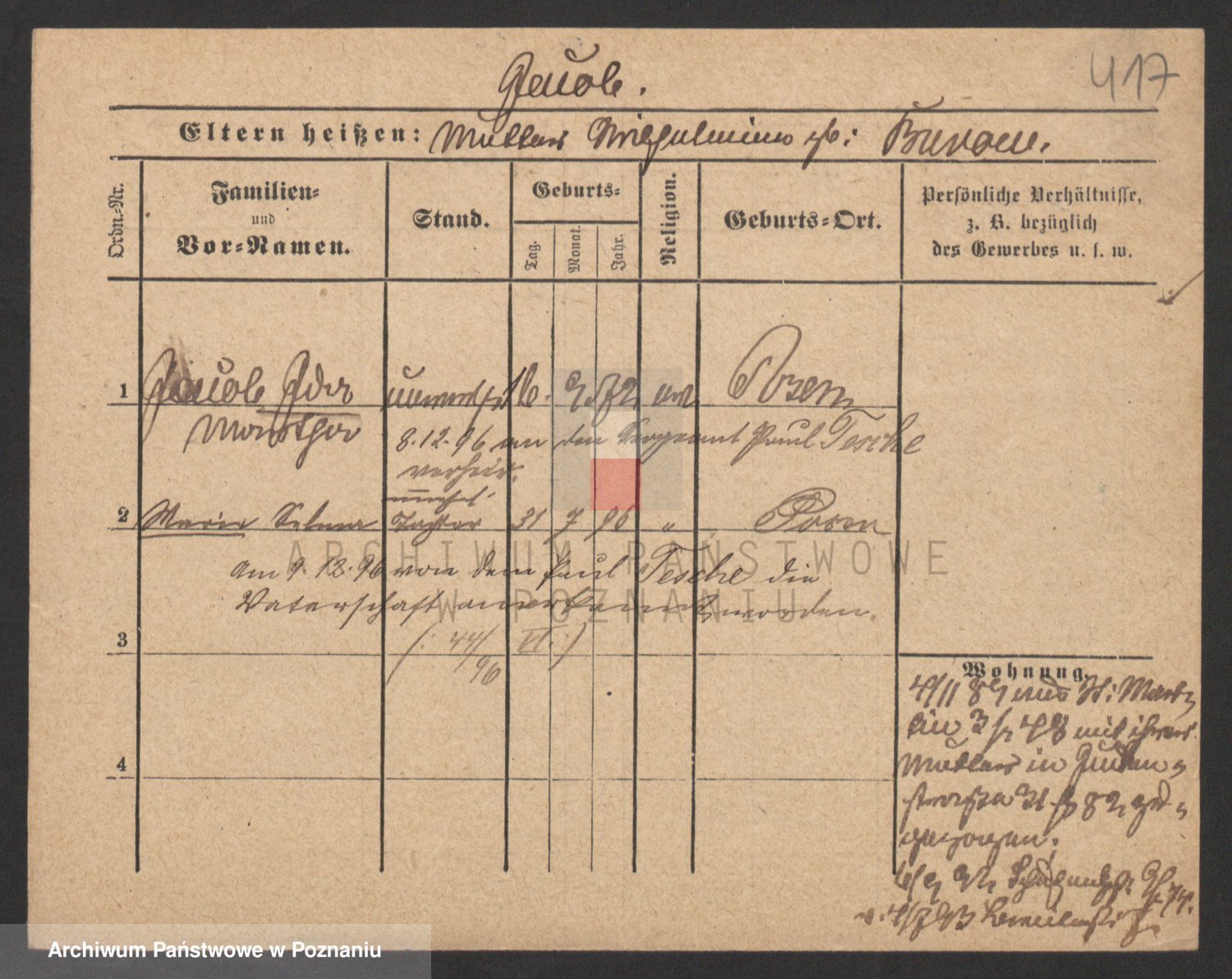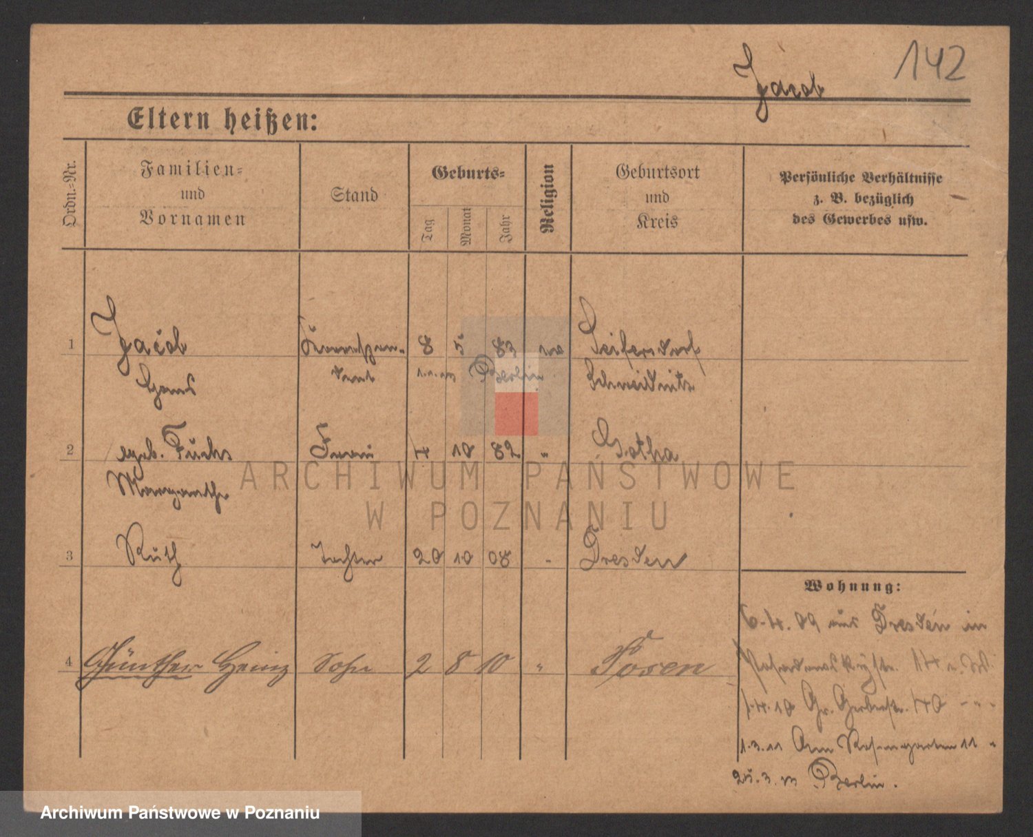 Podgląd karty osobowej dostępny jest po kliknięciu na nazwisko lub ikonkę karty. Można dokonywać powiększenia (ikony na górze) lub przechodzić między kolejnymi skanami (strzałki po bokach).