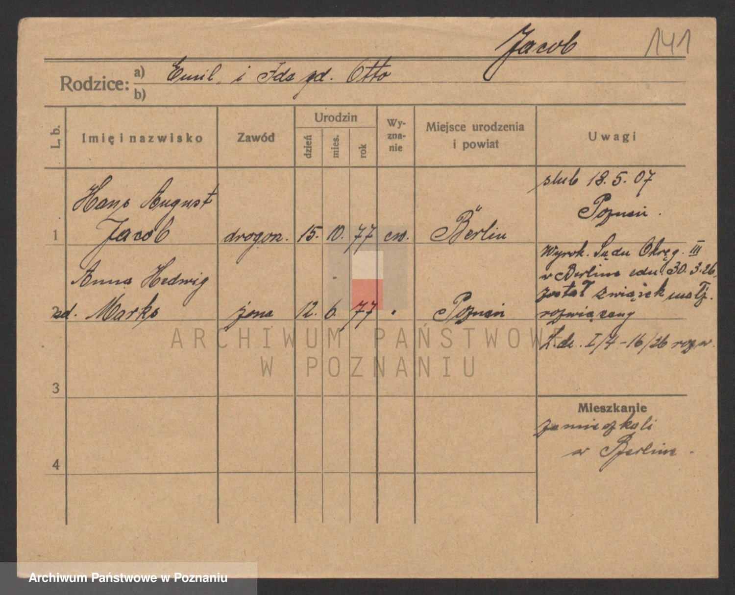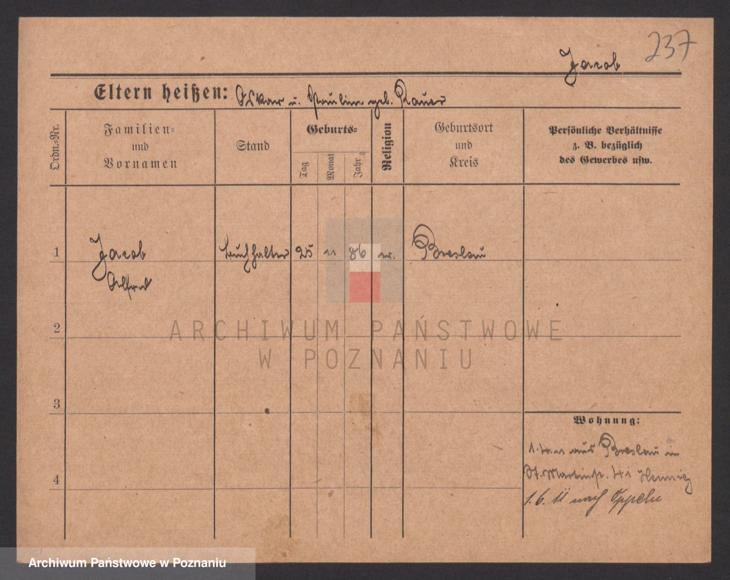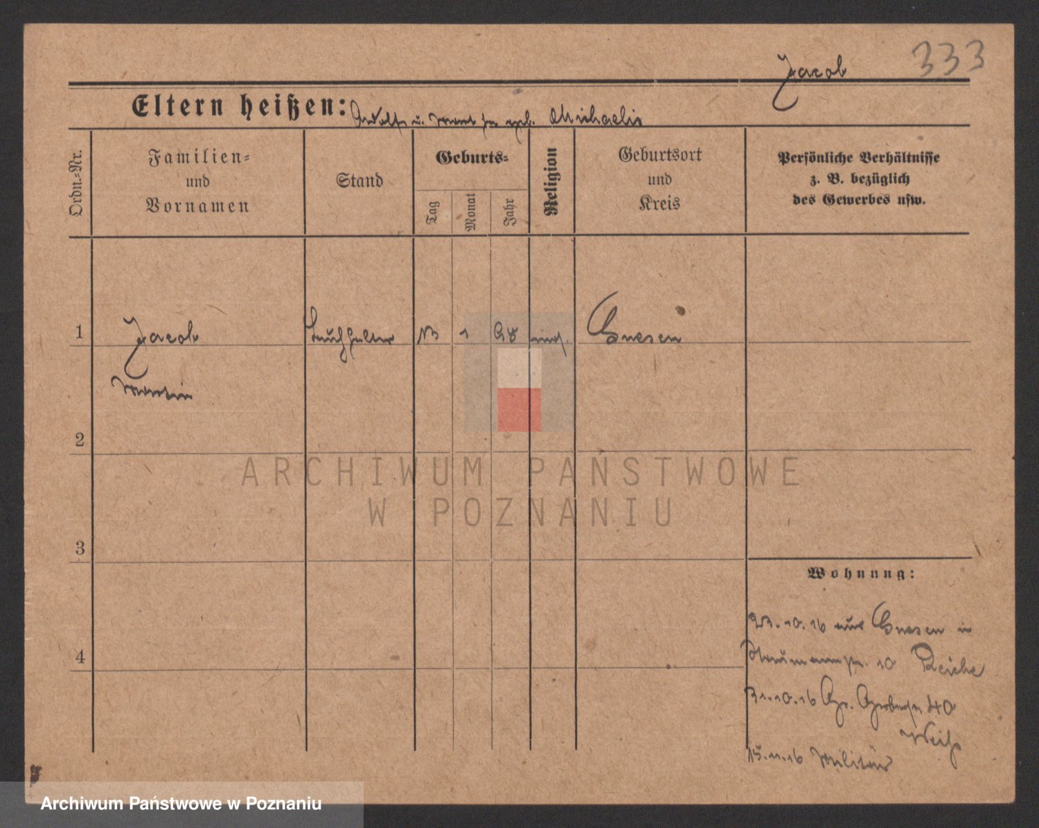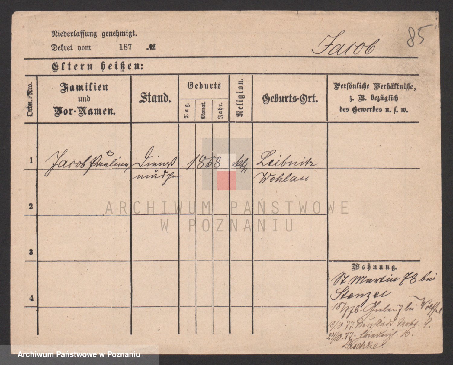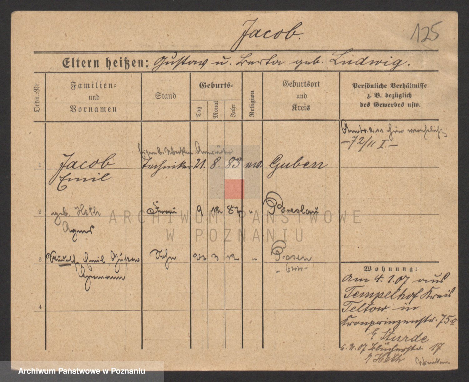 Podgląd karty osobowej dostępny jest po kliknięciu na nazwisko lub ikonkę karty. Można dokonywać powiększenia (ikony na górze) lub przechodzić między kolejnymi skanami (strzałki po bokach).