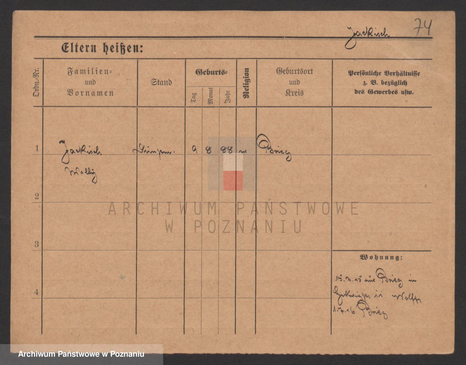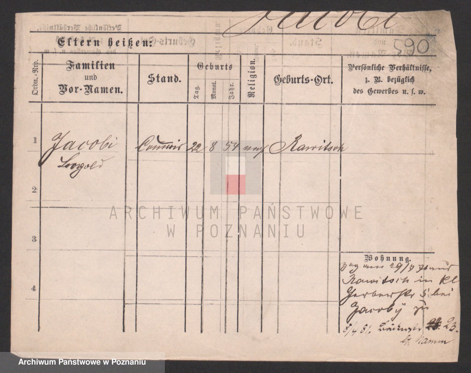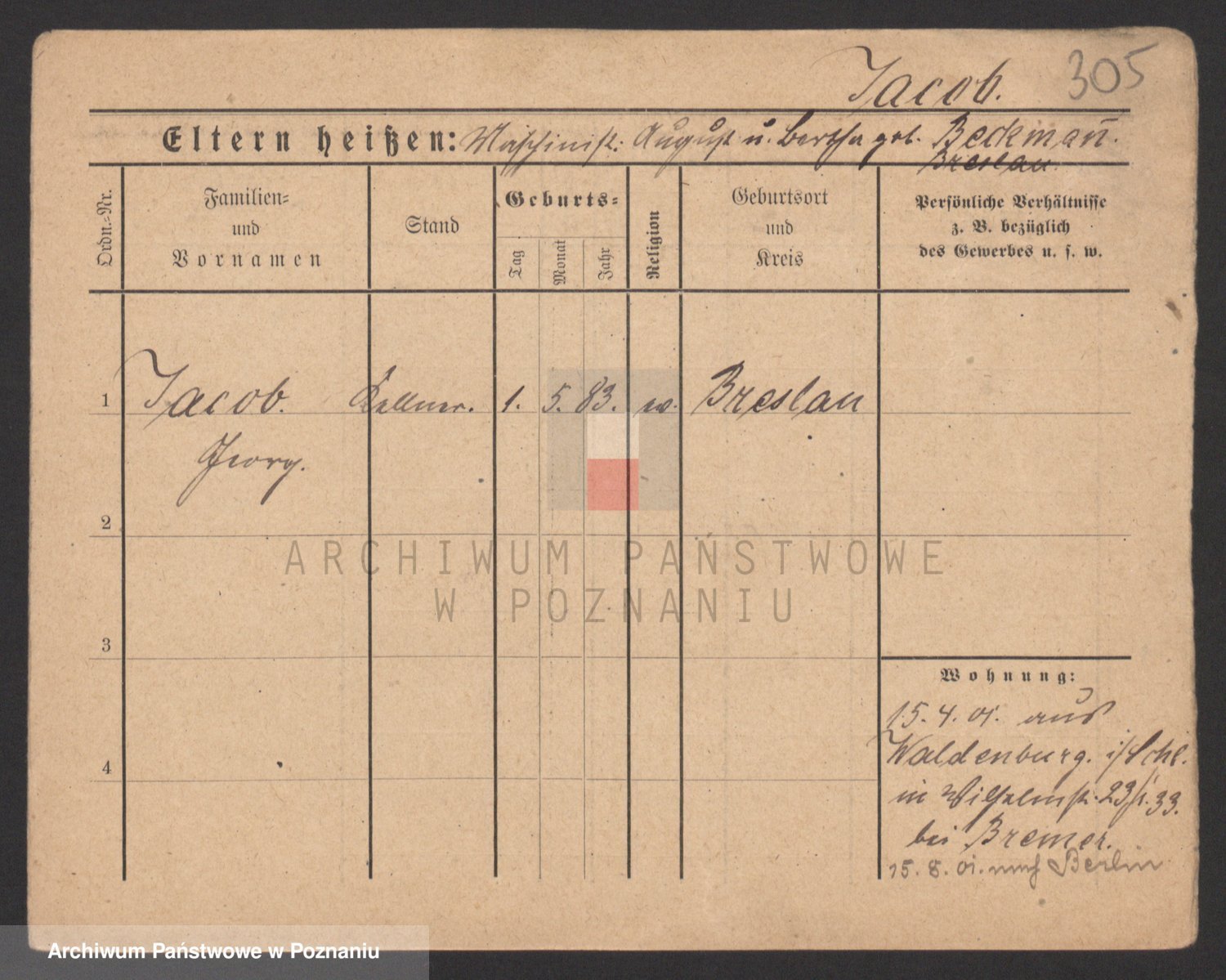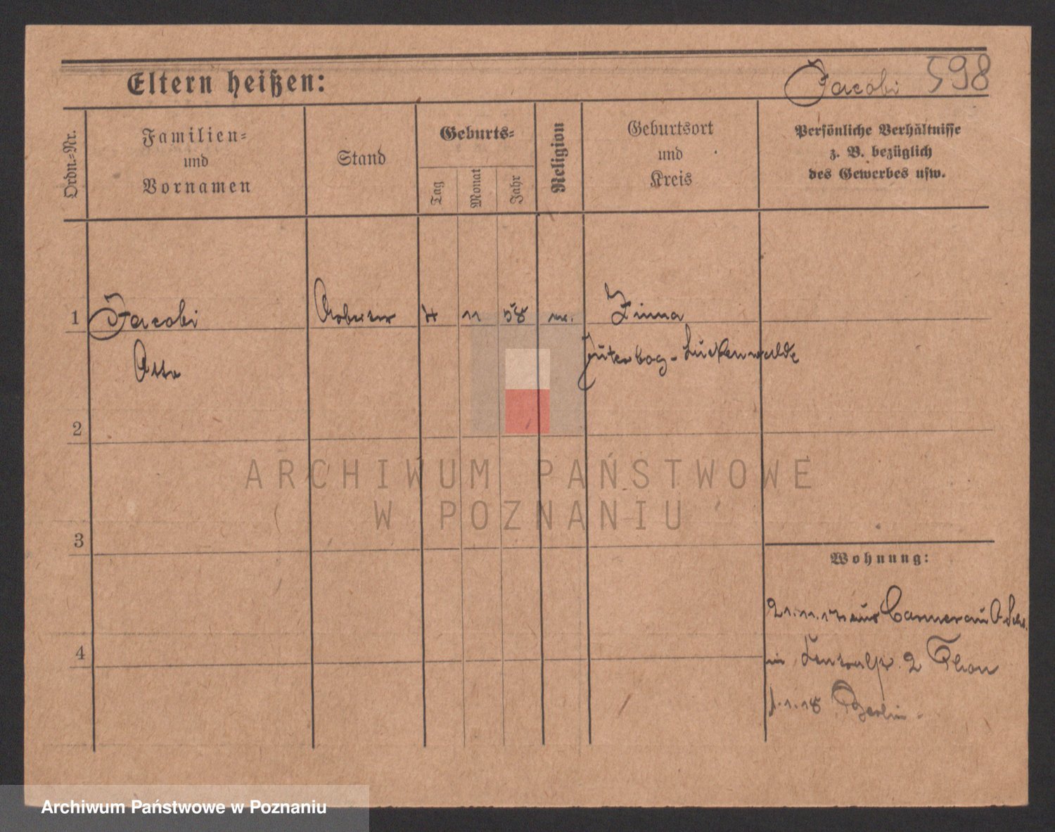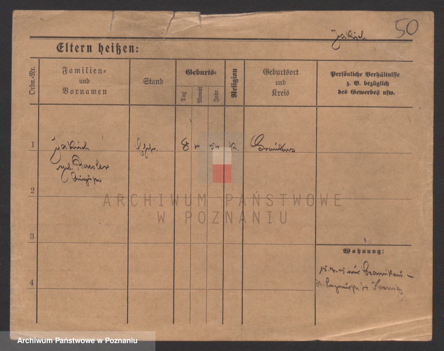 Podgląd karty osobowej dostępny jest po kliknięciu na nazwisko lub ikonkę karty. Można dokonywać powiększenia (ikony na górze) lub przechodzić między kolejnymi skanami (strzałki po bokach).