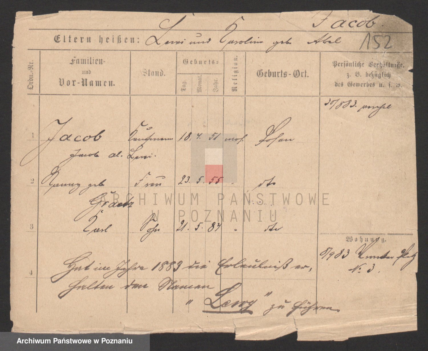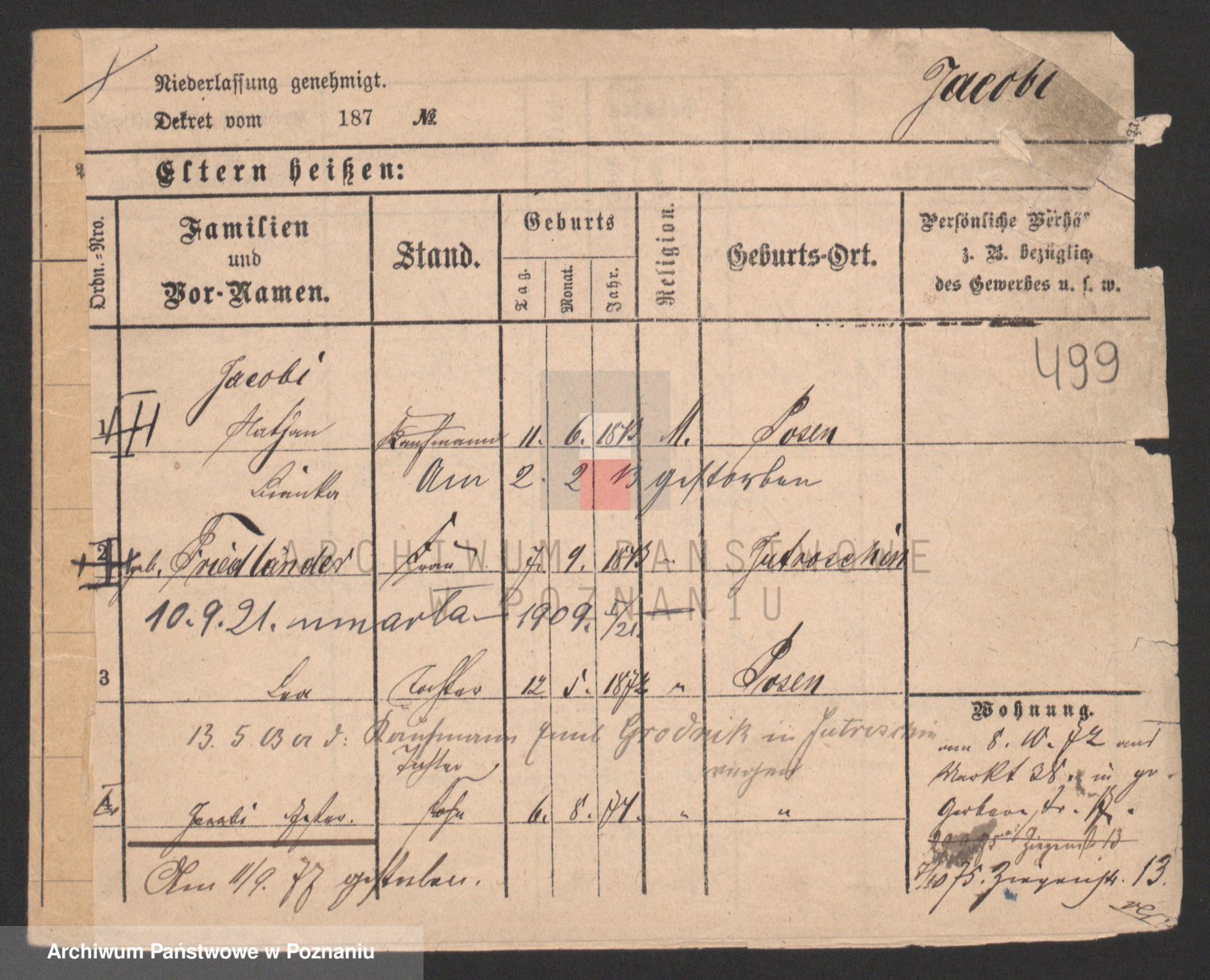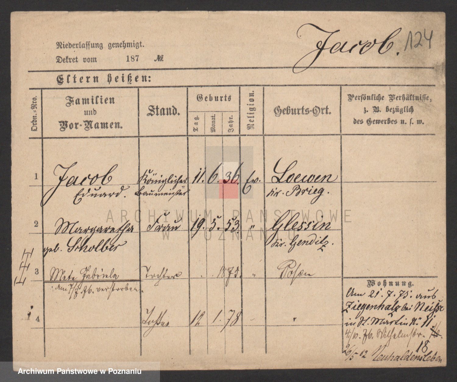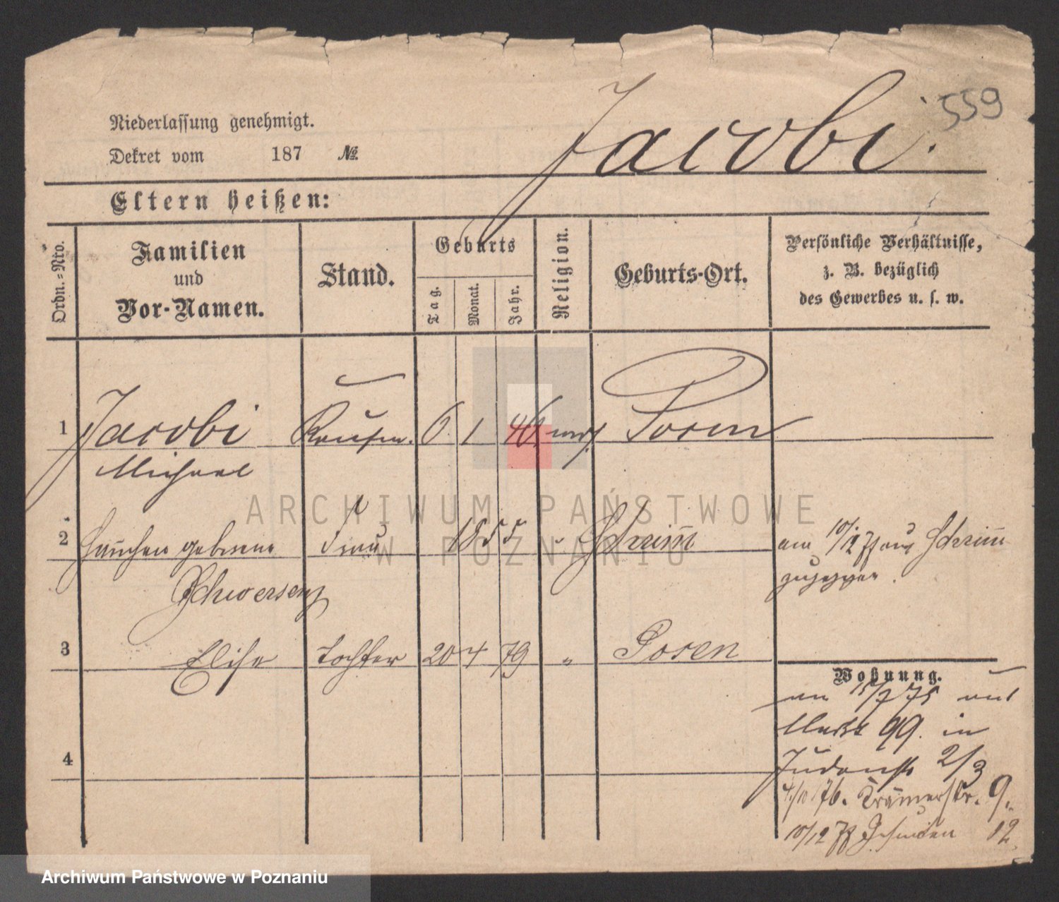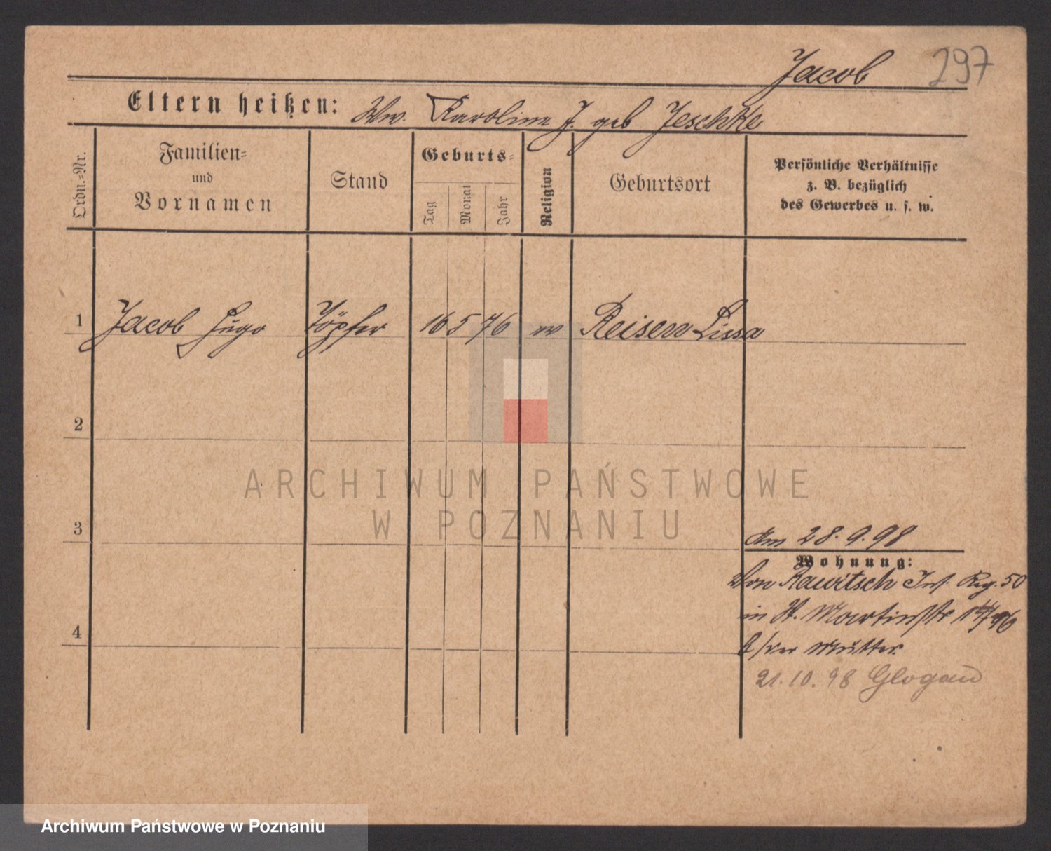 Podgląd karty osobowej dostępny jest po kliknięciu na nazwisko lub ikonkę karty. Można dokonywać powiększenia (ikony na górze) lub przechodzić między kolejnymi skanami (strzałki po bokach).