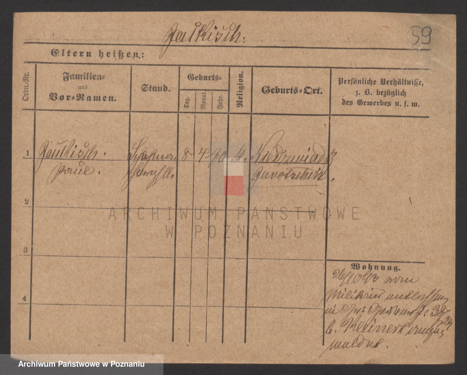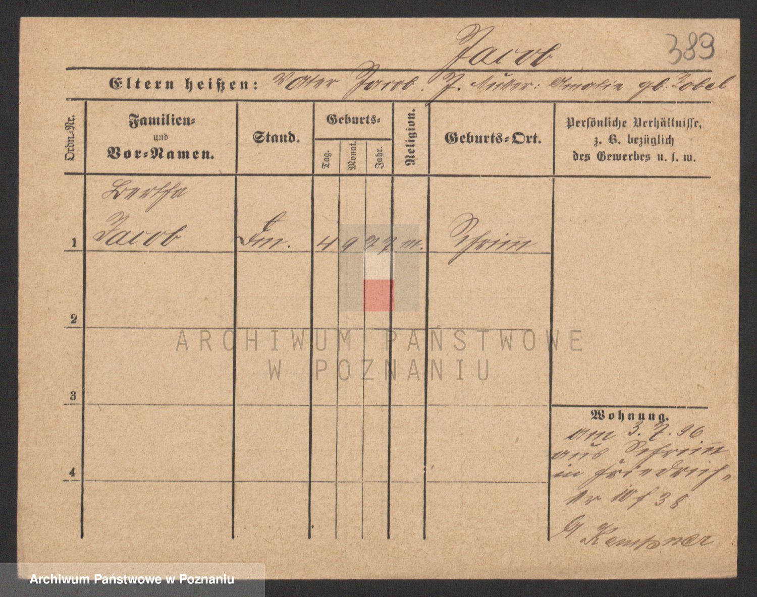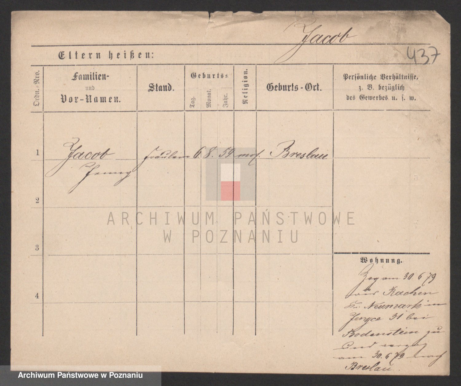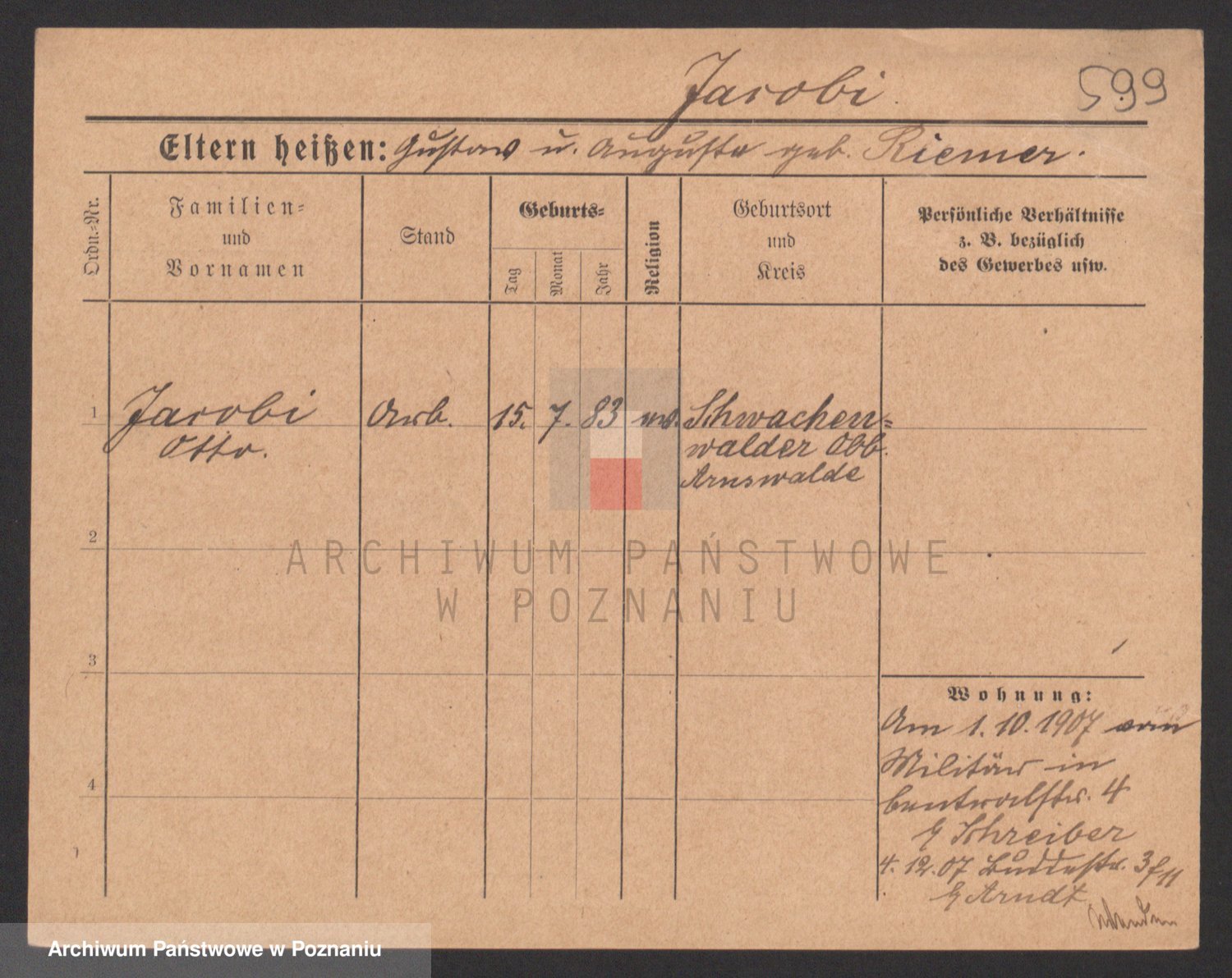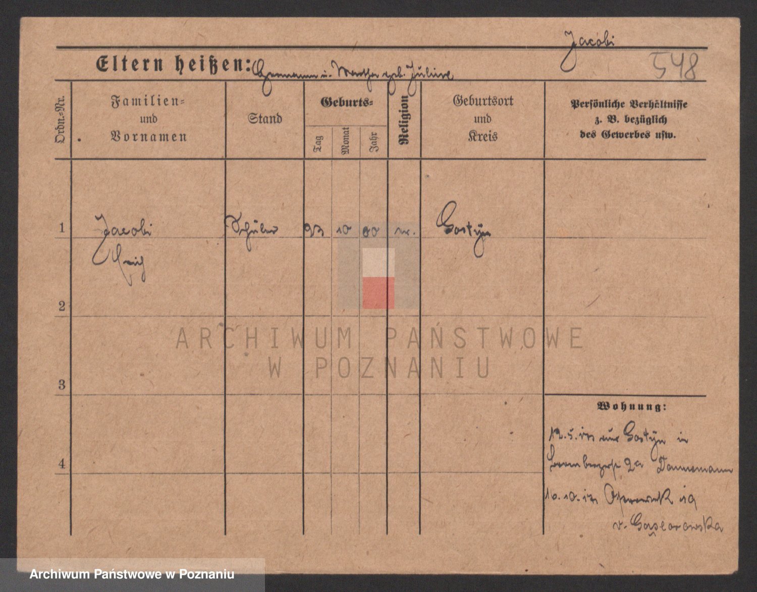 Podgląd karty osobowej dostępny jest po kliknięciu na nazwisko lub ikonkę karty. Można dokonywać powiększenia (ikony na górze) lub przechodzić między kolejnymi skanami (strzałki po bokach).
