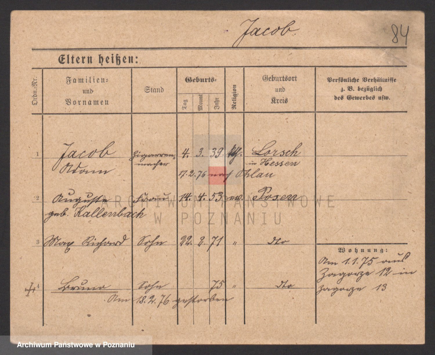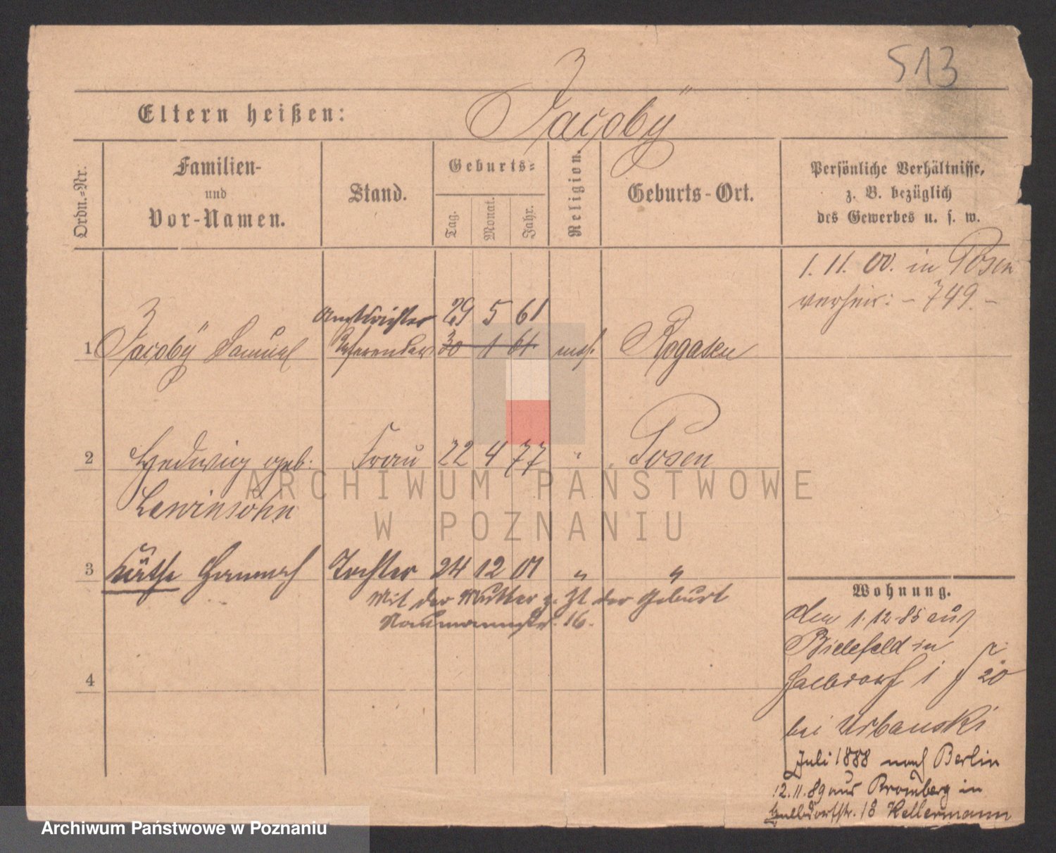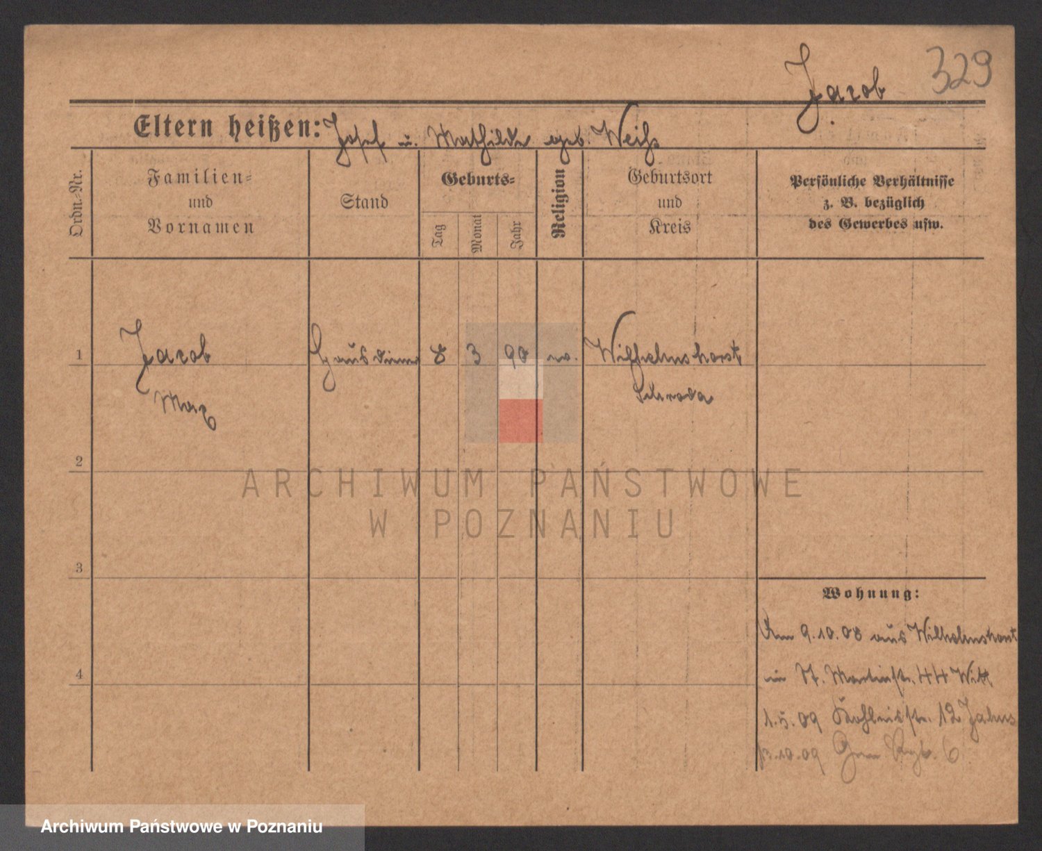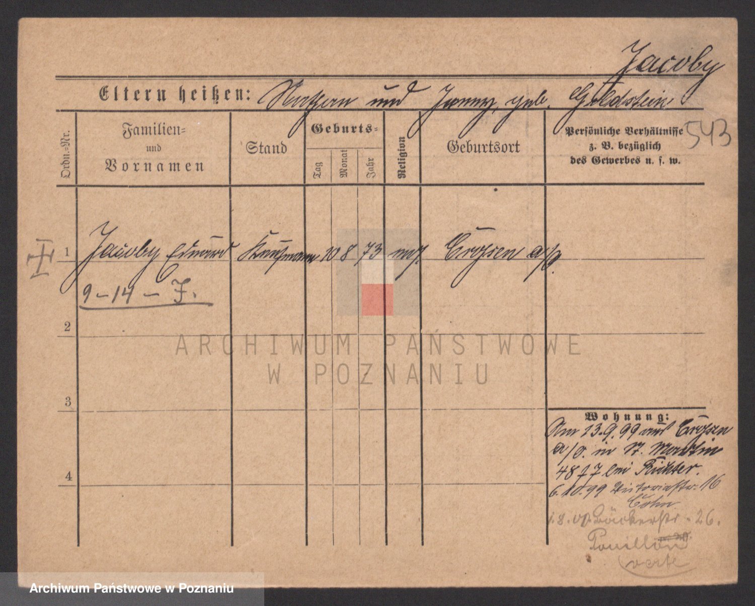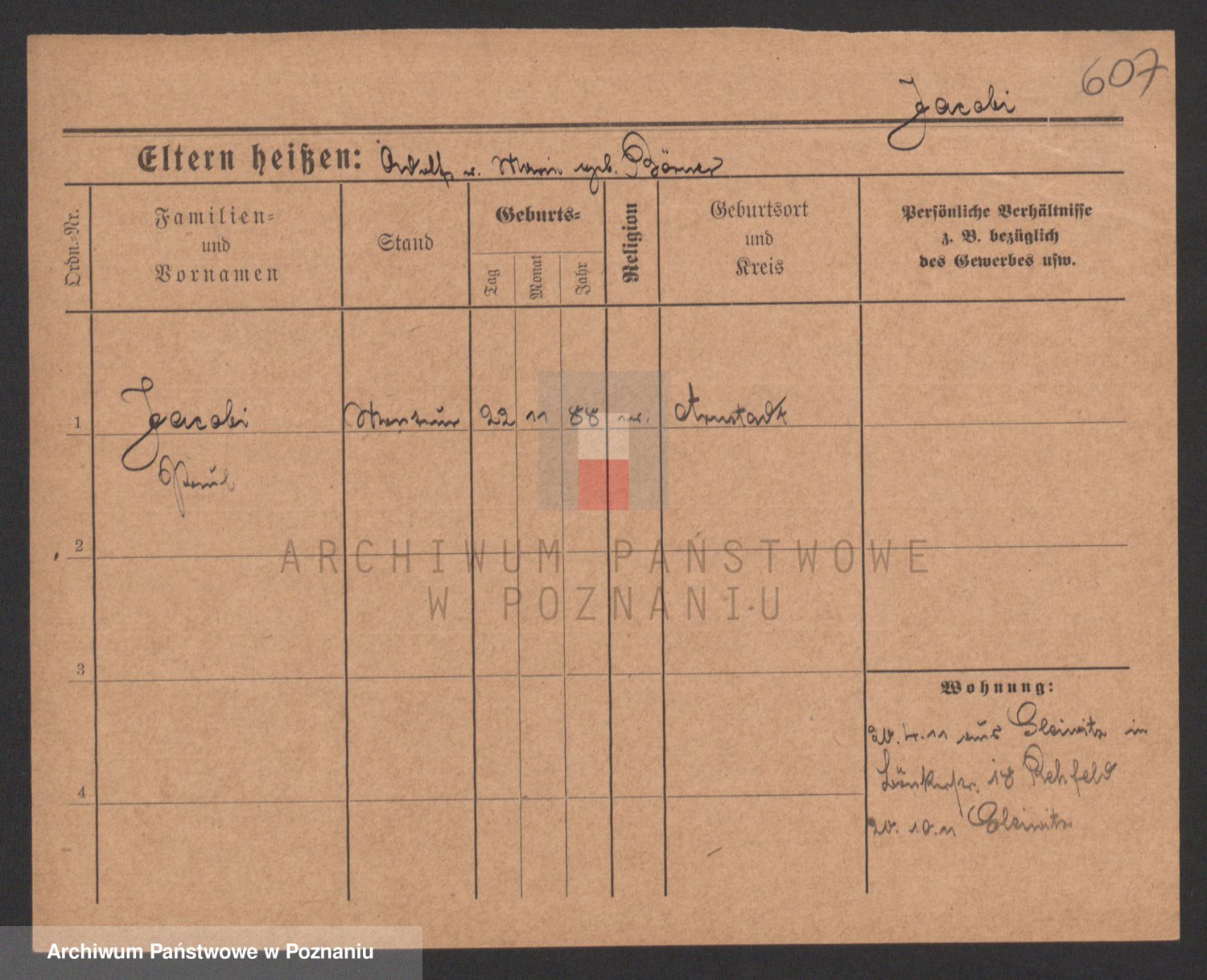 Podgląd karty osobowej dostępny jest po kliknięciu na nazwisko lub ikonkę karty. Można dokonywać powiększenia (ikony na górze) lub przechodzić między kolejnymi skanami (strzałki po bokach).
