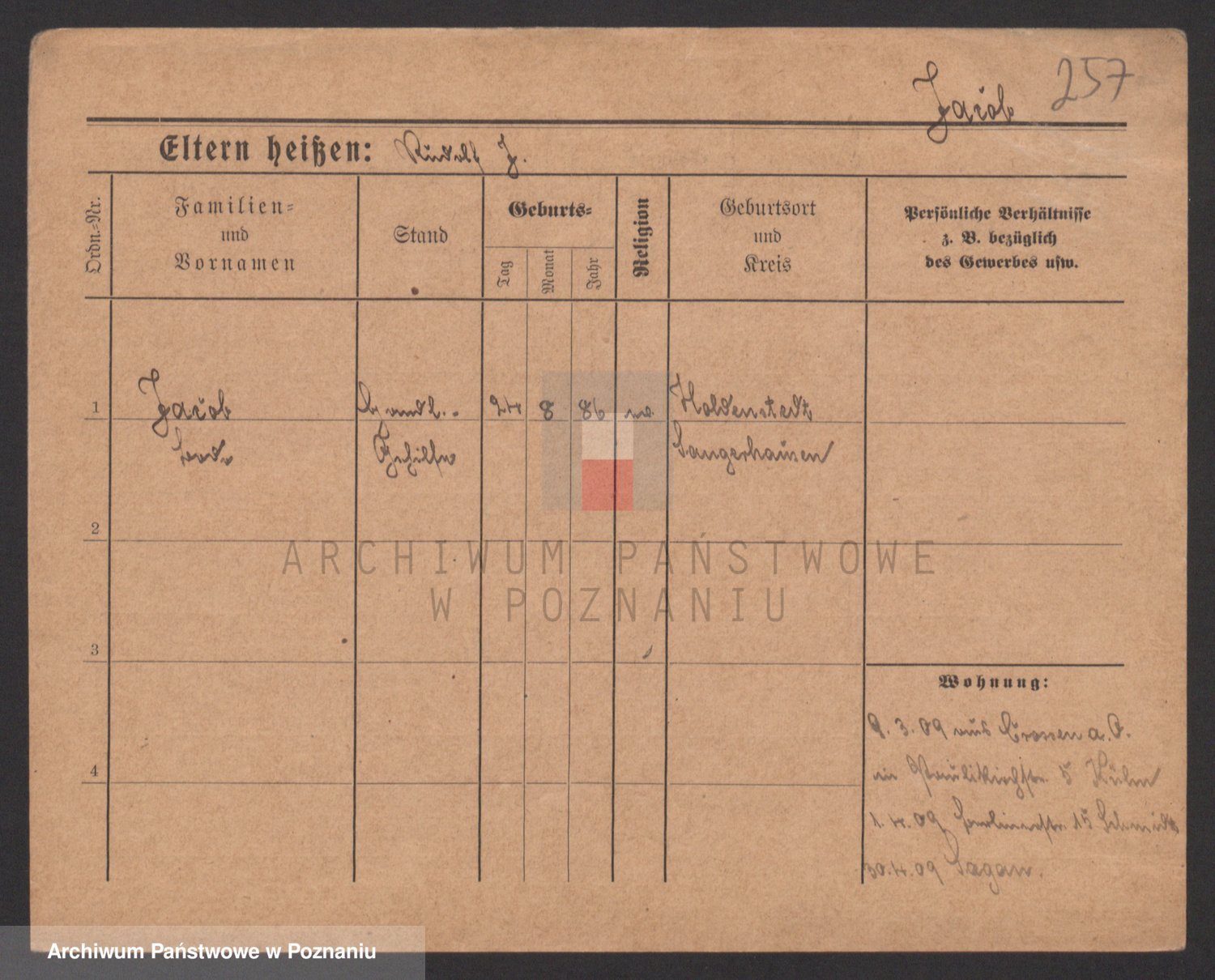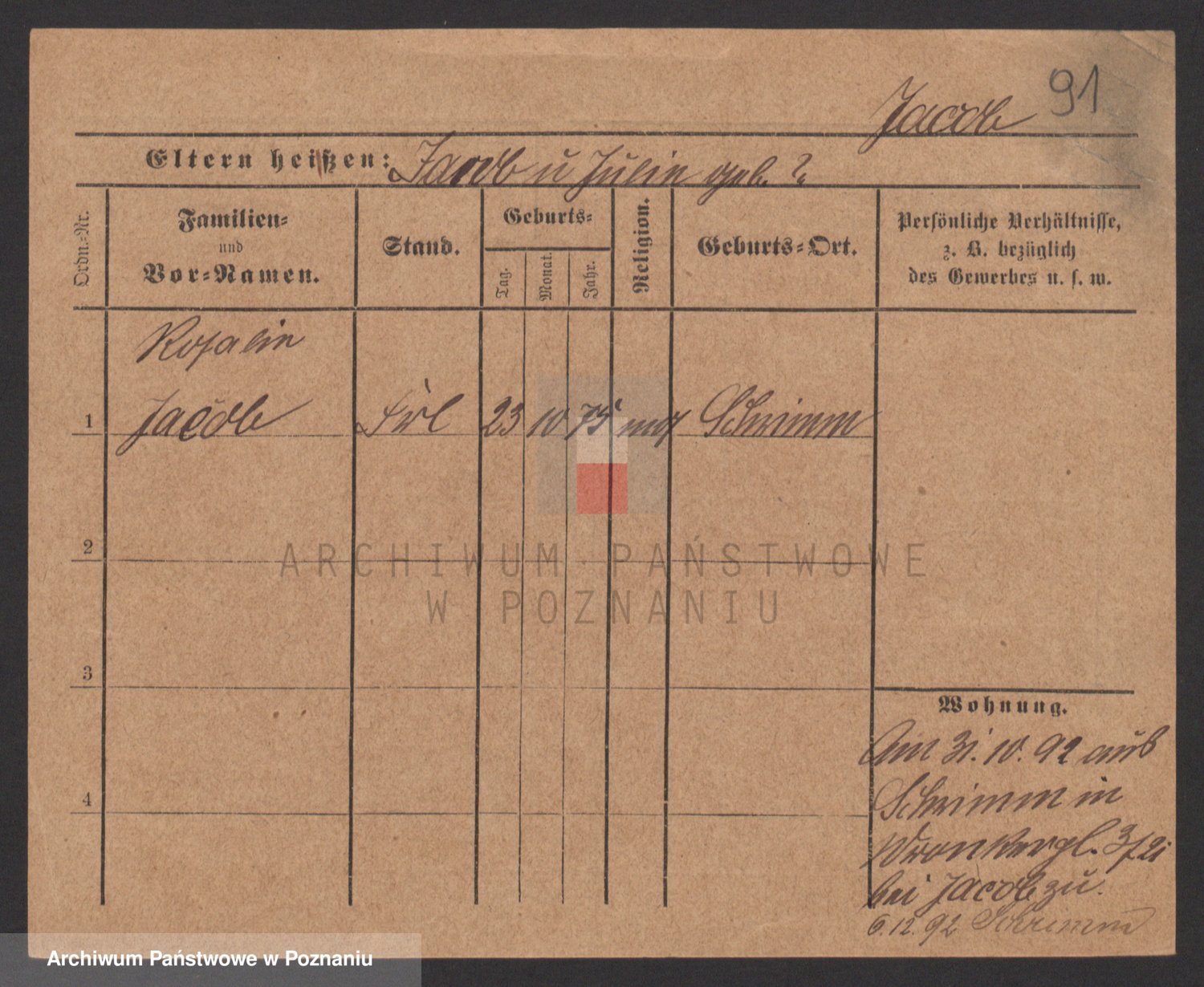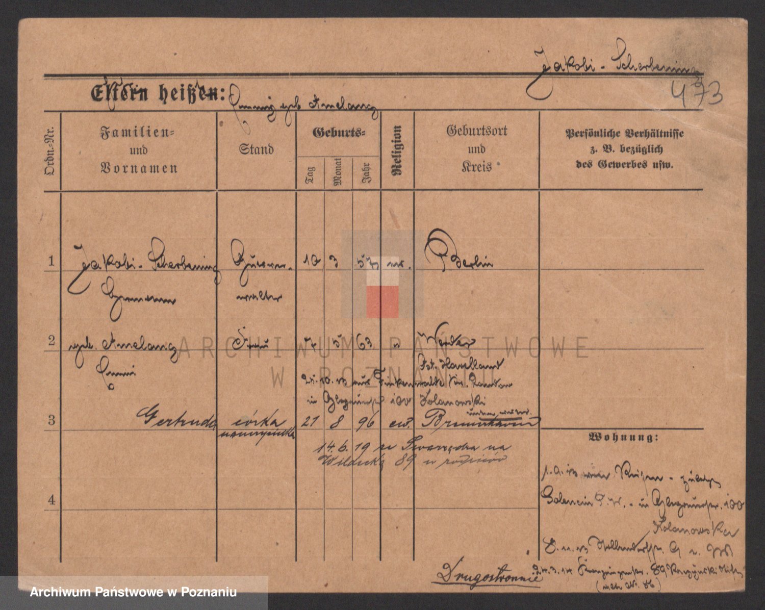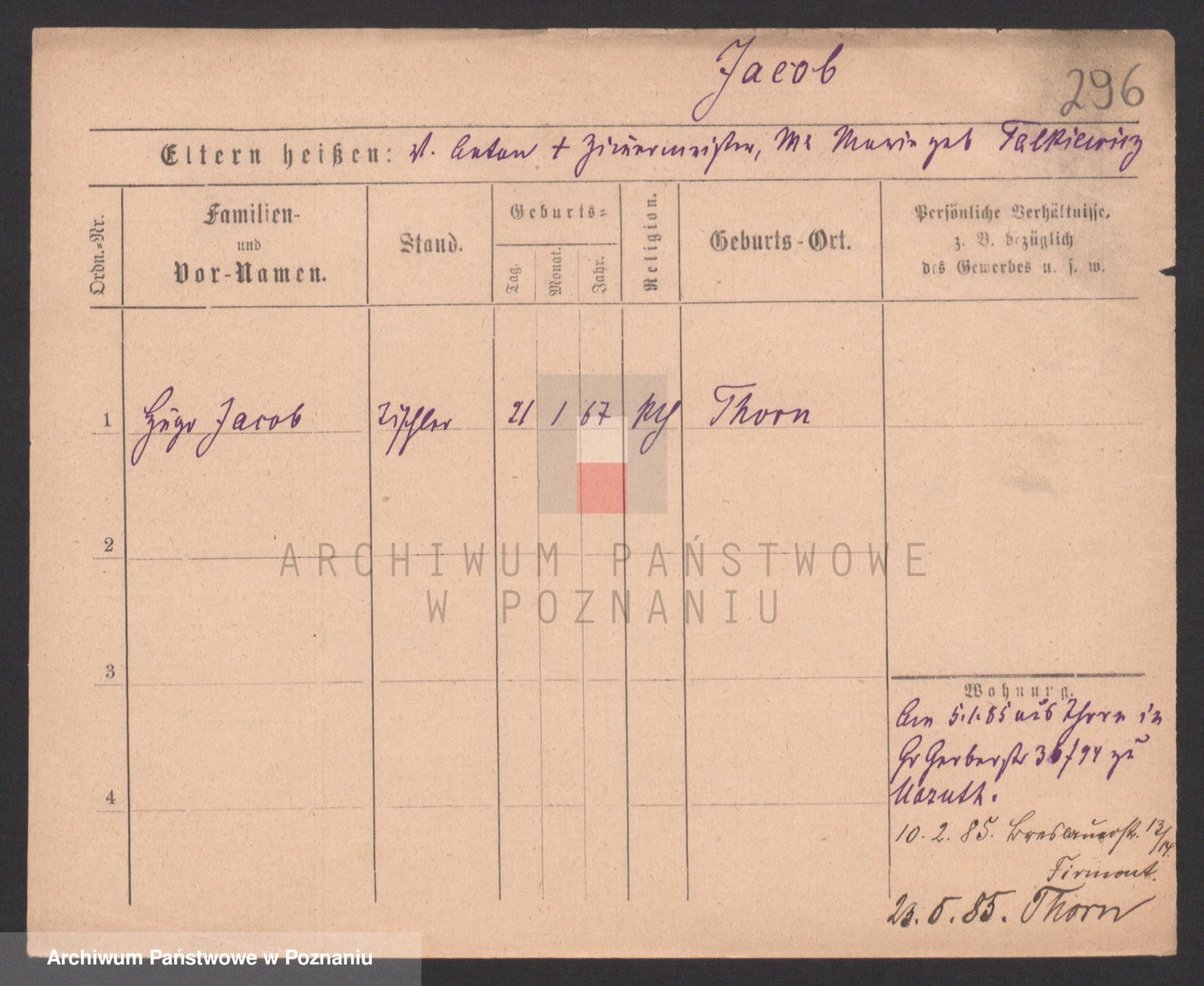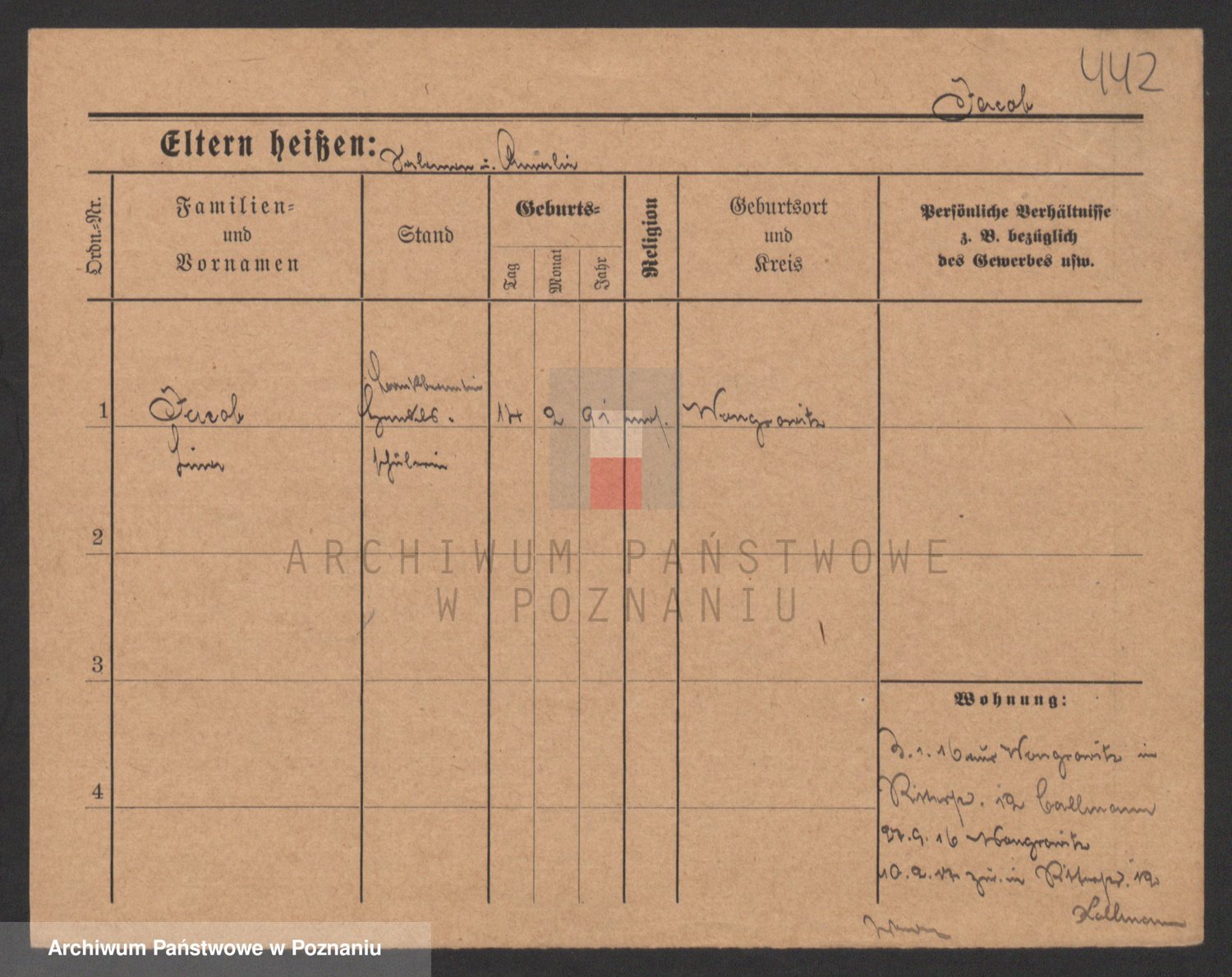 Podgląd karty osobowej dostępny jest po kliknięciu na nazwisko lub ikonkę karty. Można dokonywać powiększenia (ikony na górze) lub przechodzić między kolejnymi skanami (strzałki po bokach).