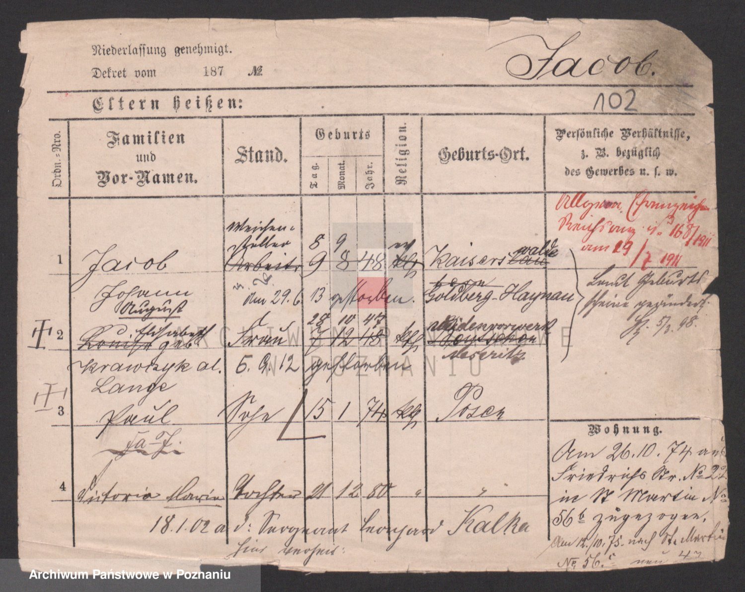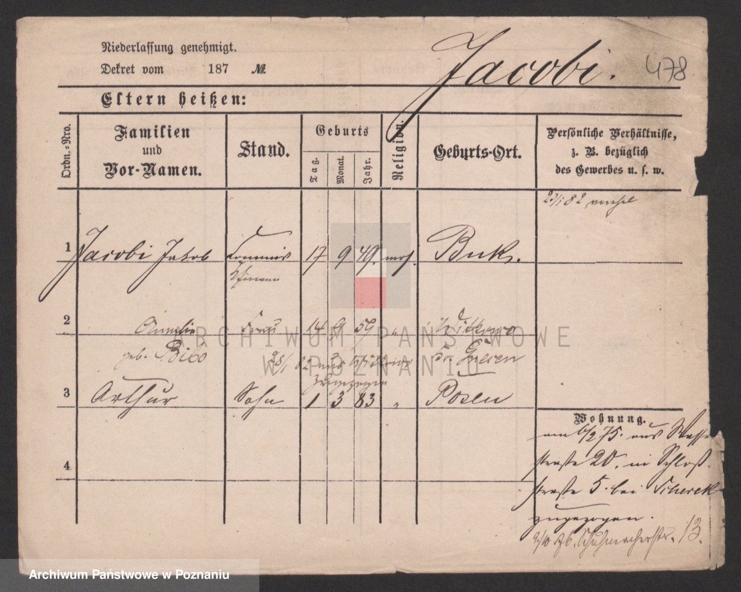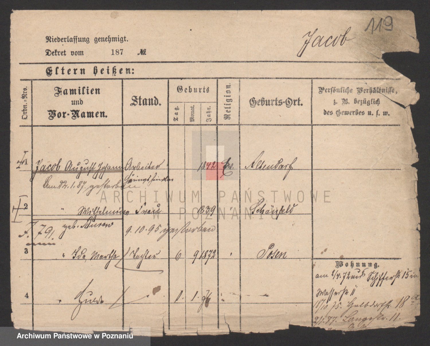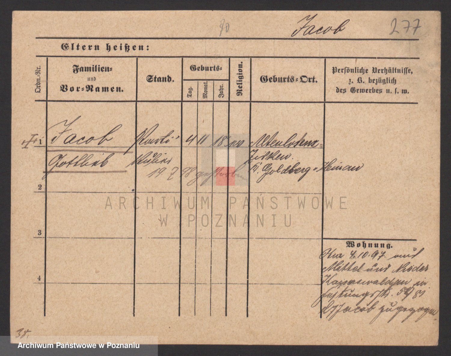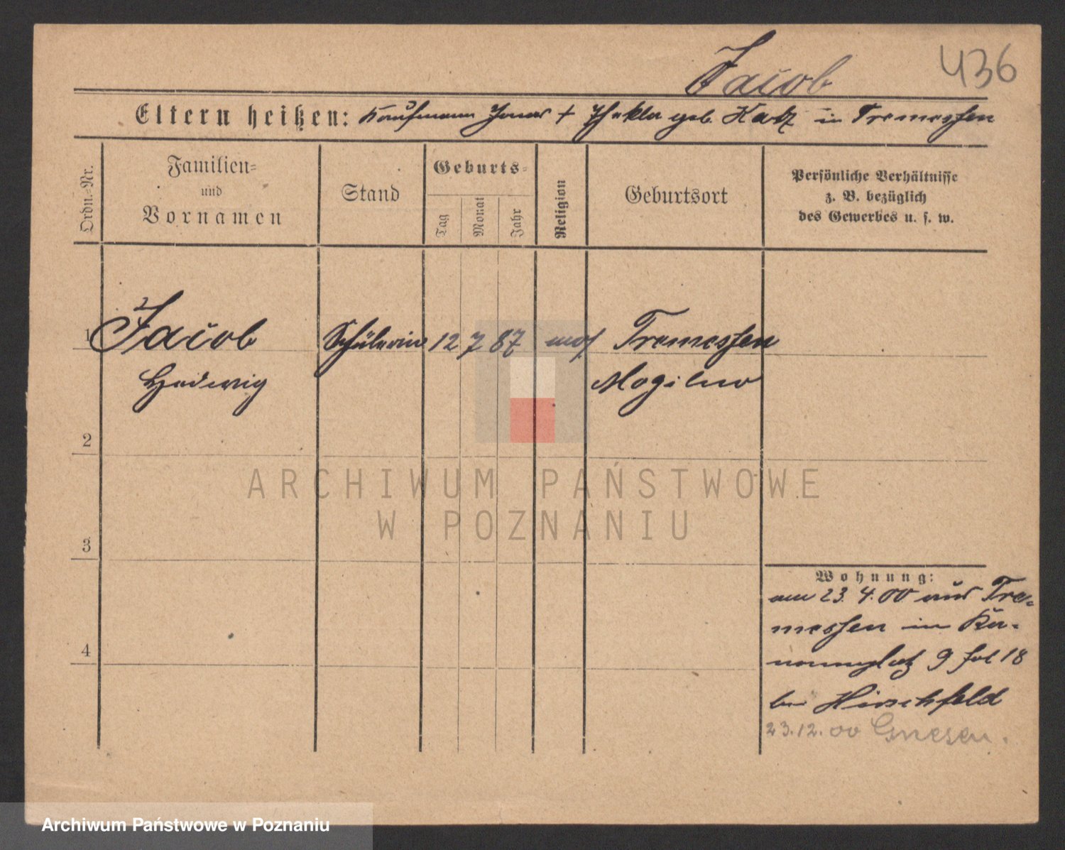 Podgląd karty osobowej dostępny jest po kliknięciu na nazwisko lub ikonkę karty. Można dokonywać powiększenia (ikony na górze) lub przechodzić między kolejnymi skanami (strzałki po bokach).