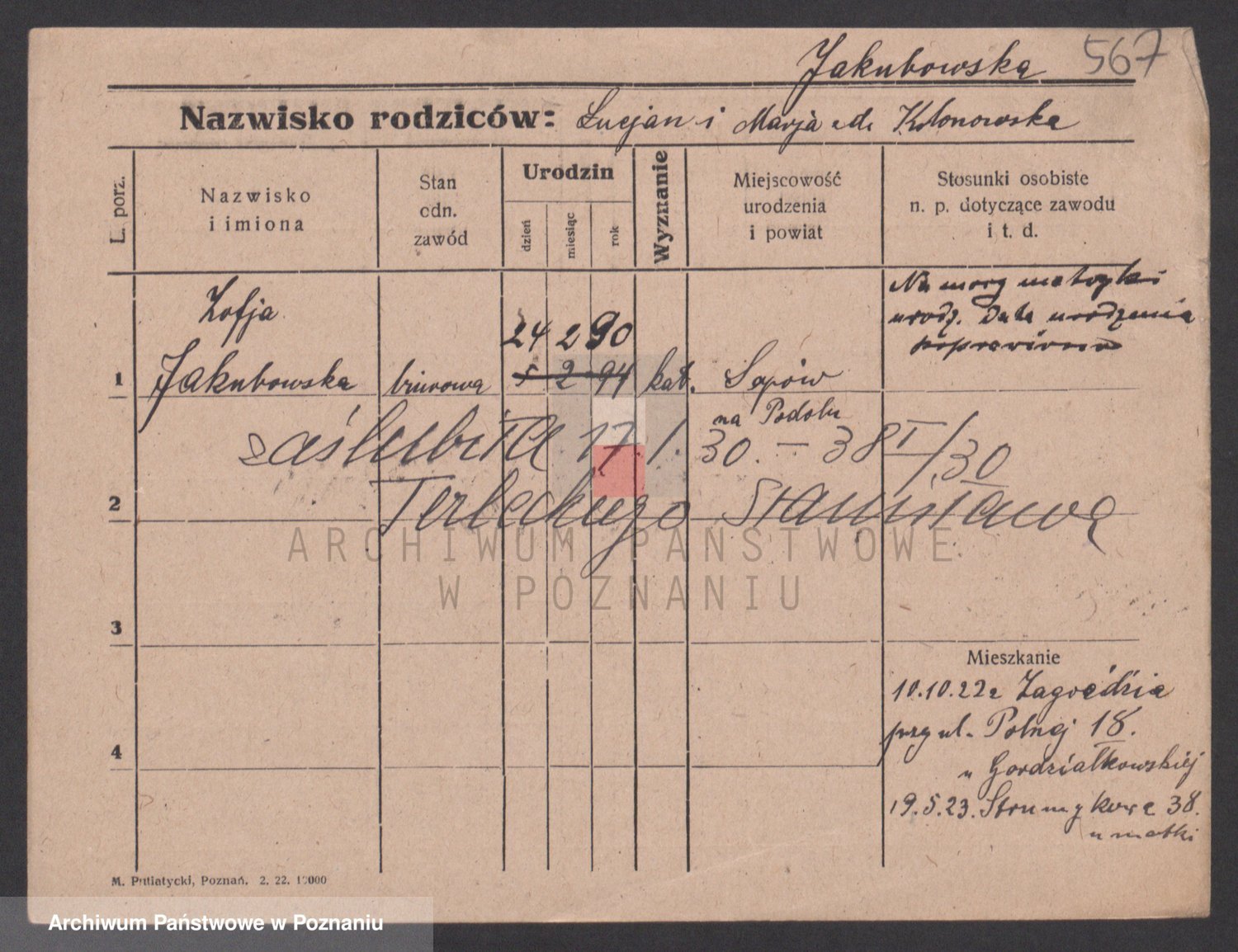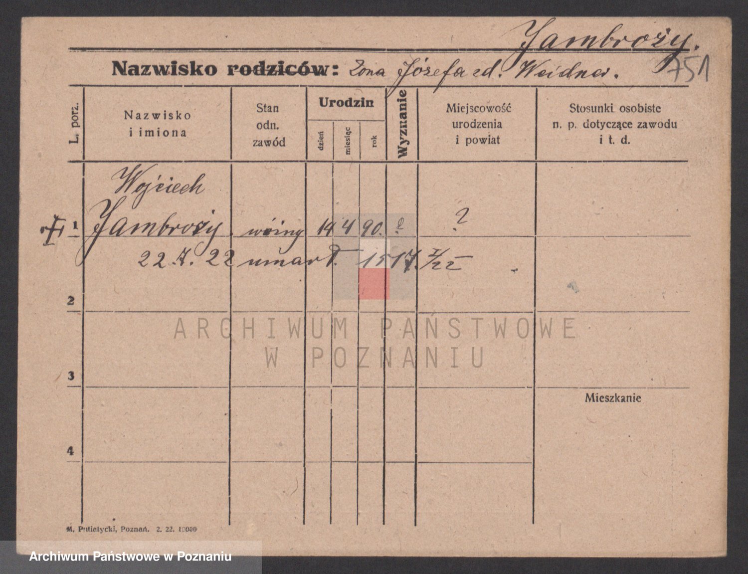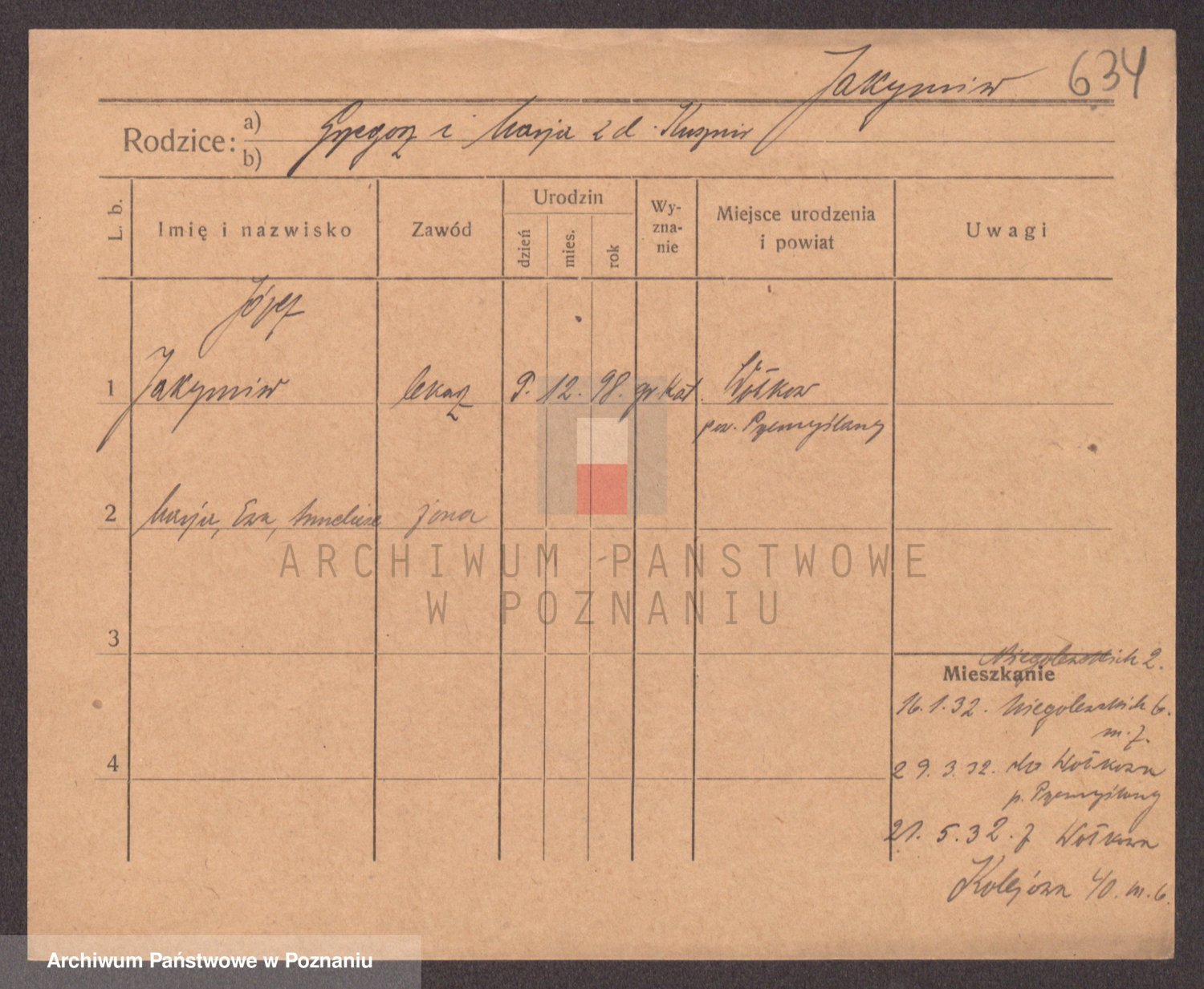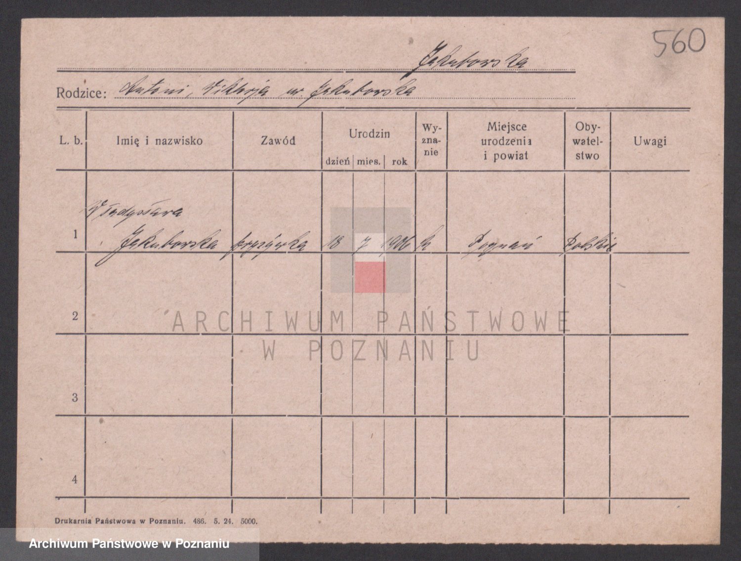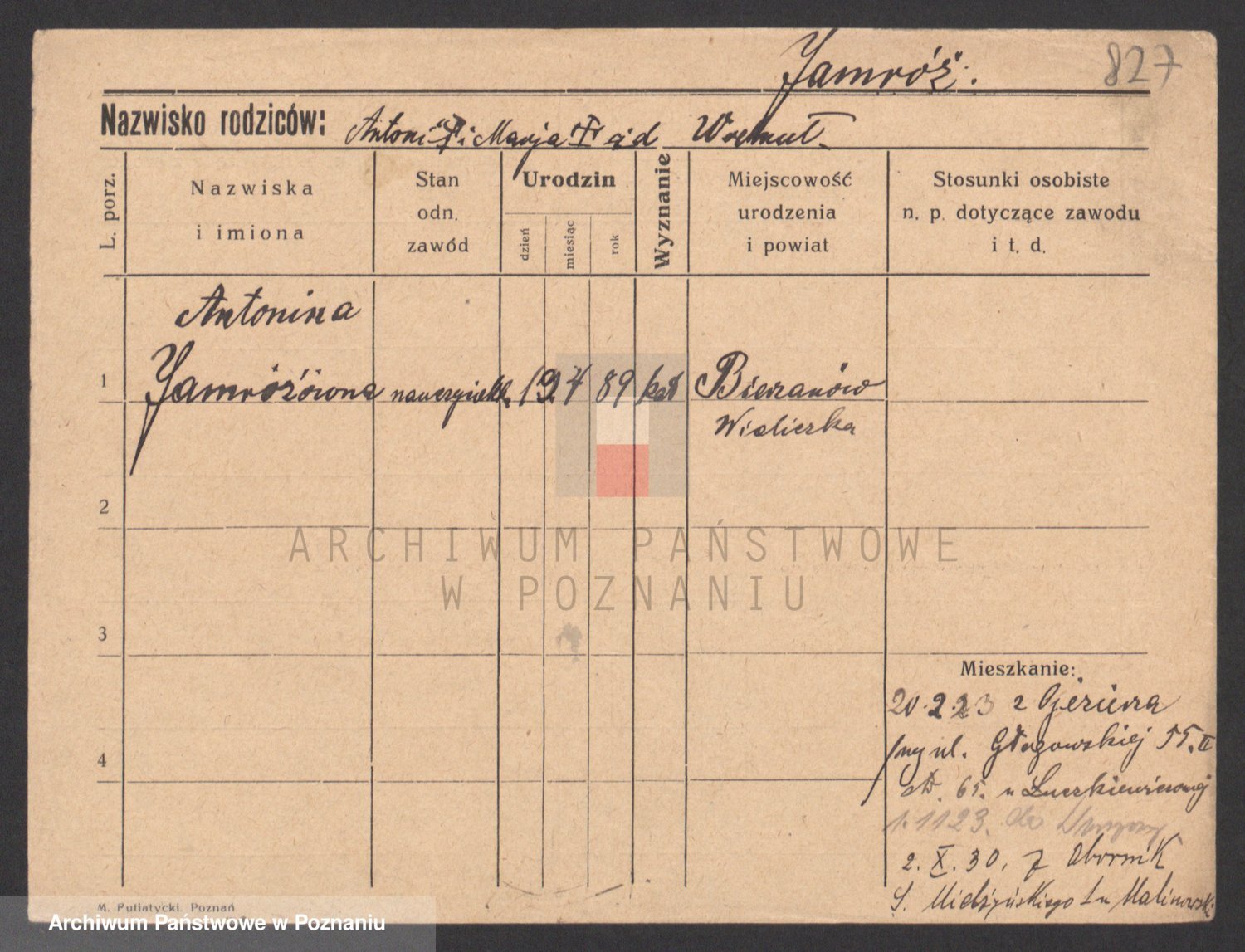 Podgląd karty osobowej dostępny jest po kliknięciu na nazwisko lub ikonkę karty. Można dokonywać powiększenia (ikony na górze) lub przechodzić między kolejnymi skanami (strzałki po bokach).