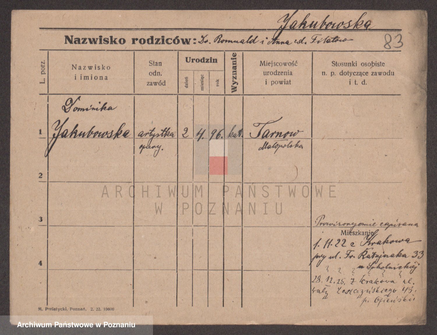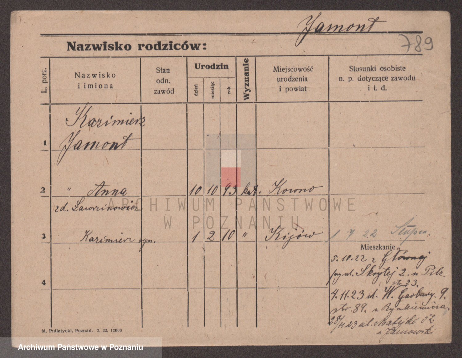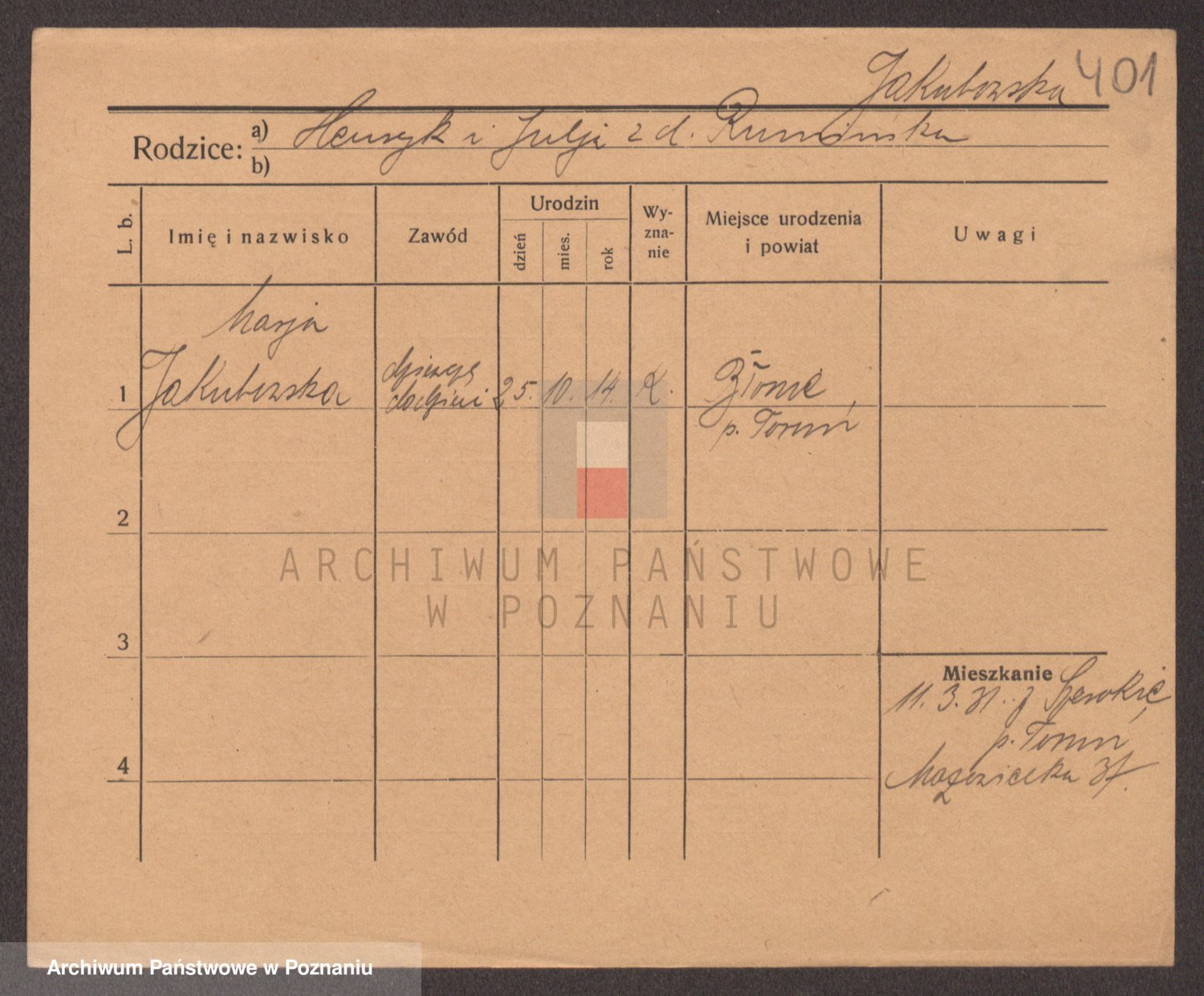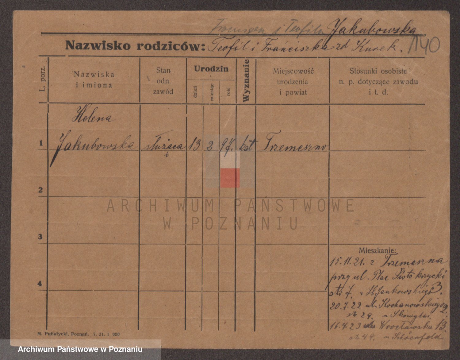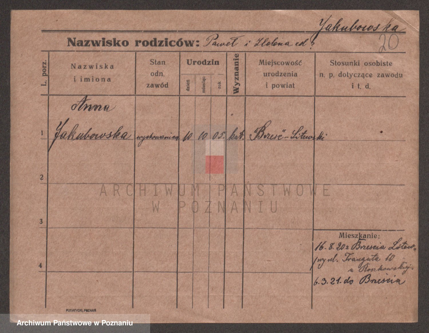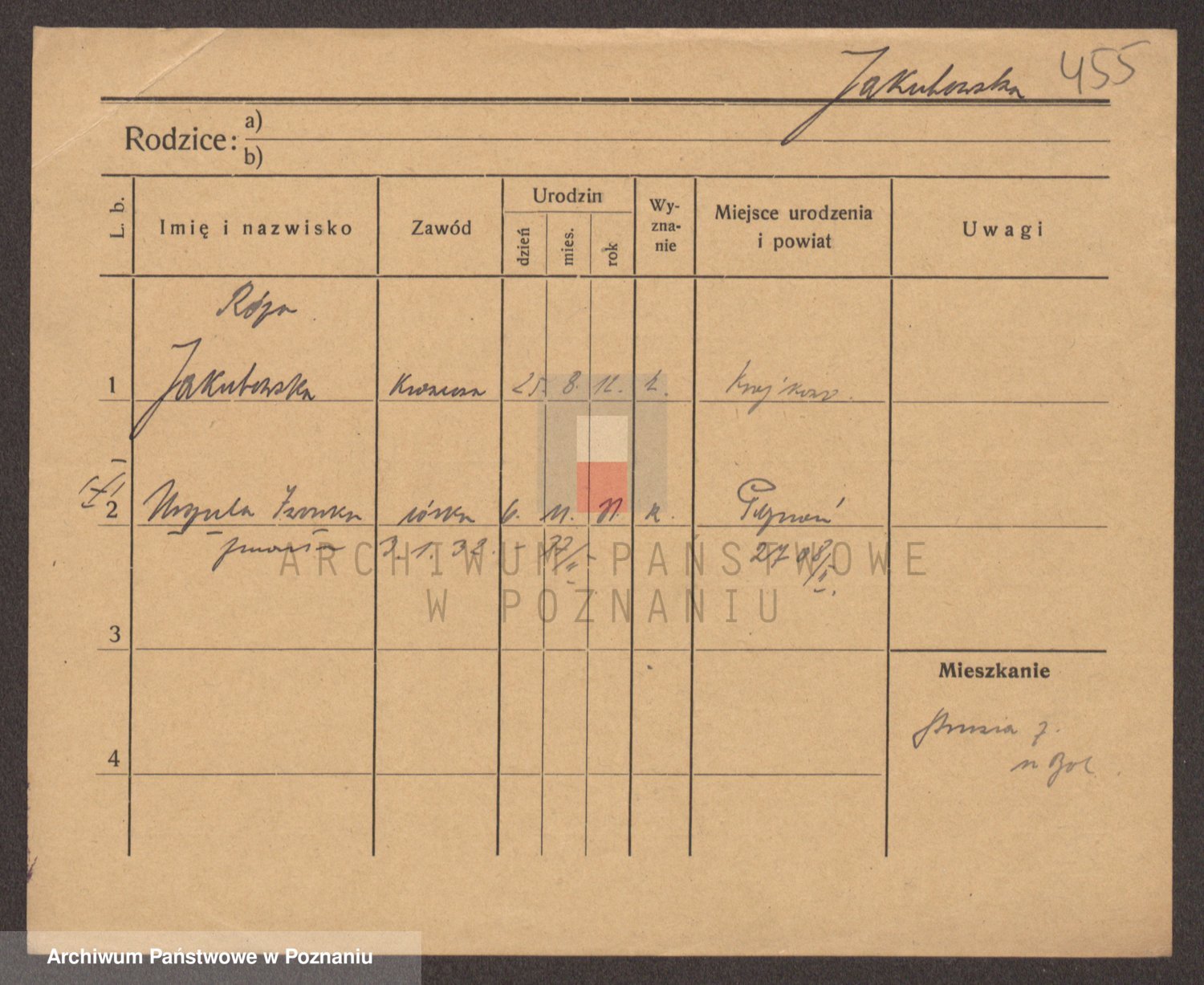 Podgląd karty osobowej dostępny jest po kliknięciu na nazwisko lub ikonkę karty. Można dokonywać powiększenia (ikony na górze) lub przechodzić między kolejnymi skanami (strzałki po bokach).