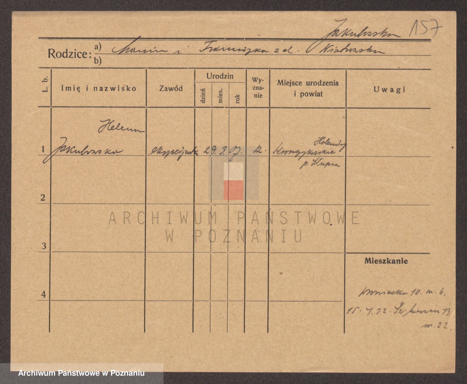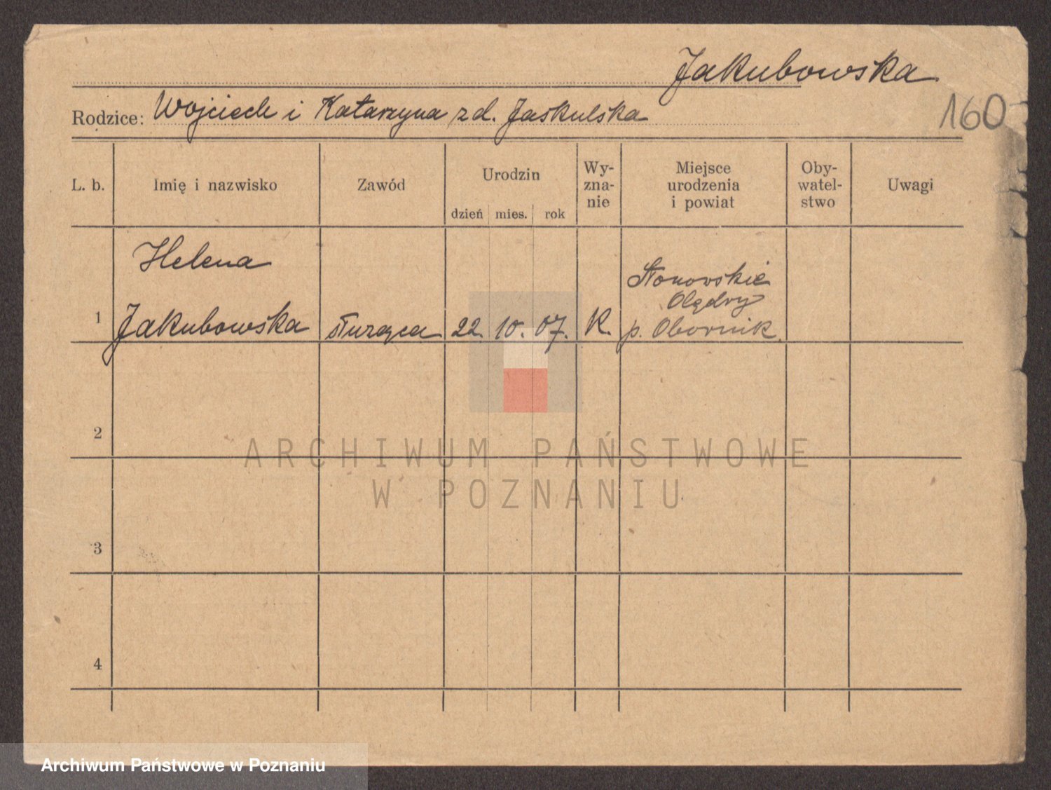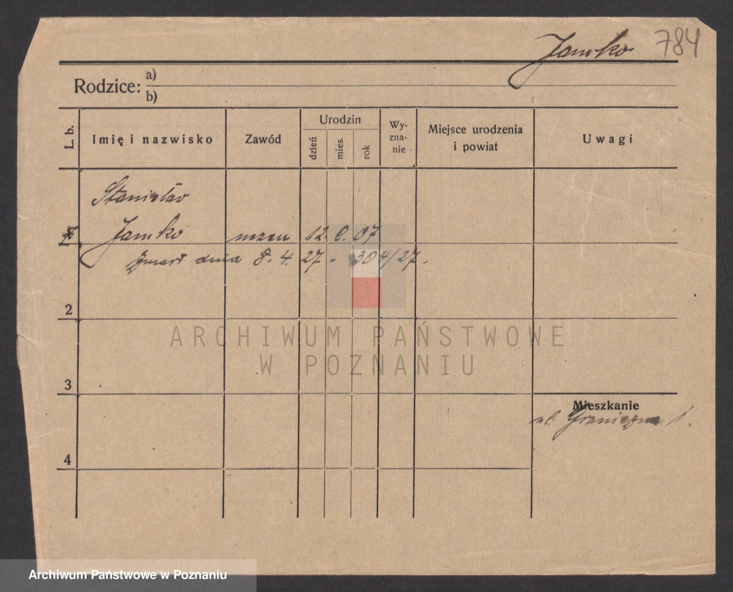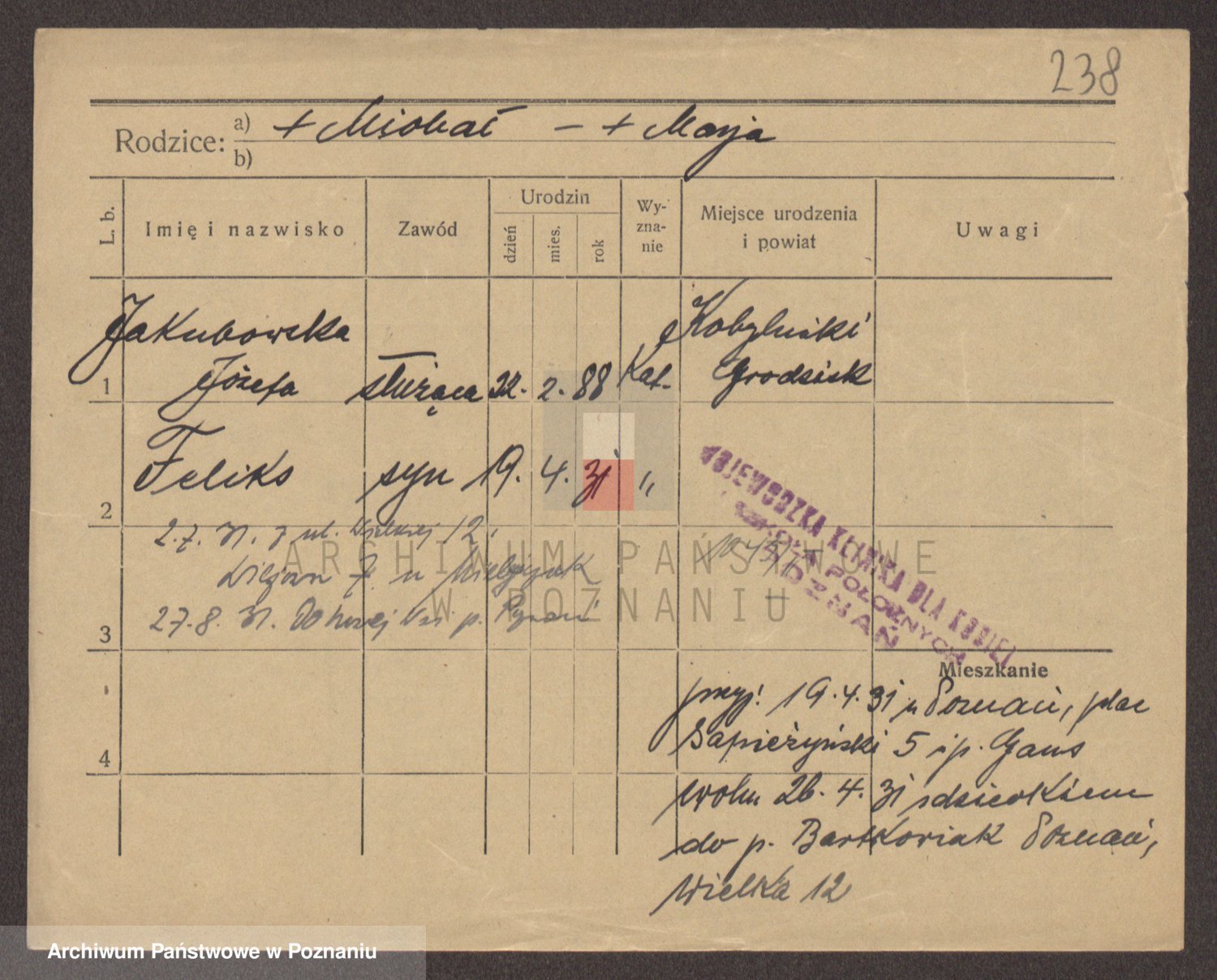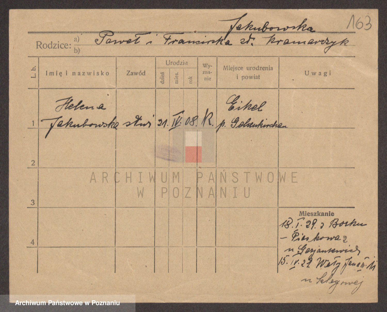 Podgląd karty osobowej dostępny jest po kliknięciu na nazwisko lub ikonkę karty. Można dokonywać powiększenia (ikony na górze) lub przechodzić między kolejnymi skanami (strzałki po bokach).