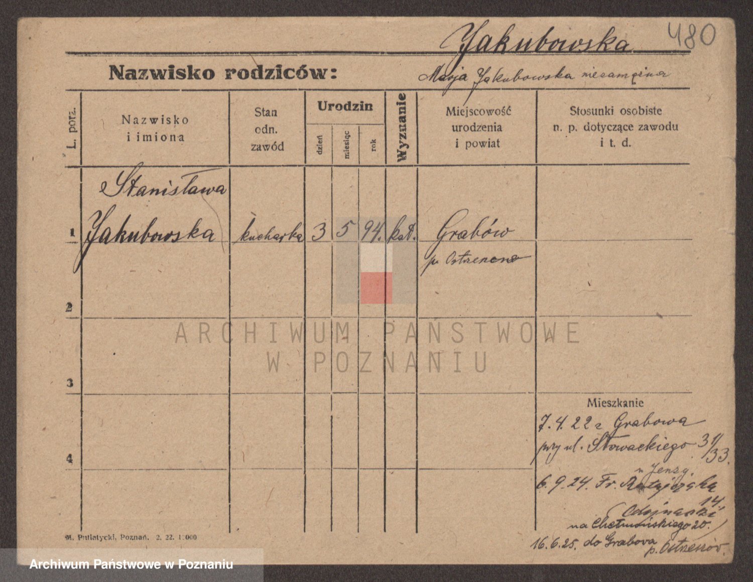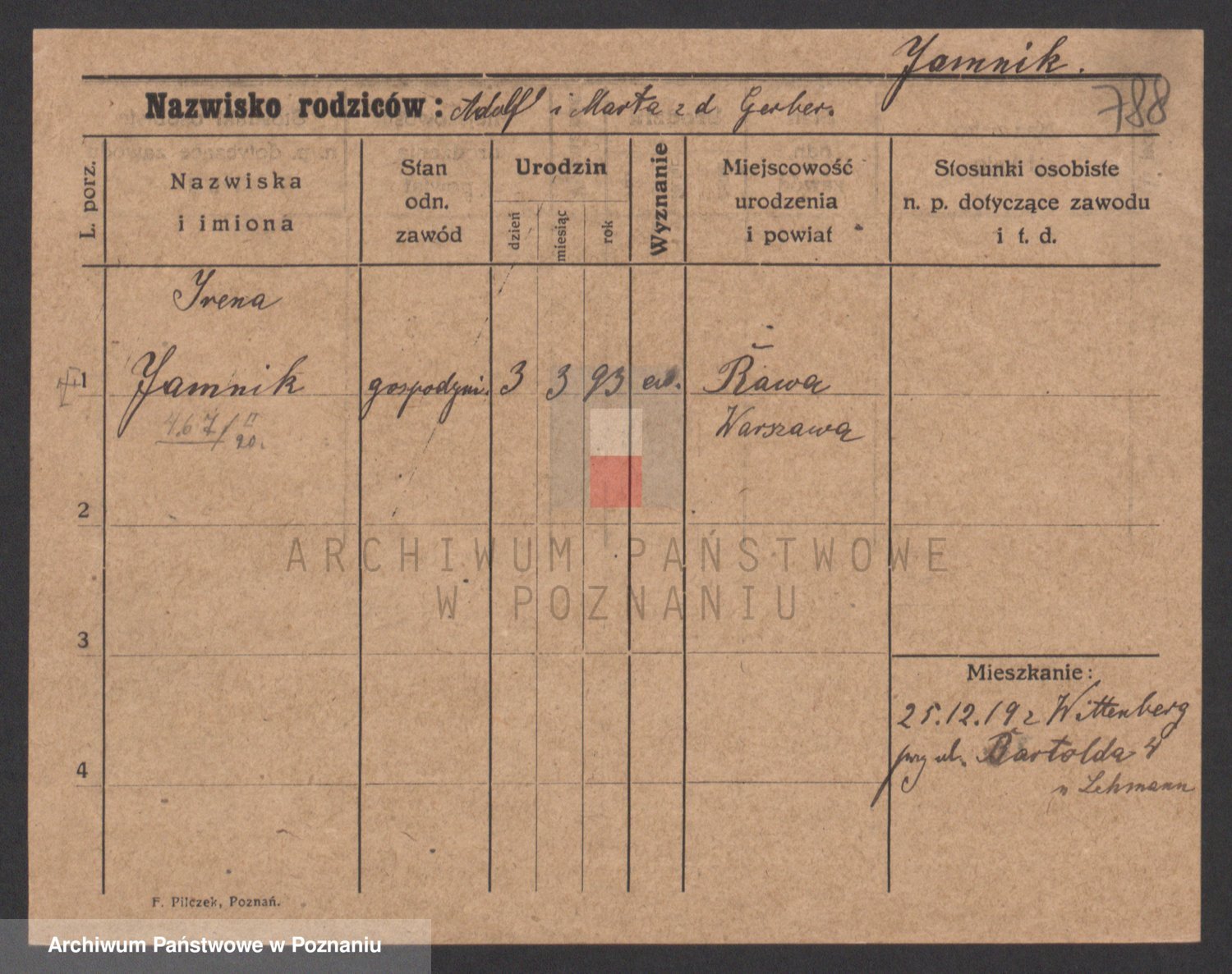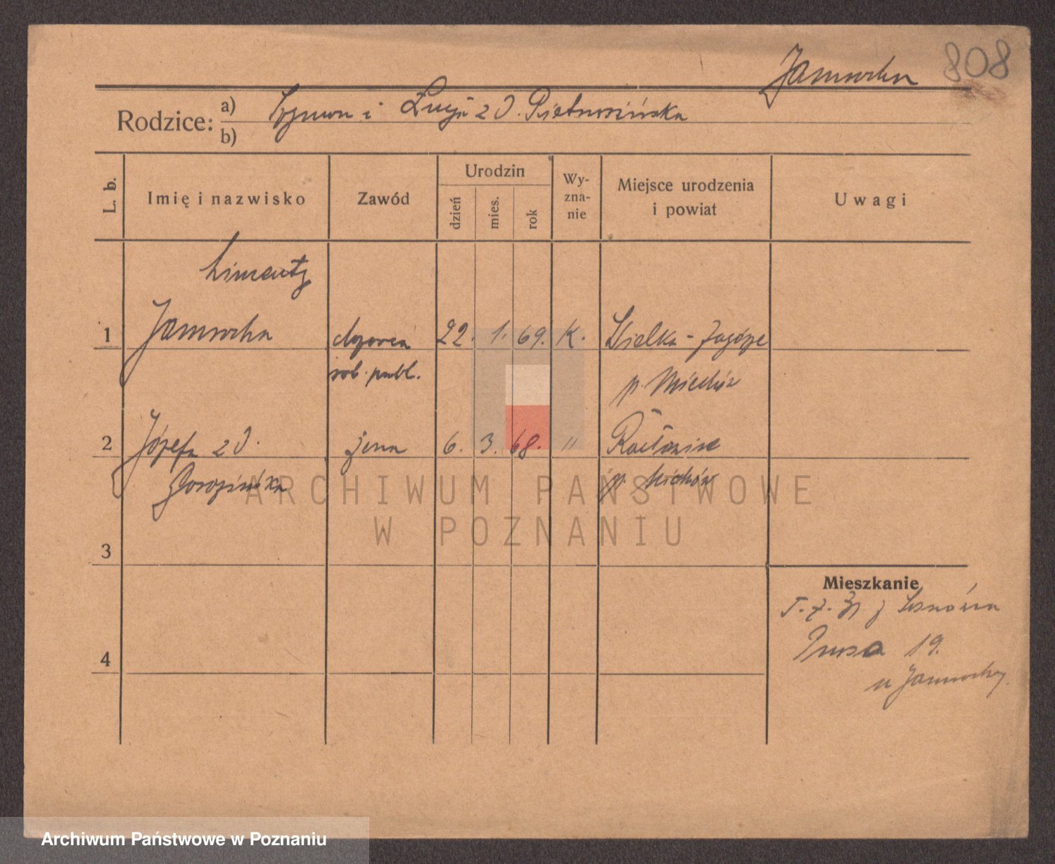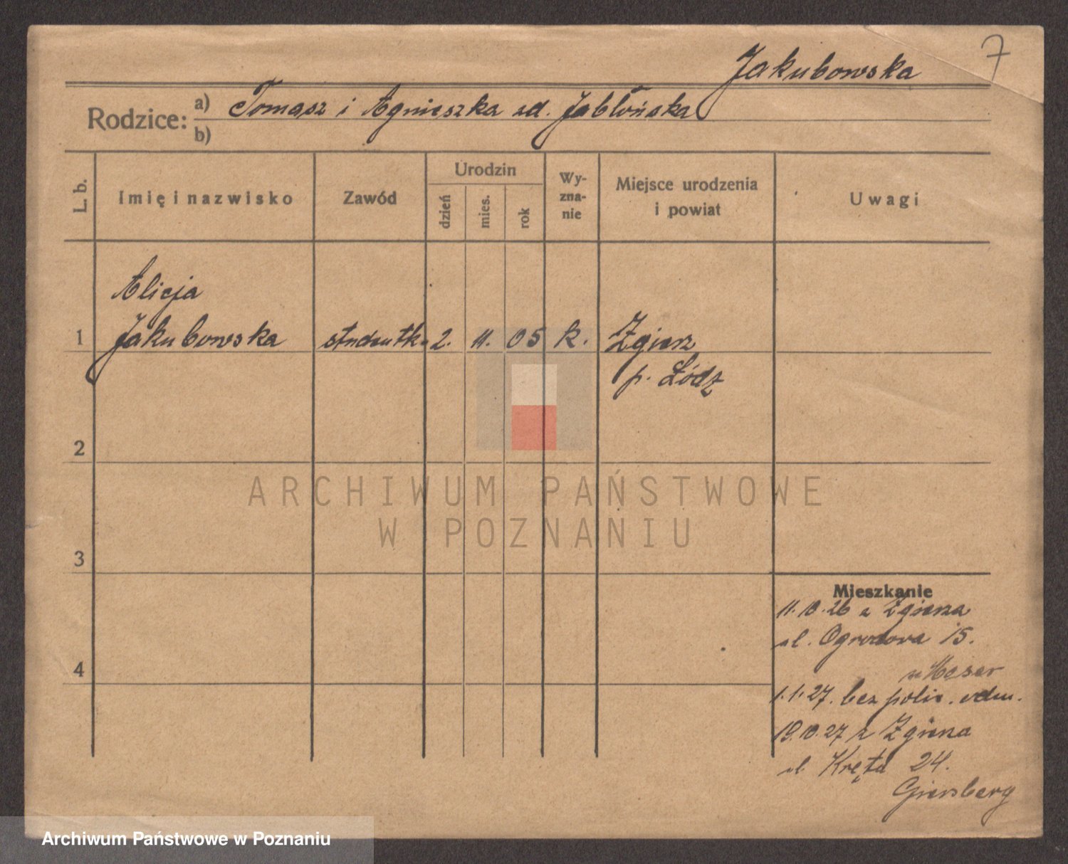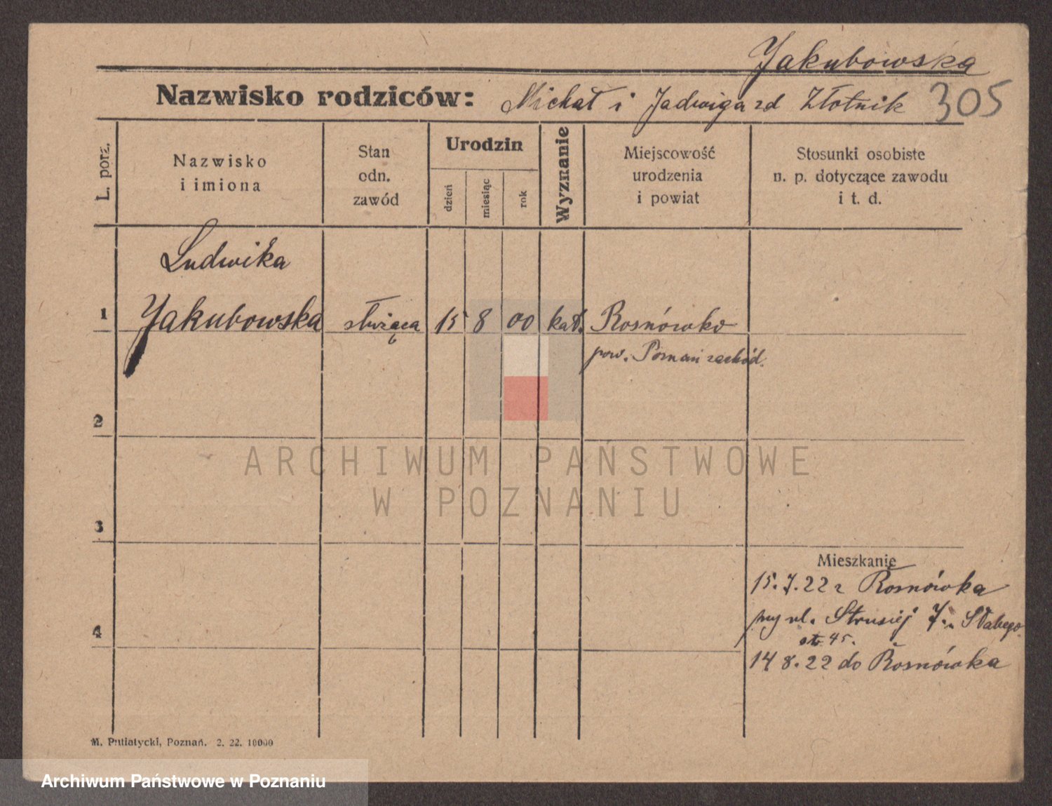 Podgląd karty osobowej dostępny jest po kliknięciu na nazwisko lub ikonkę karty. Można dokonywać powiększenia (ikony na górze) lub przechodzić między kolejnymi skanami (strzałki po bokach).