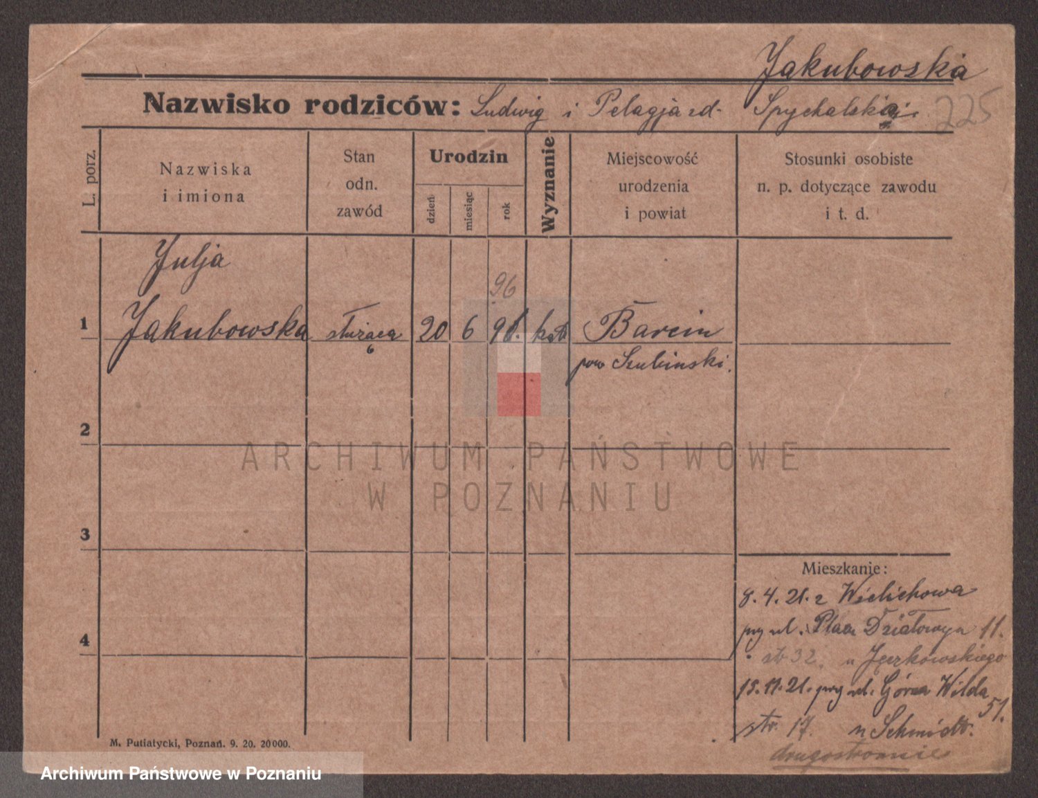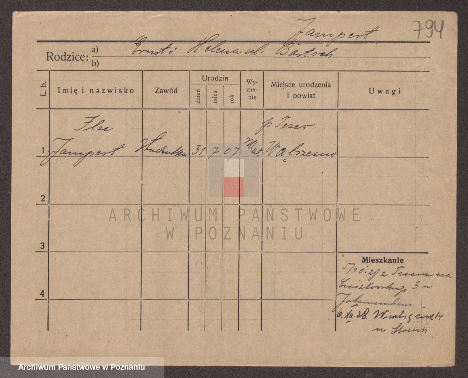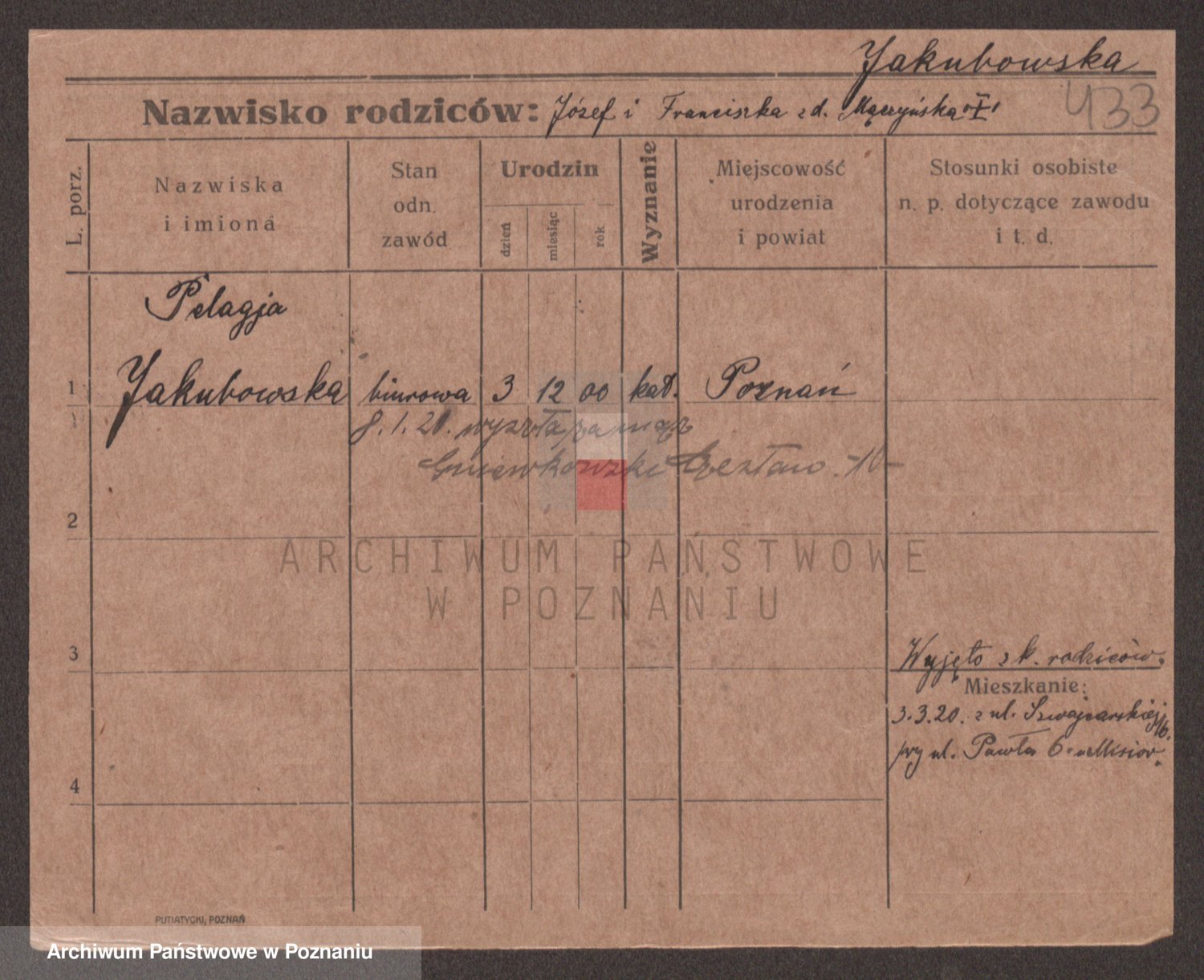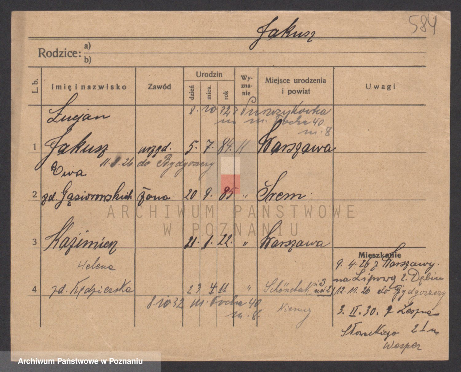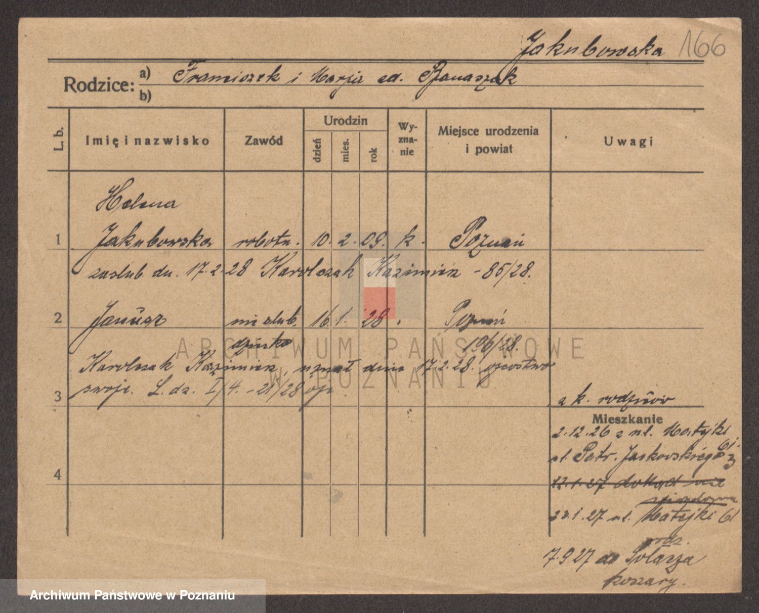 Podgląd karty osobowej dostępny jest po kliknięciu na nazwisko lub ikonkę karty. Można dokonywać powiększenia (ikony na górze) lub przechodzić między kolejnymi skanami (strzałki po bokach).