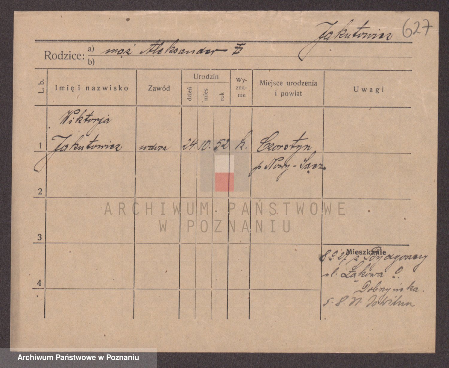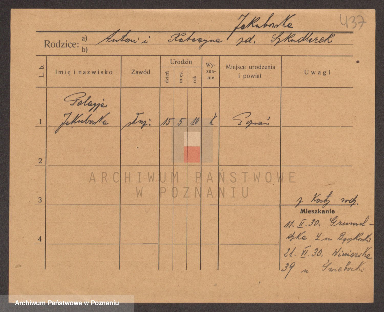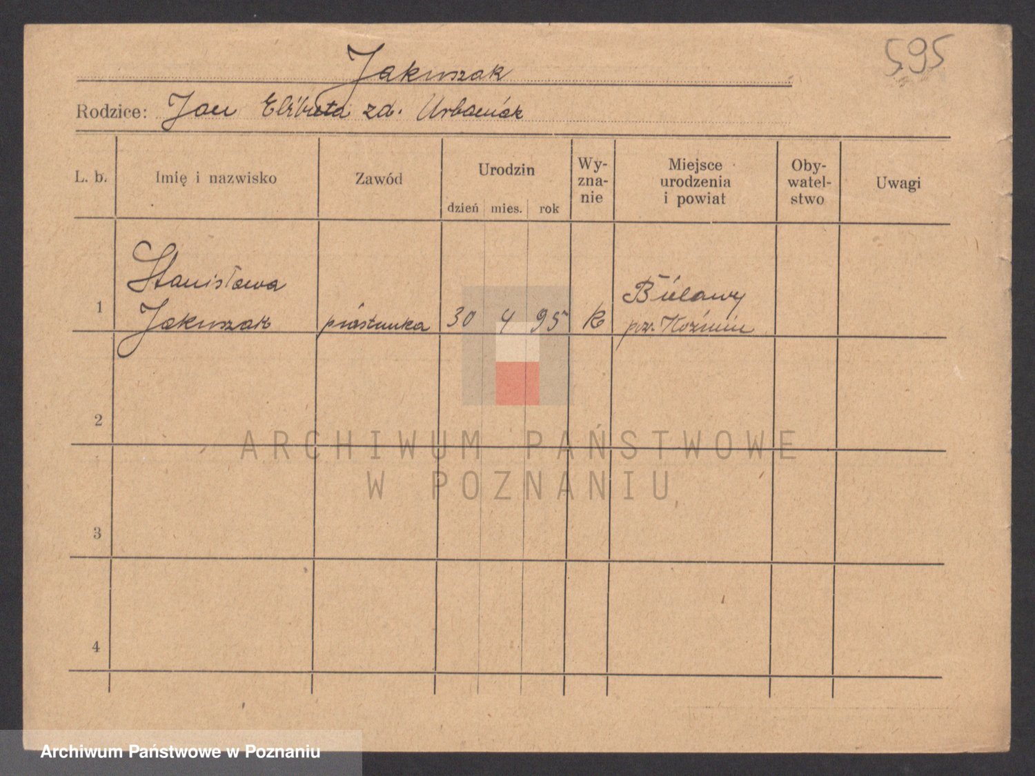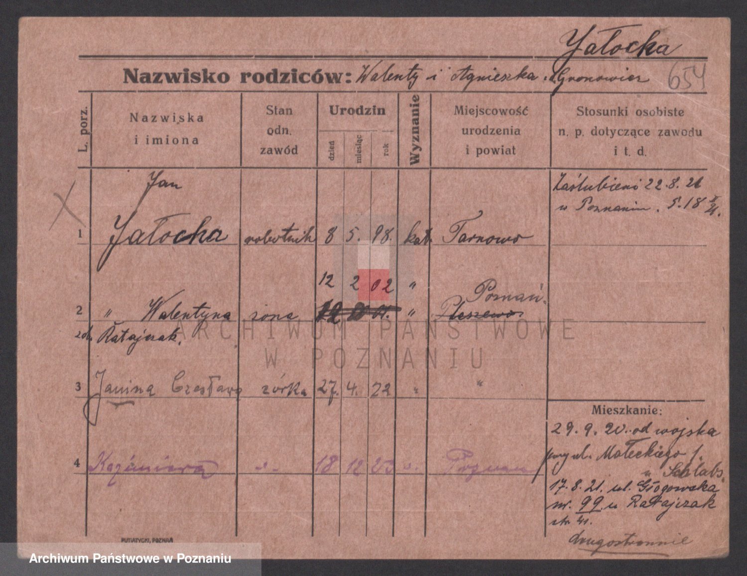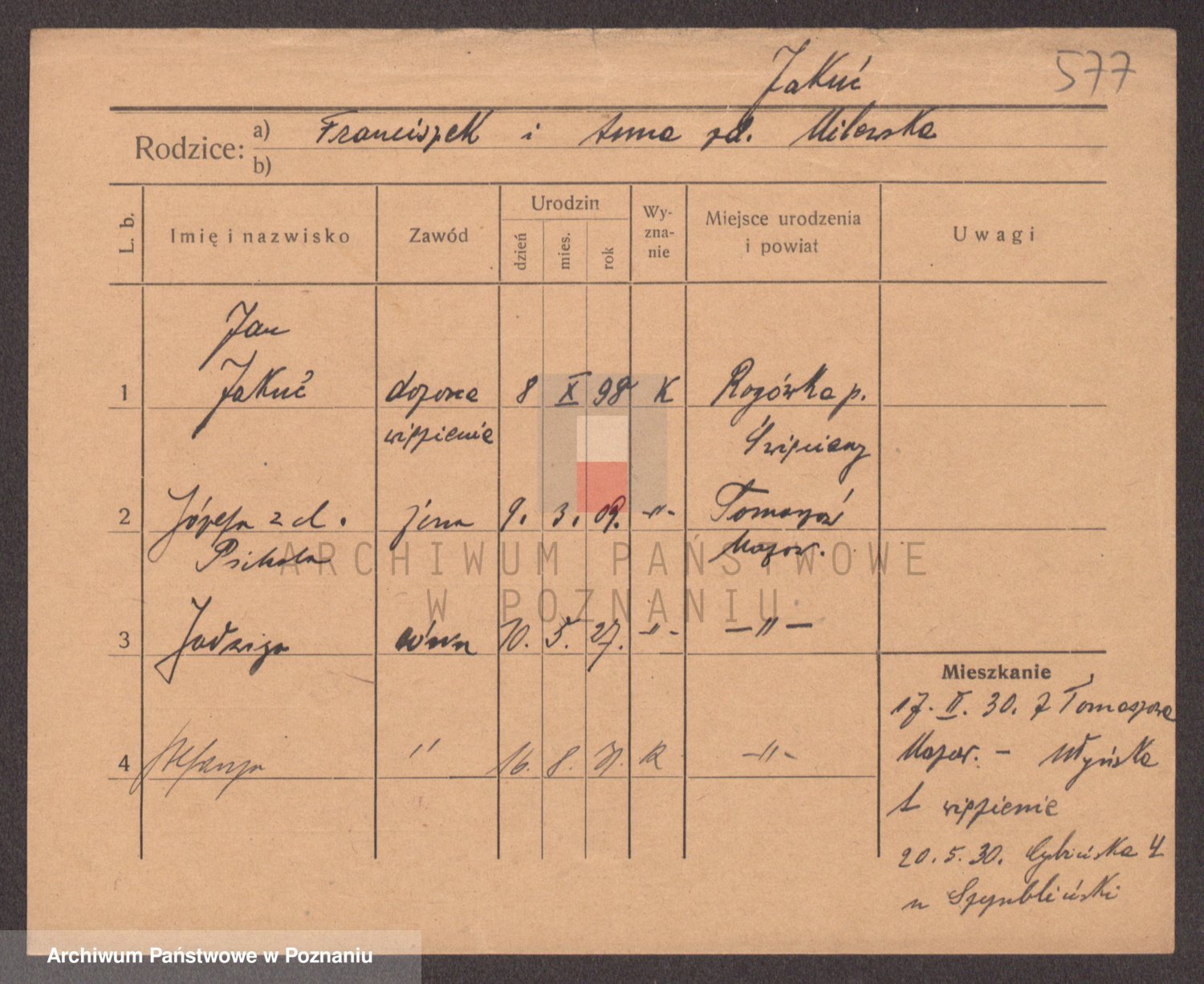 Podgląd karty osobowej dostępny jest po kliknięciu na nazwisko lub ikonkę karty. Można dokonywać powiększenia (ikony na górze) lub przechodzić między kolejnymi skanami (strzałki po bokach).