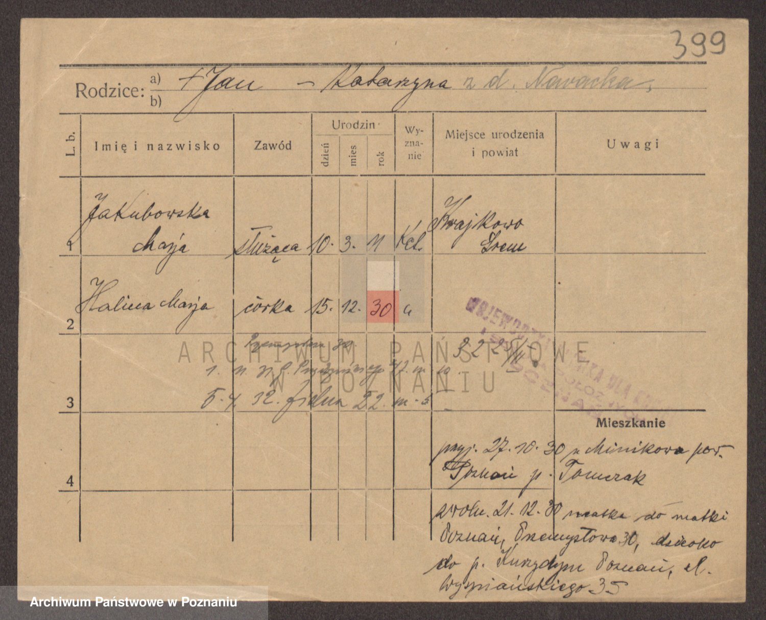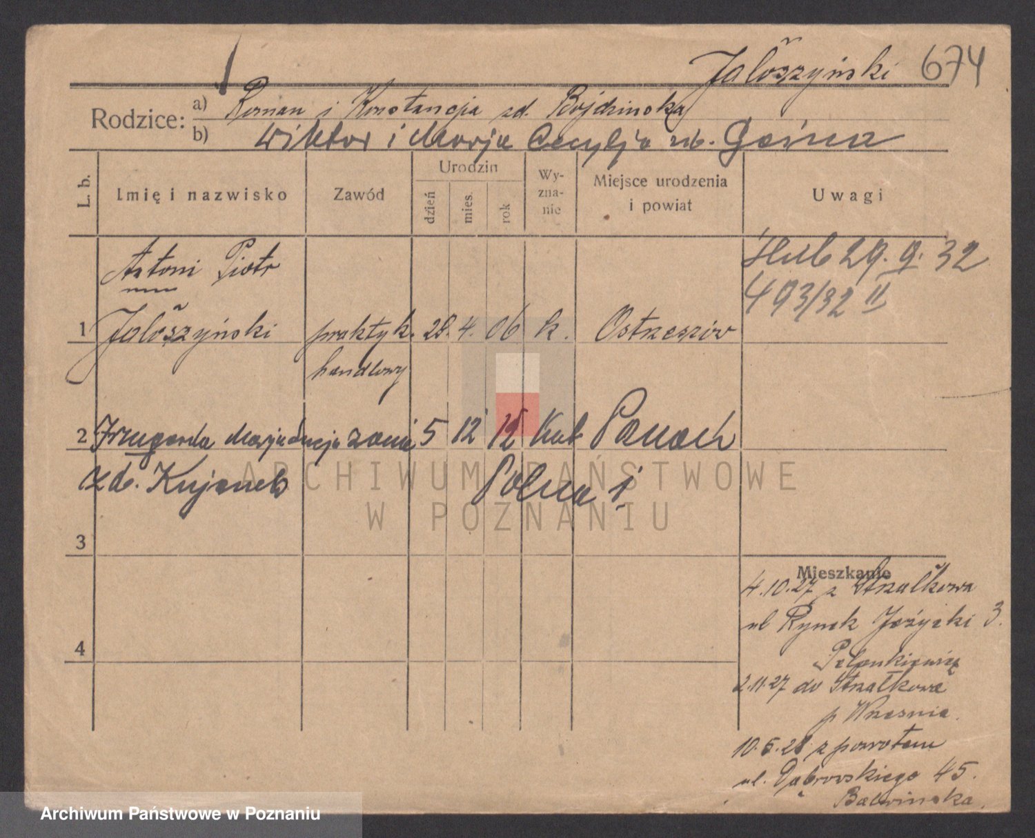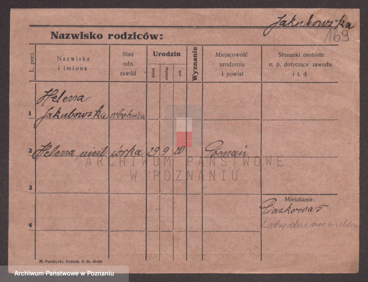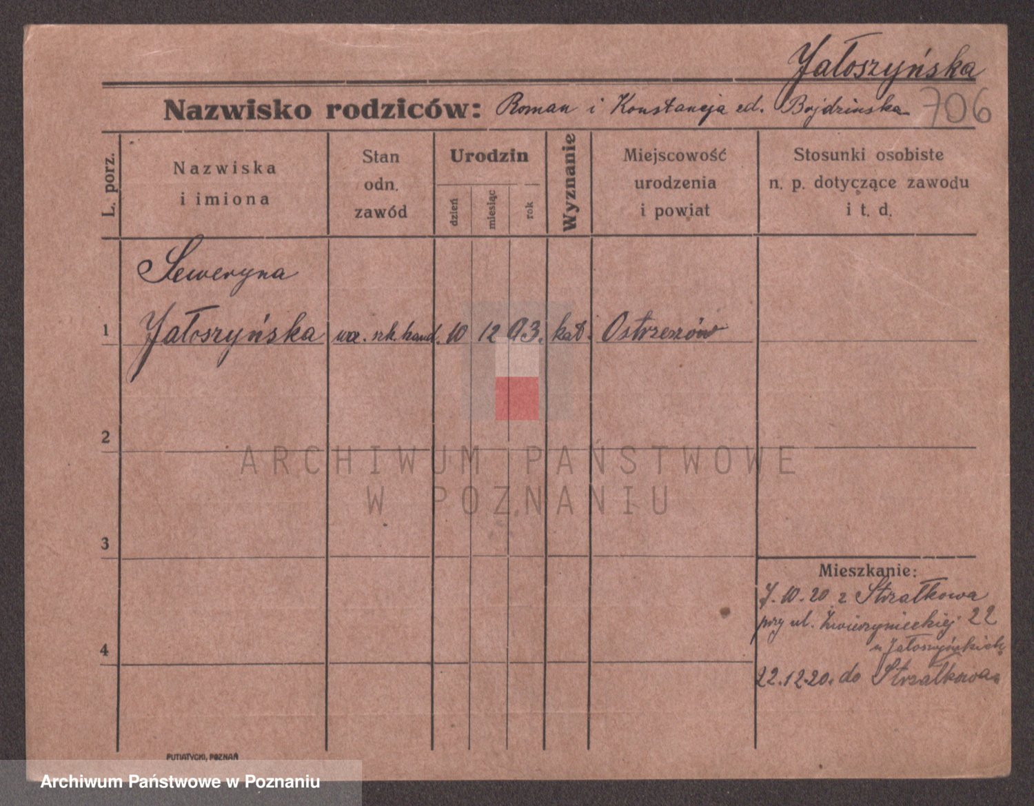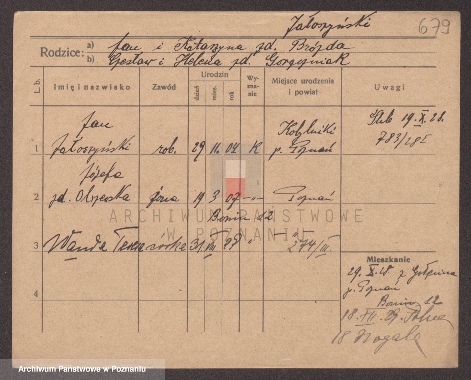 Podgląd karty osobowej dostępny jest po kliknięciu na nazwisko lub ikonkę karty. Można dokonywać powiększenia (ikony na górze) lub przechodzić między kolejnymi skanami (strzałki po bokach).