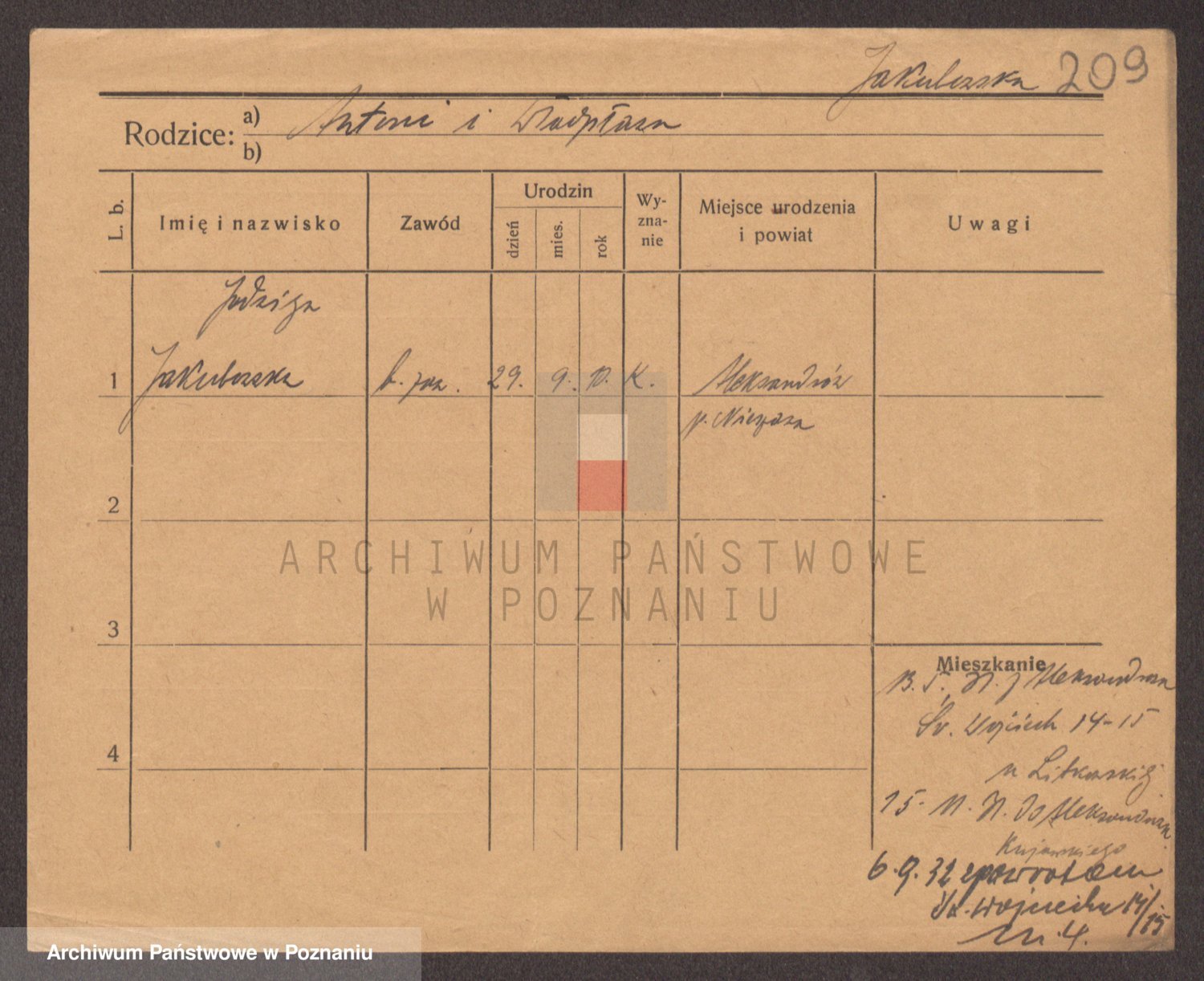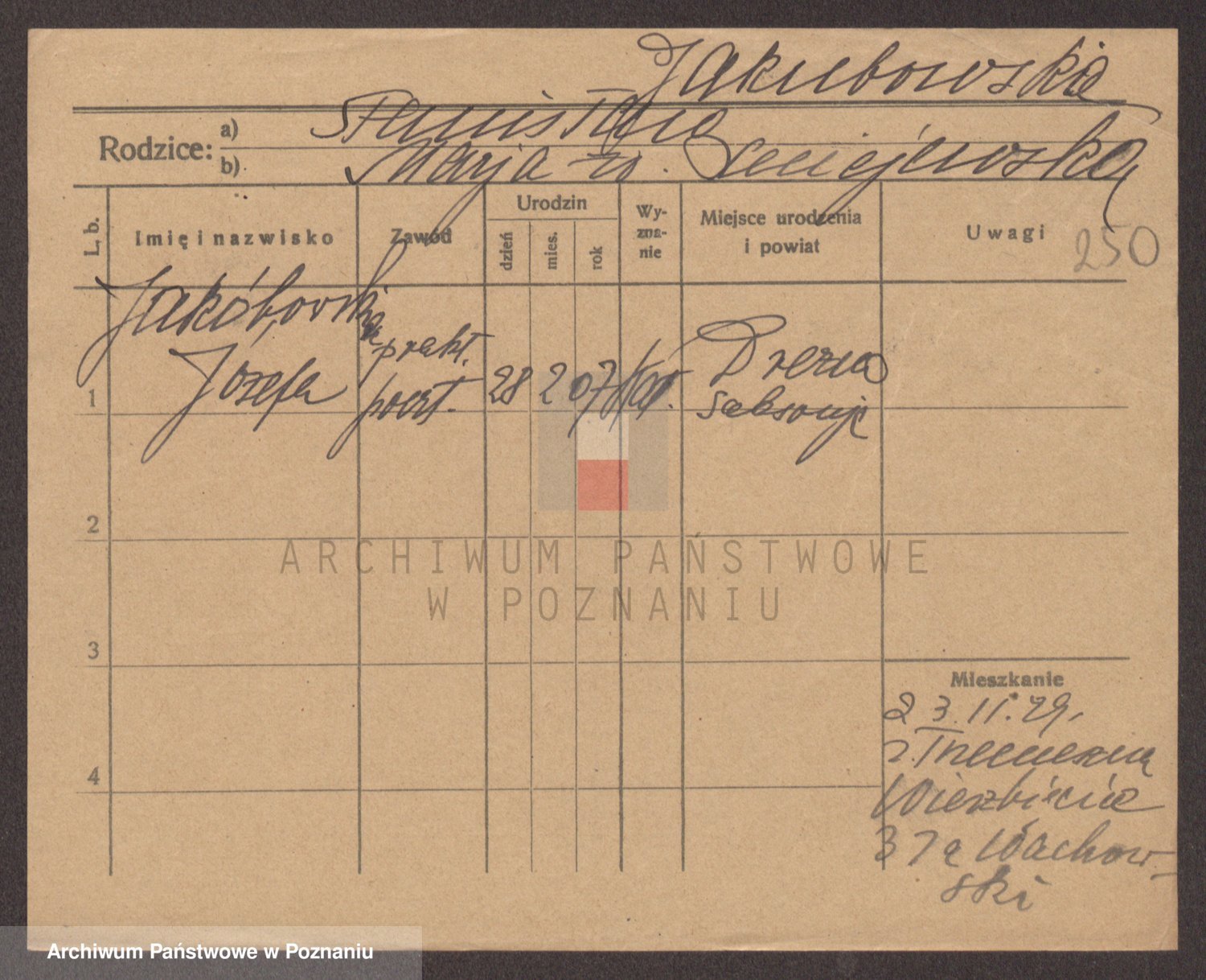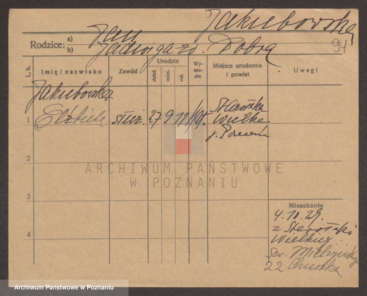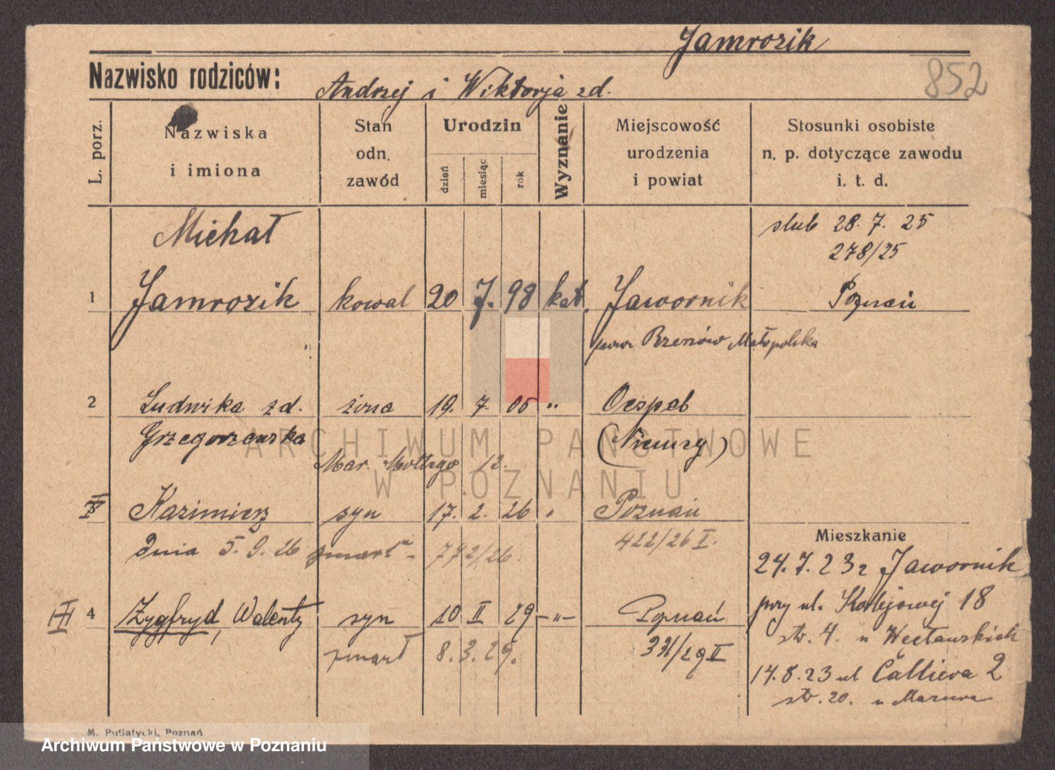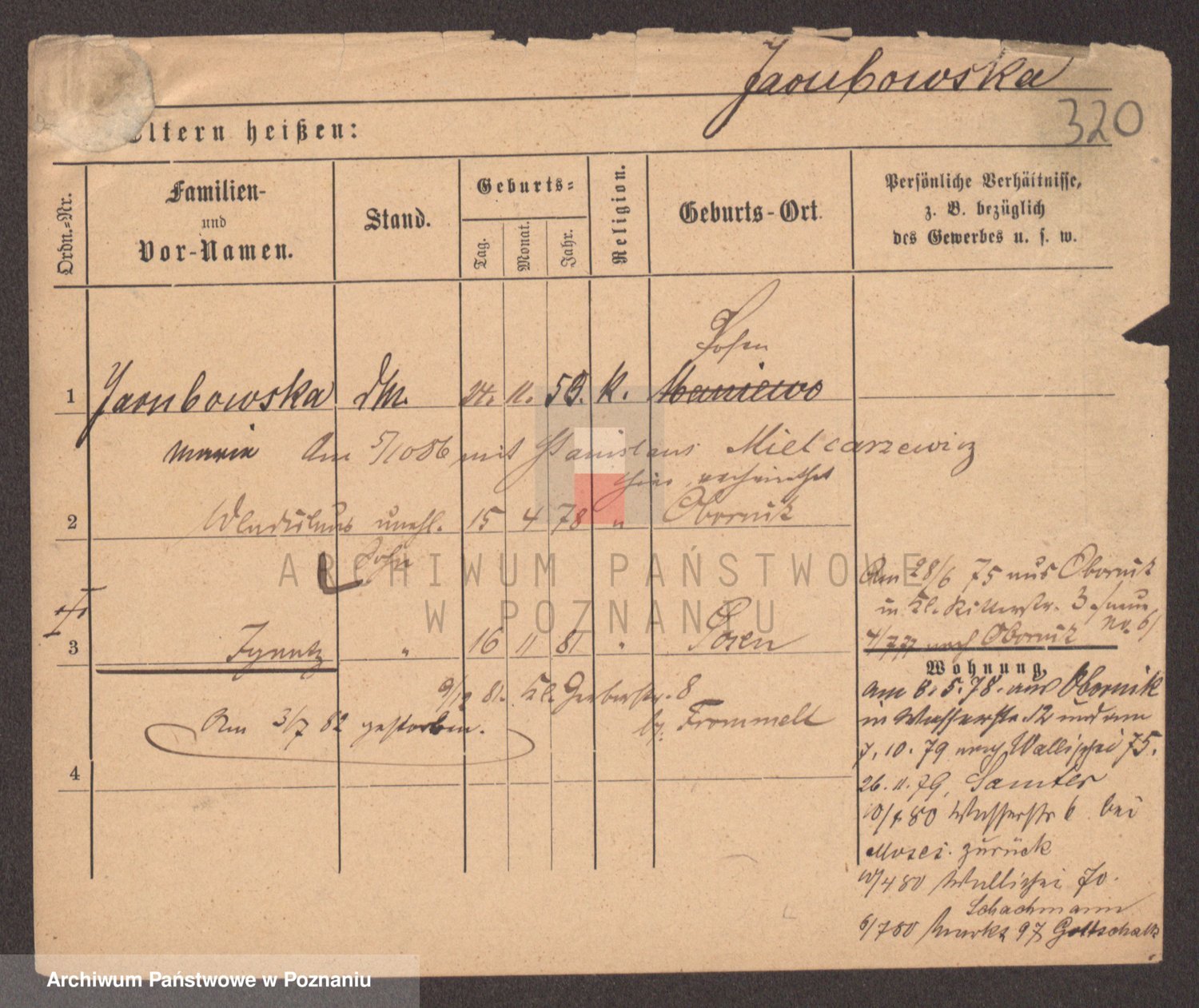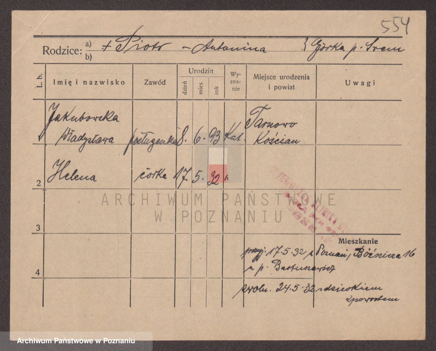 Podgląd karty osobowej dostępny jest po kliknięciu na nazwisko lub ikonkę karty. Można dokonywać powiększenia (ikony na górze) lub przechodzić między kolejnymi skanami (strzałki po bokach).
