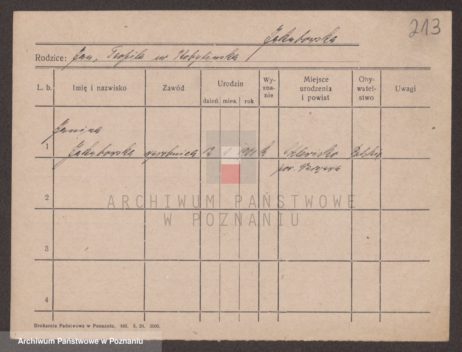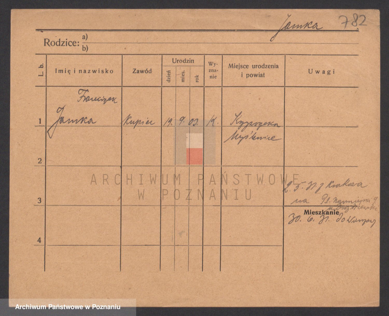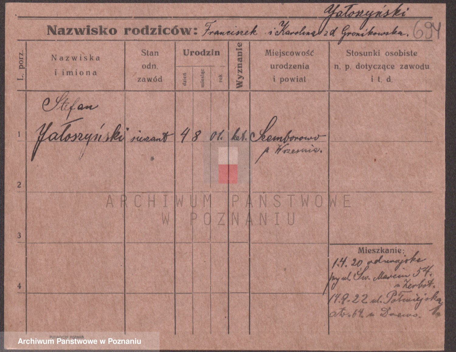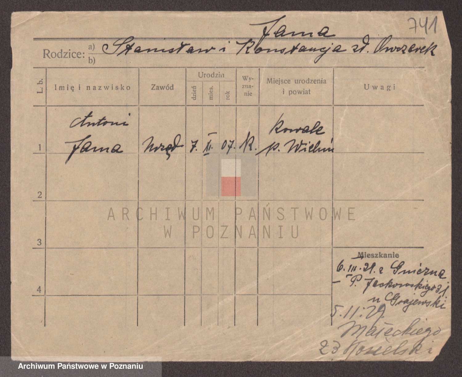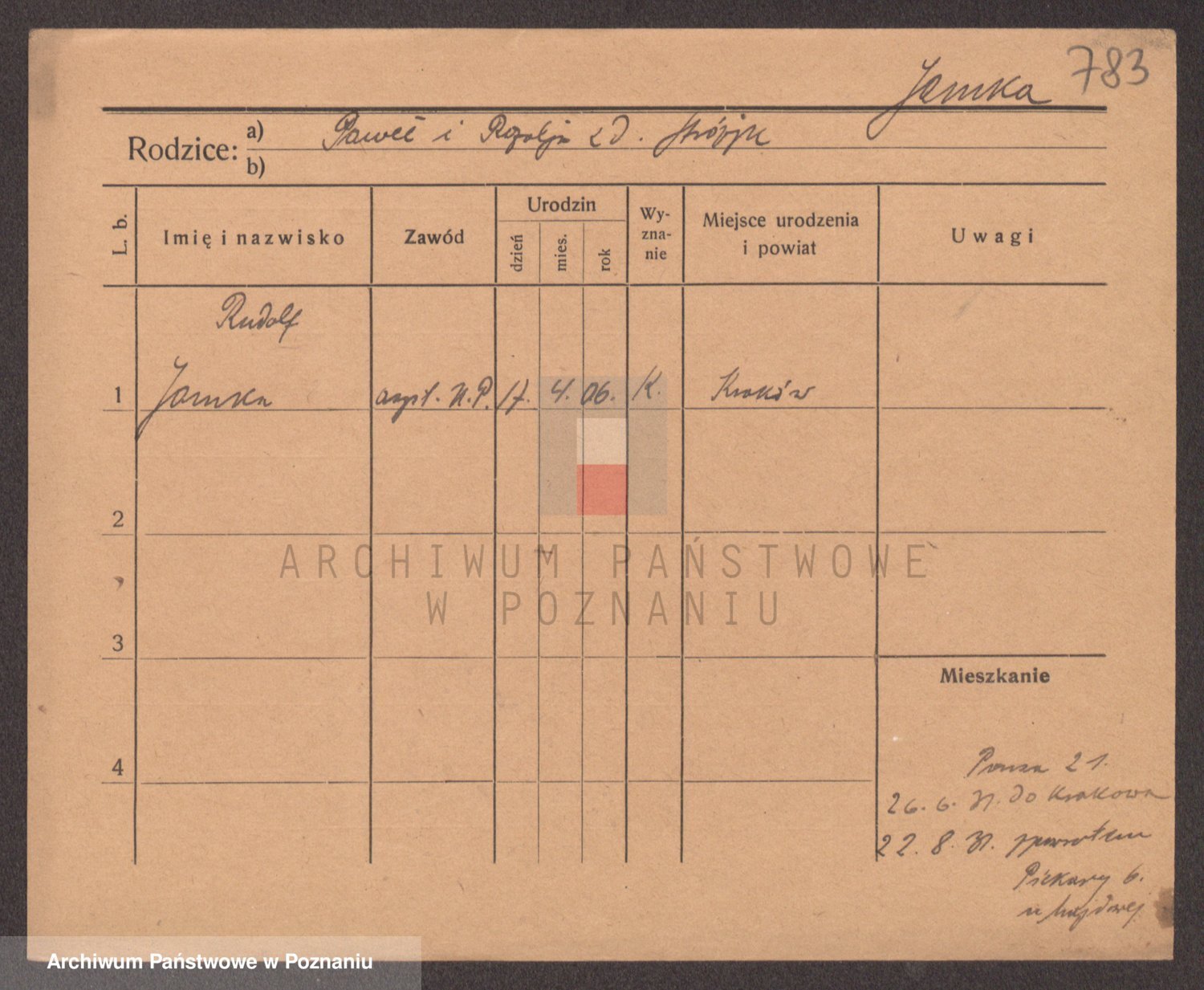 Podgląd karty osobowej dostępny jest po kliknięciu na nazwisko lub ikonkę karty. Można dokonywać powiększenia (ikony na górze) lub przechodzić między kolejnymi skanami (strzałki po bokach).