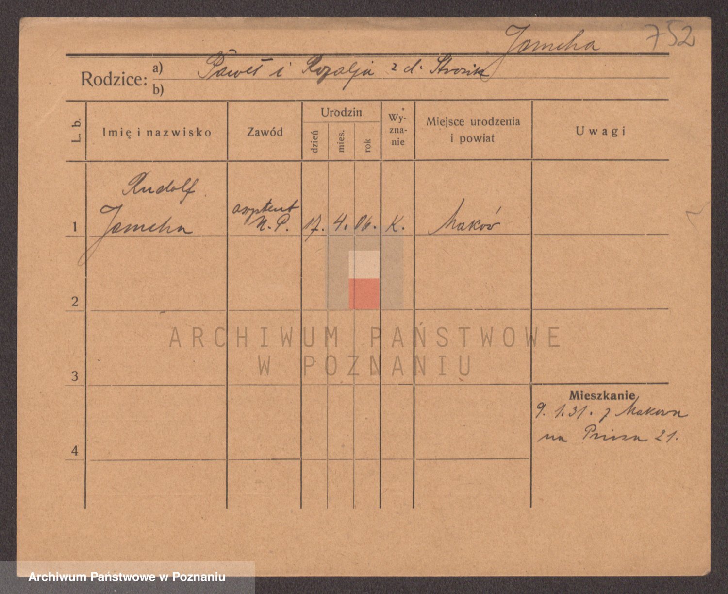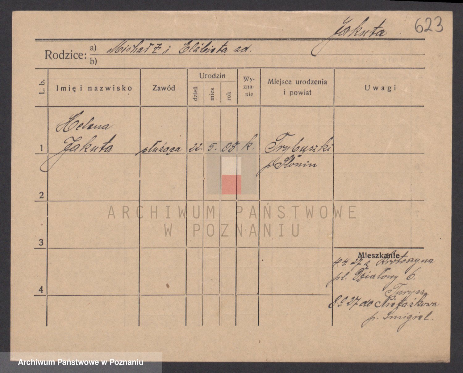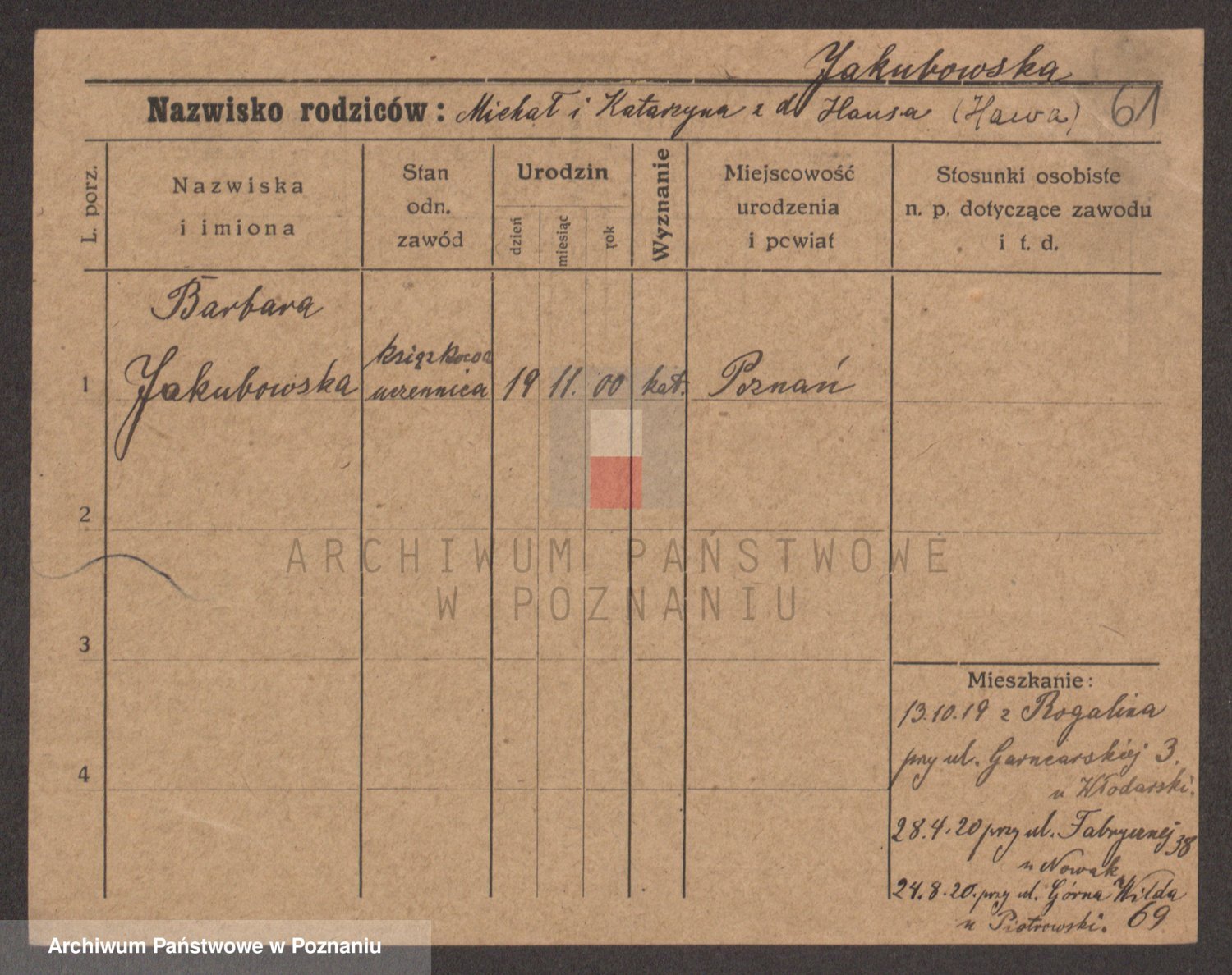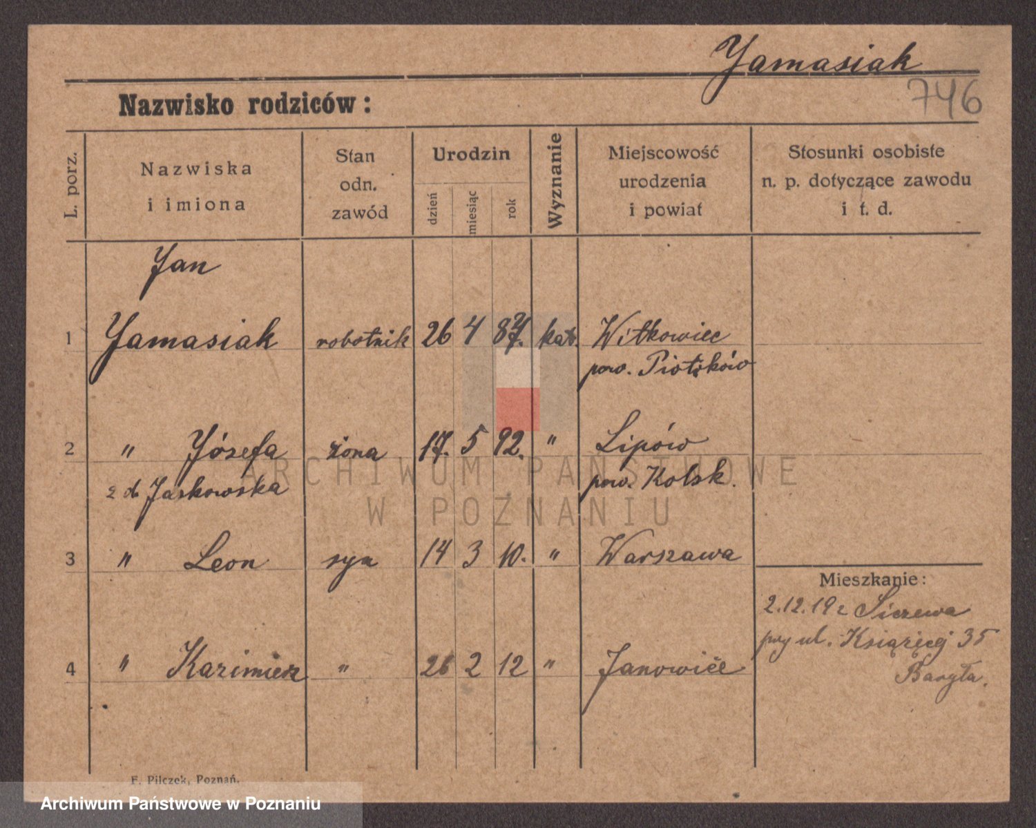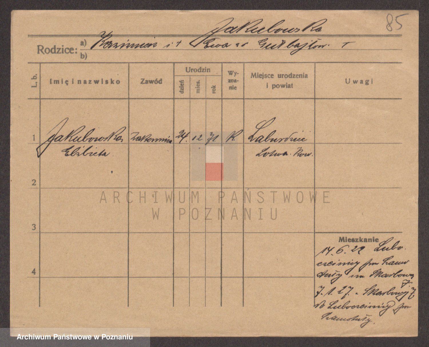 Podgląd karty osobowej dostępny jest po kliknięciu na nazwisko lub ikonkę karty. Można dokonywać powiększenia (ikony na górze) lub przechodzić między kolejnymi skanami (strzałki po bokach).