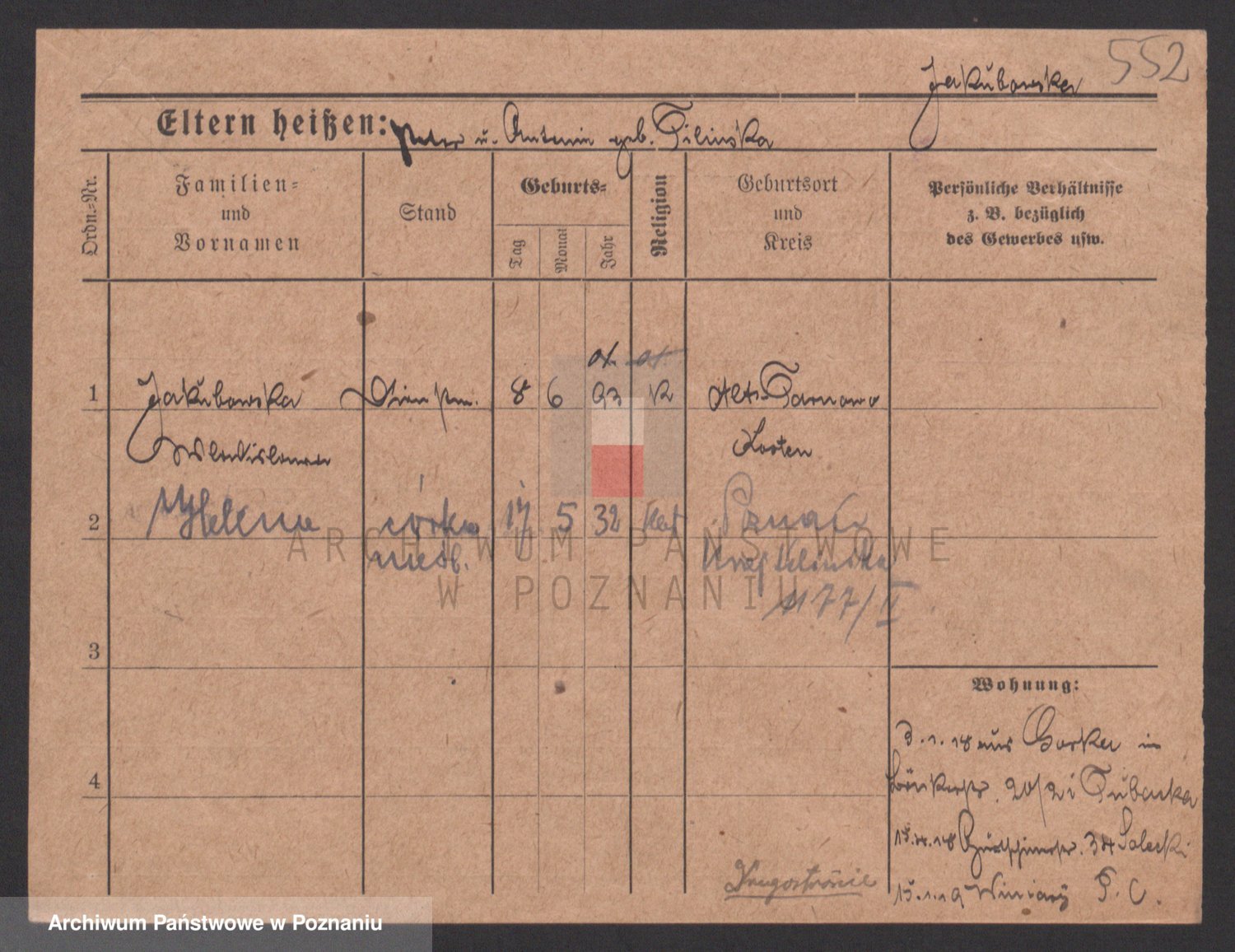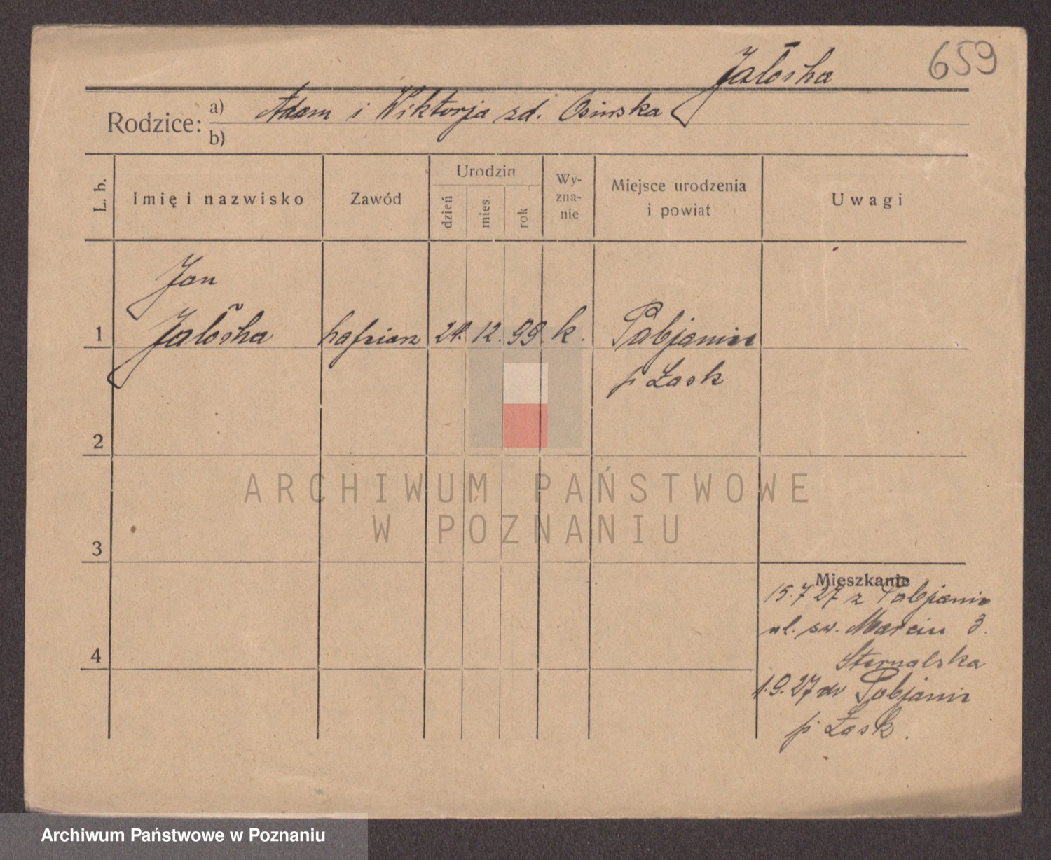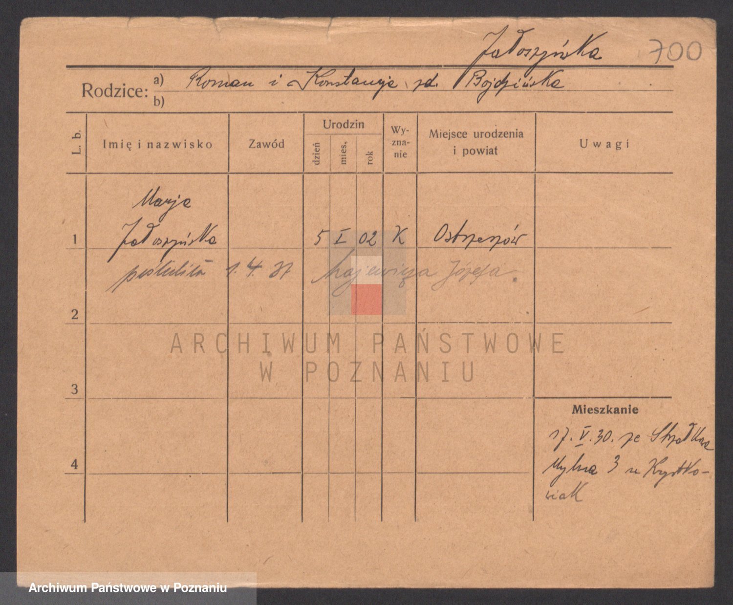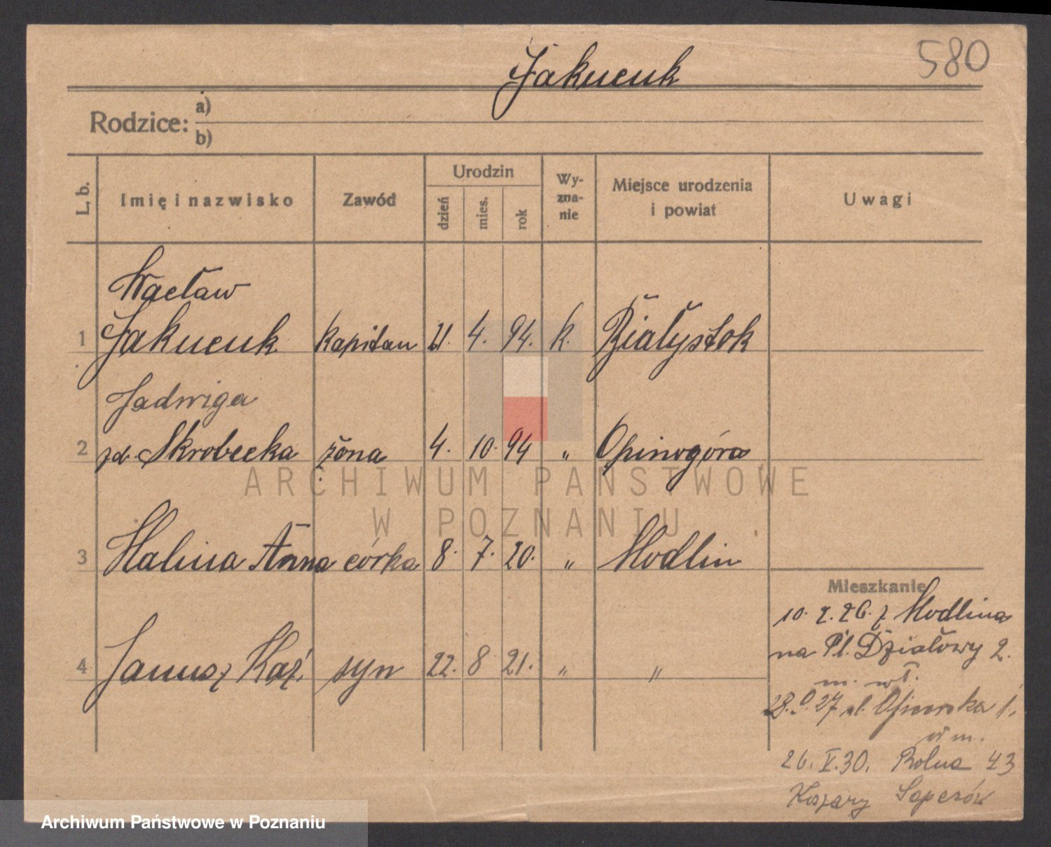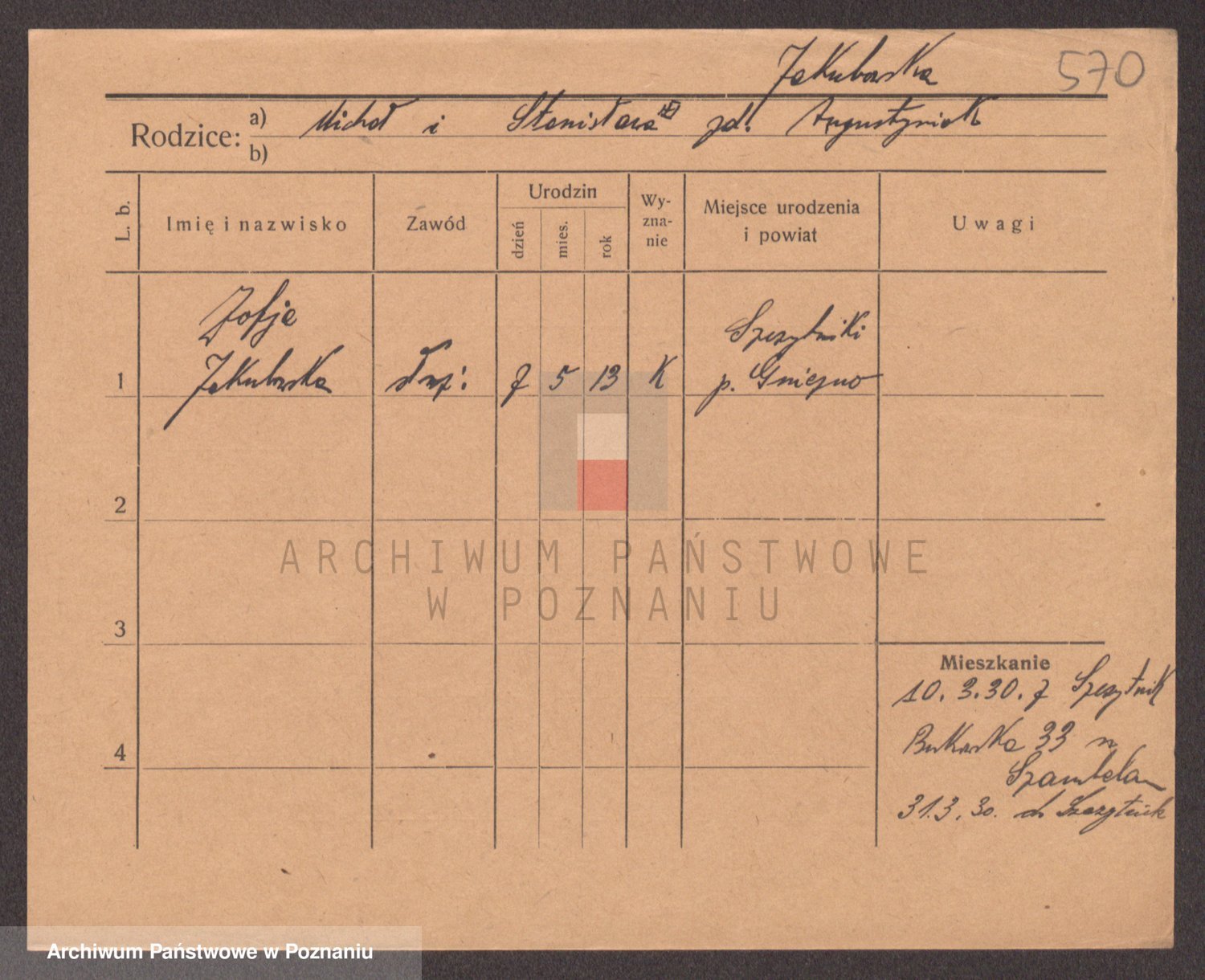 Podgląd karty osobowej dostępny jest po kliknięciu na nazwisko lub ikonkę karty. Można dokonywać powiększenia (ikony na górze) lub przechodzić między kolejnymi skanami (strzałki po bokach).