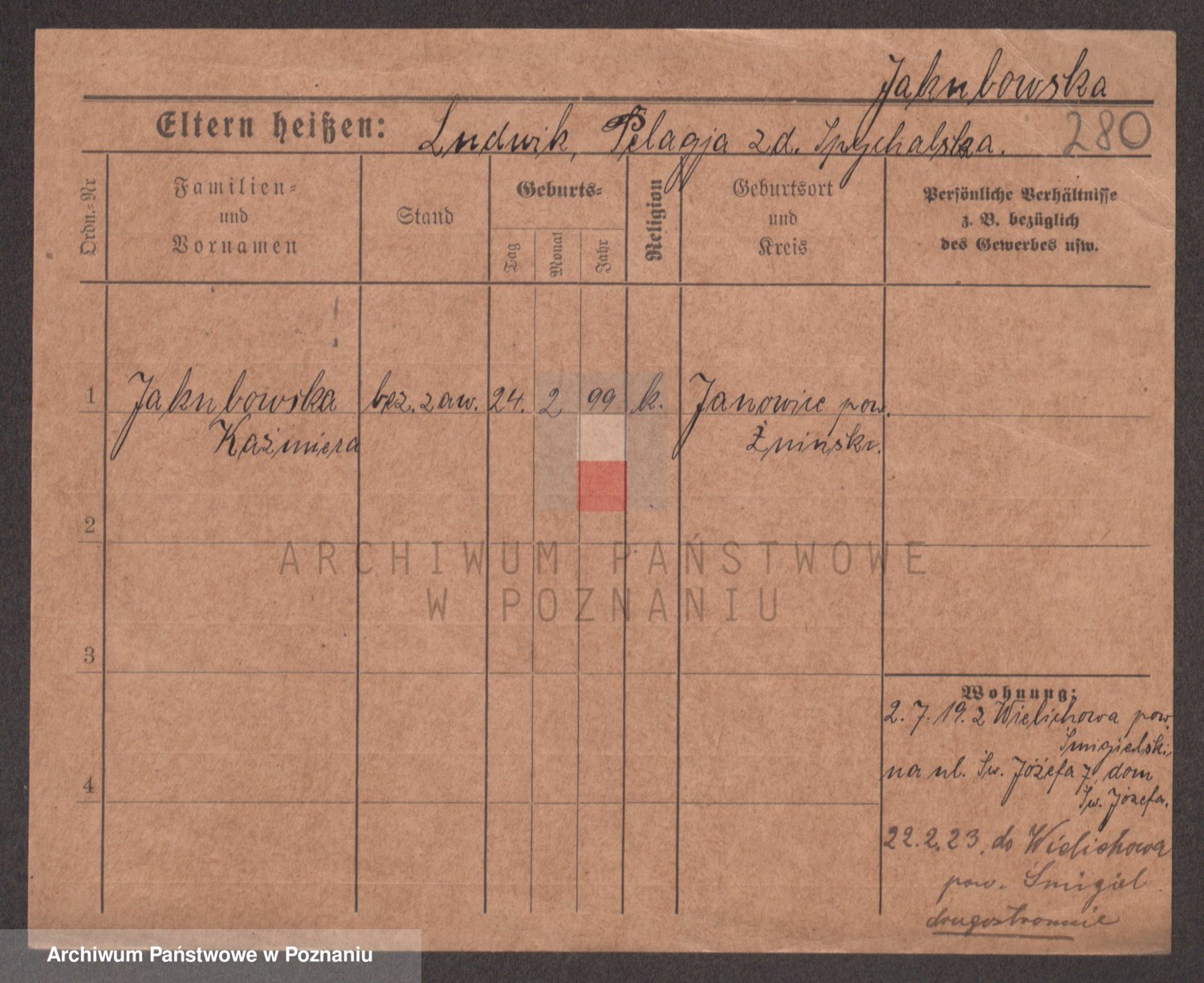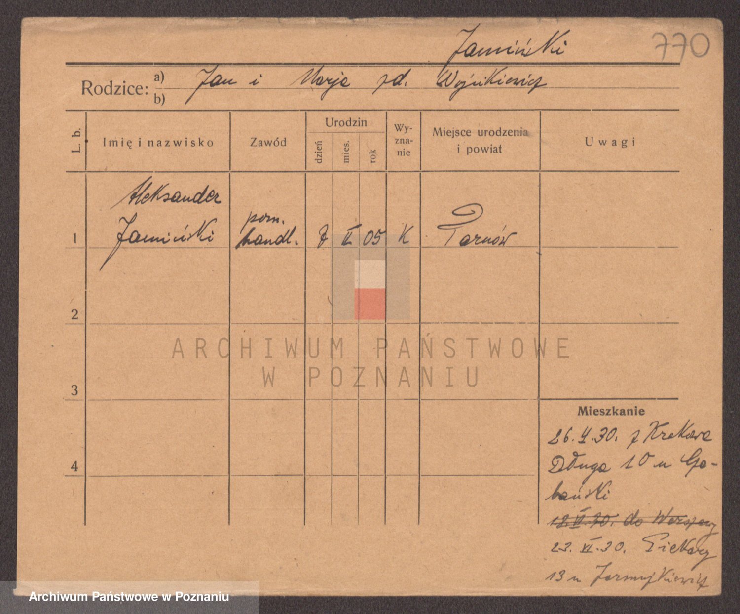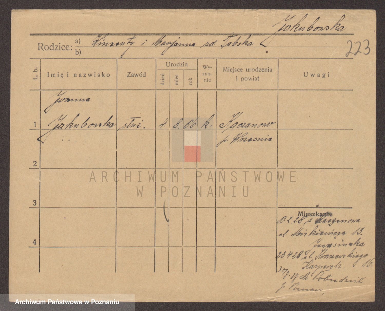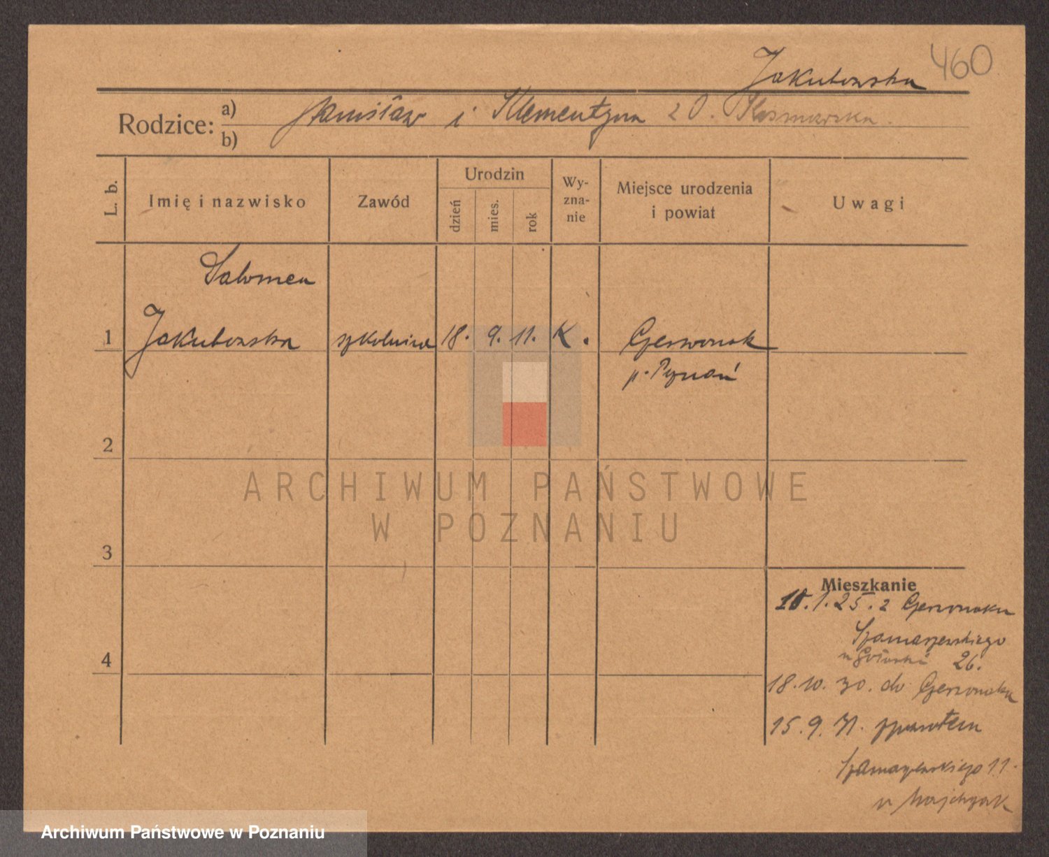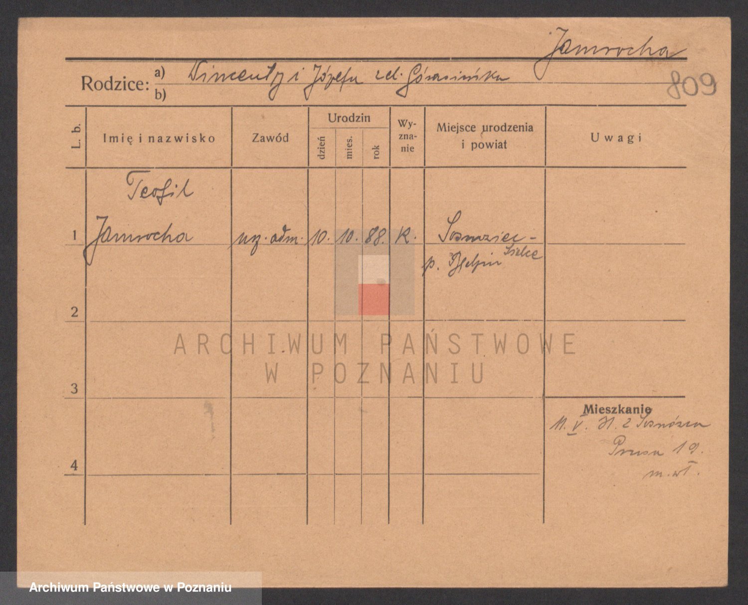 Podgląd karty osobowej dostępny jest po kliknięciu na nazwisko lub ikonkę karty. Można dokonywać powiększenia (ikony na górze) lub przechodzić między kolejnymi skanami (strzałki po bokach).
