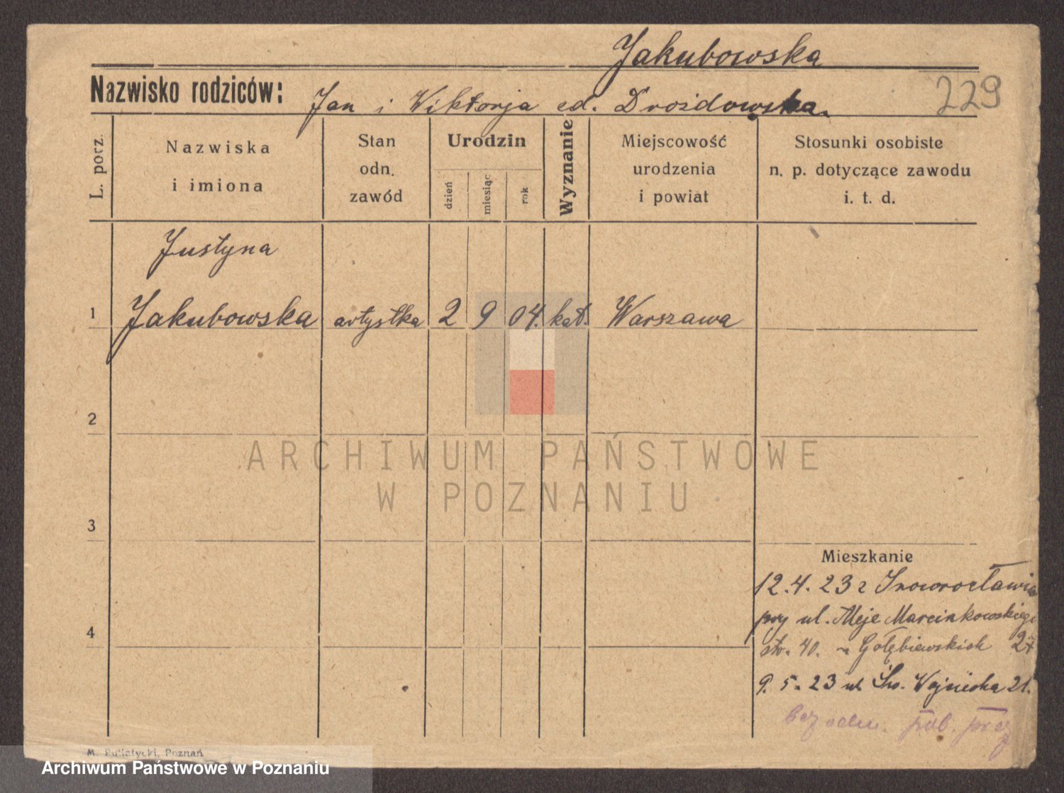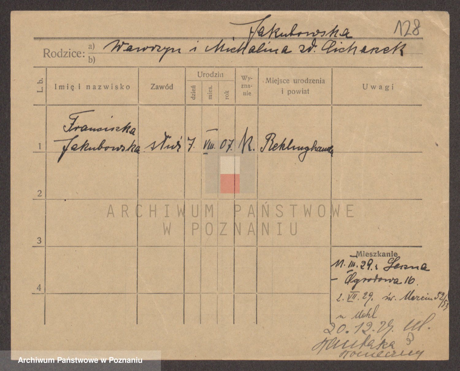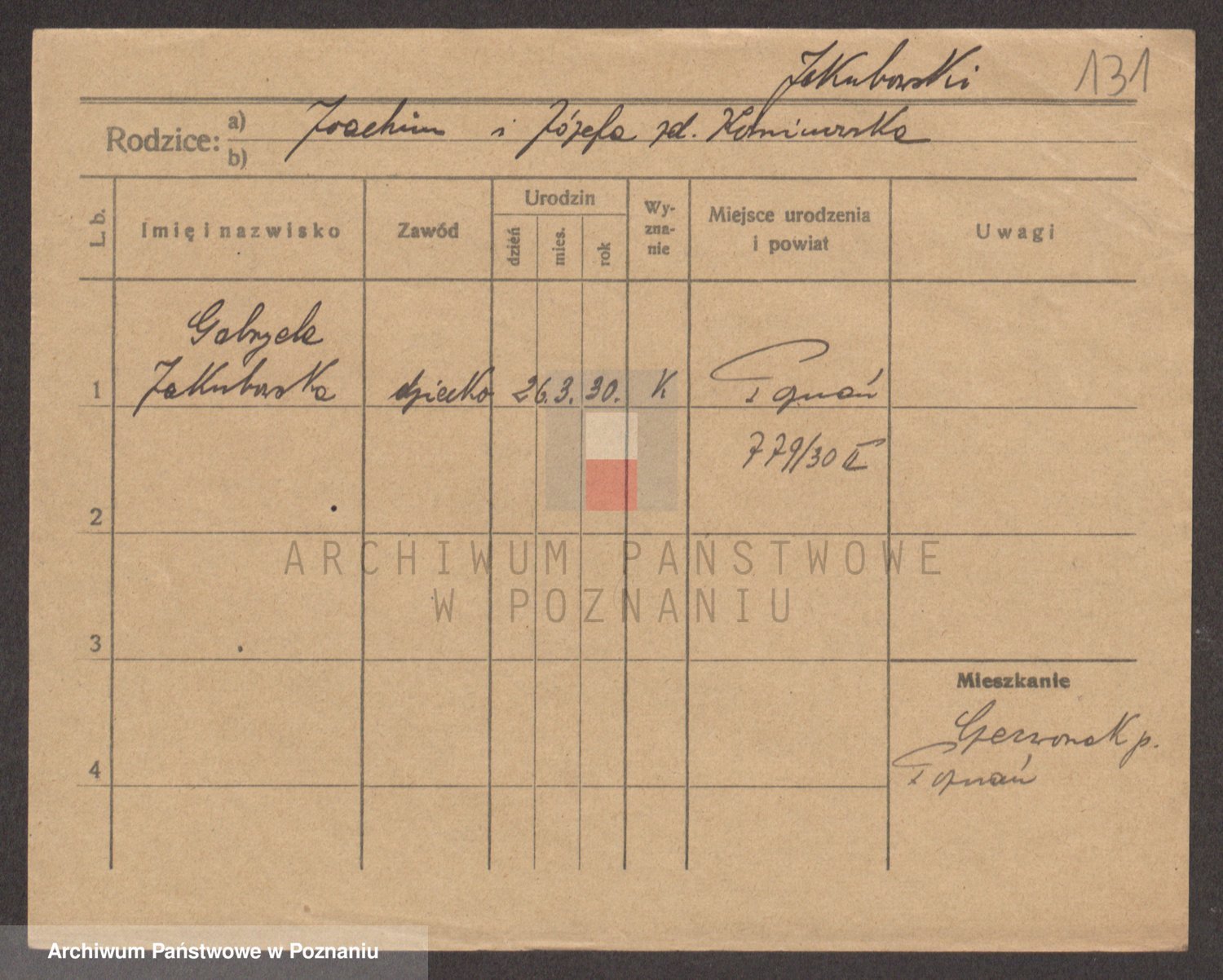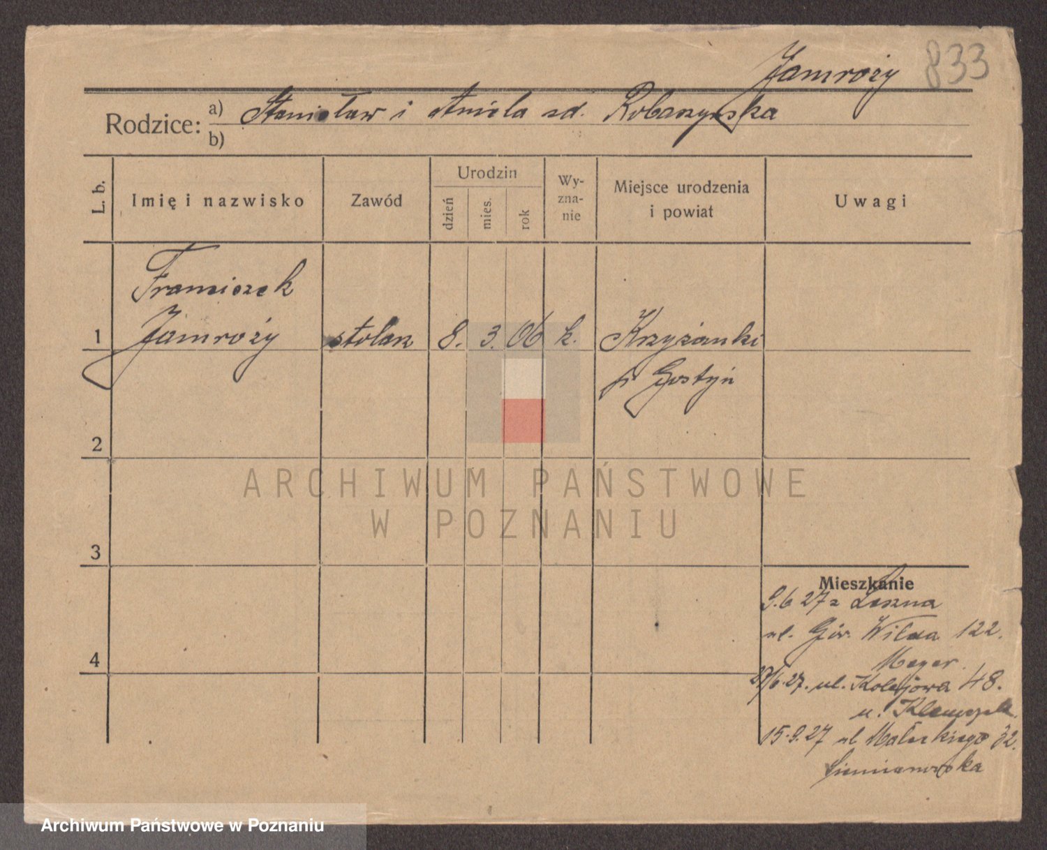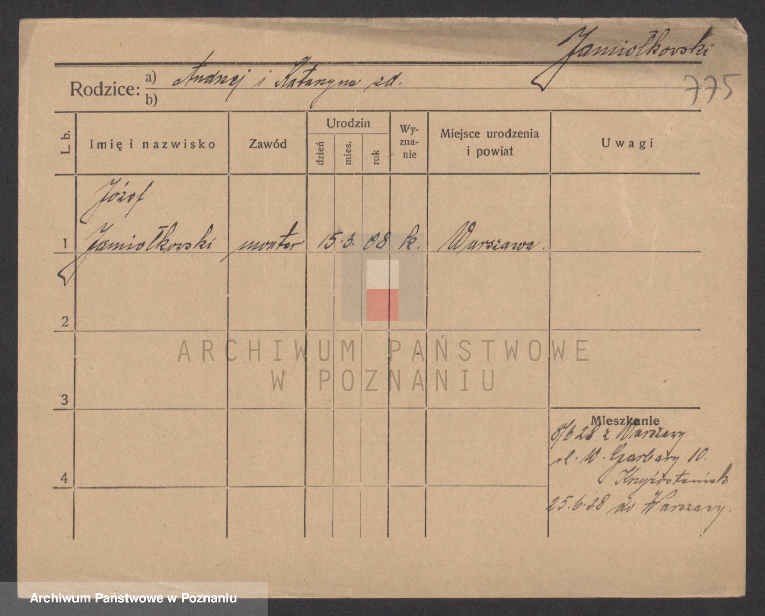 Podgląd karty osobowej dostępny jest po kliknięciu na nazwisko lub ikonkę karty. Można dokonywać powiększenia (ikony na górze) lub przechodzić między kolejnymi skanami (strzałki po bokach).