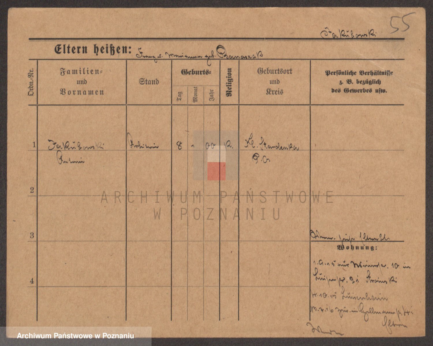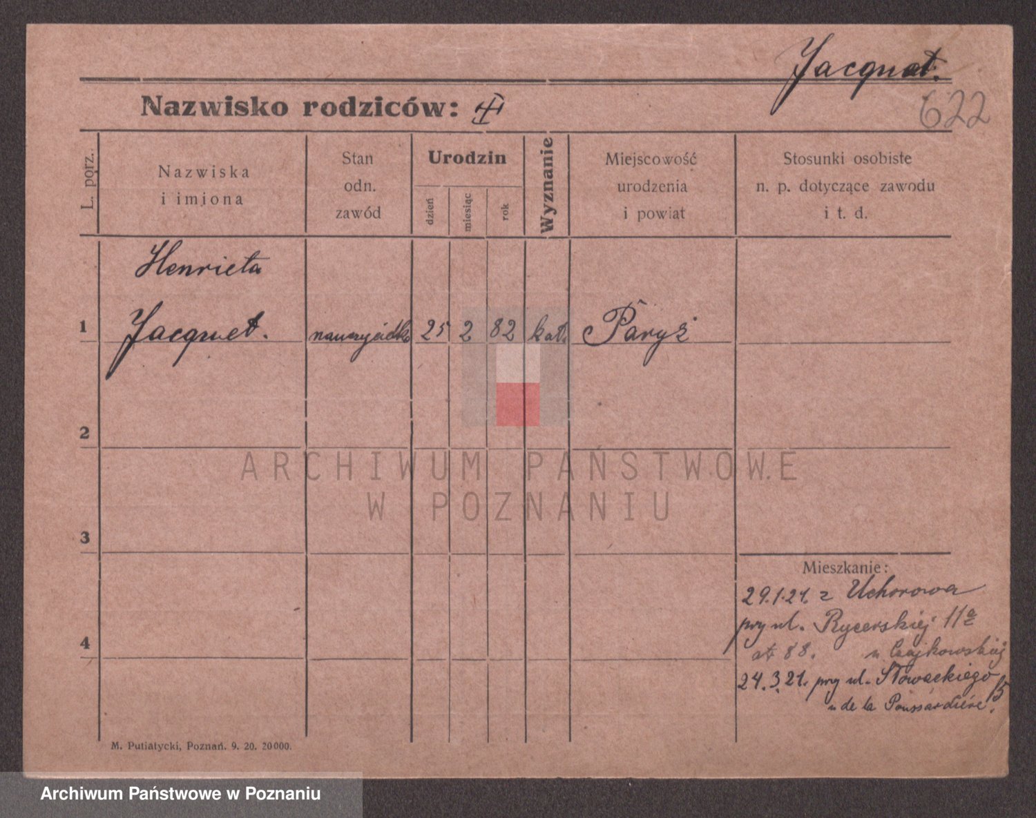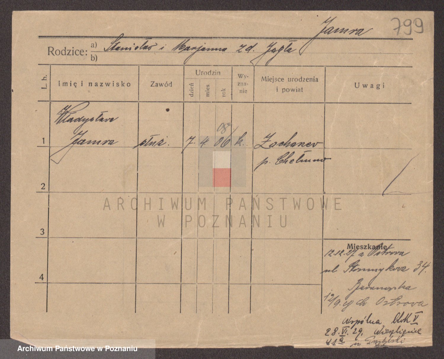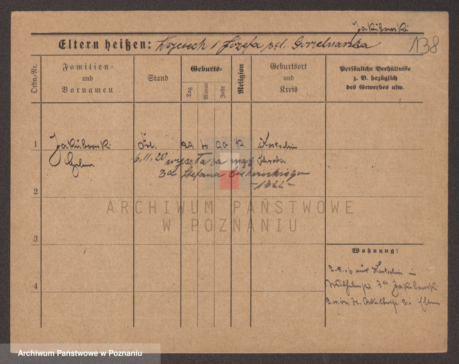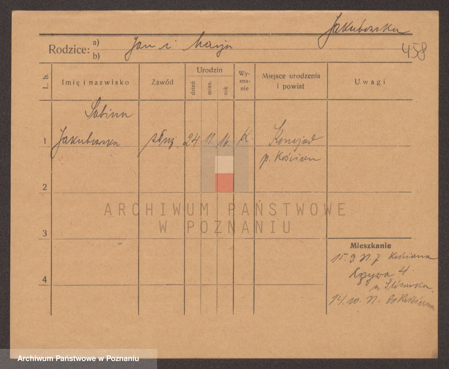 Podgląd karty osobowej dostępny jest po kliknięciu na nazwisko lub ikonkę karty. Można dokonywać powiększenia (ikony na górze) lub przechodzić między kolejnymi skanami (strzałki po bokach).