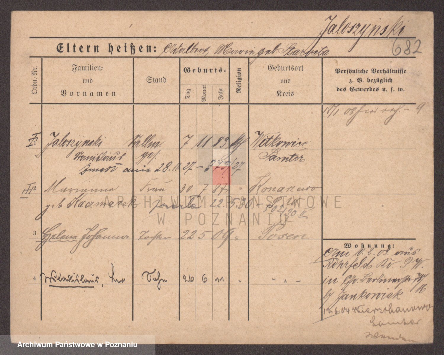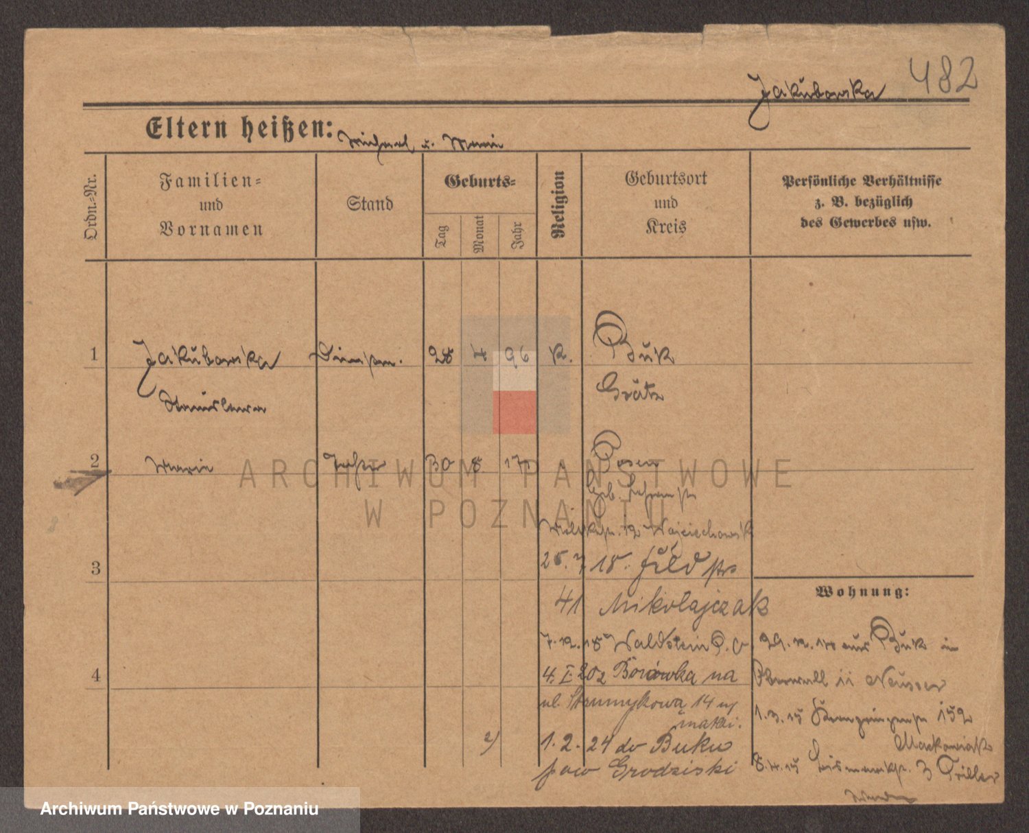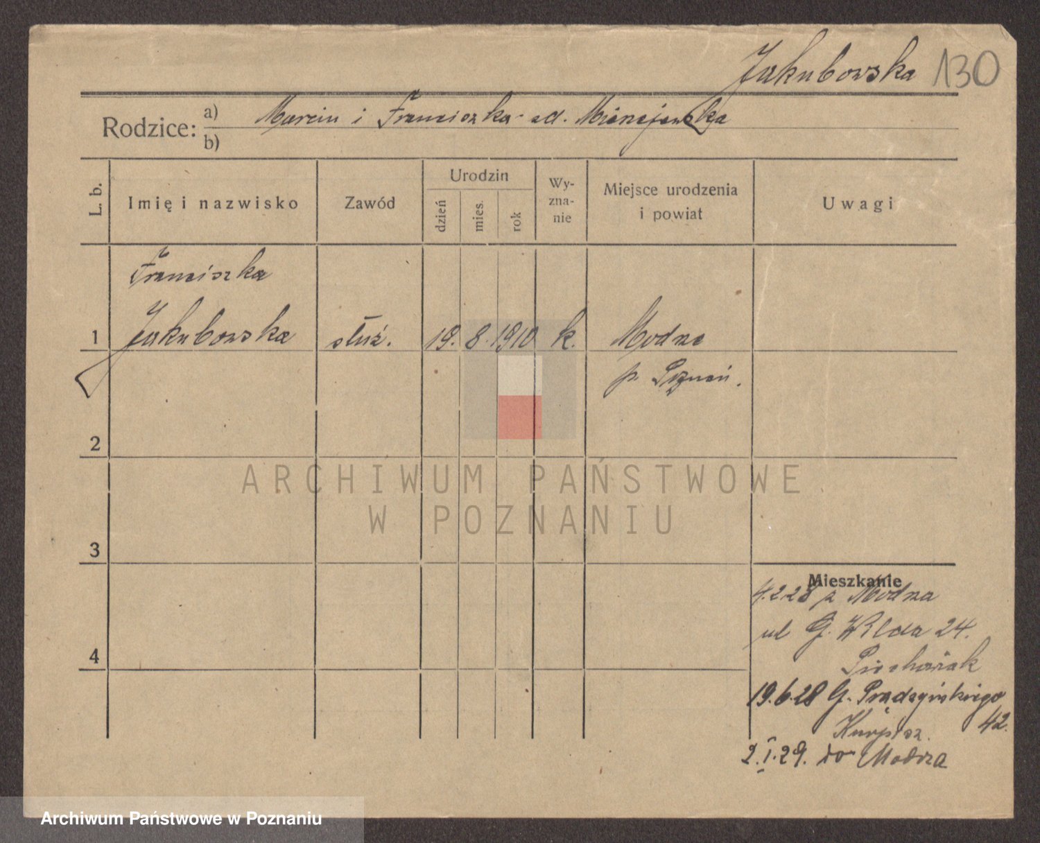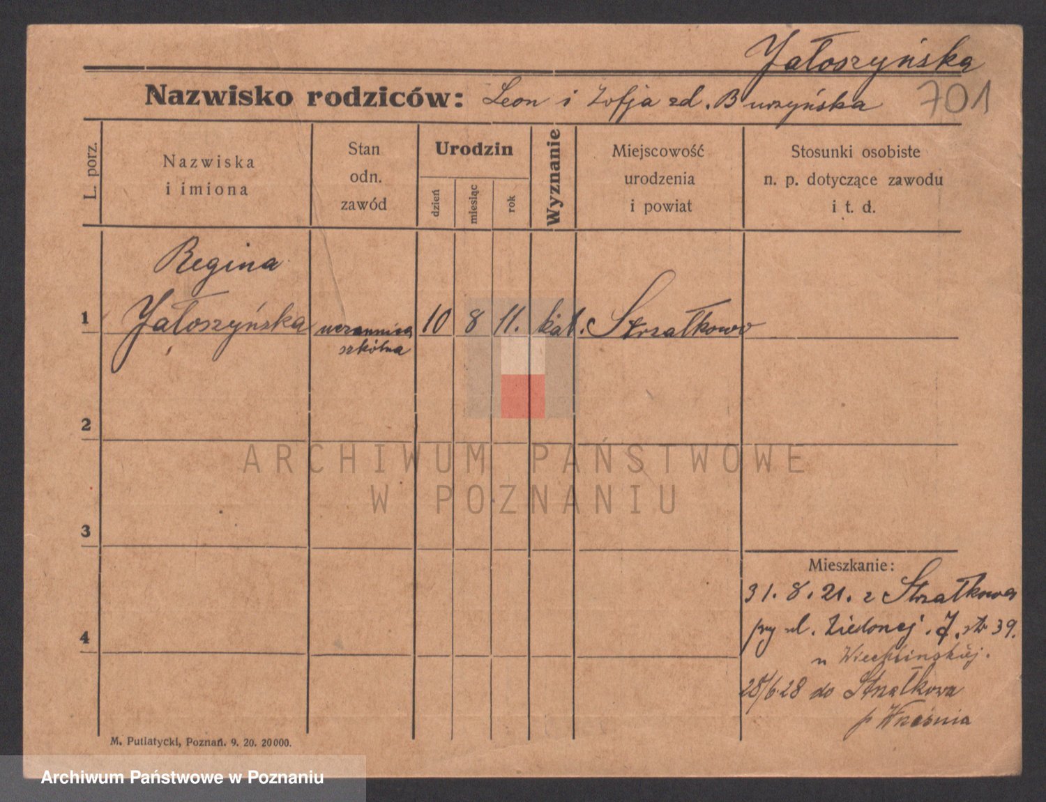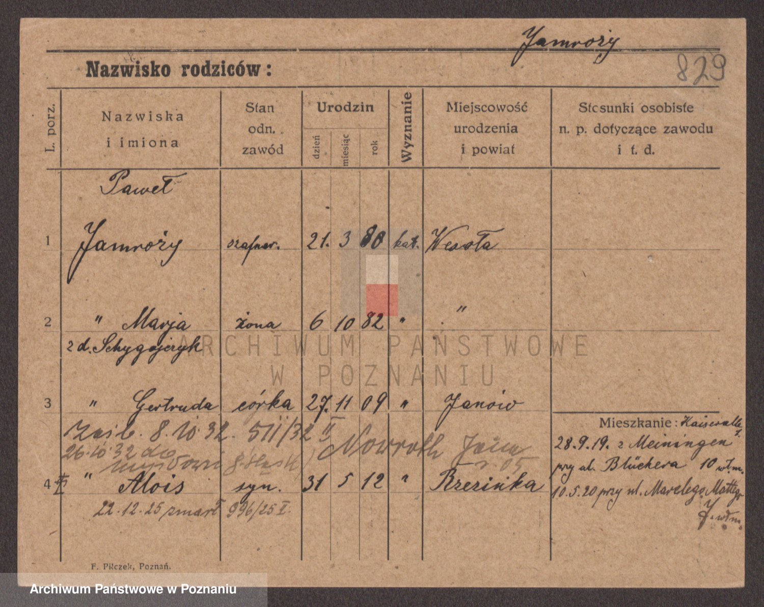 Podgląd karty osobowej dostępny jest po kliknięciu na nazwisko lub ikonkę karty. Można dokonywać powiększenia (ikony na górze) lub przechodzić między kolejnymi skanami (strzałki po bokach).