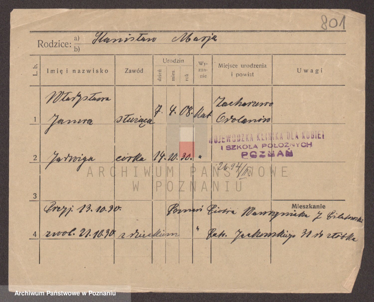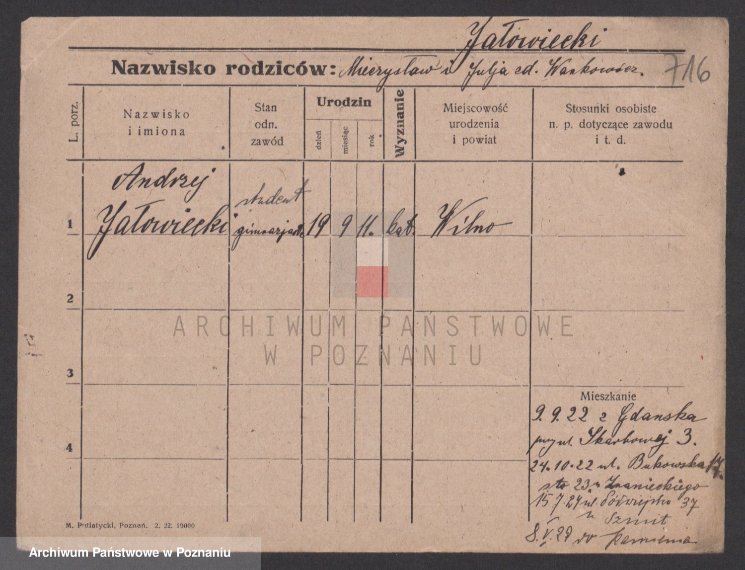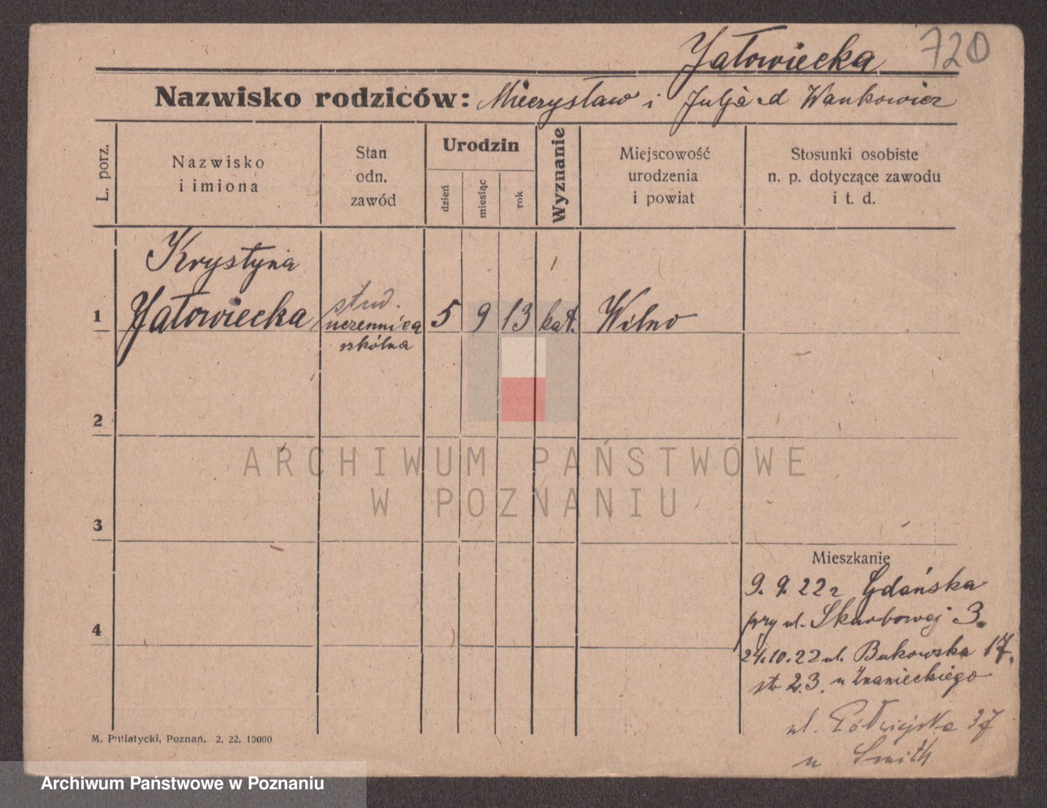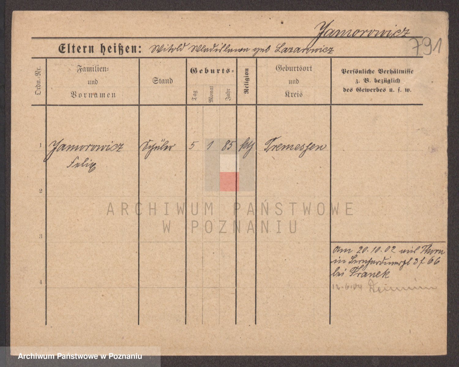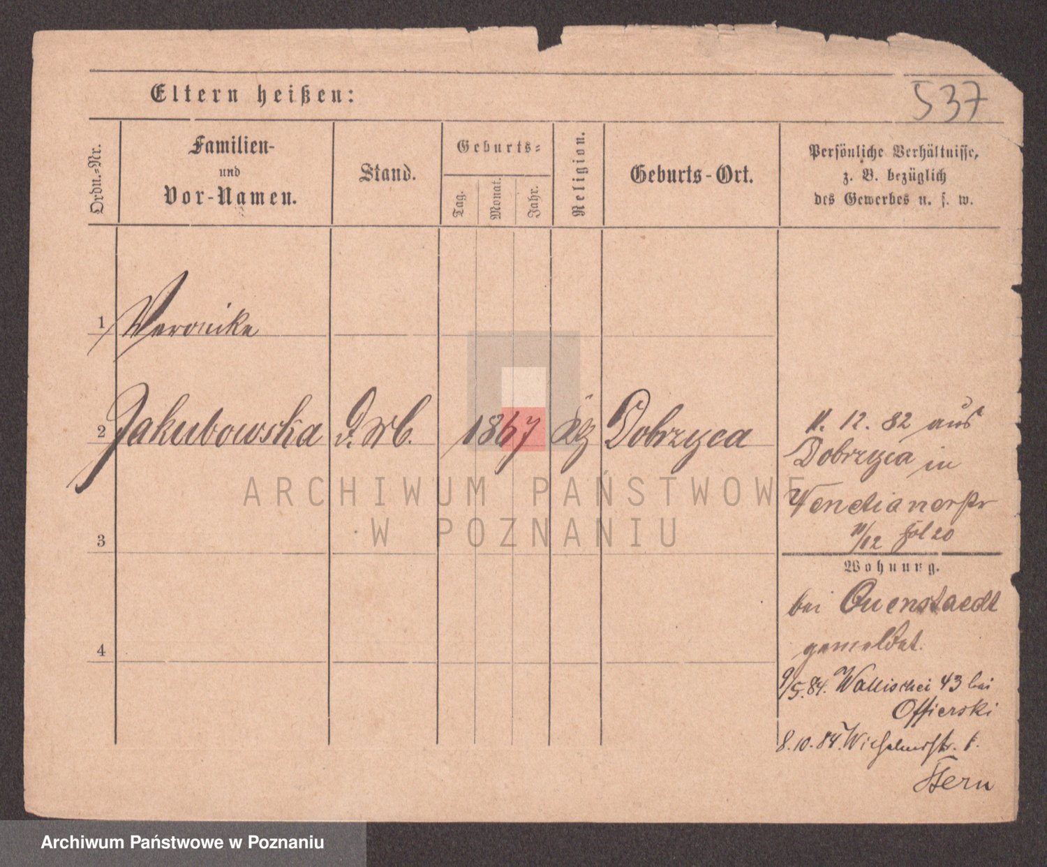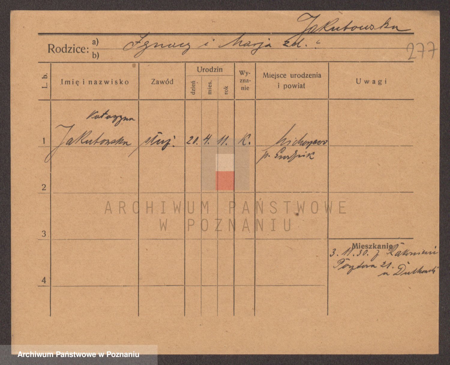 Podgląd karty osobowej dostępny jest po kliknięciu na nazwisko lub ikonkę karty. Można dokonywać powiększenia (ikony na górze) lub przechodzić między kolejnymi skanami (strzałki po bokach).