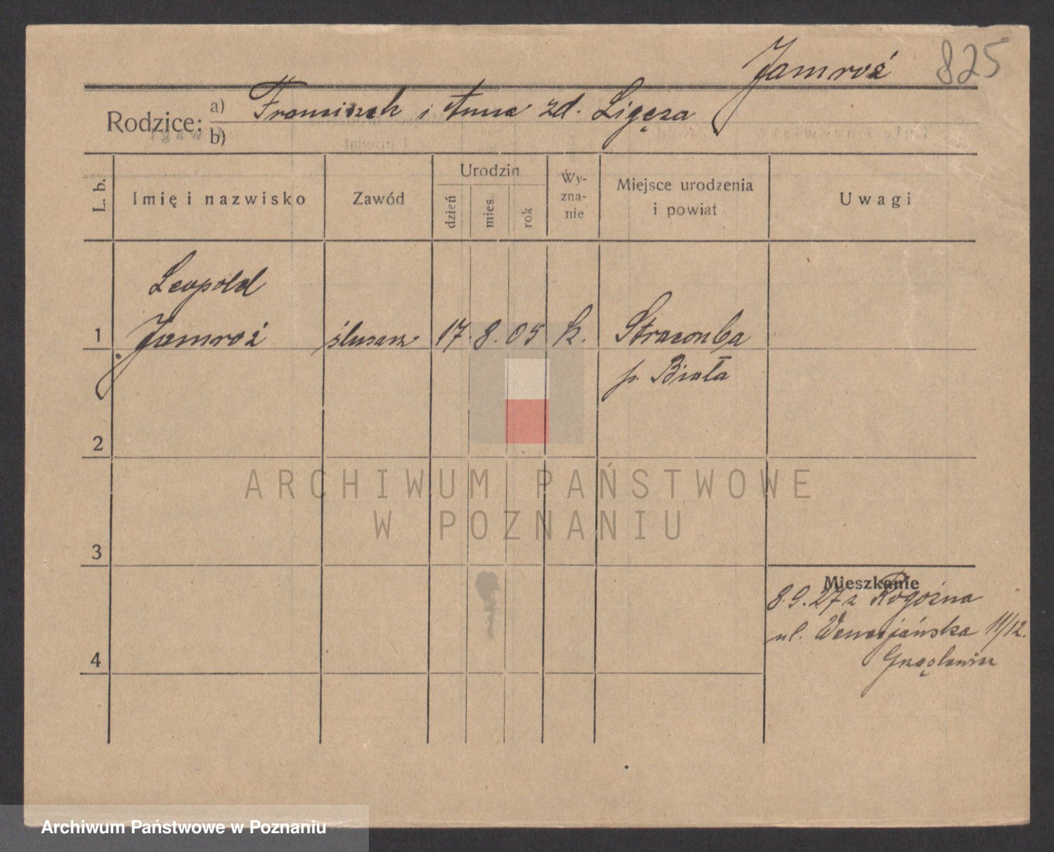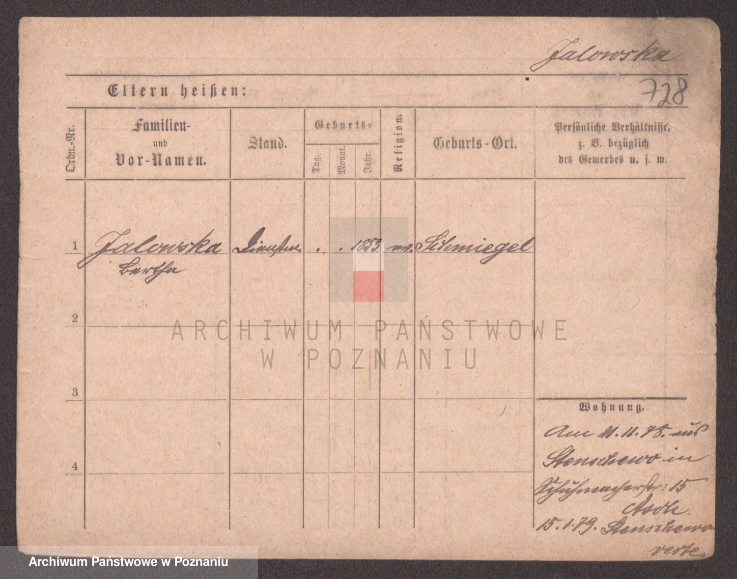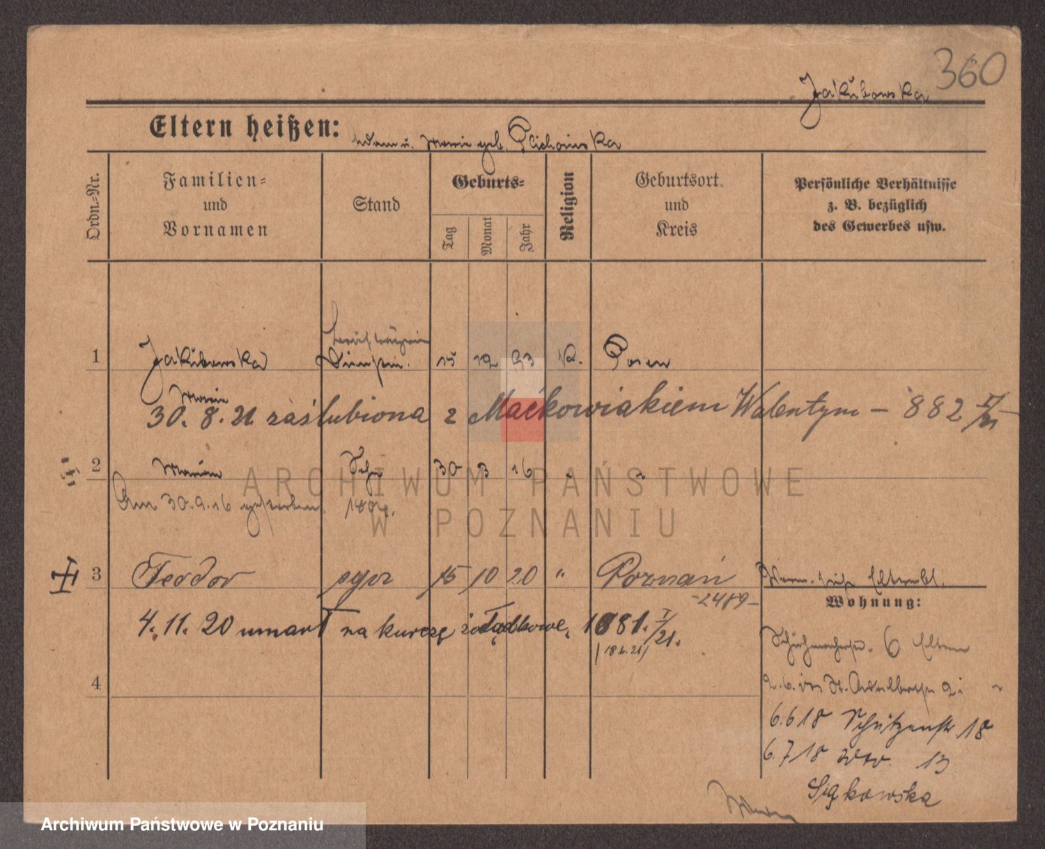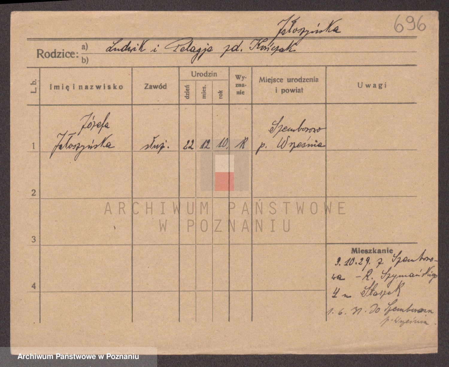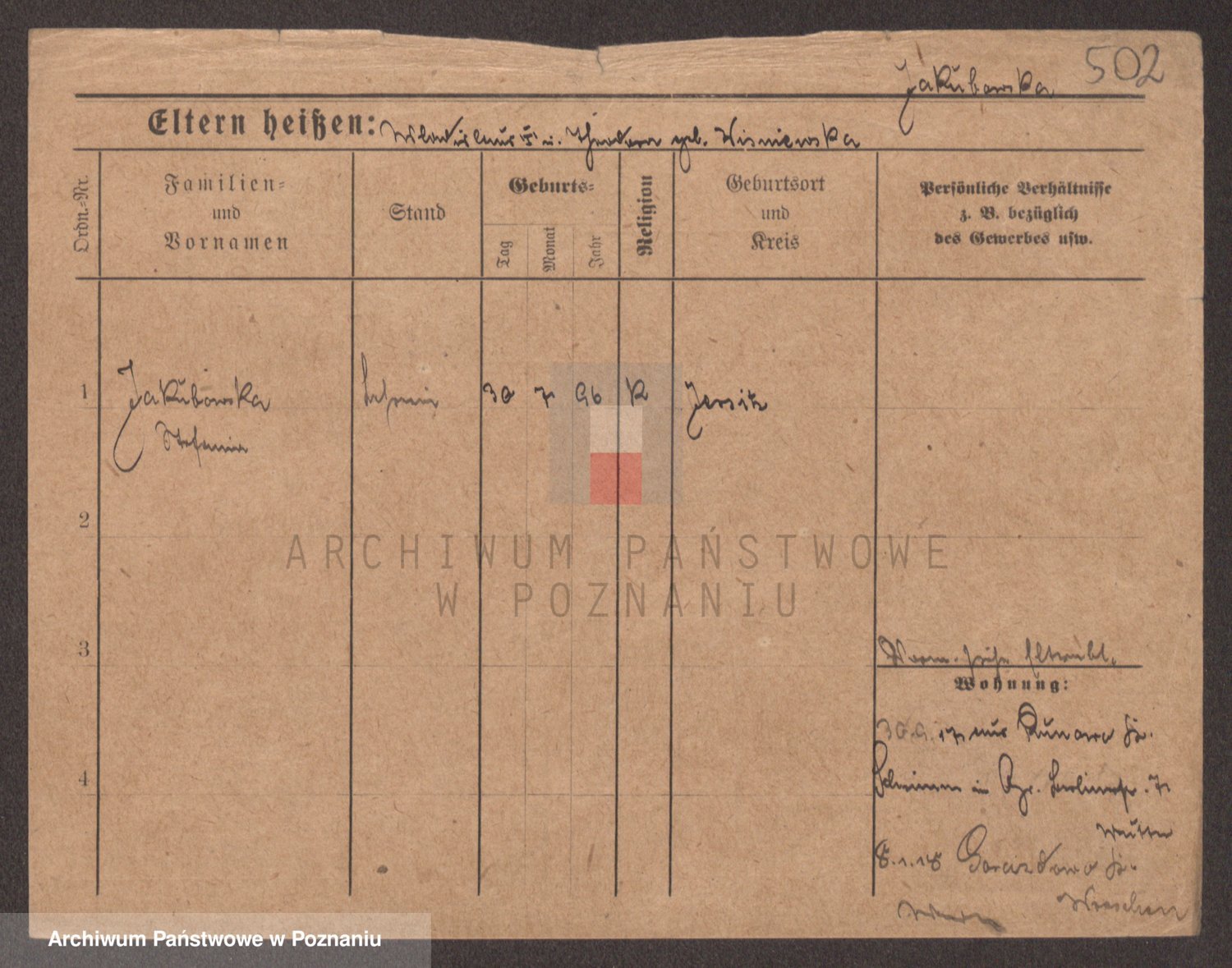 Podgląd karty osobowej dostępny jest po kliknięciu na nazwisko lub ikonkę karty. Można dokonywać powiększenia (ikony na górze) lub przechodzić między kolejnymi skanami (strzałki po bokach).