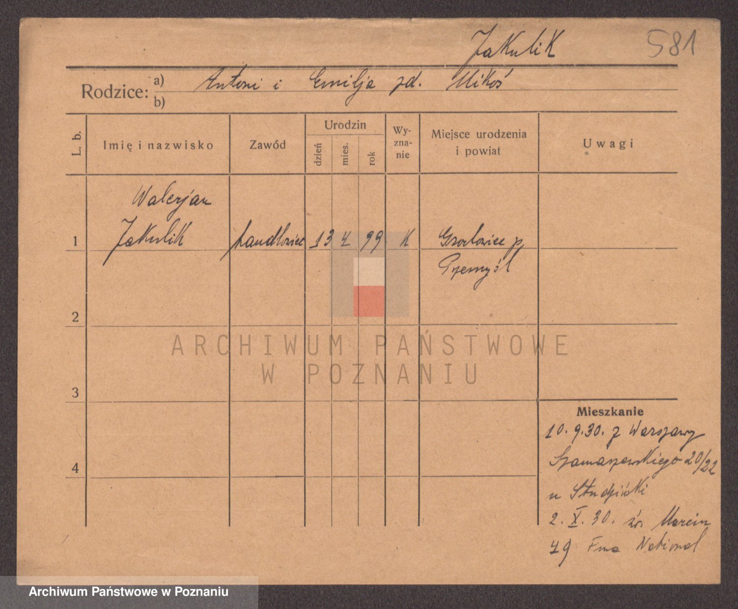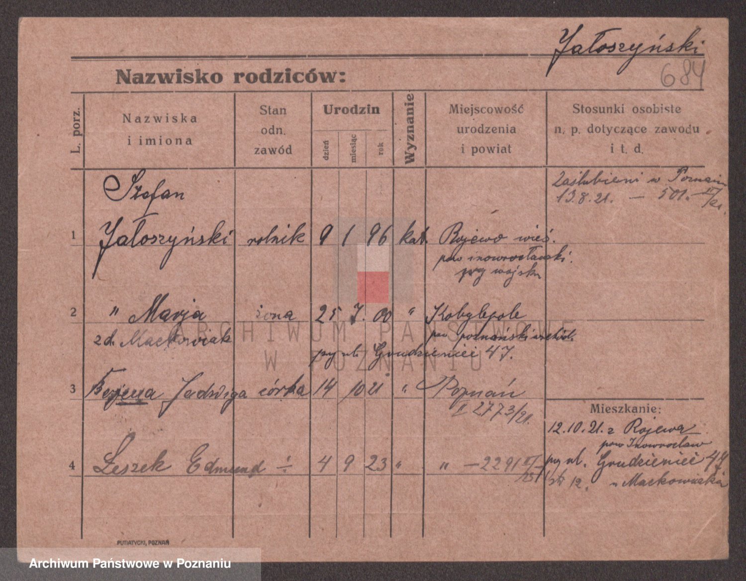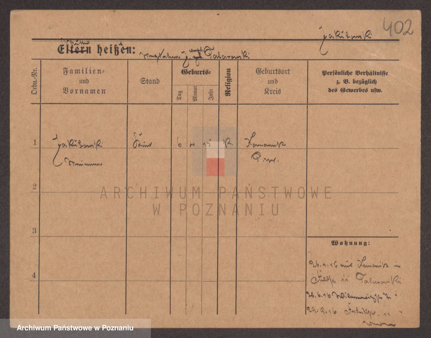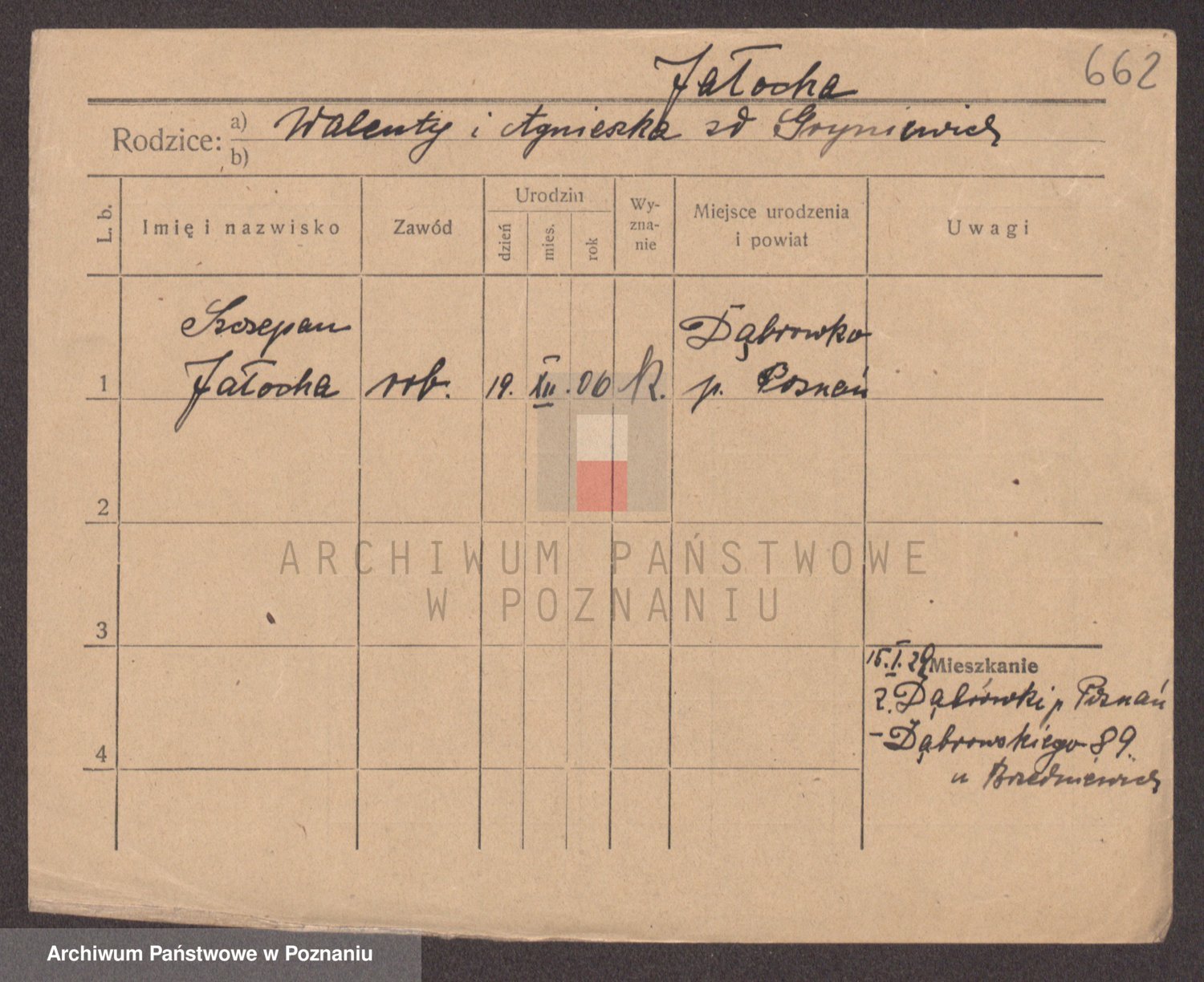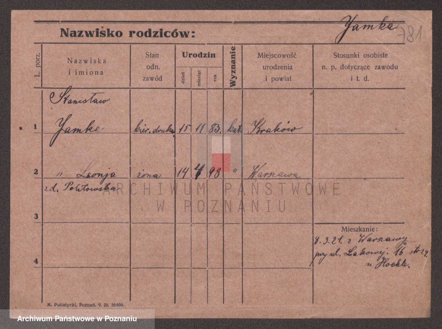 Podgląd karty osobowej dostępny jest po kliknięciu na nazwisko lub ikonkę karty. Można dokonywać powiększenia (ikony na górze) lub przechodzić między kolejnymi skanami (strzałki po bokach).