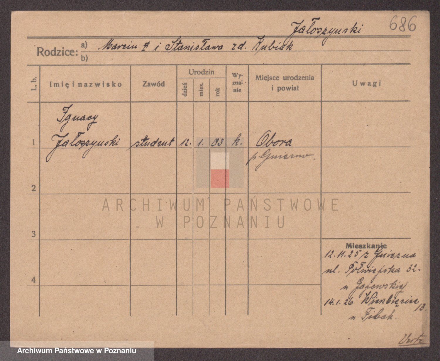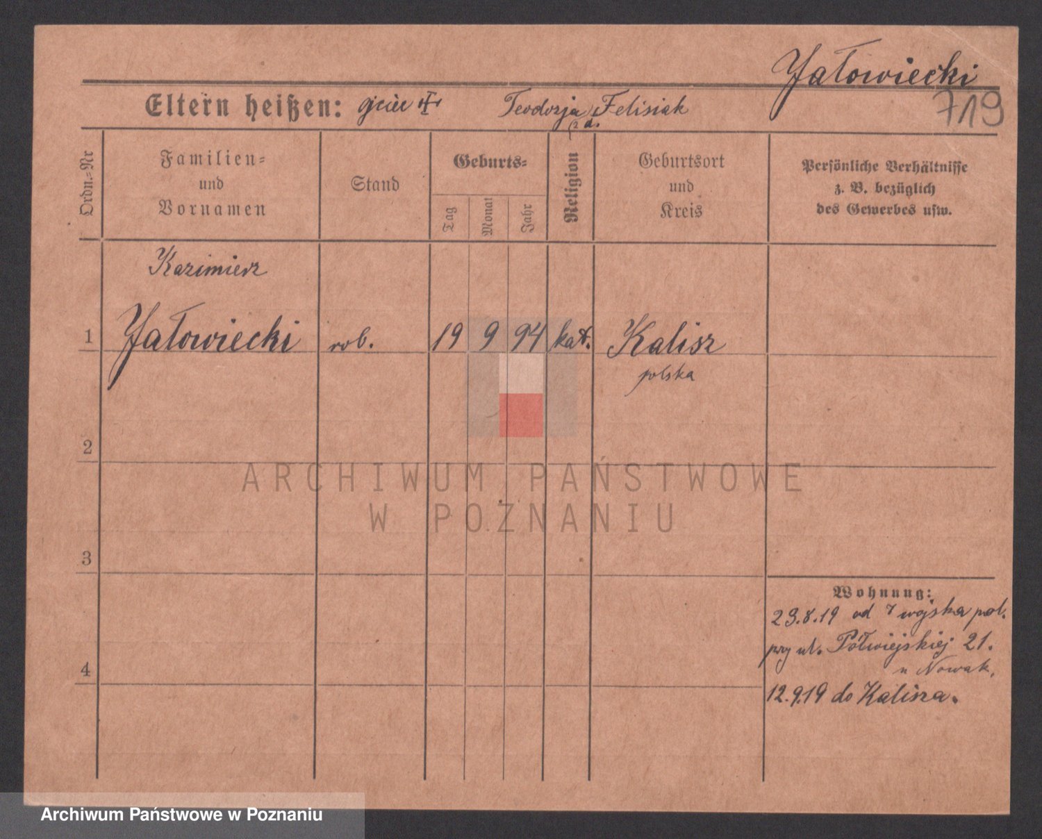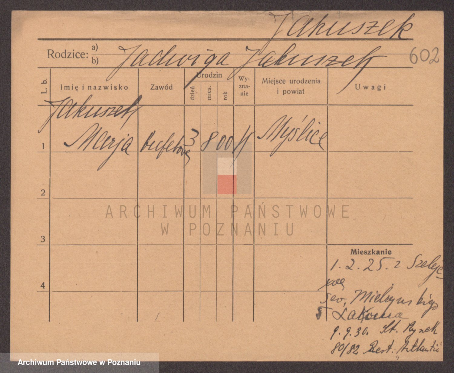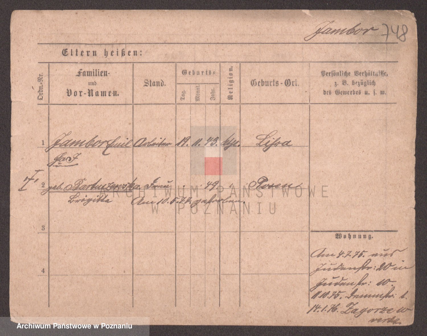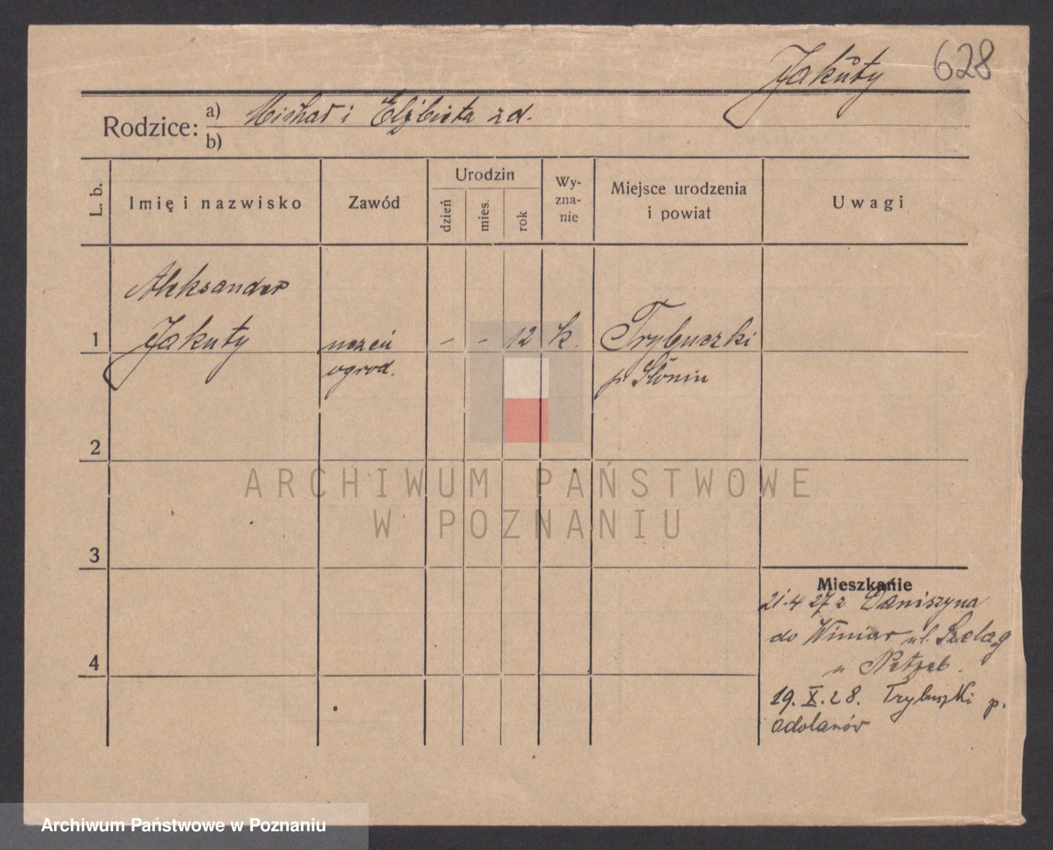 Podgląd karty osobowej dostępny jest po kliknięciu na nazwisko lub ikonkę karty. Można dokonywać powiększenia (ikony na górze) lub przechodzić między kolejnymi skanami (strzałki po bokach).