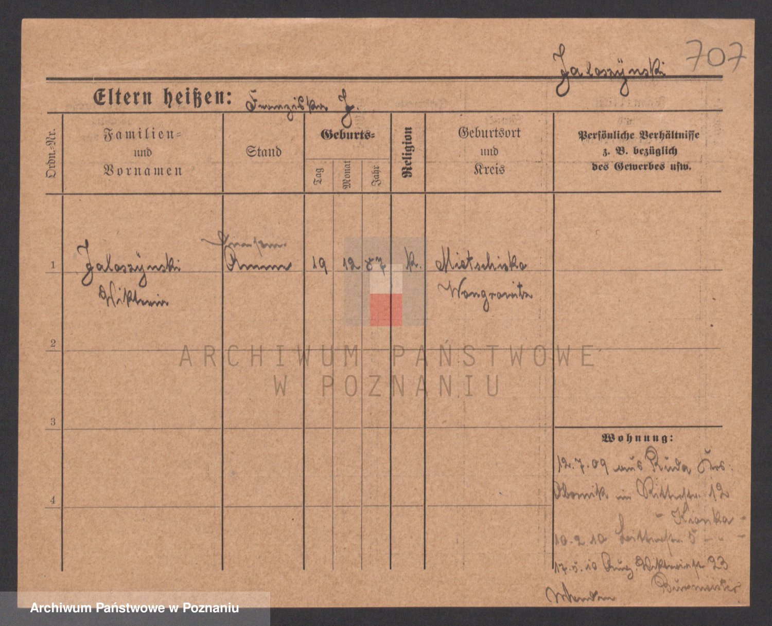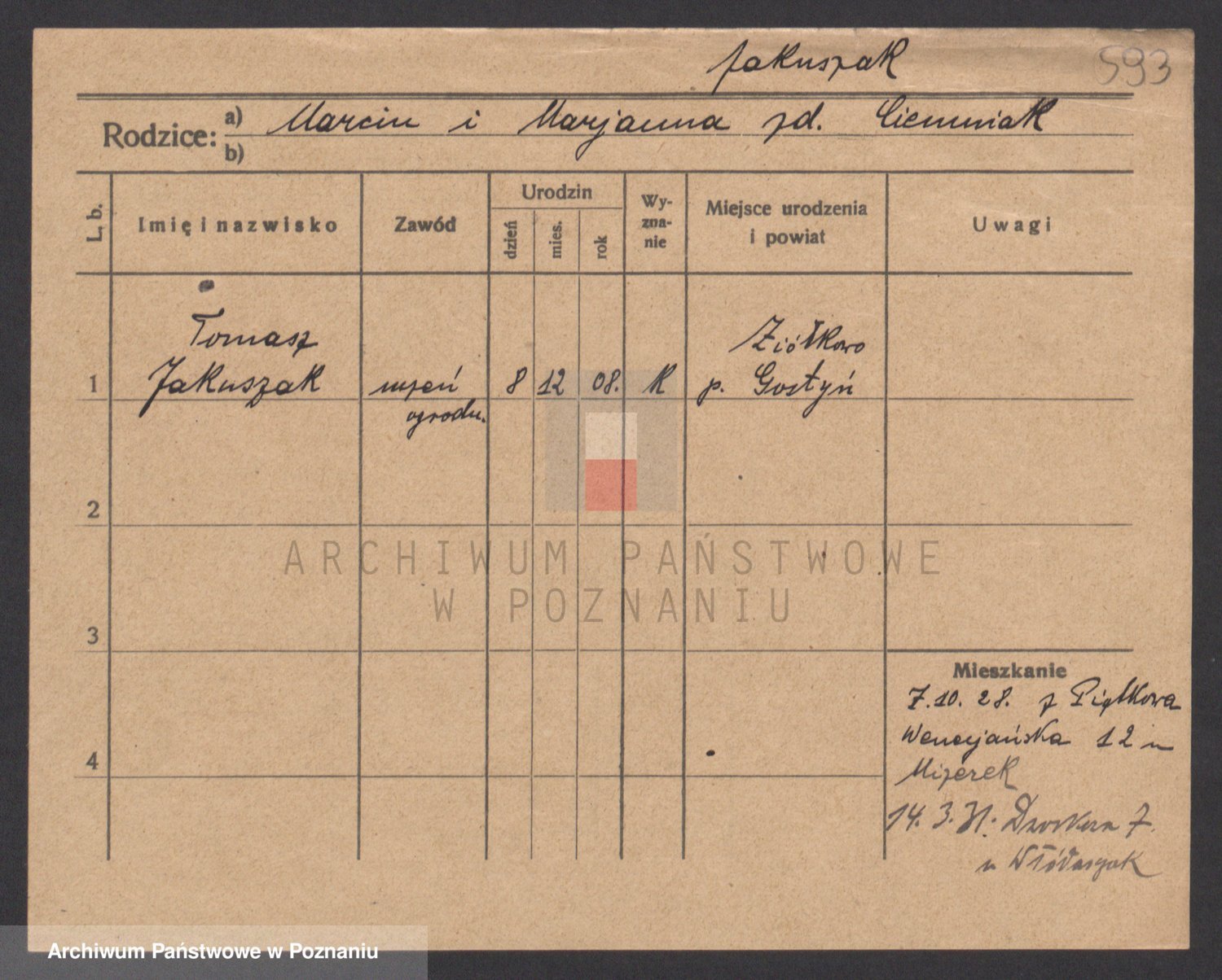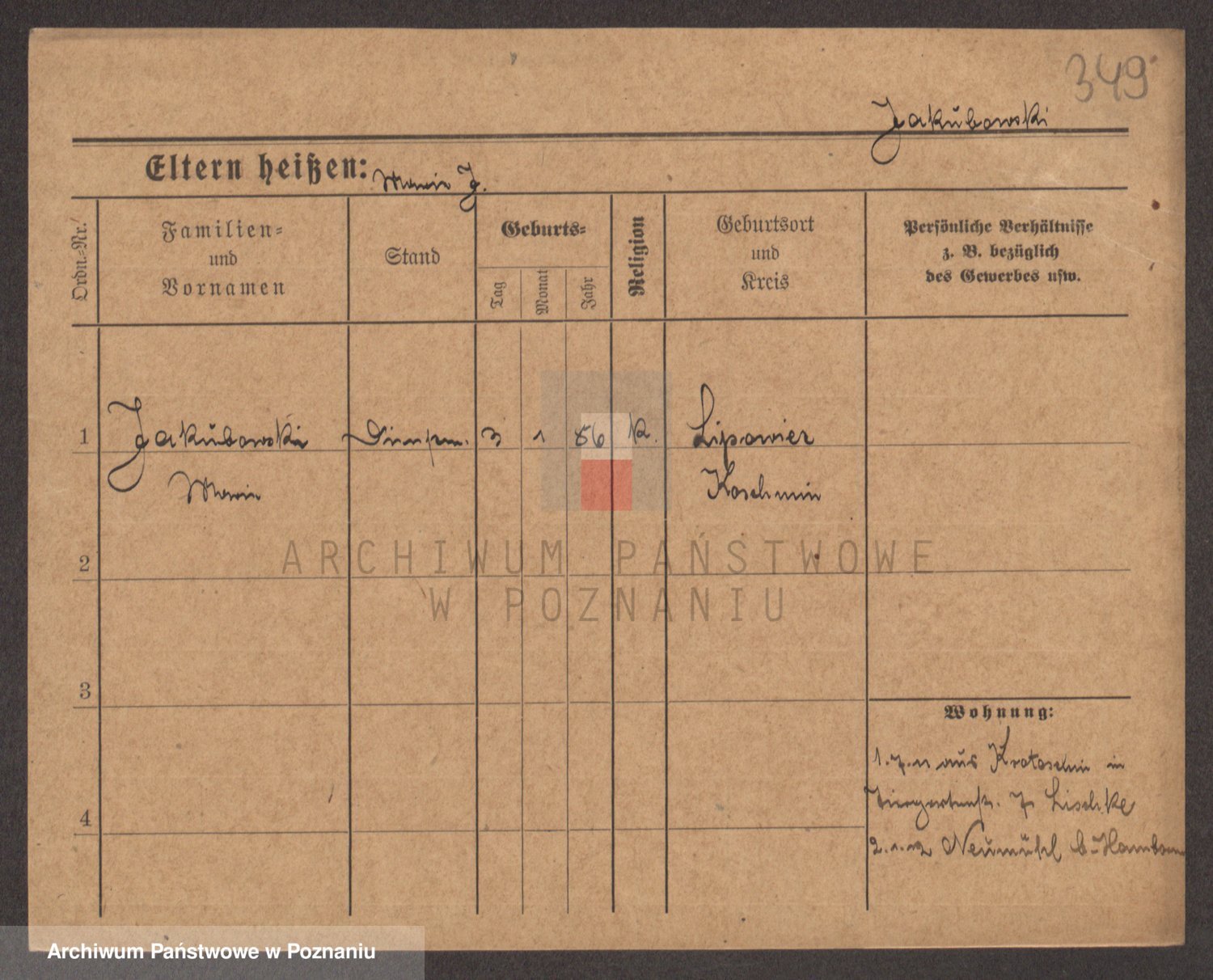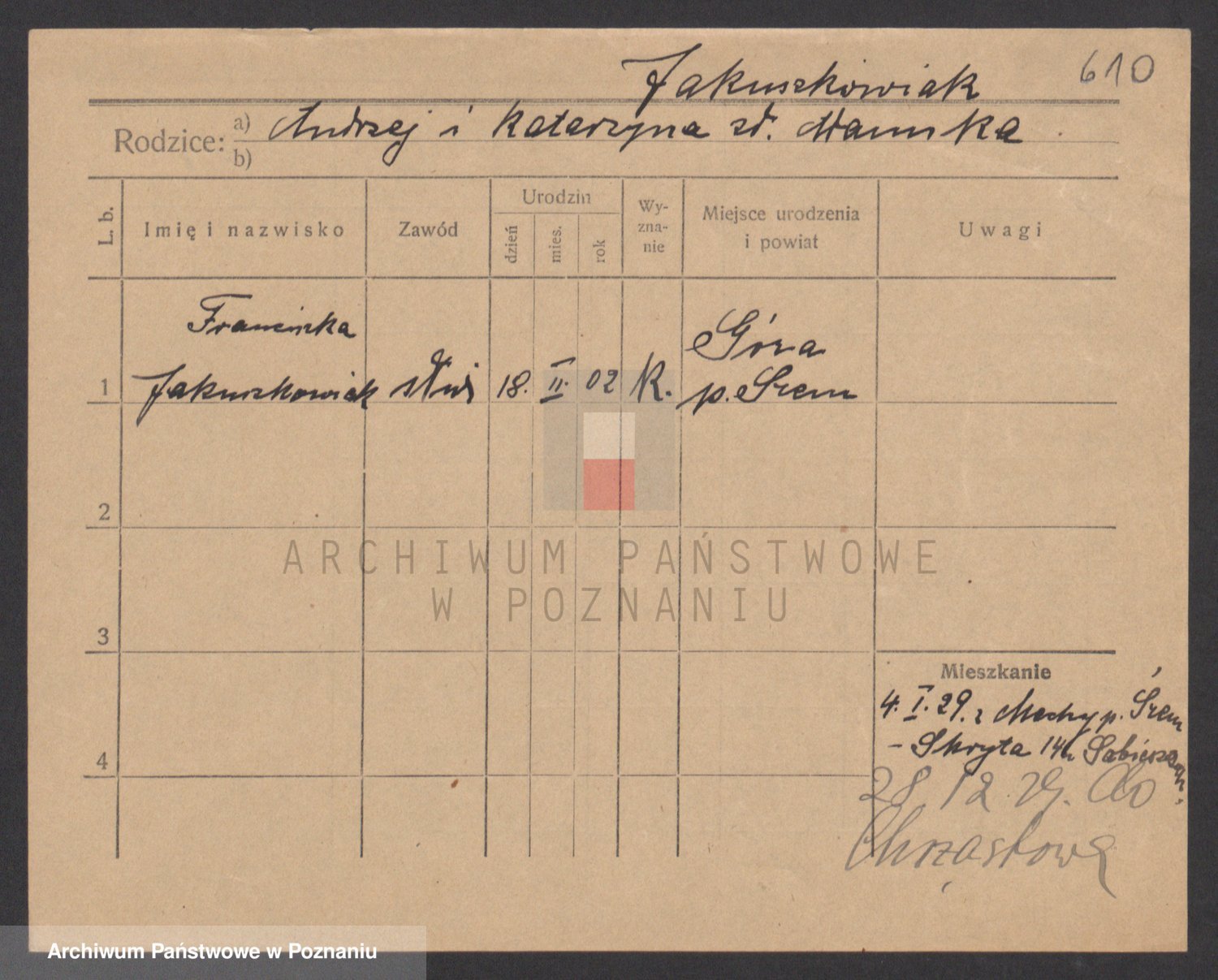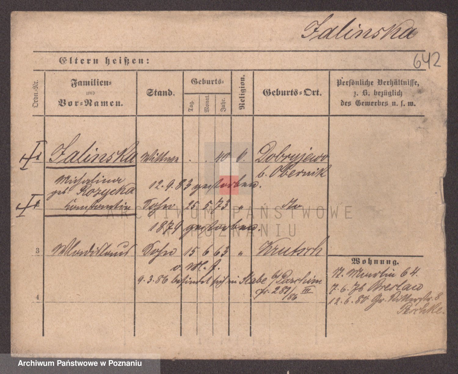 Podgląd karty osobowej dostępny jest po kliknięciu na nazwisko lub ikonkę karty. Można dokonywać powiększenia (ikony na górze) lub przechodzić między kolejnymi skanami (strzałki po bokach).