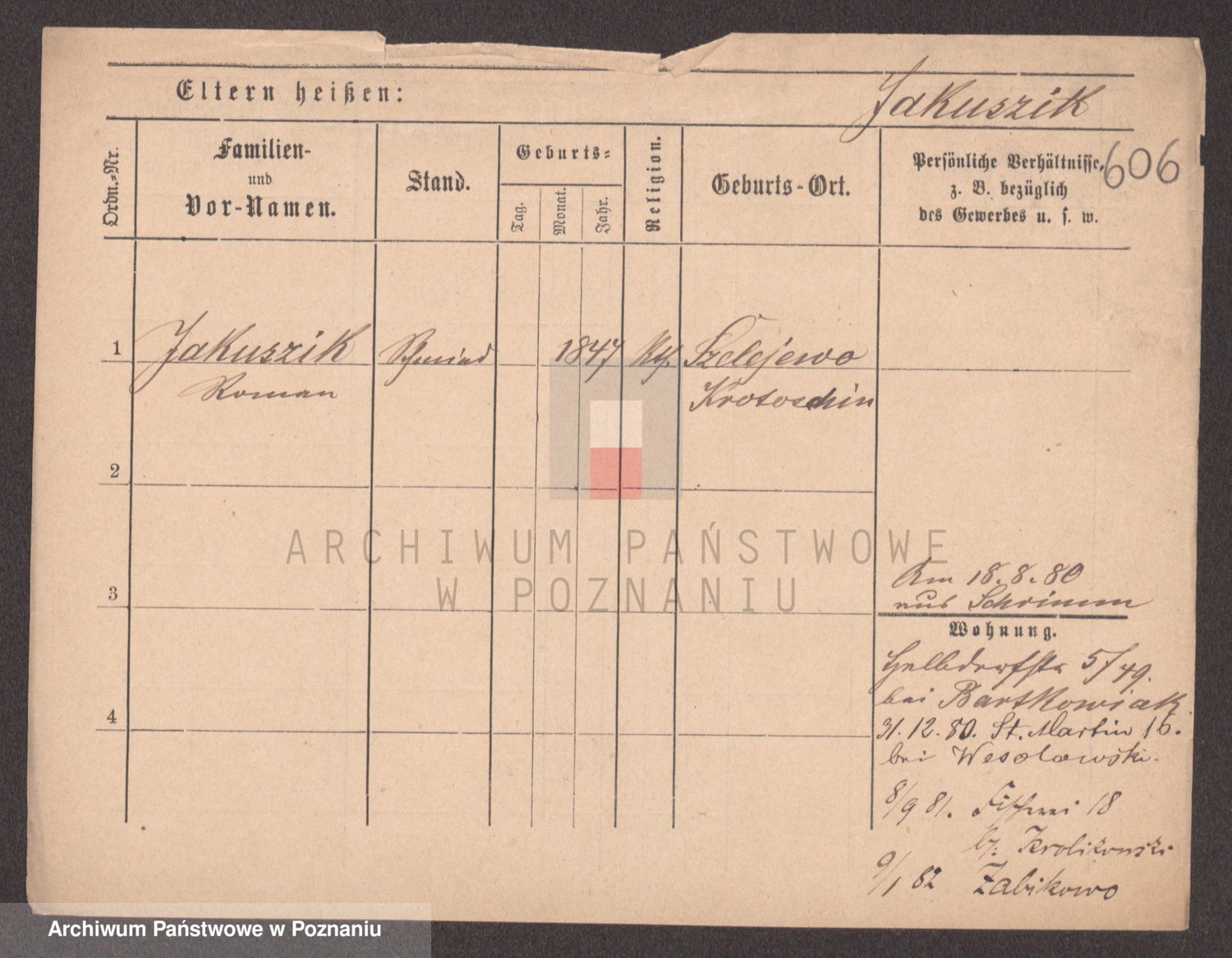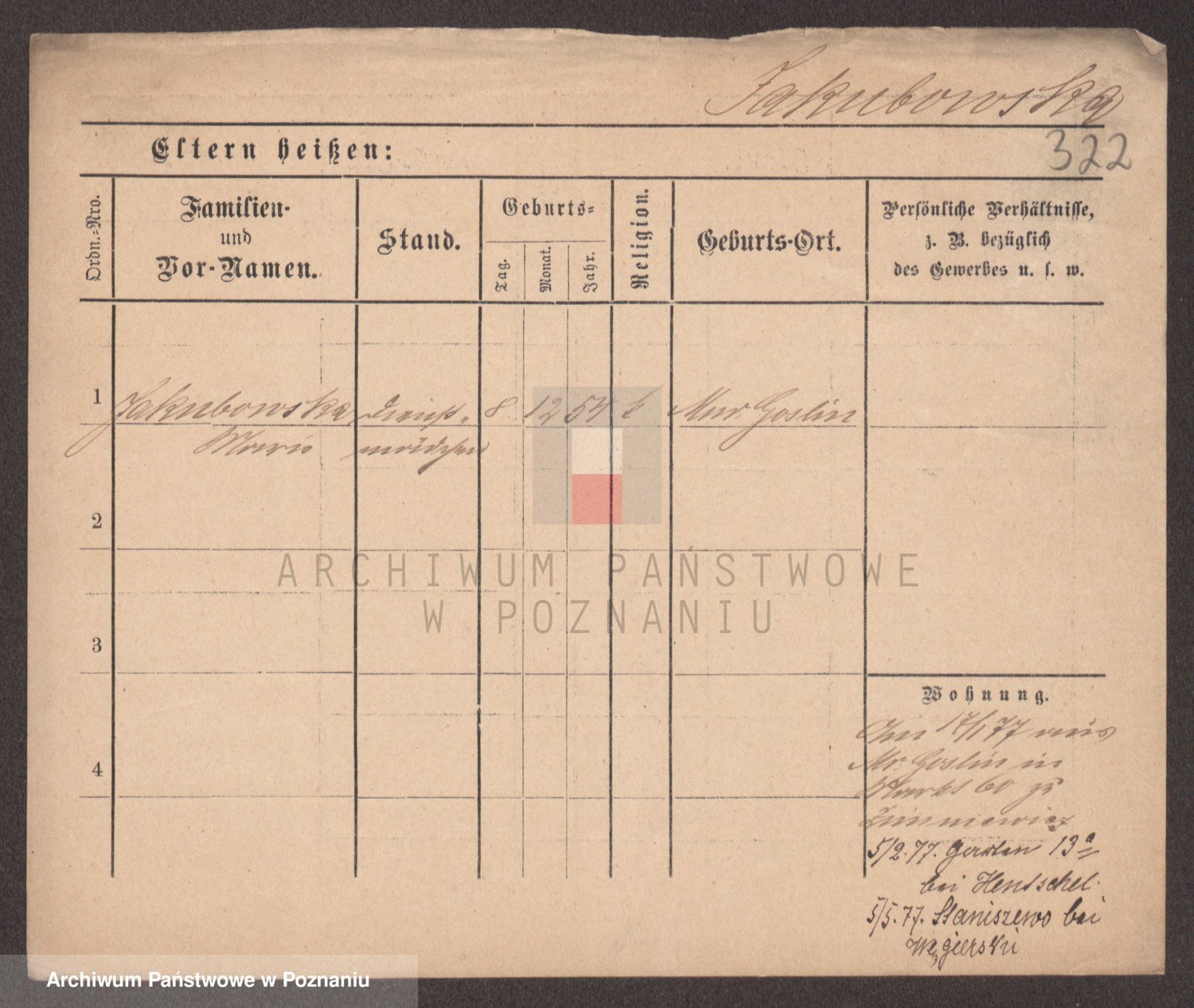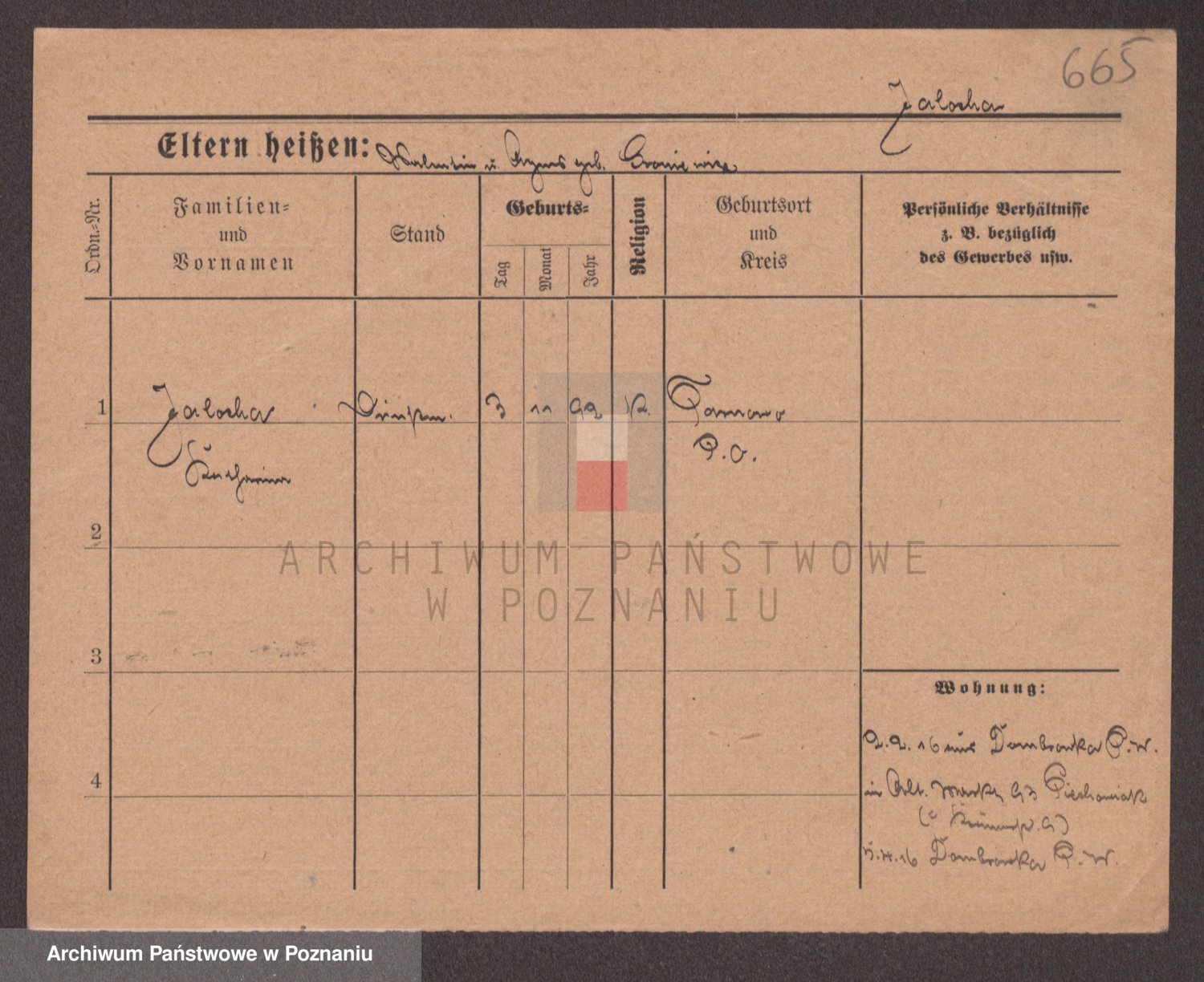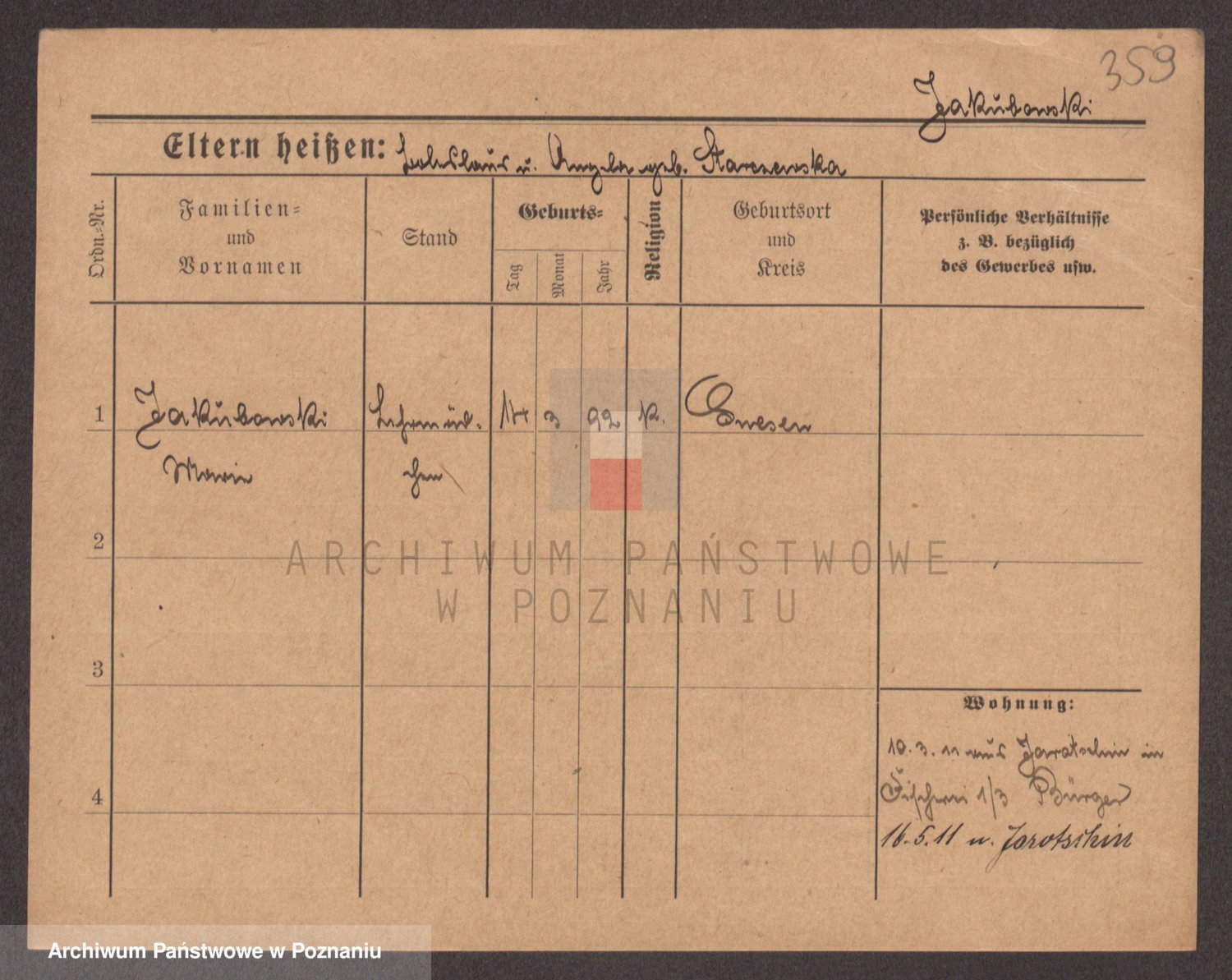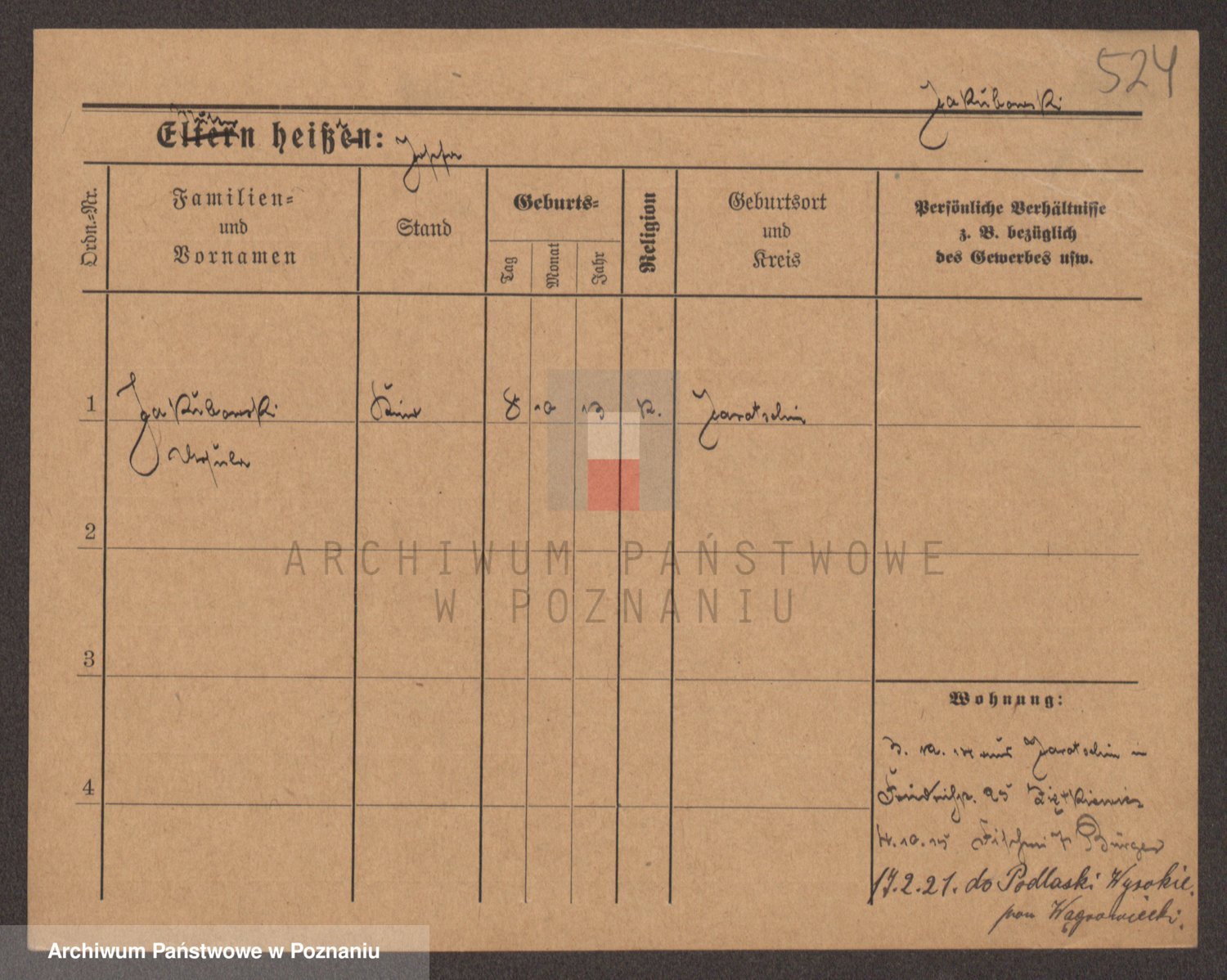 Podgląd karty osobowej dostępny jest po kliknięciu na nazwisko lub ikonkę karty. Można dokonywać powiększenia (ikony na górze) lub przechodzić między kolejnymi skanami (strzałki po bokach).