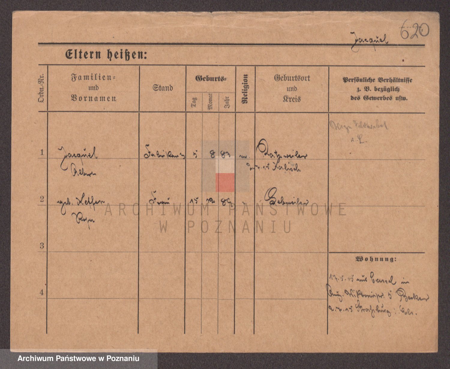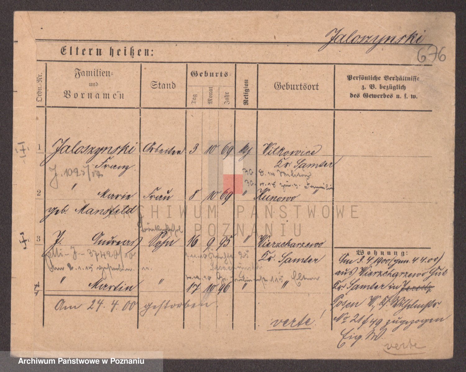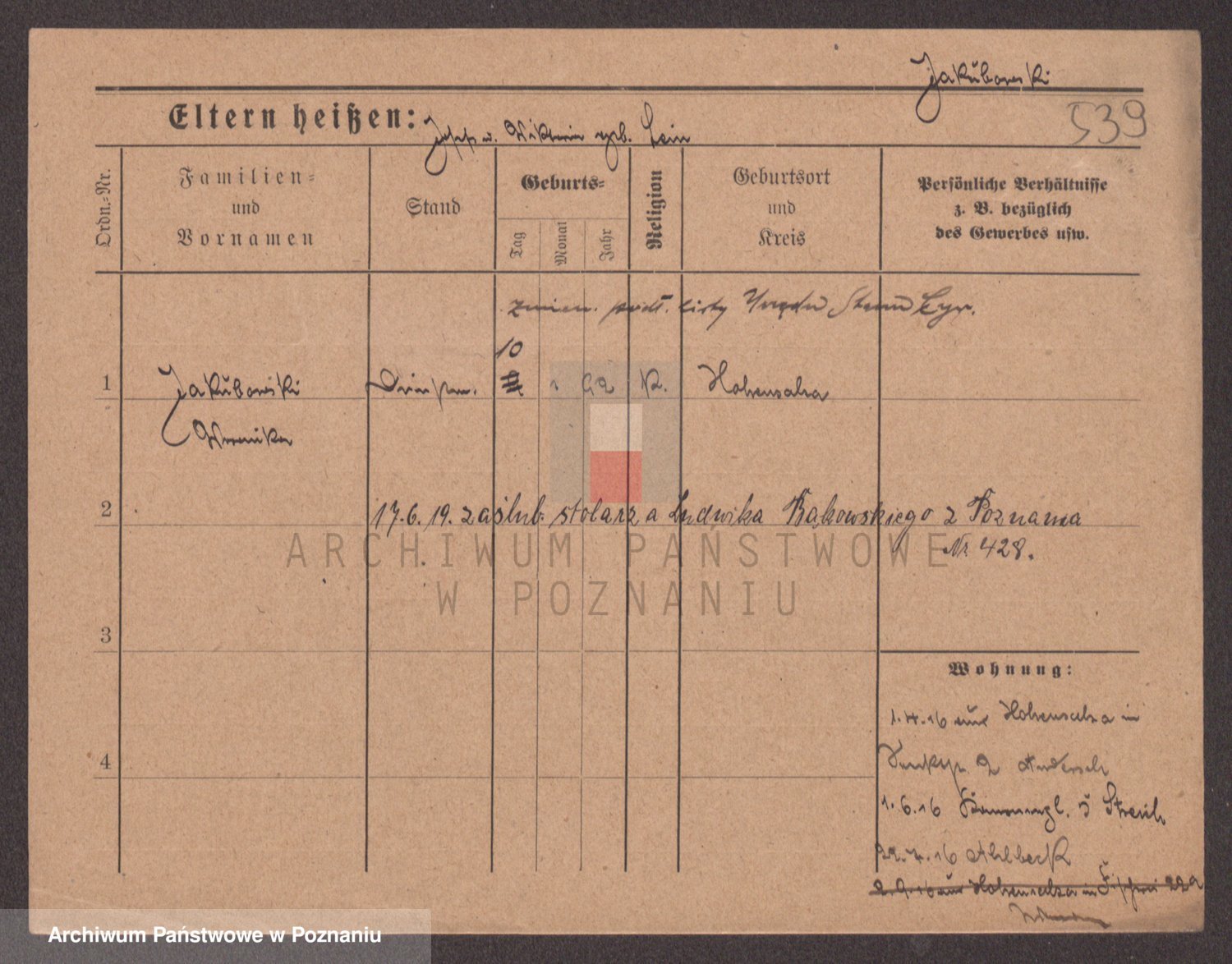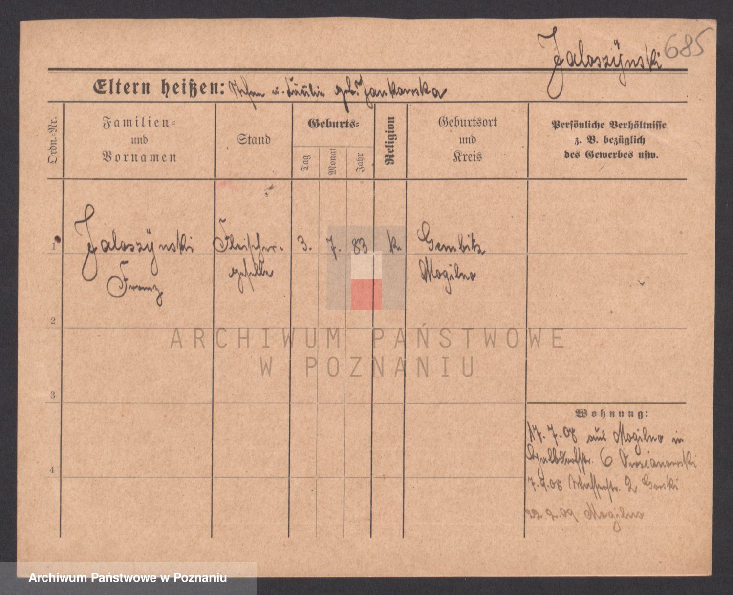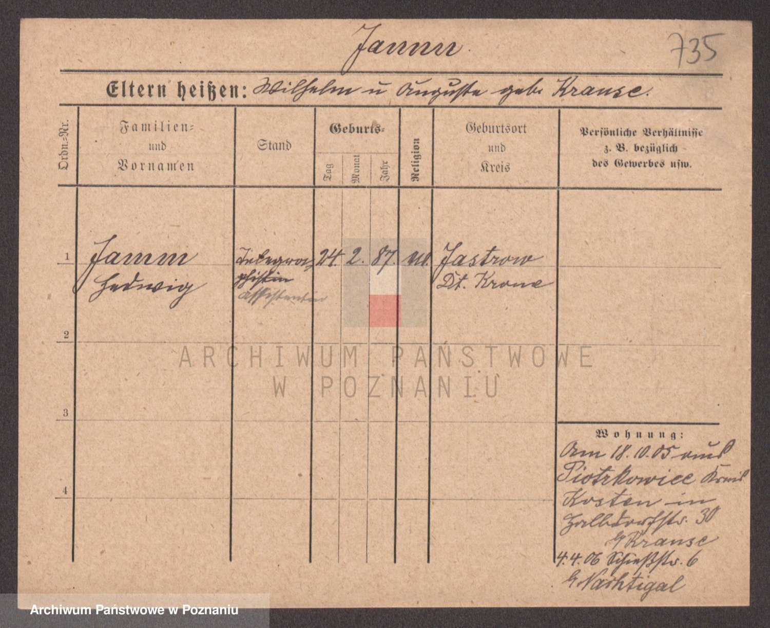Podgląd karty osobowej dostępny jest po kliknięciu na nazwisko lub ikonkę karty. Można dokonywać powiększenia (ikony na górze) lub przechodzić między kolejnymi skanami (strzałki po bokach).