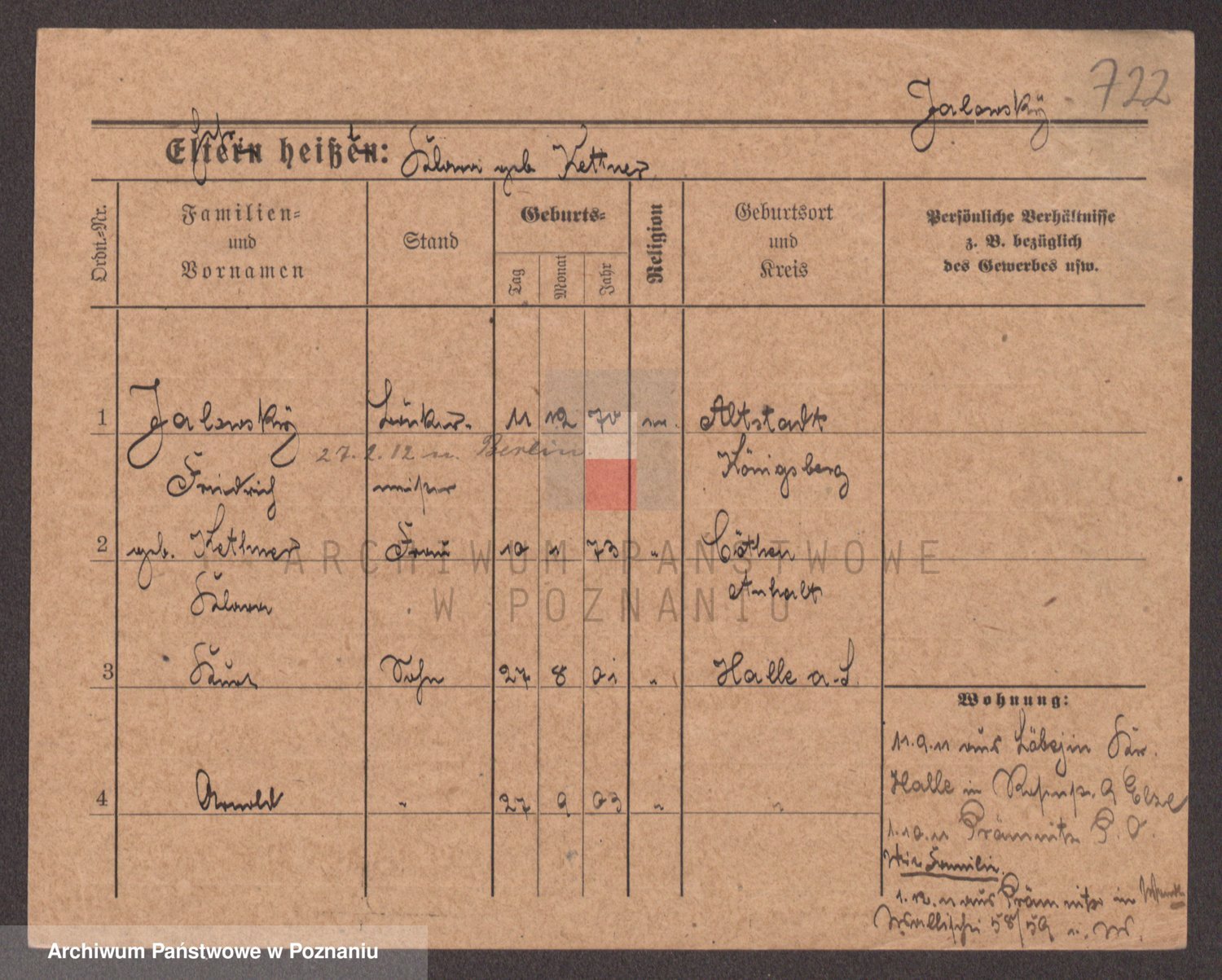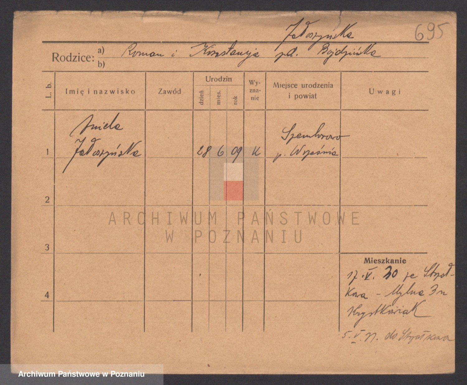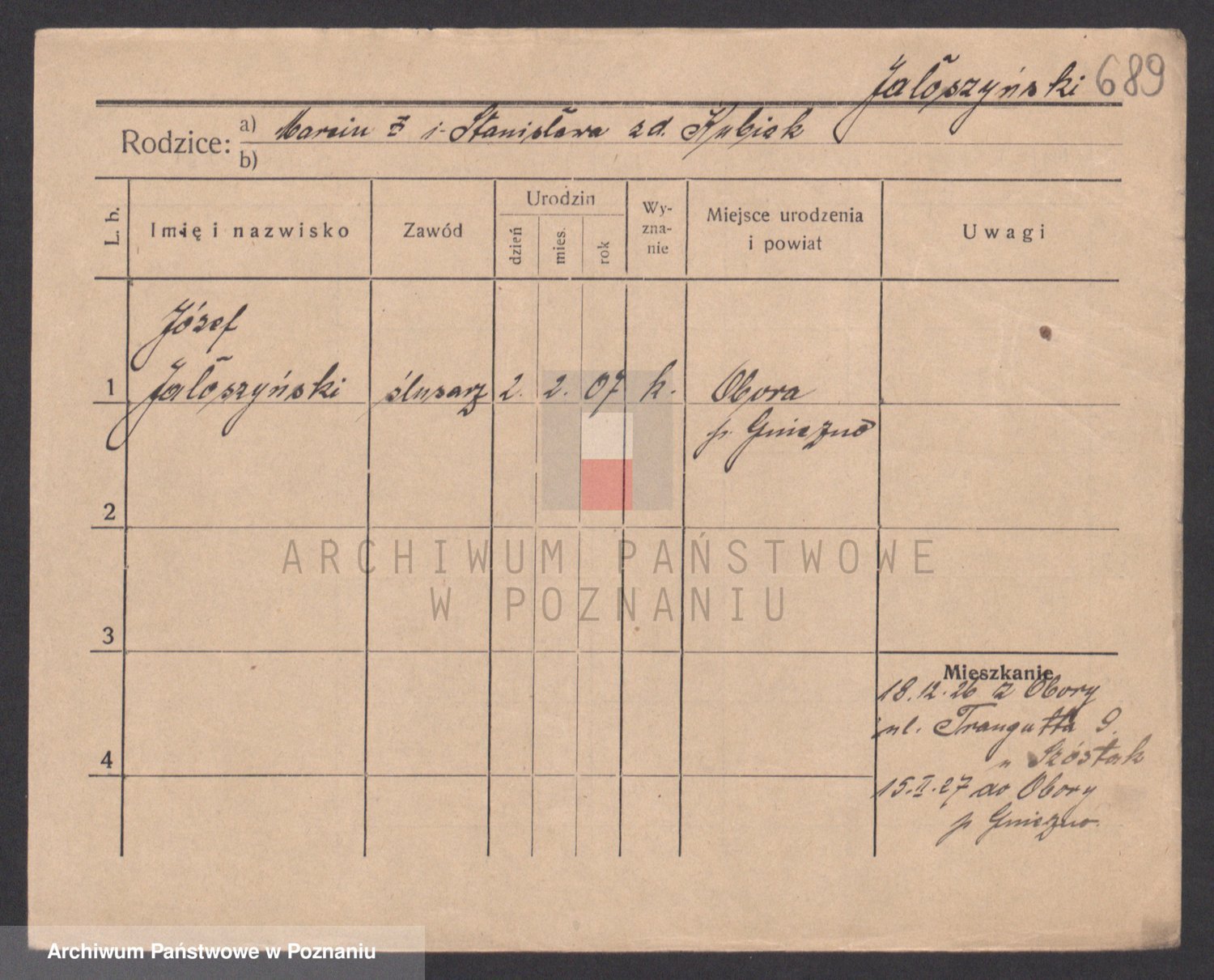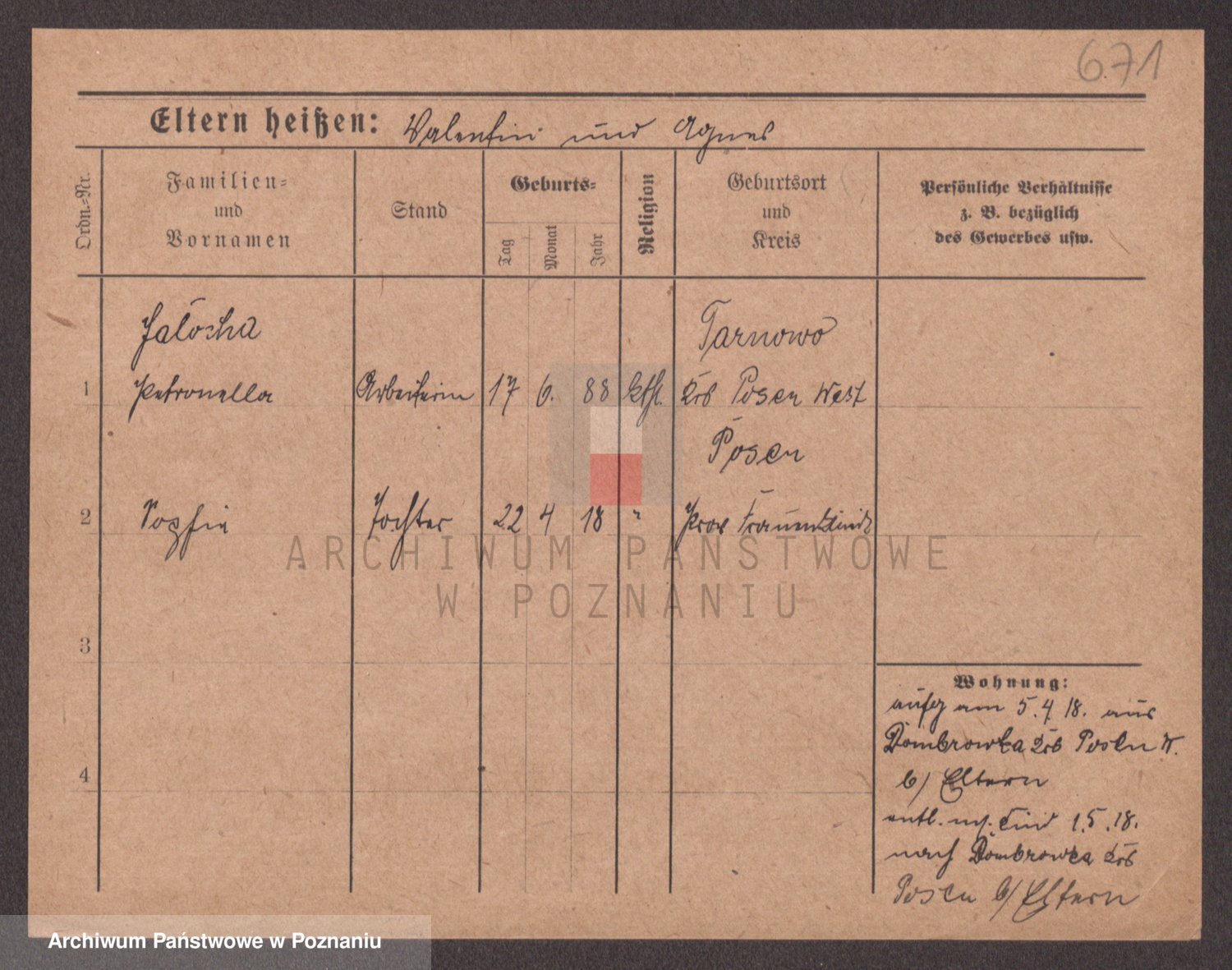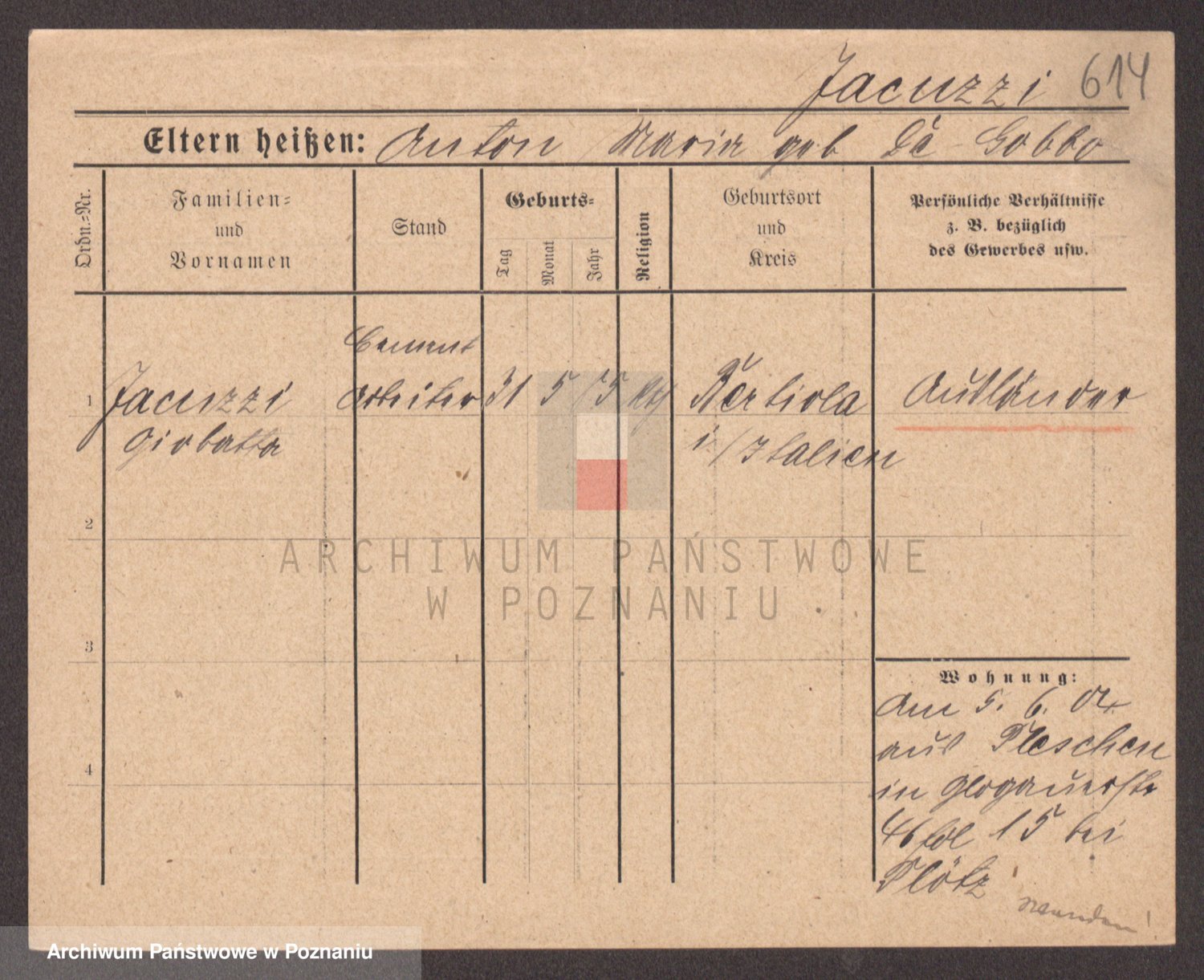 Podgląd karty osobowej dostępny jest po kliknięciu na nazwisko lub ikonkę karty. Można dokonywać powiększenia (ikony na górze) lub przechodzić między kolejnymi skanami (strzałki po bokach).