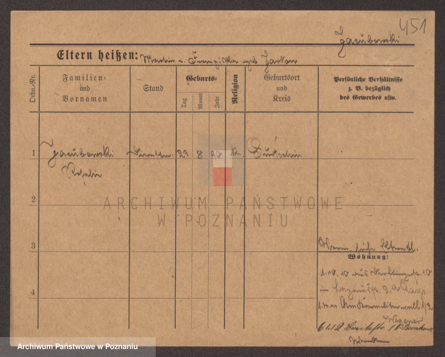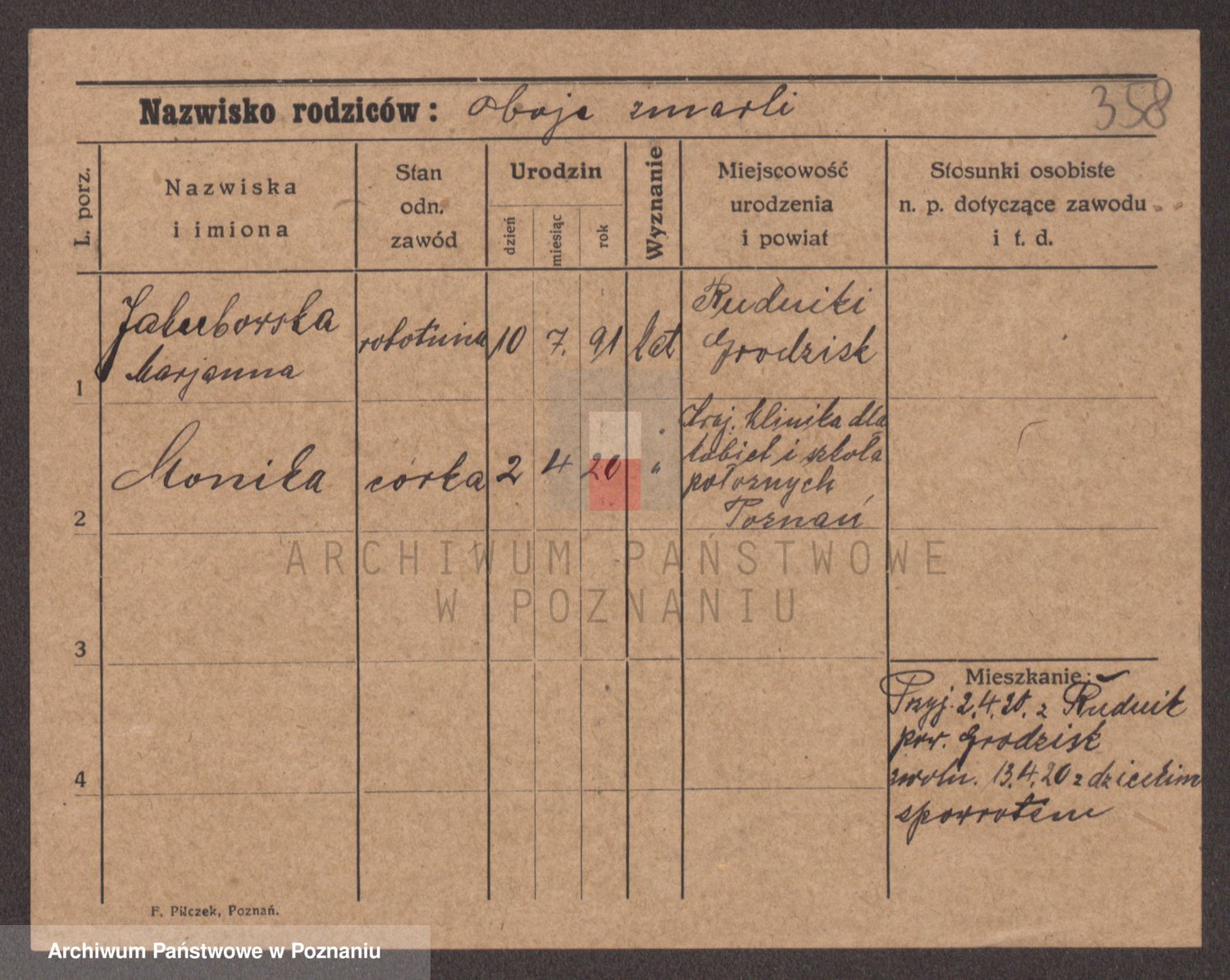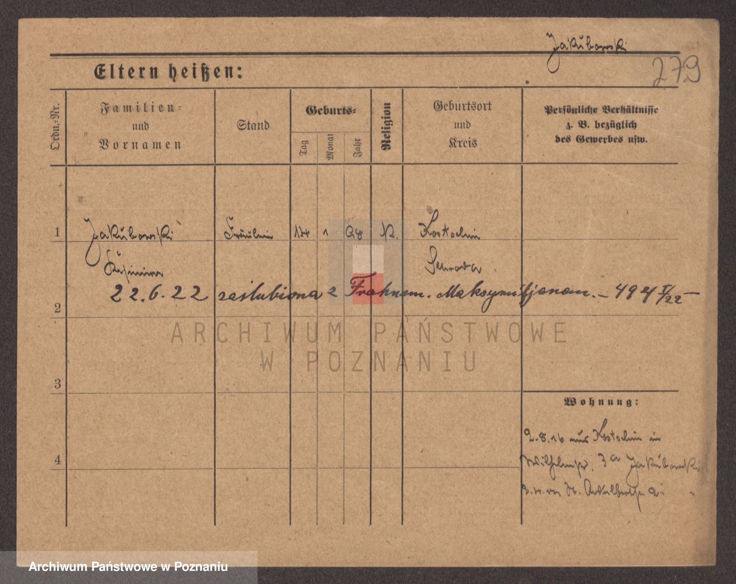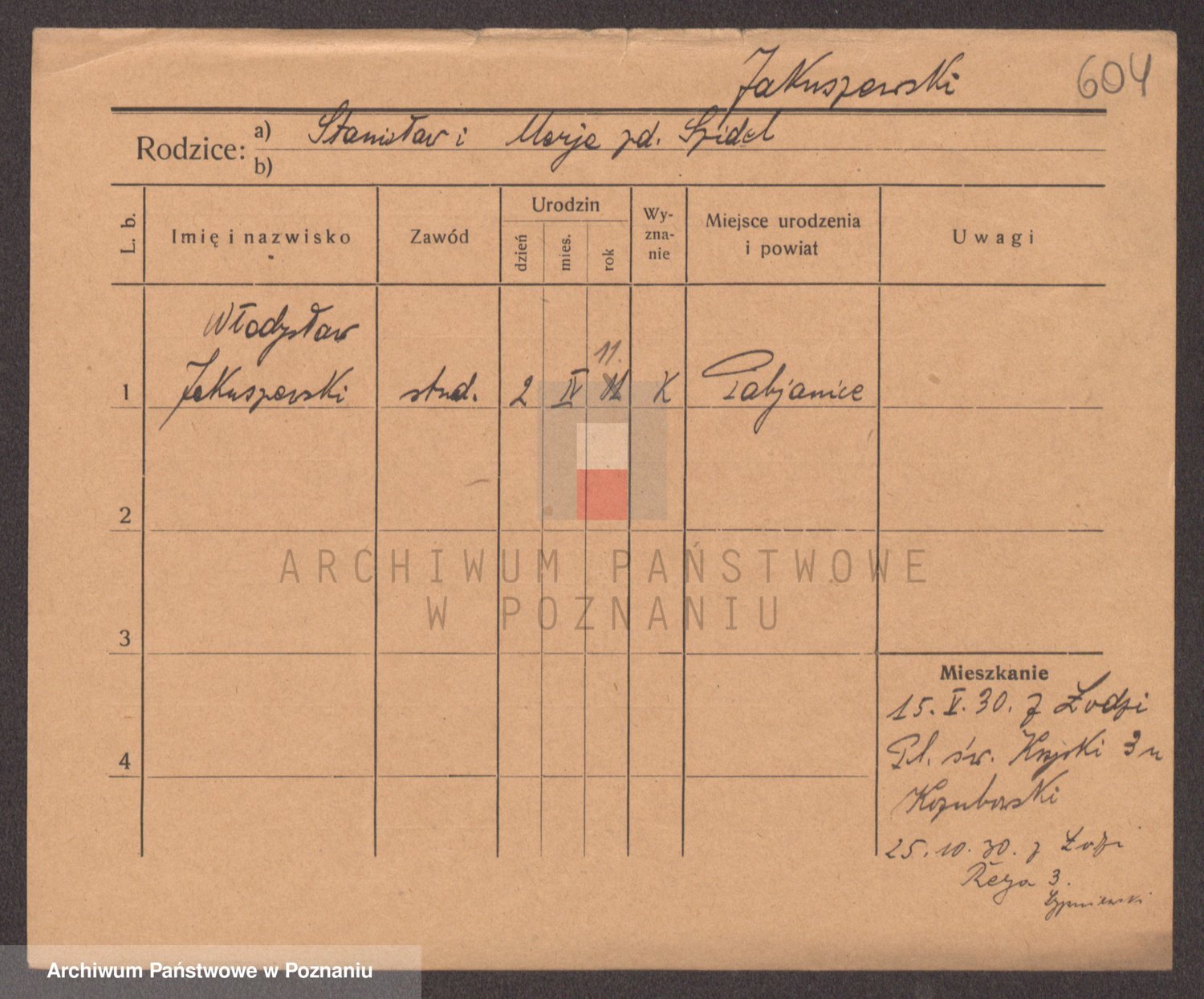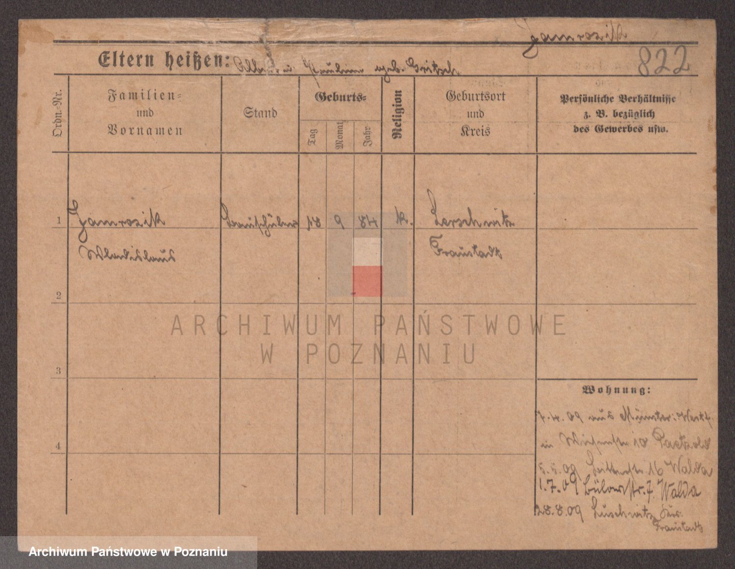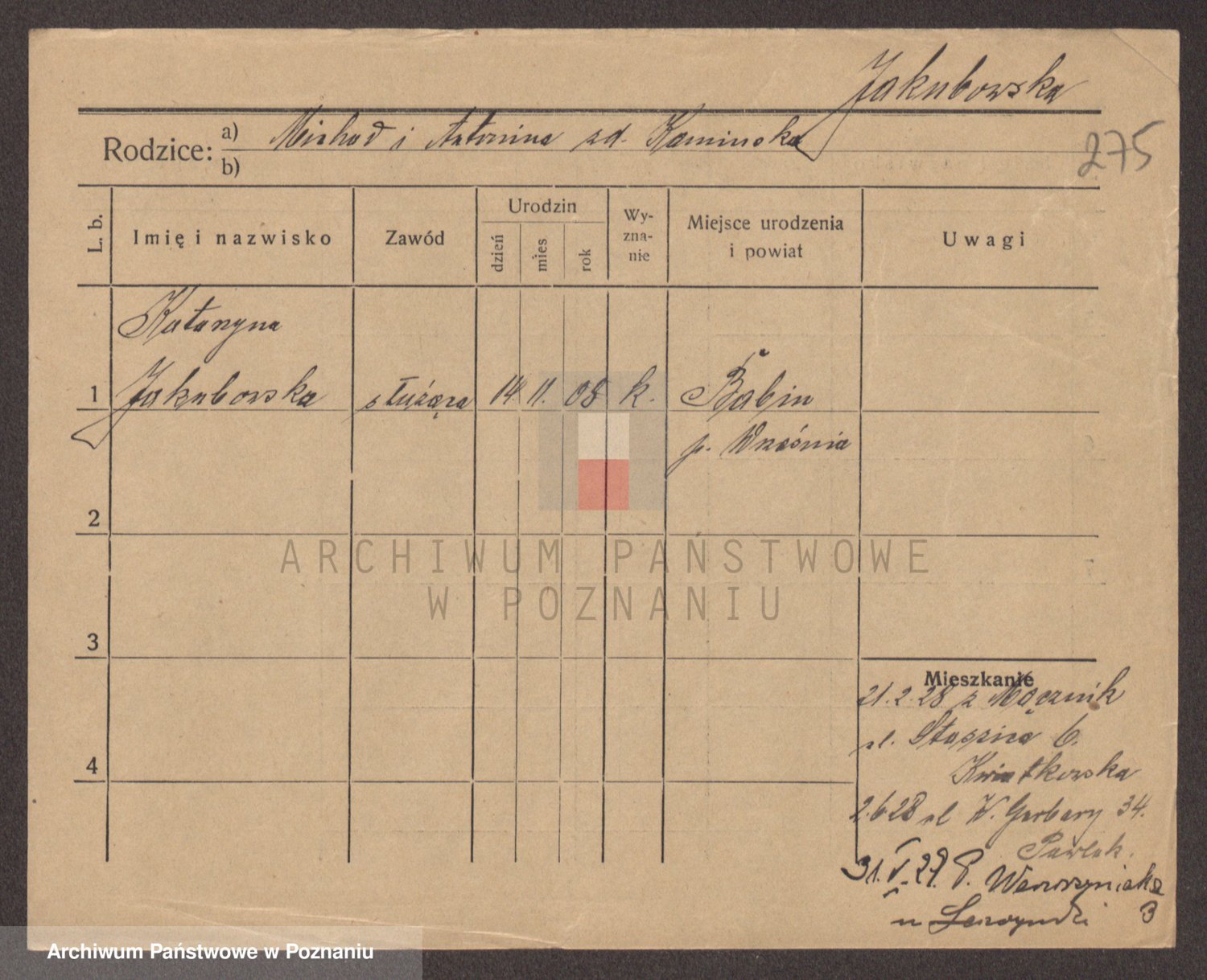 Podgląd karty osobowej dostępny jest po kliknięciu na nazwisko lub ikonkę karty. Można dokonywać powiększenia (ikony na górze) lub przechodzić między kolejnymi skanami (strzałki po bokach).