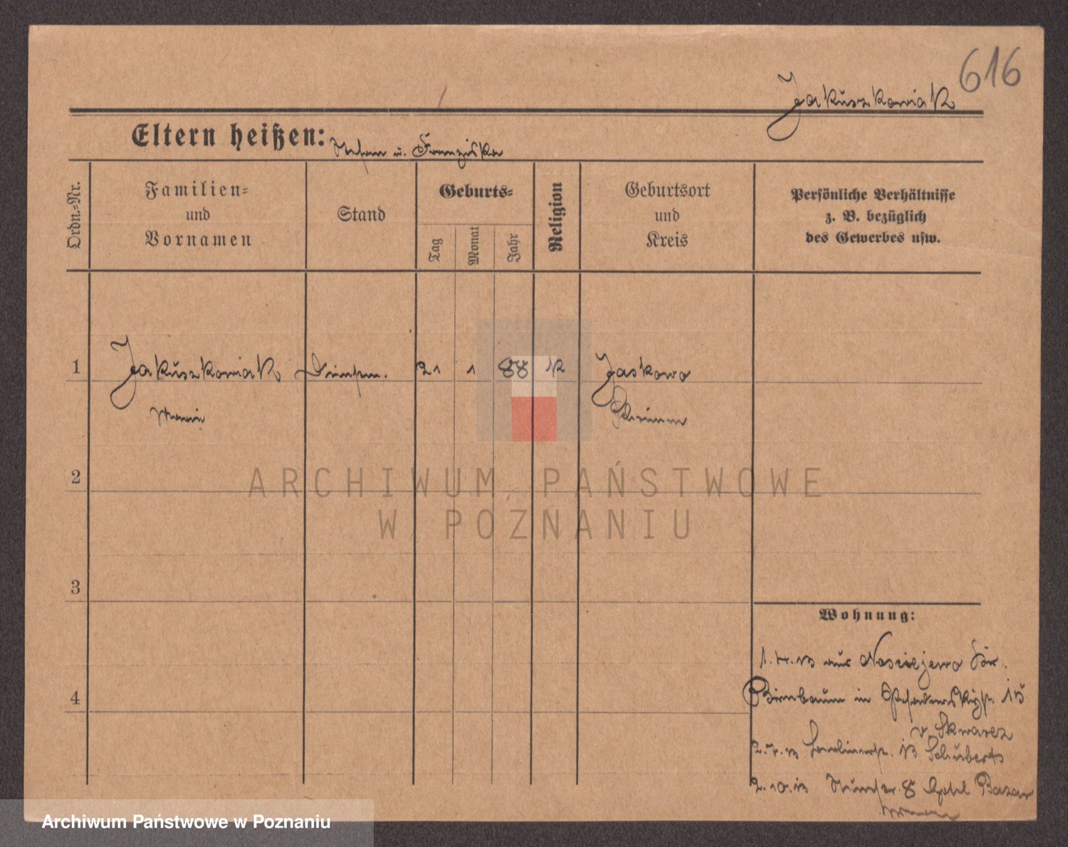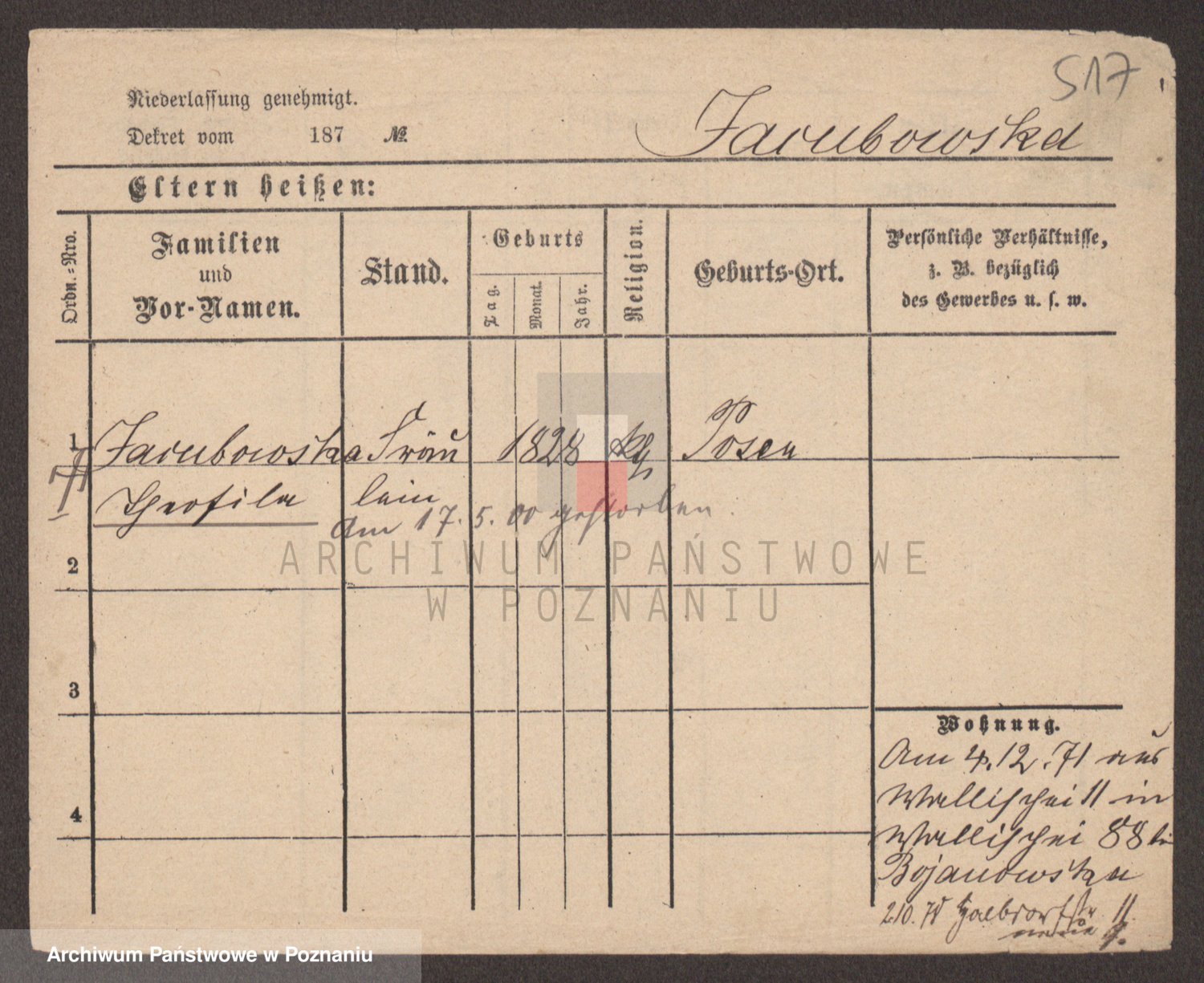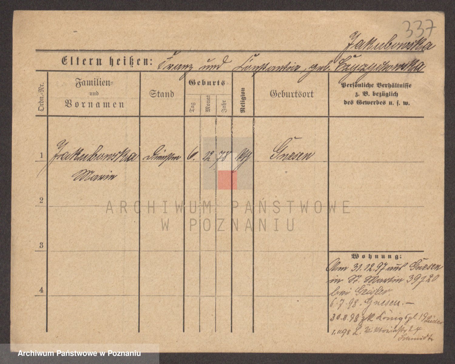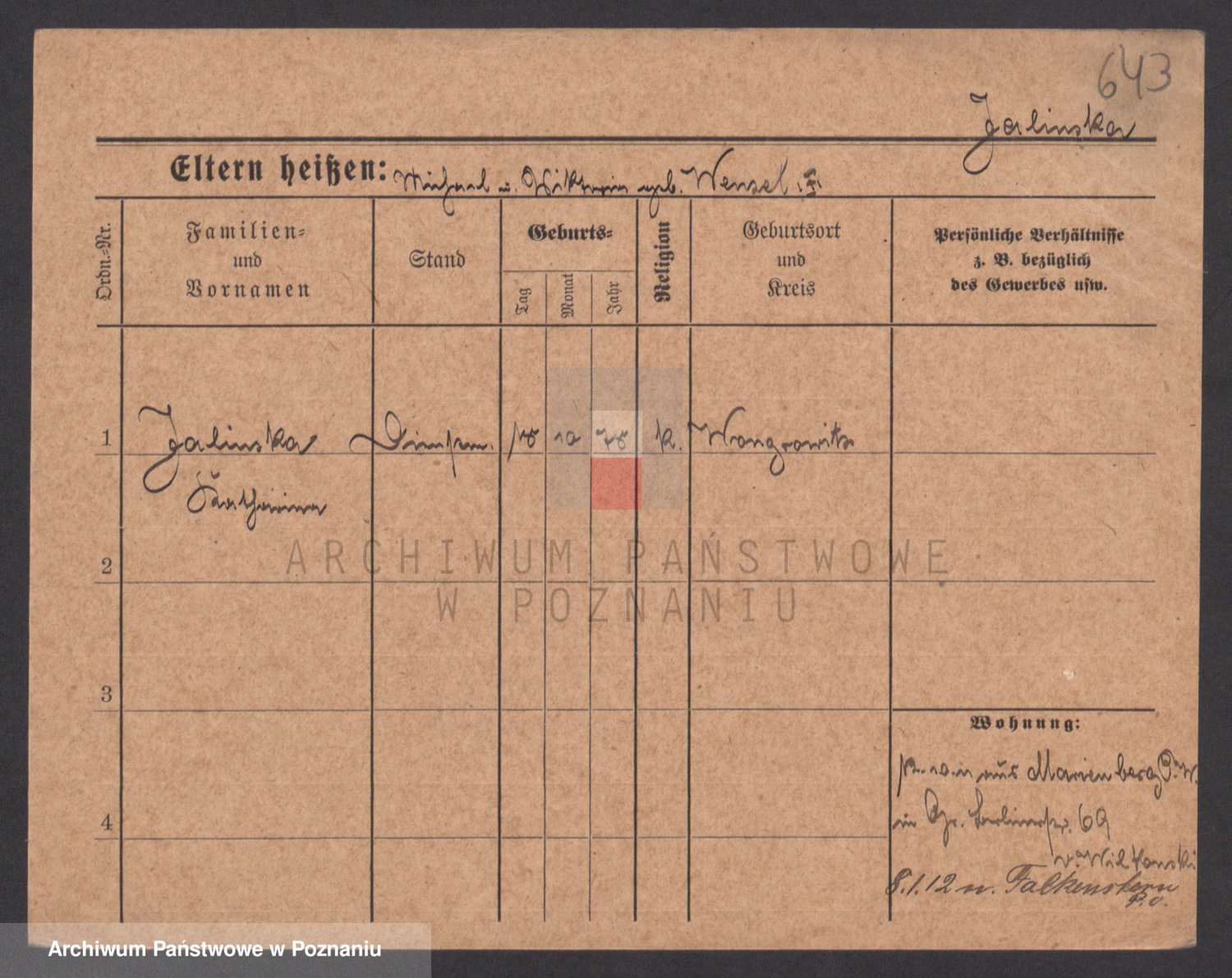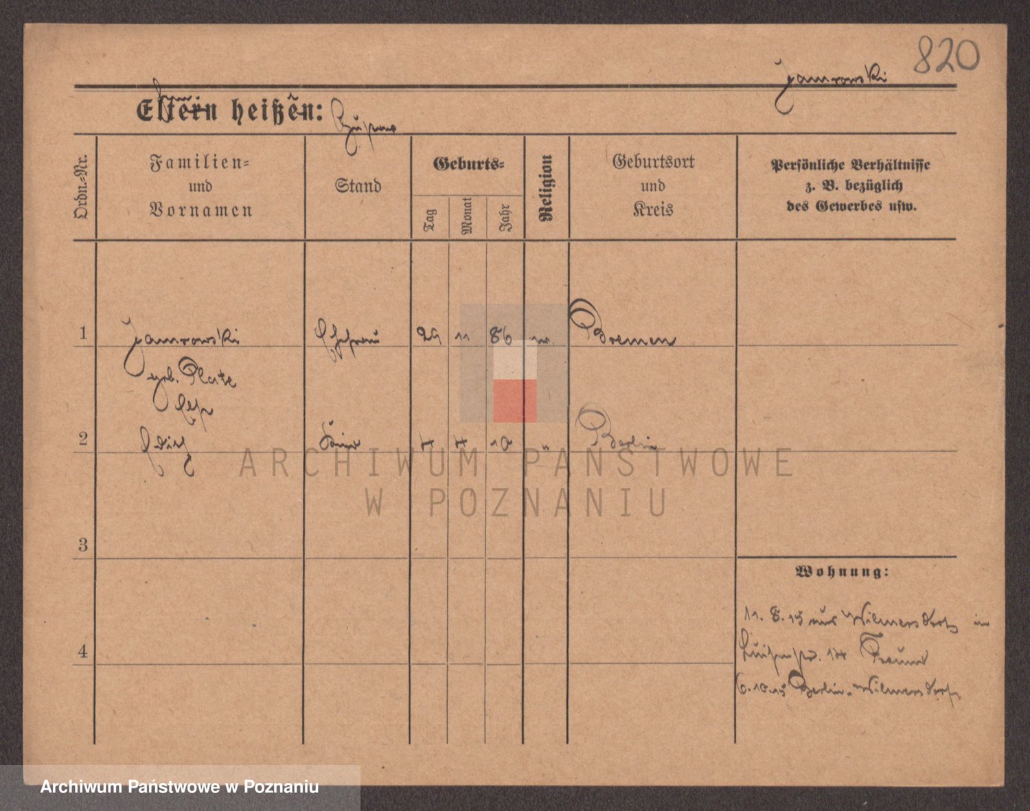 Podgląd karty osobowej dostępny jest po kliknięciu na nazwisko lub ikonkę karty. Można dokonywać powiększenia (ikony na górze) lub przechodzić między kolejnymi skanami (strzałki po bokach).