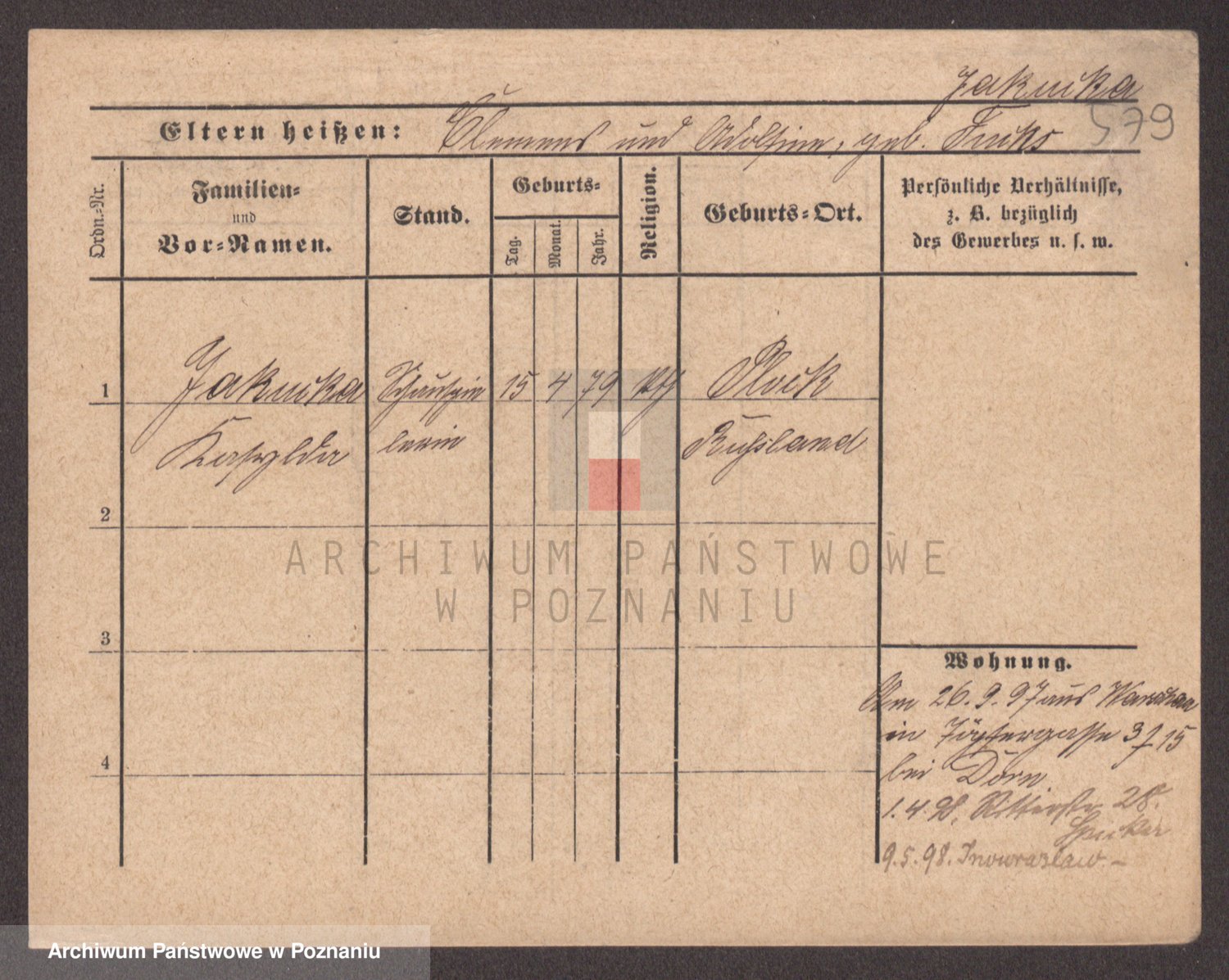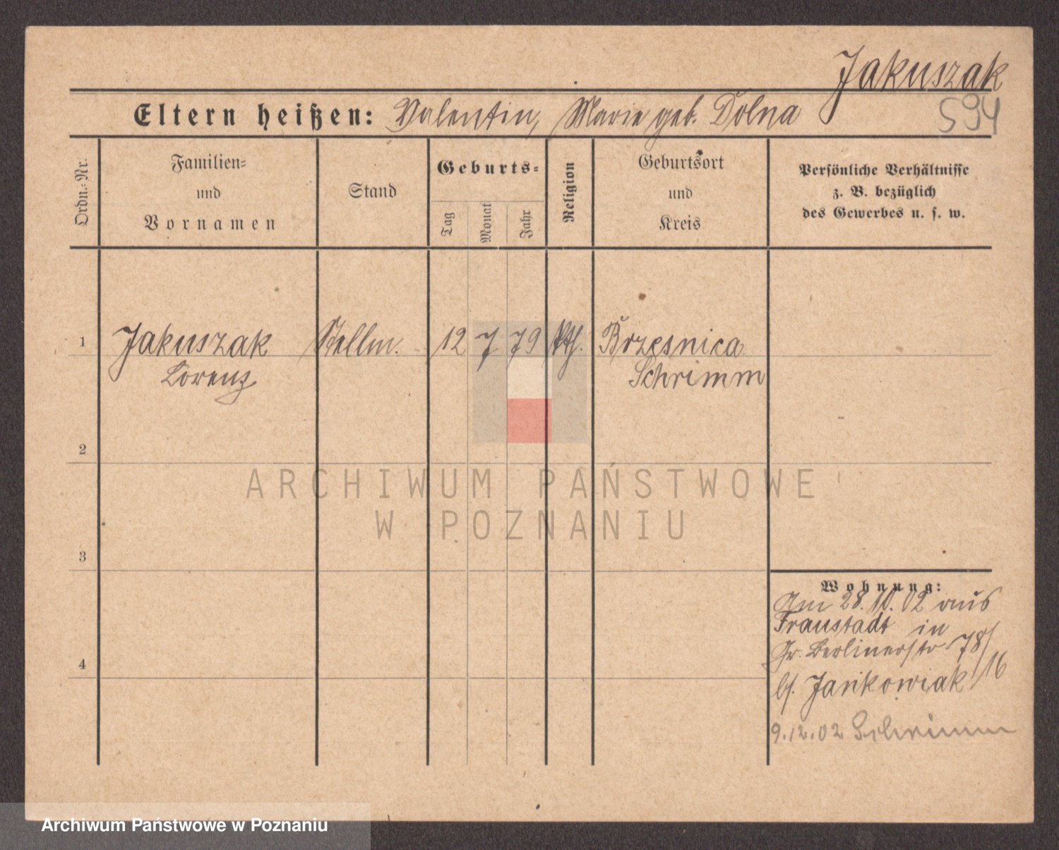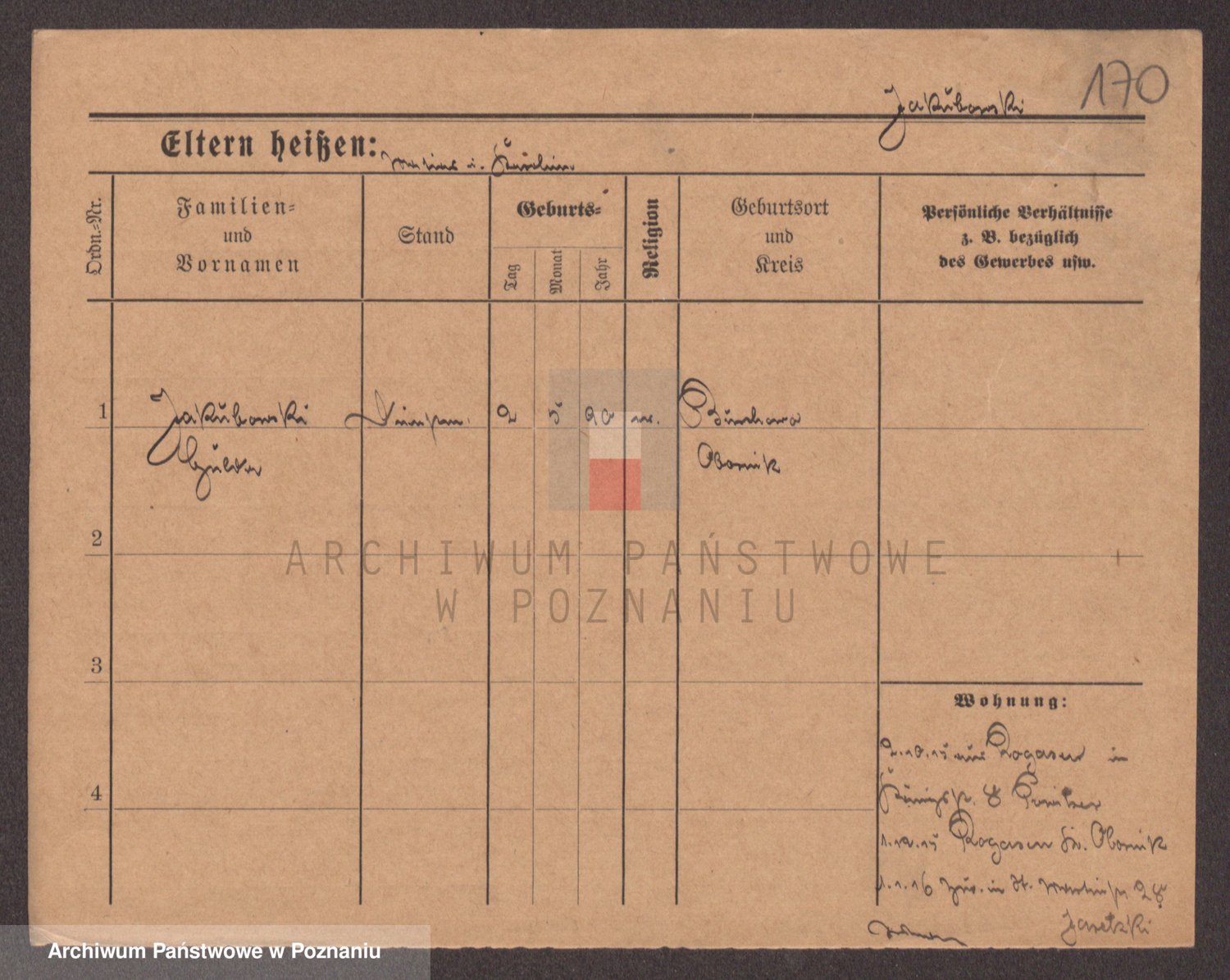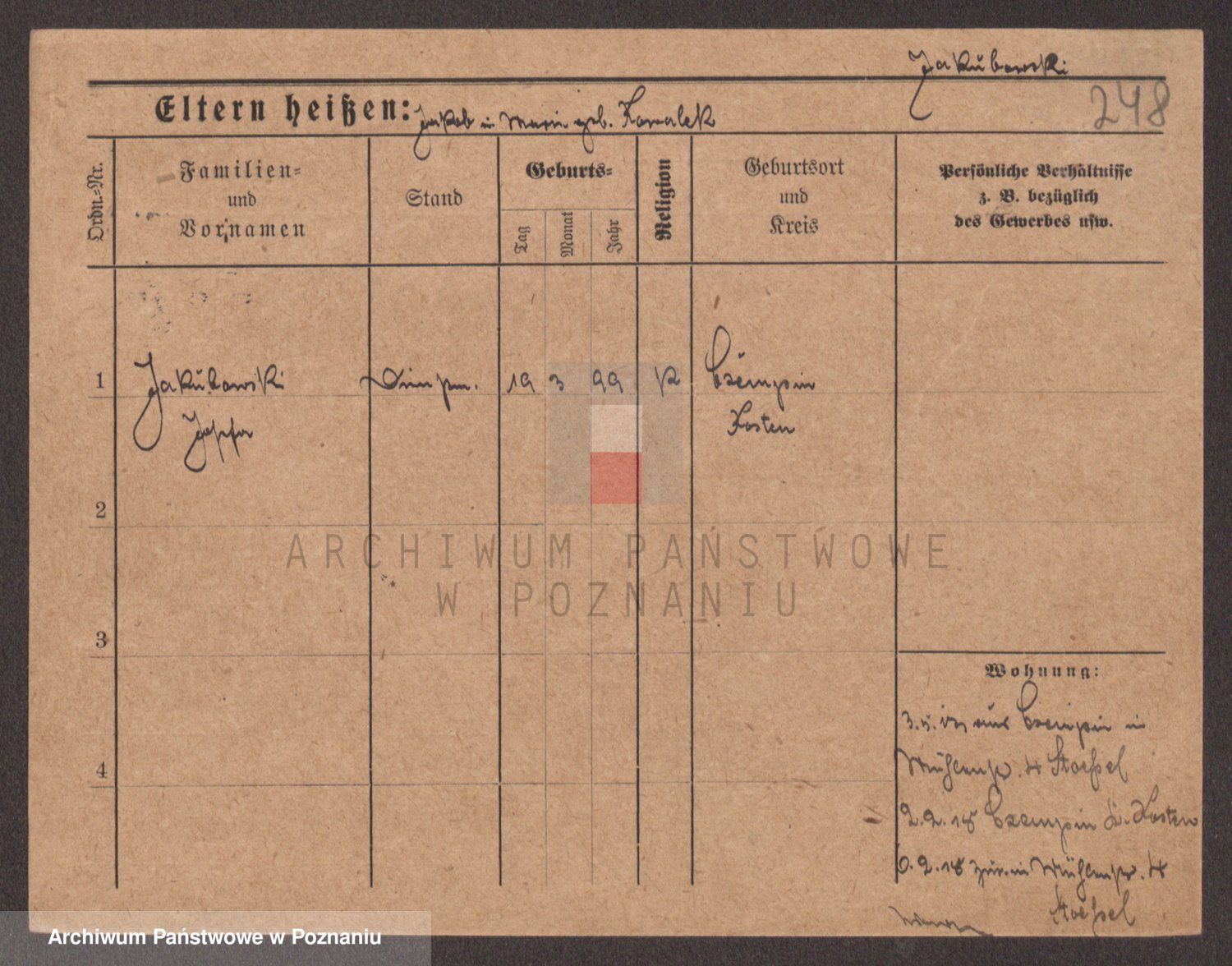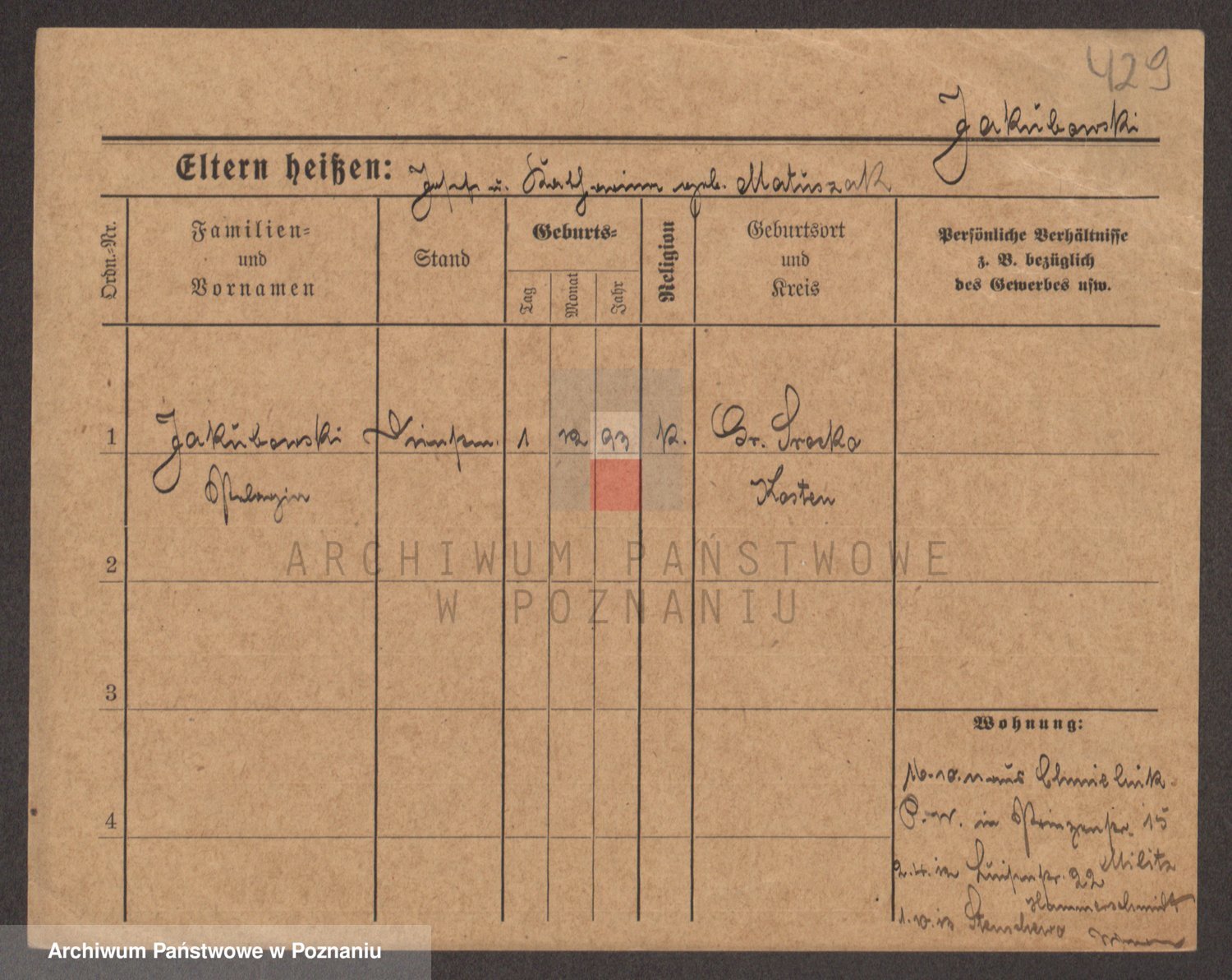 Podgląd karty osobowej dostępny jest po kliknięciu na nazwisko lub ikonkę karty. Można dokonywać powiększenia (ikony na górze) lub przechodzić między kolejnymi skanami (strzałki po bokach).