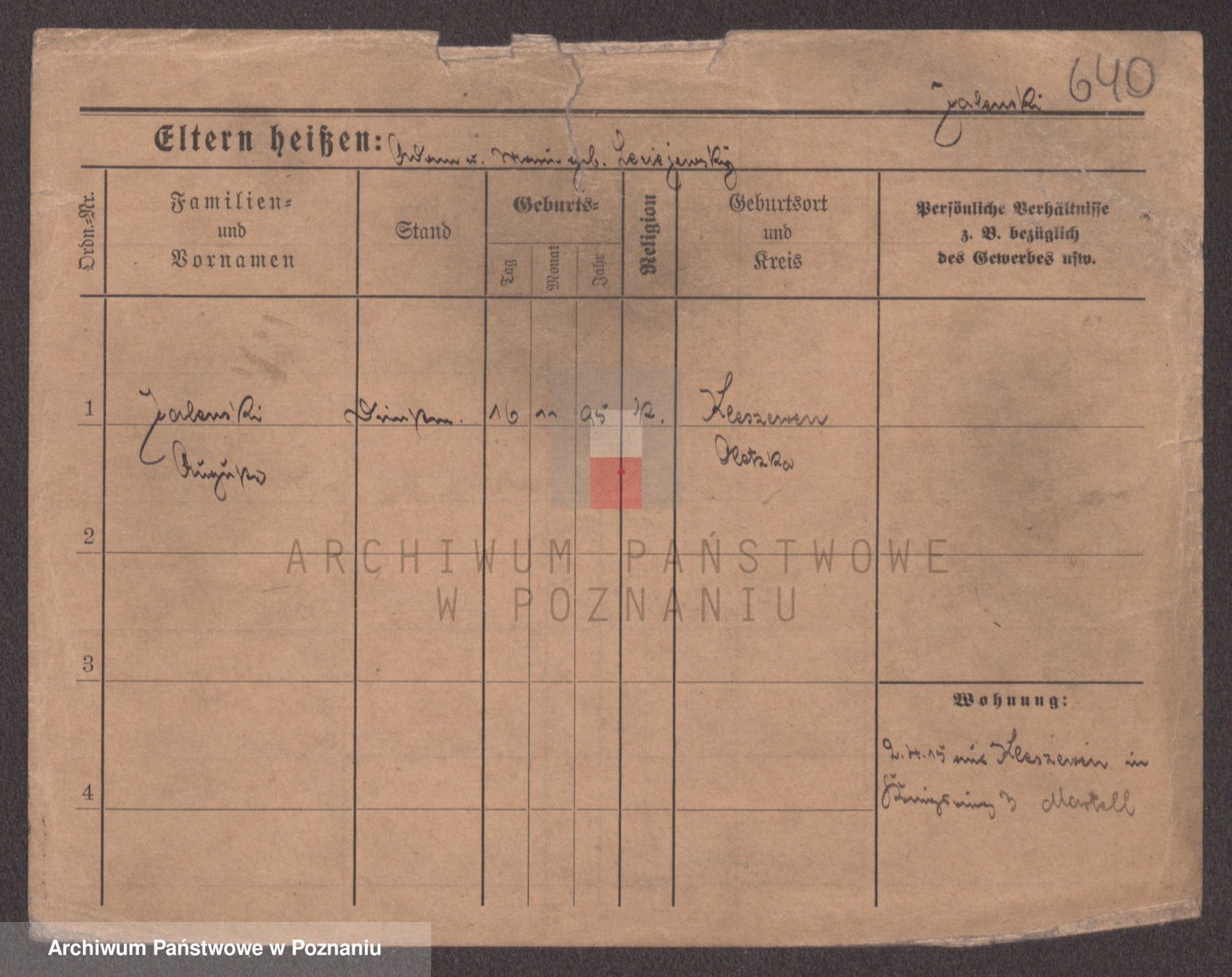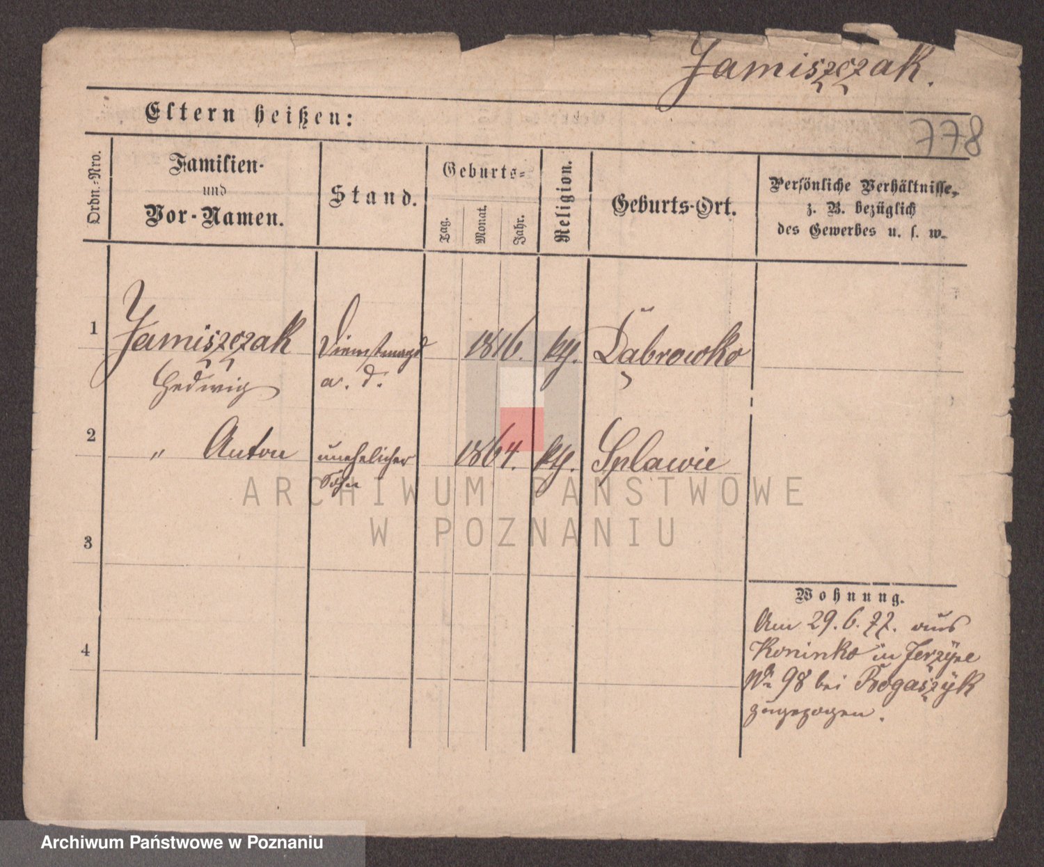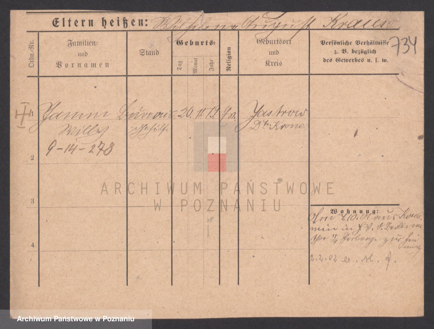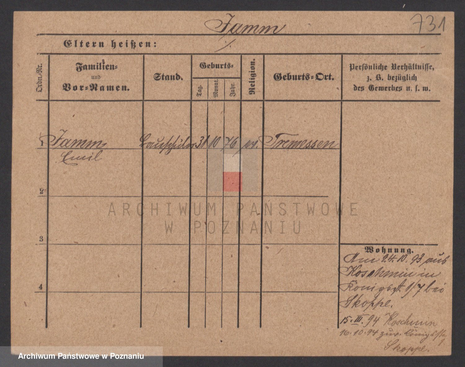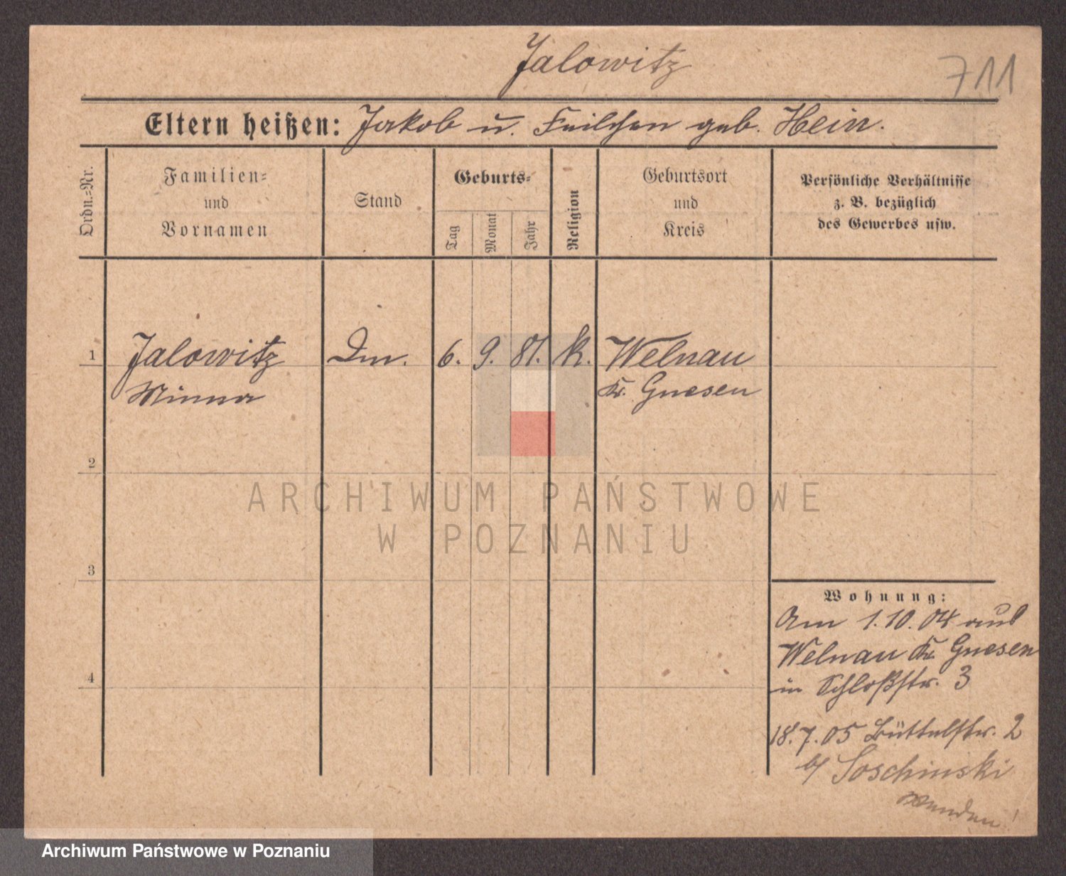 Podgląd karty osobowej dostępny jest po kliknięciu na nazwisko lub ikonkę karty. Można dokonywać powiększenia (ikony na górze) lub przechodzić między kolejnymi skanami (strzałki po bokach).