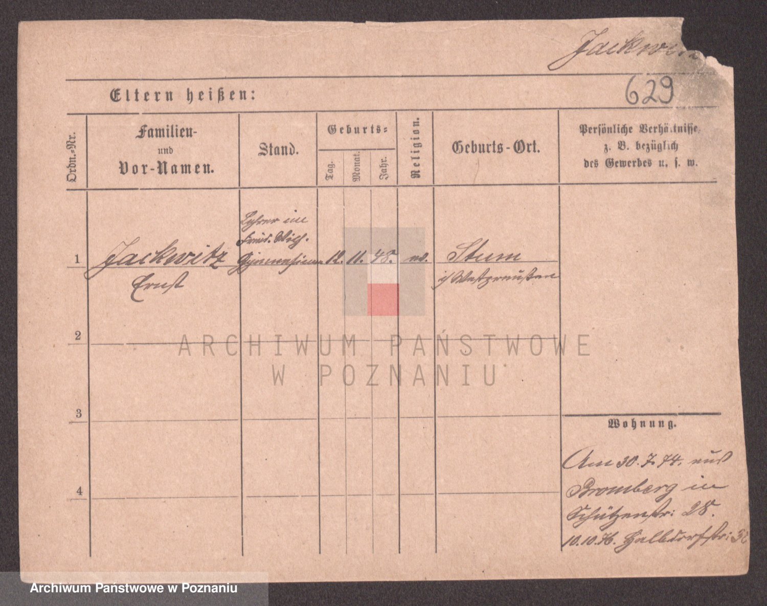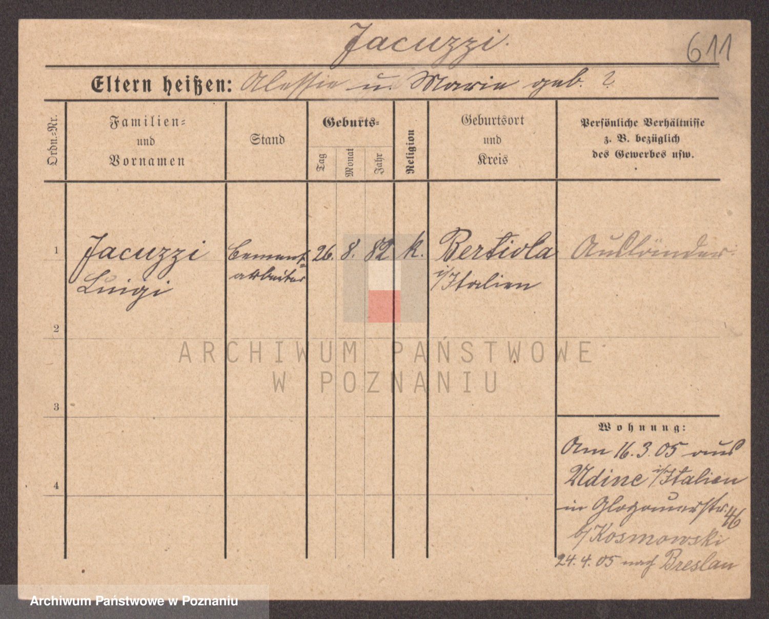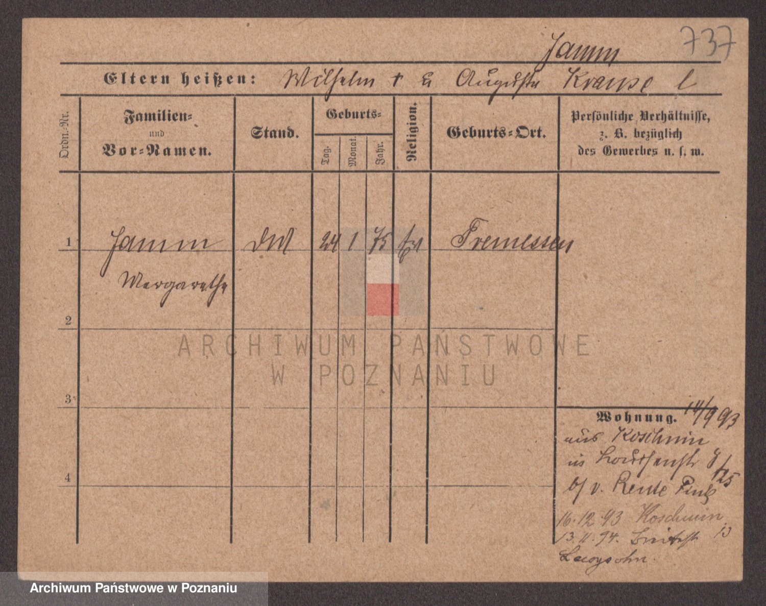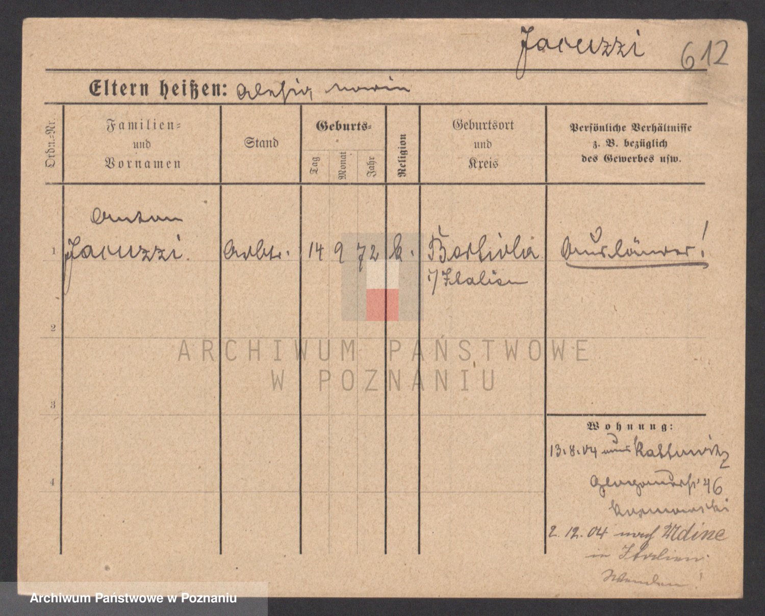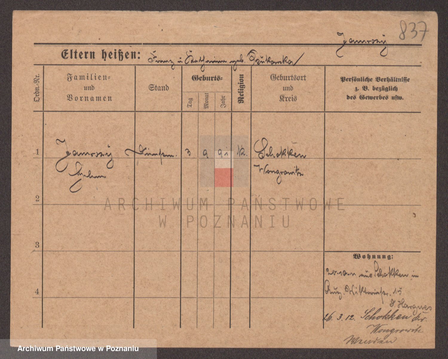 Podgląd karty osobowej dostępny jest po kliknięciu na nazwisko lub ikonkę karty. Można dokonywać powiększenia (ikony na górze) lub przechodzić między kolejnymi skanami (strzałki po bokach).
