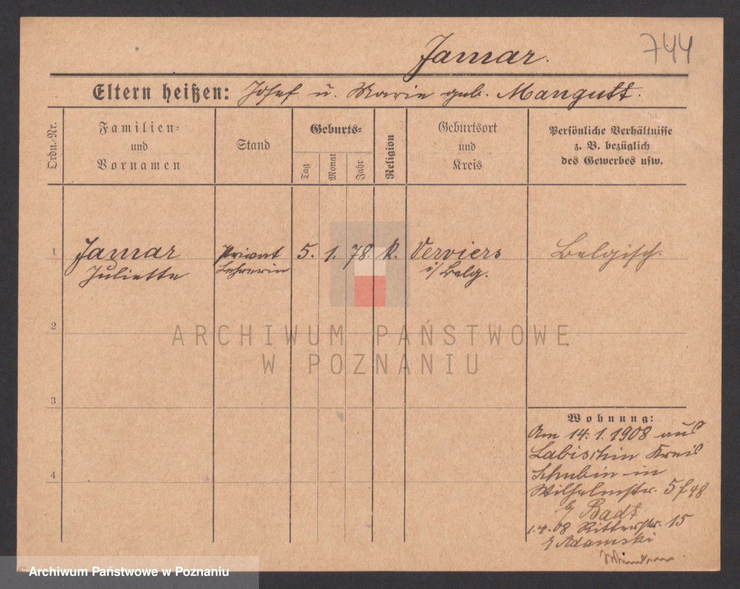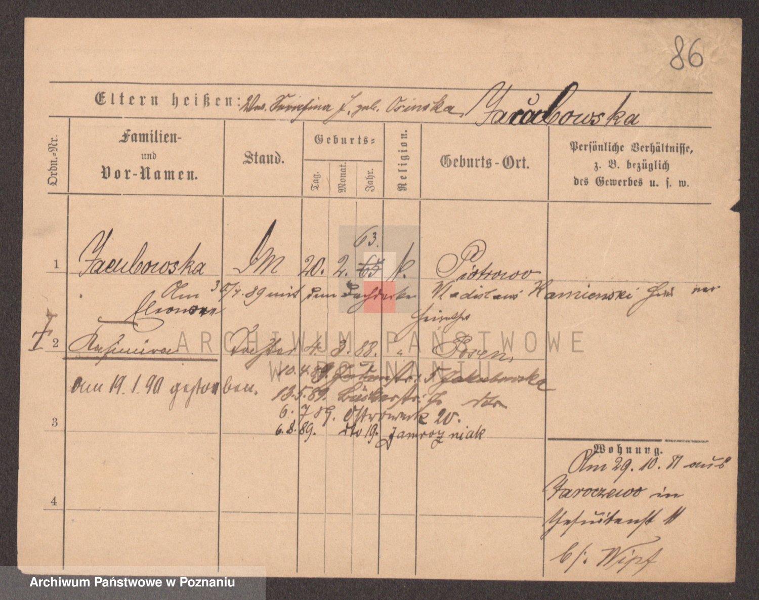Jamry z d. Ratajczak, Cäcilie