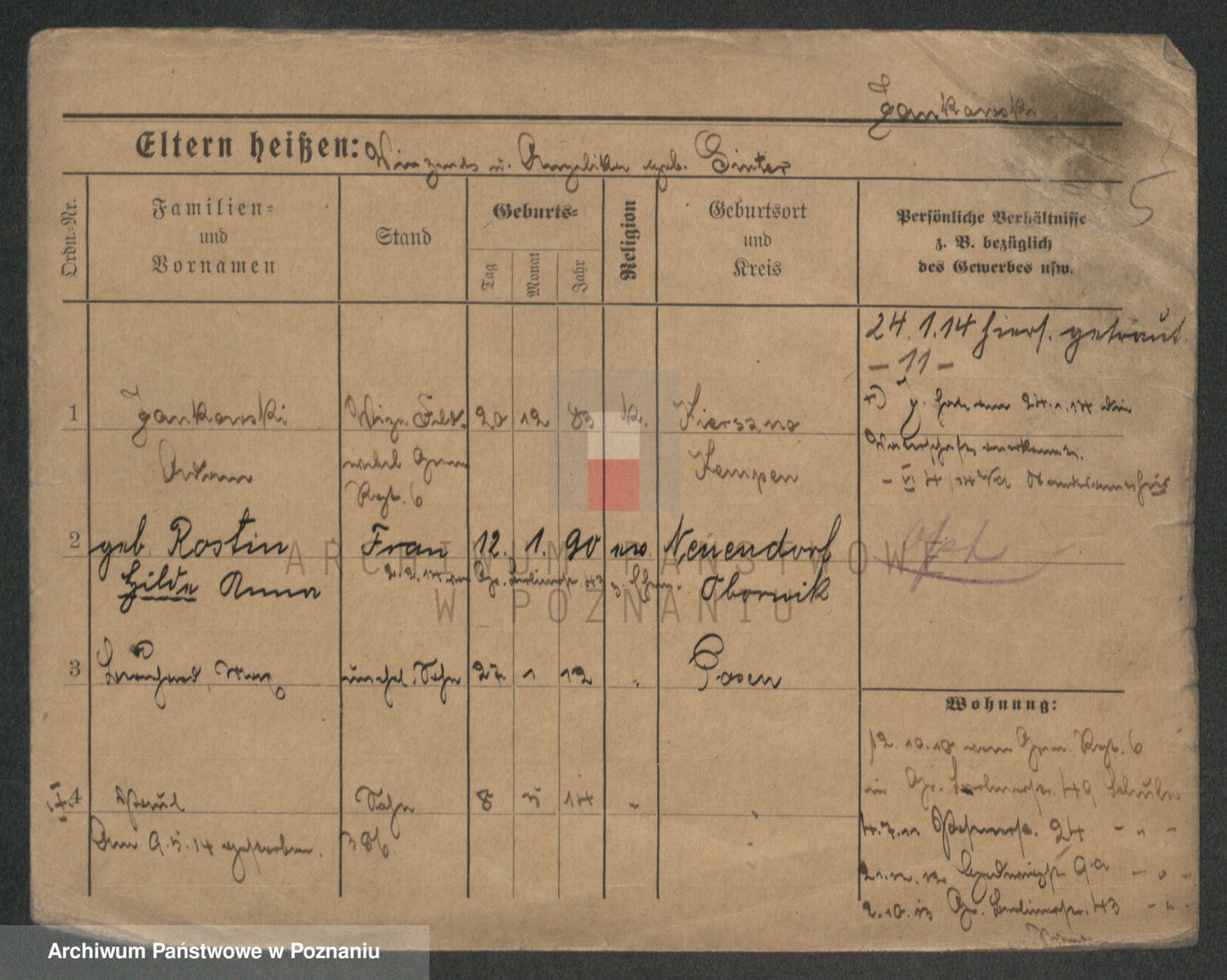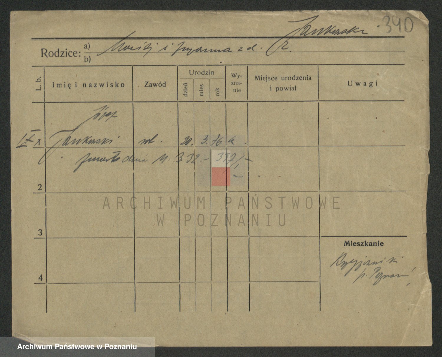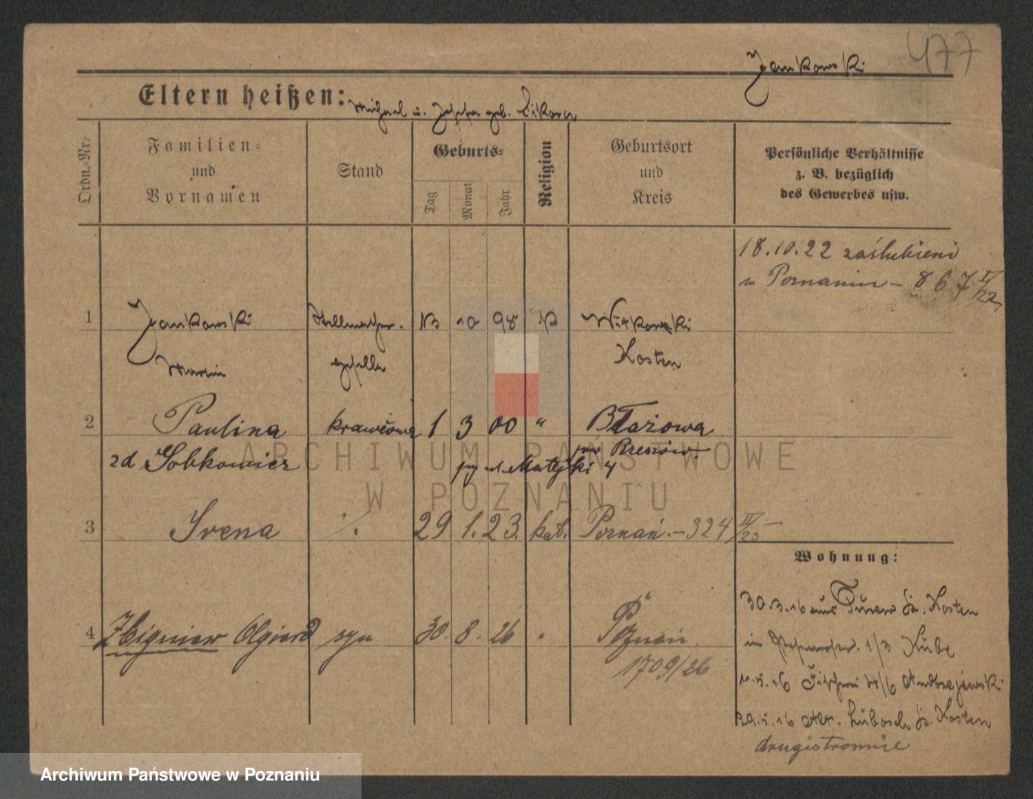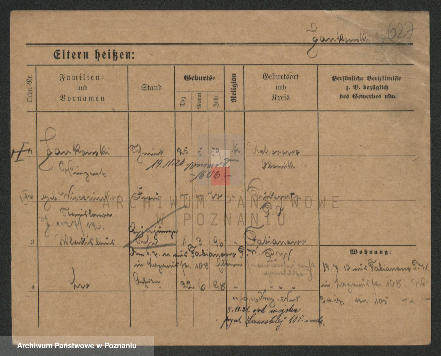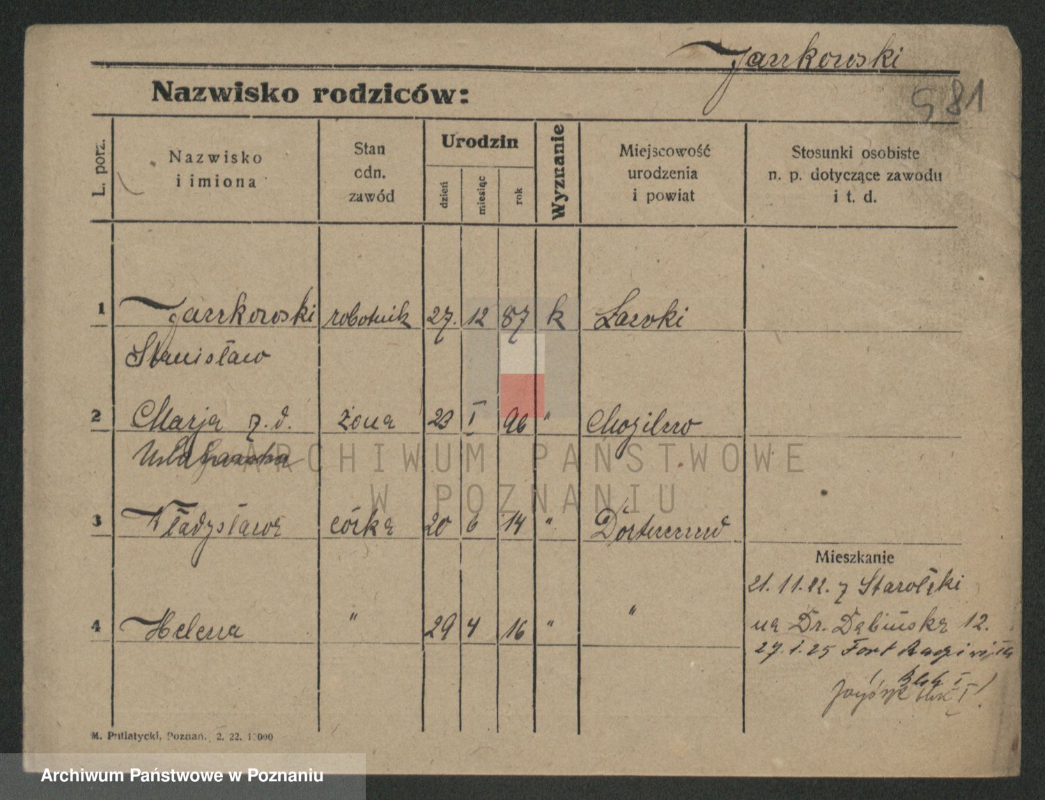 Podgląd karty osobowej dostępny jest po kliknięciu na nazwisko lub ikonkę karty. Można dokonywać powiększenia (ikony na górze) lub przechodzić między kolejnymi skanami (strzałki po bokach).