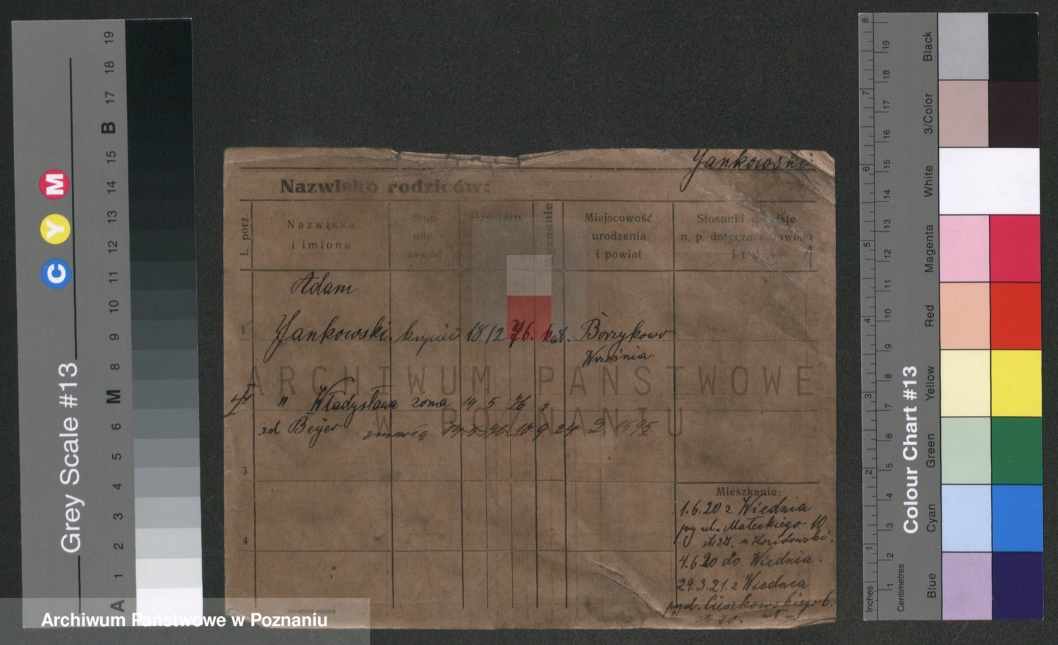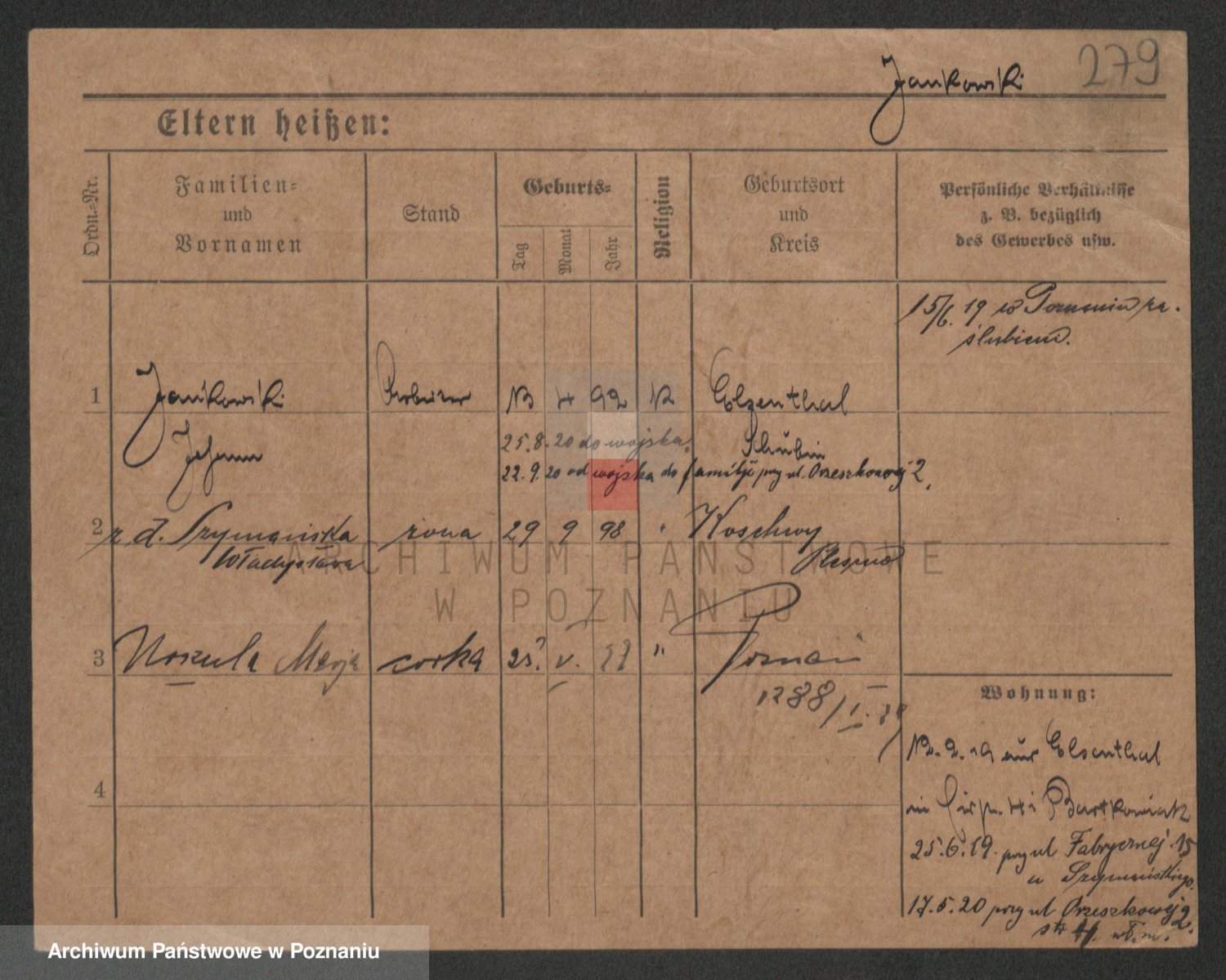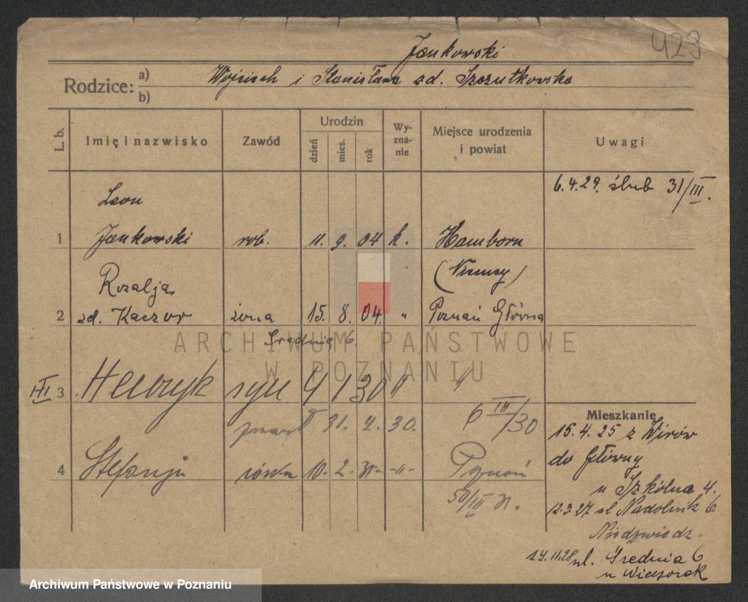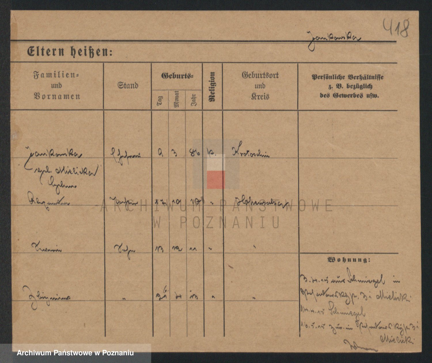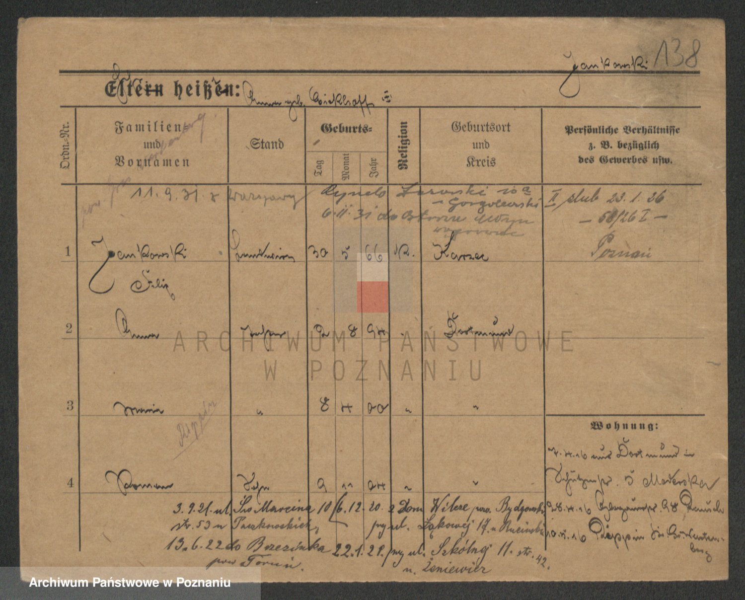 Podgląd karty osobowej dostępny jest po kliknięciu na nazwisko lub ikonkę karty. Można dokonywać powiększenia (ikony na górze) lub przechodzić między kolejnymi skanami (strzałki po bokach).