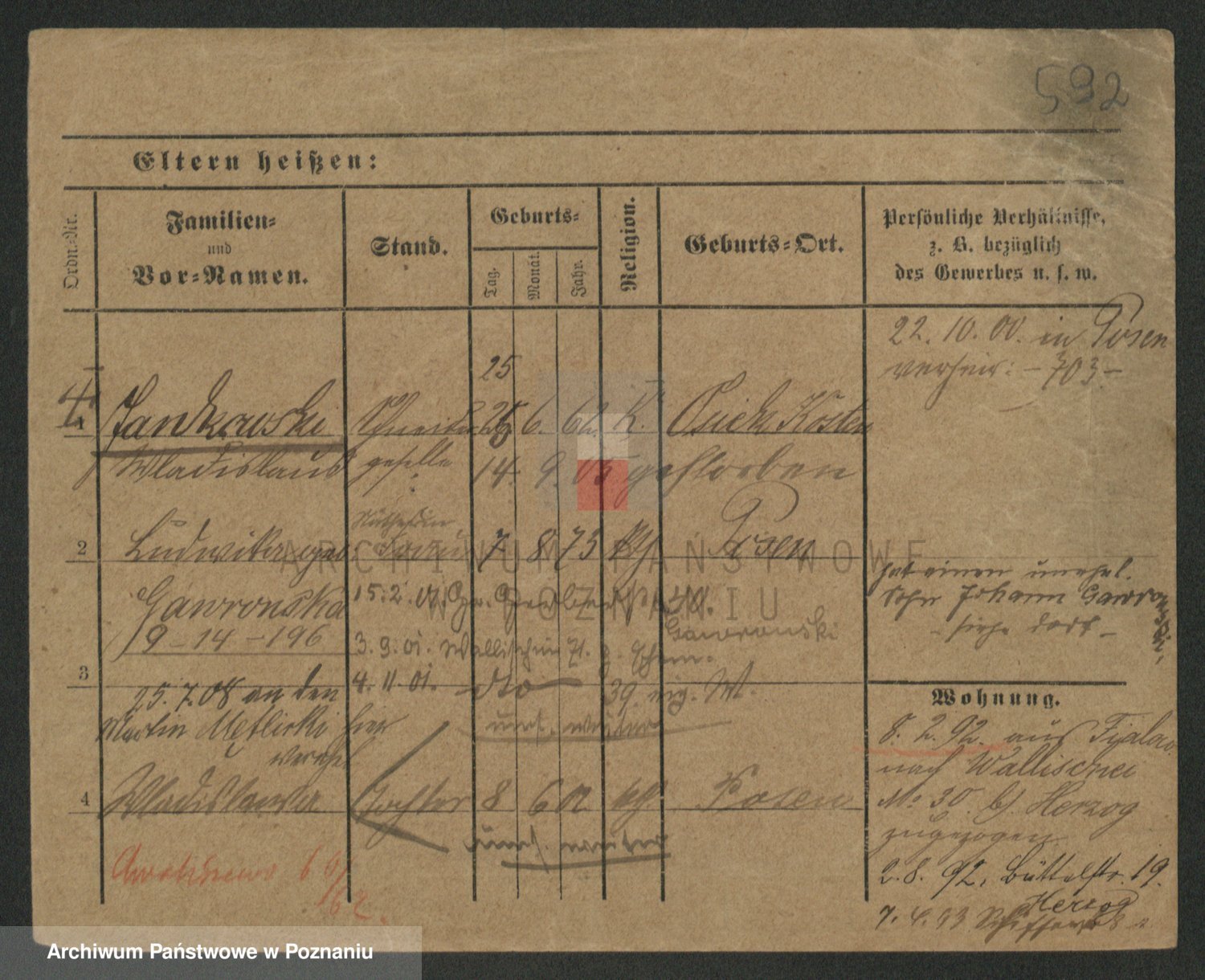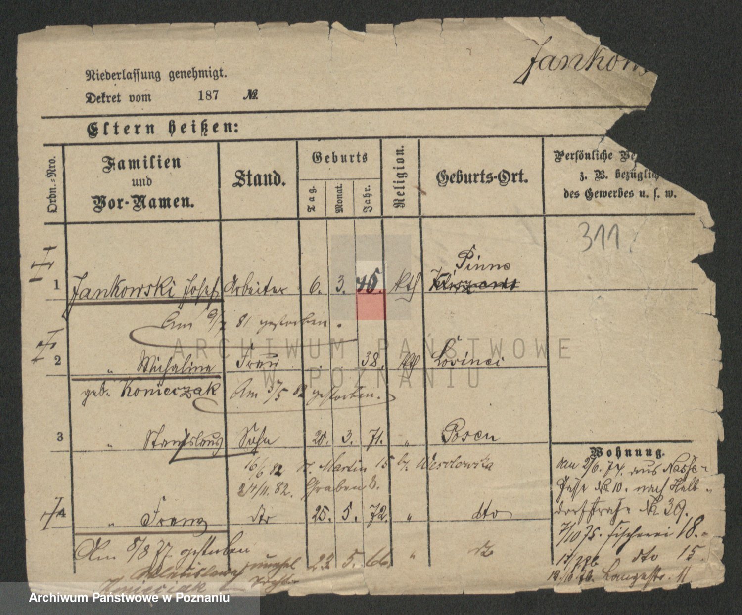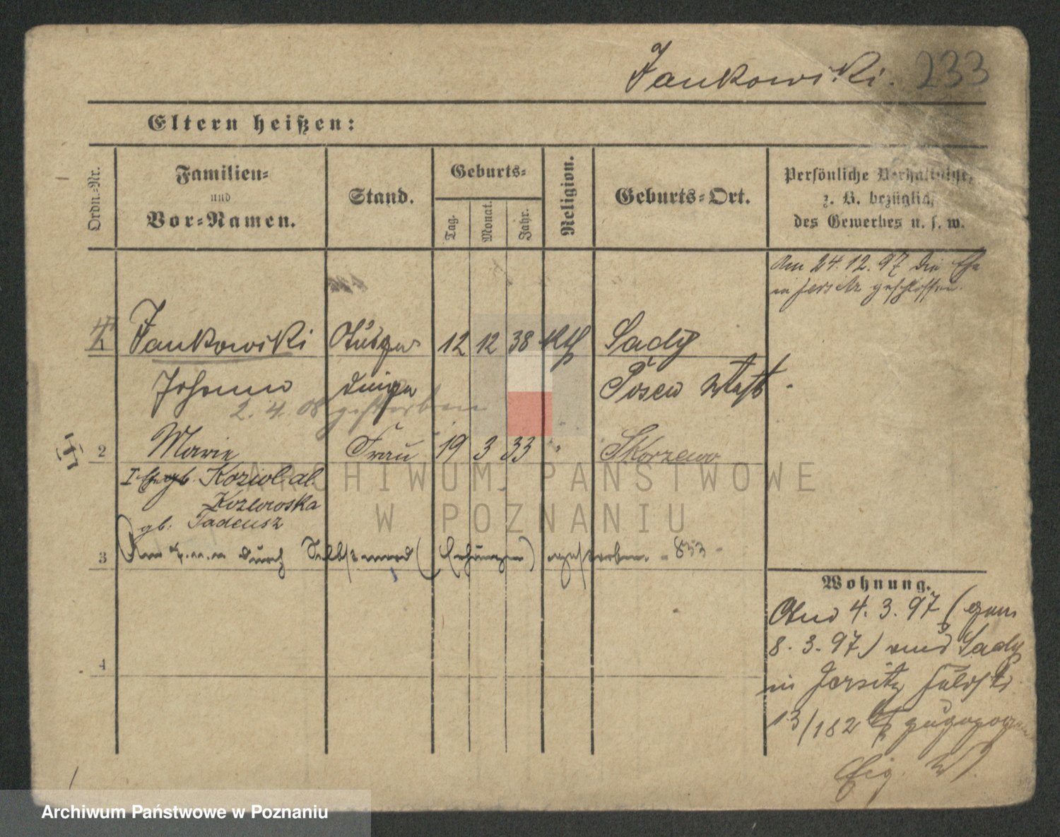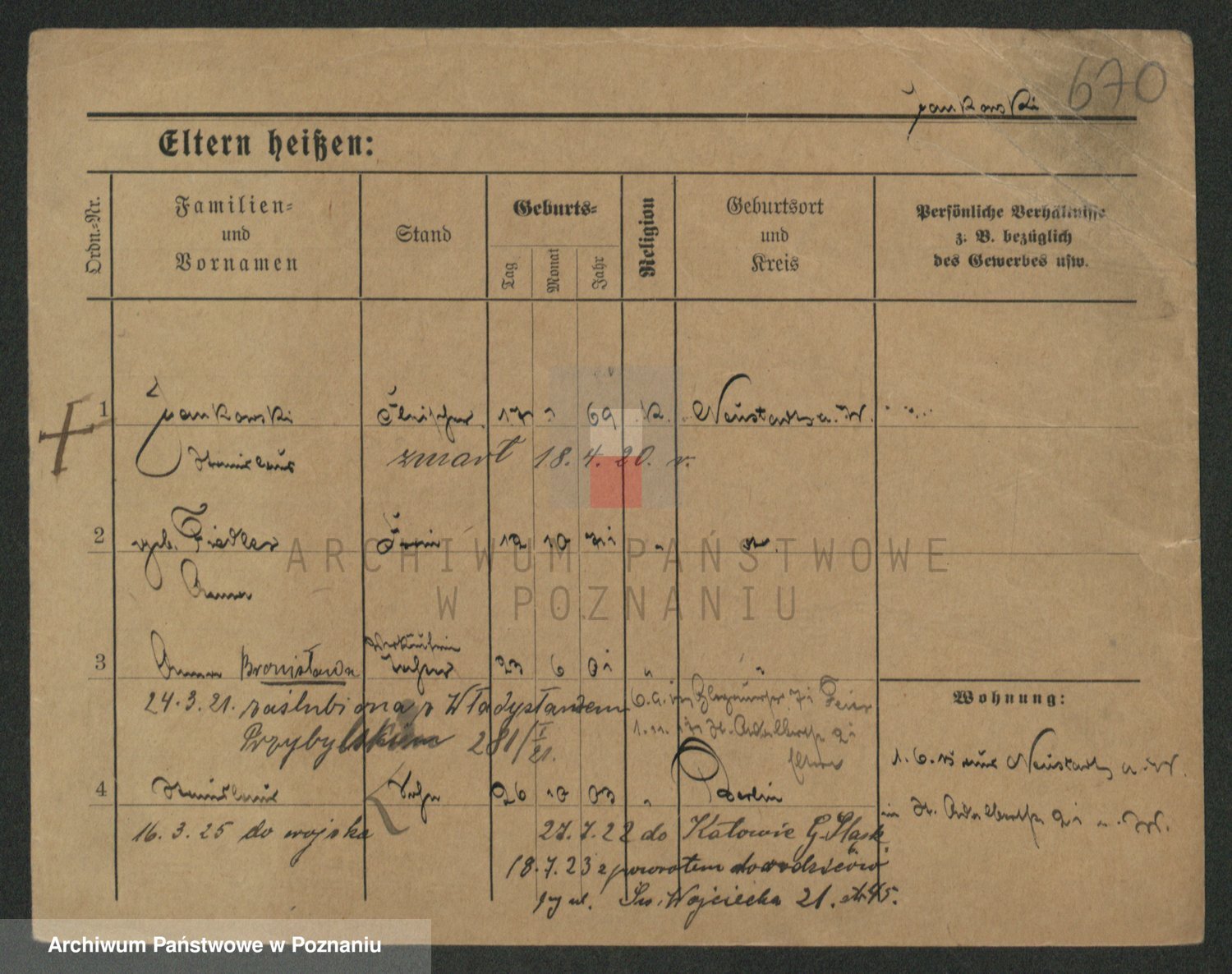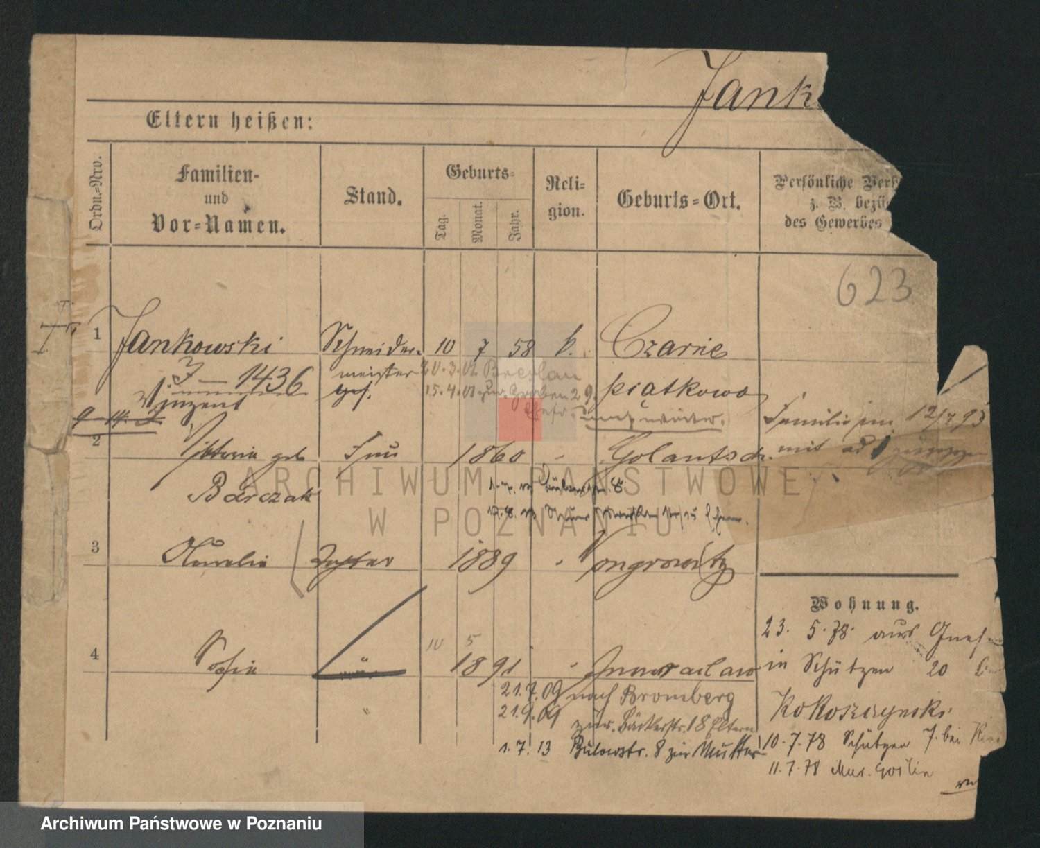 Podgląd karty osobowej dostępny jest po kliknięciu na nazwisko lub ikonkę karty. Można dokonywać powiększenia (ikony na górze) lub przechodzić między kolejnymi skanami (strzałki po bokach).