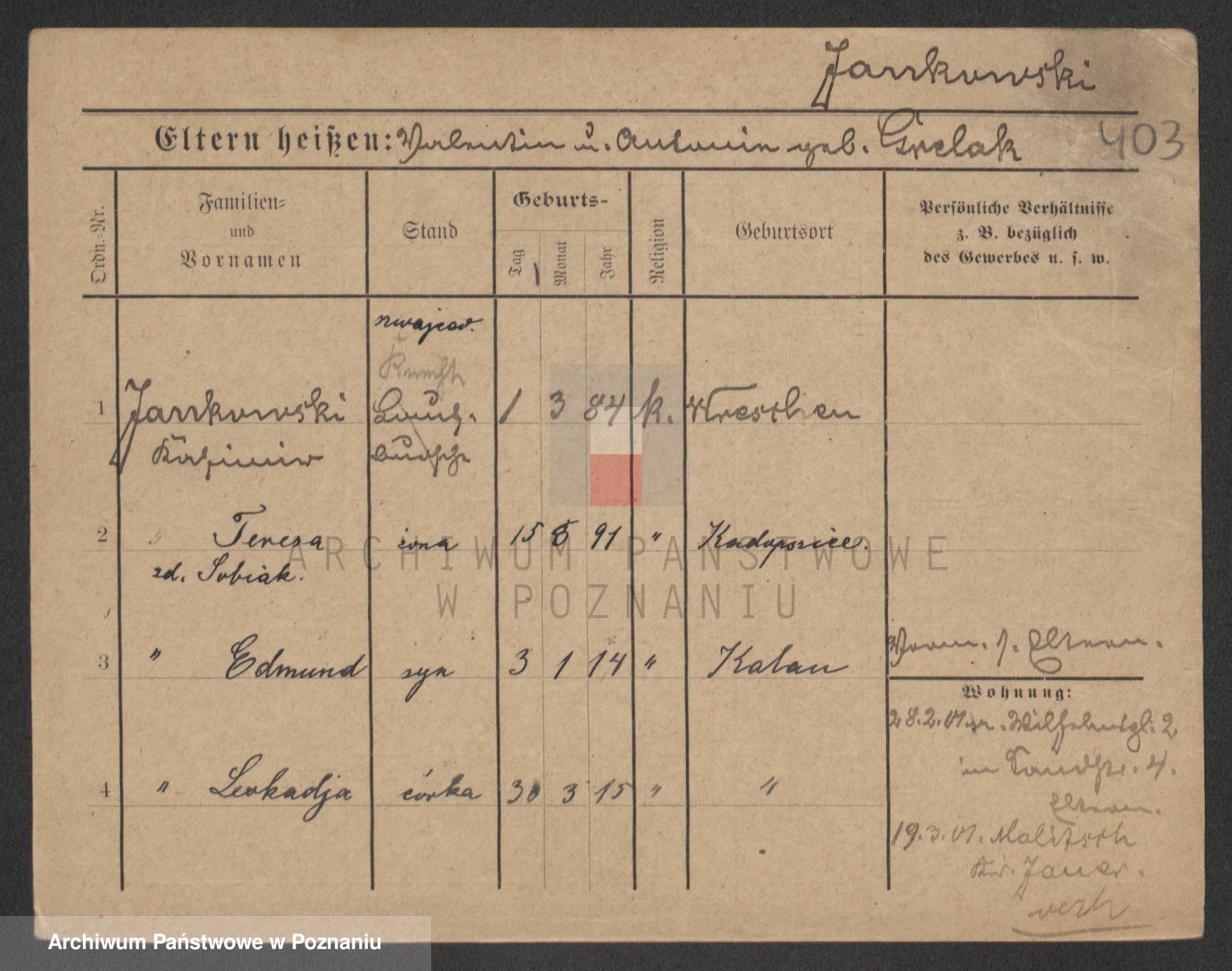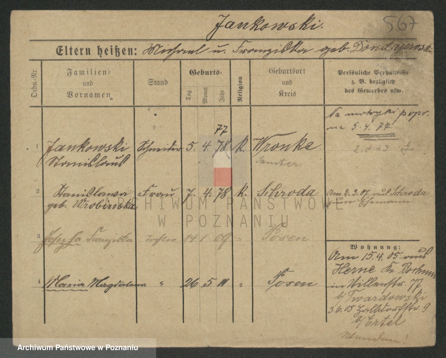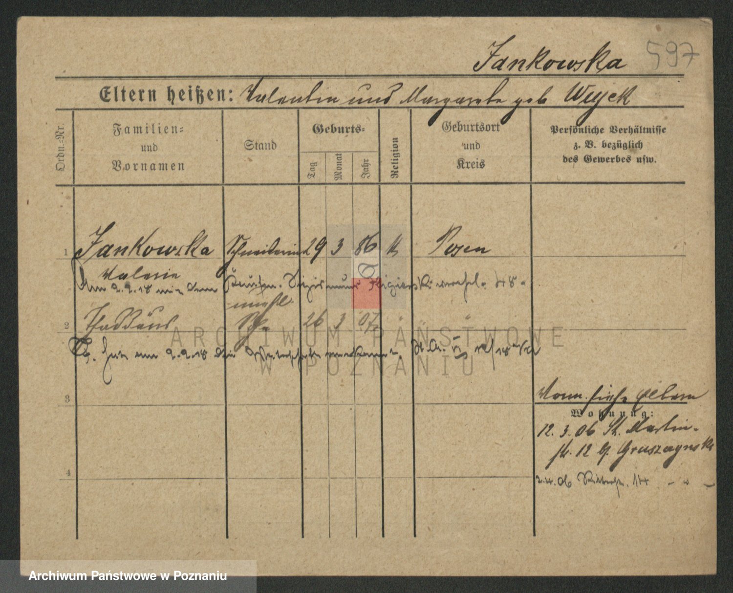 Jankowska z d. Wulkowska, Katharina Emilie