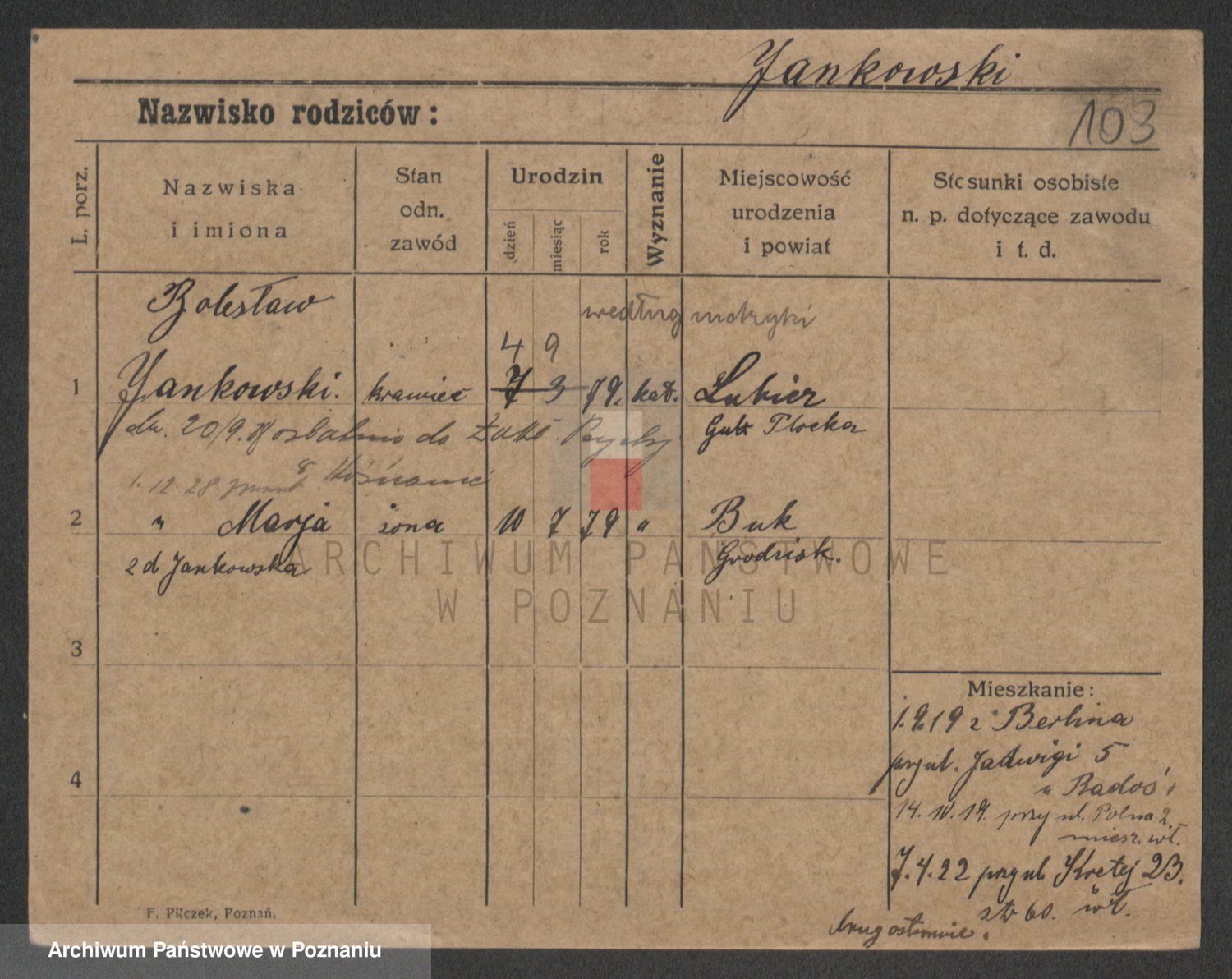 Jankowski, Boleslaus Wladislaus
