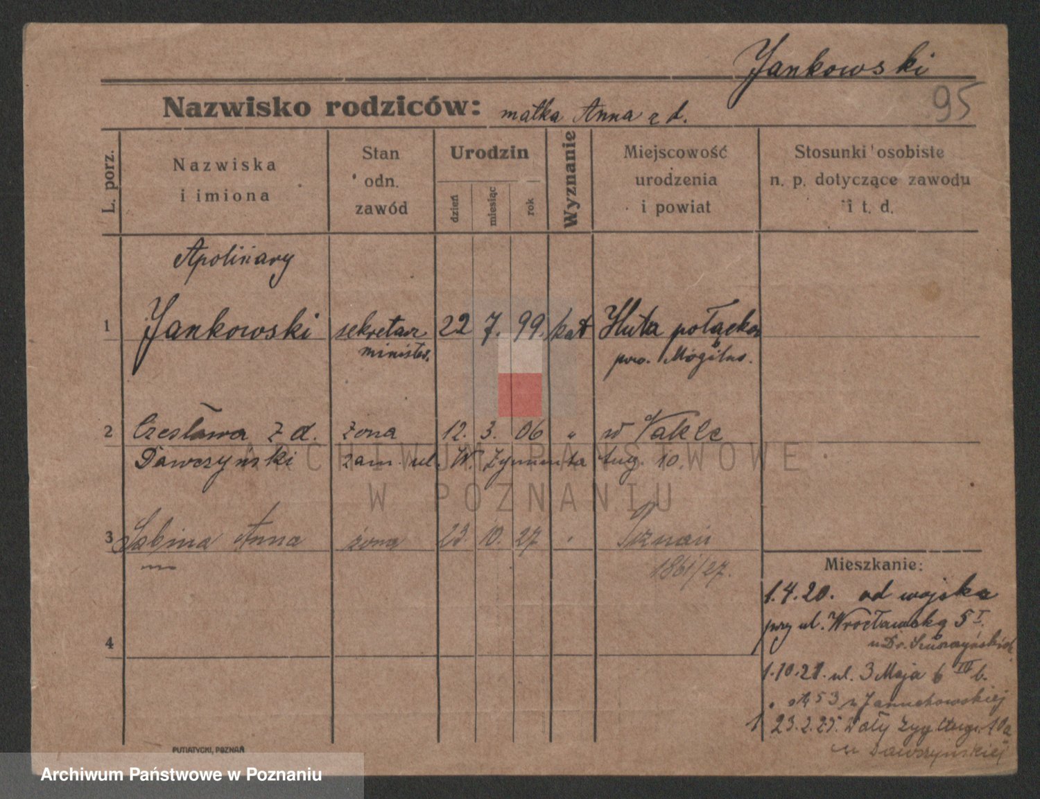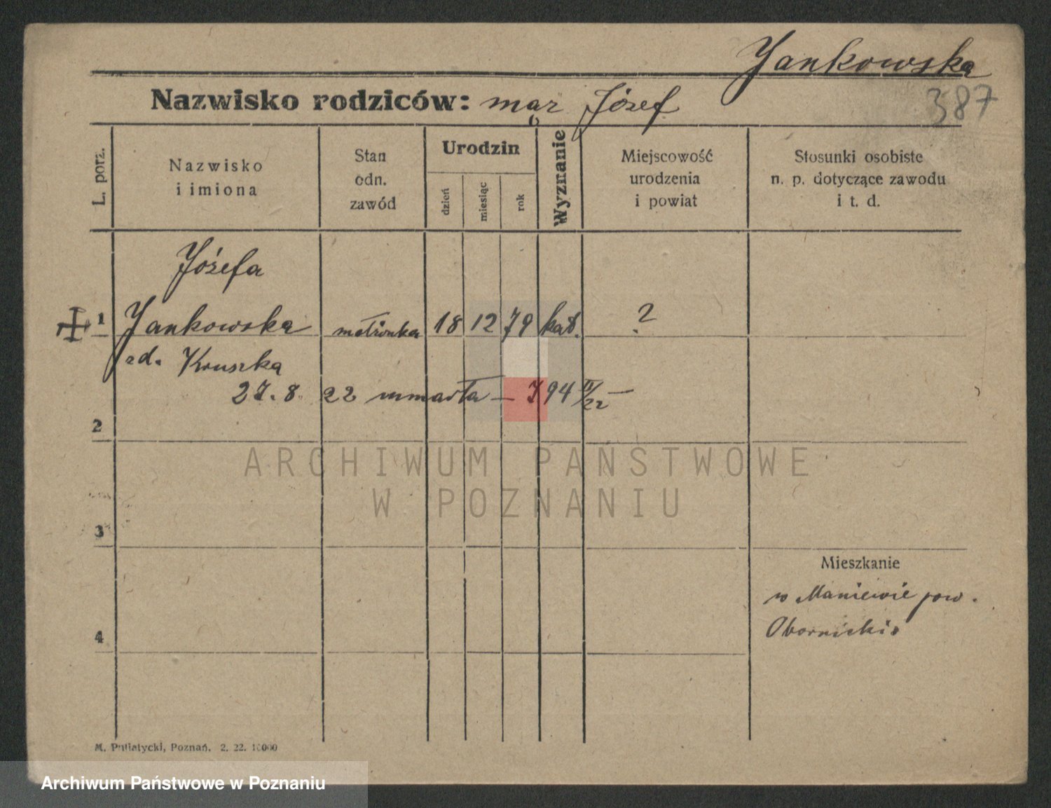 Jankowska z d. Raczynska, Marie
